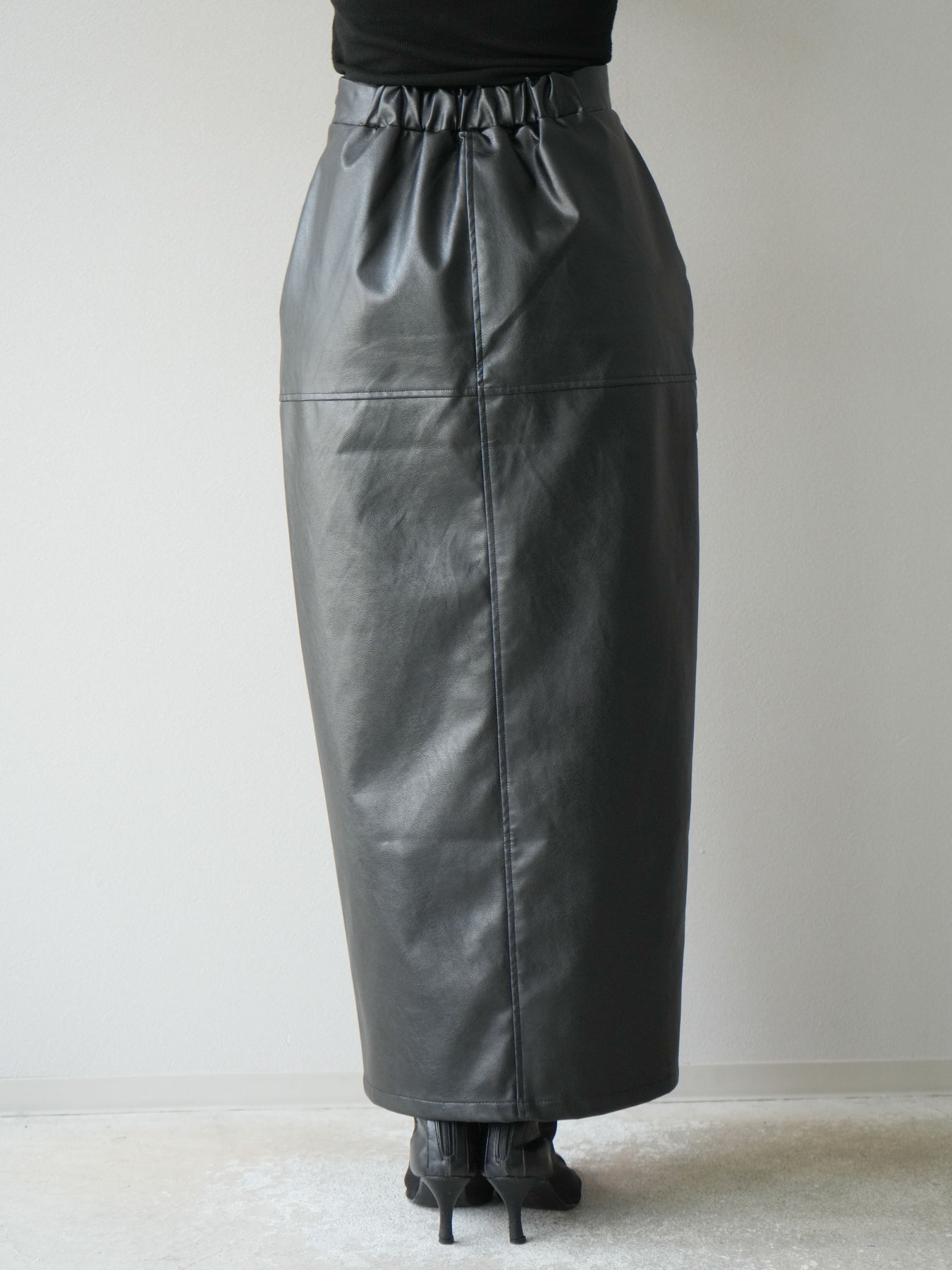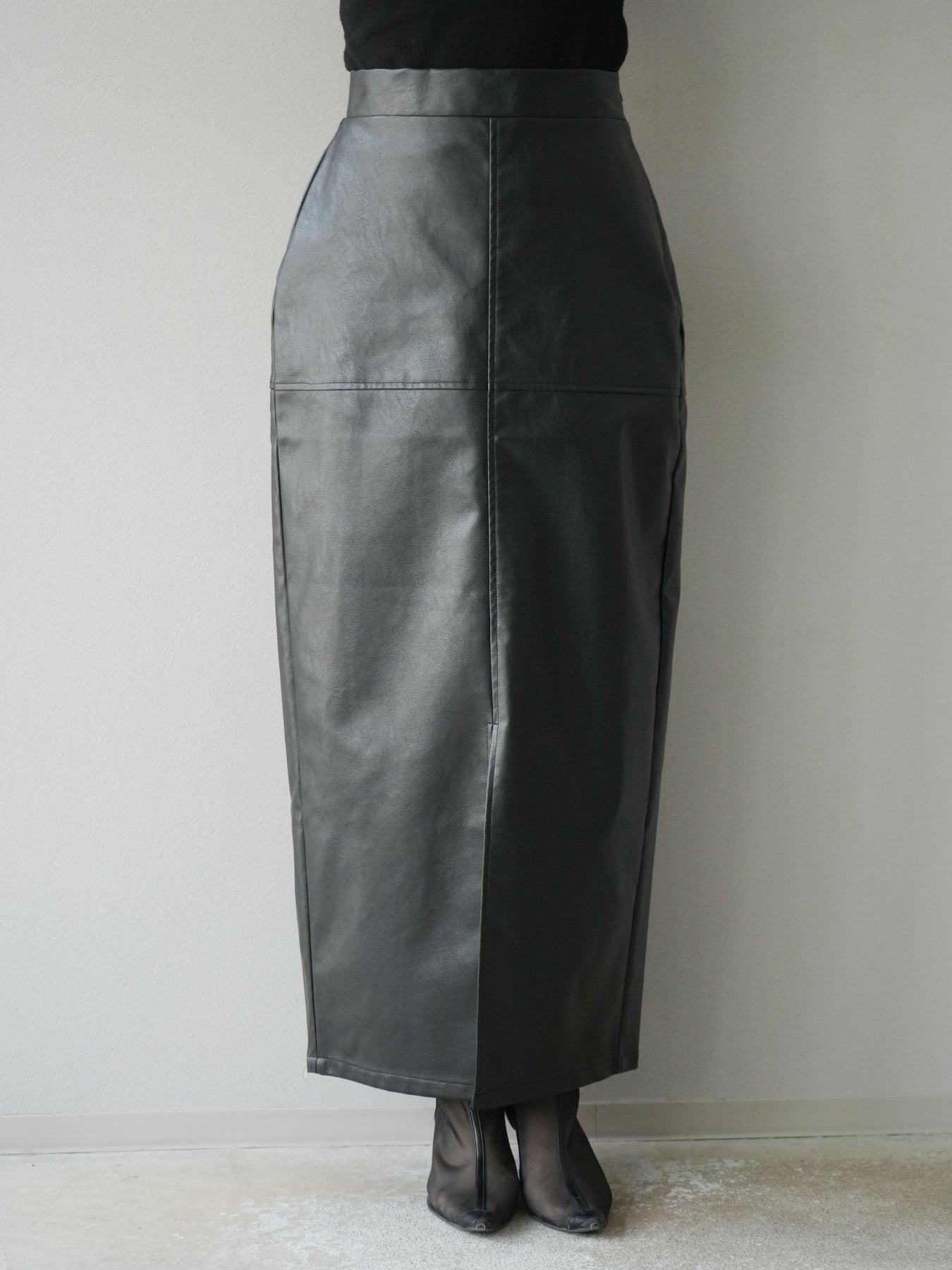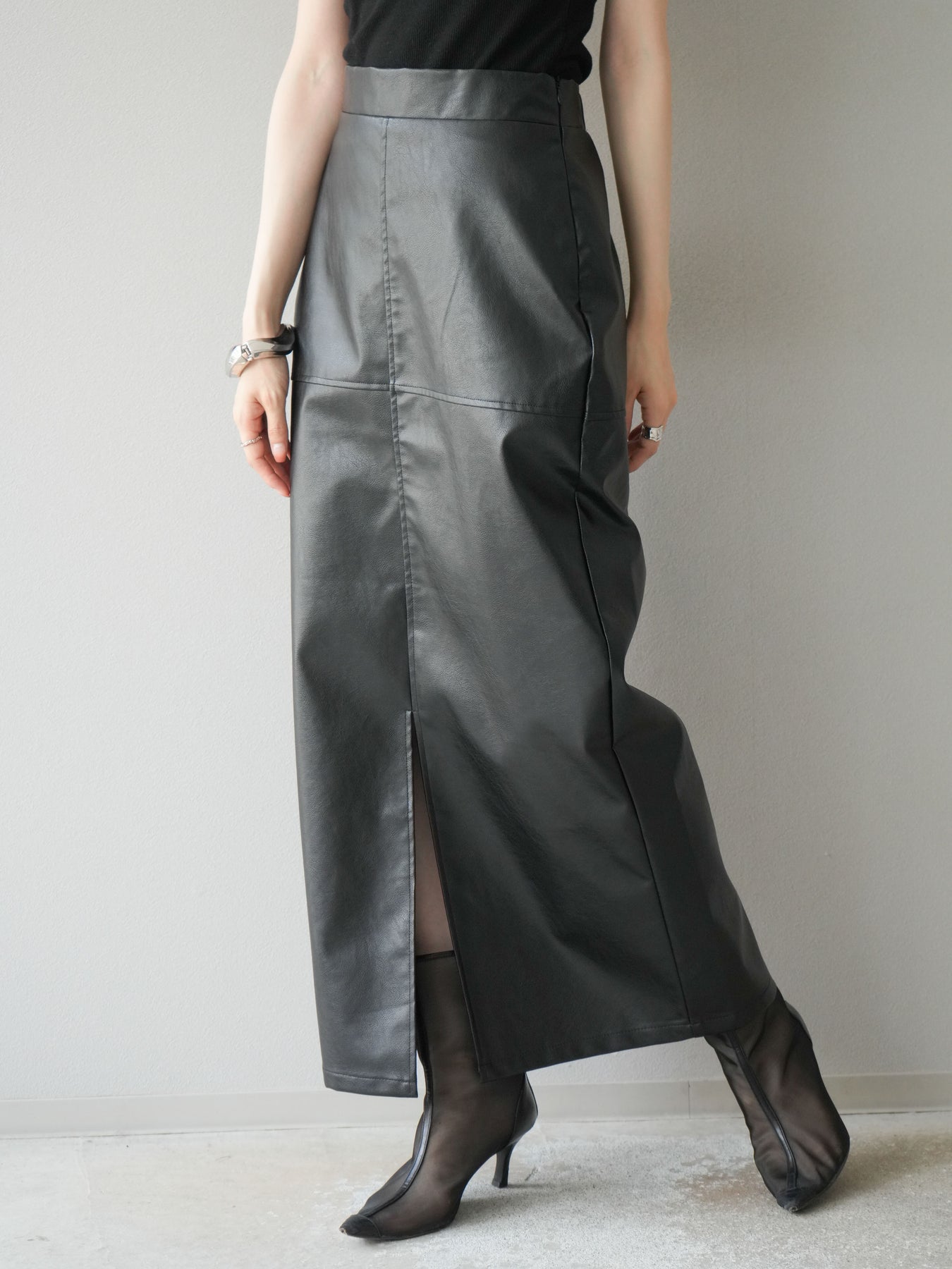 [予約]フェイクレザーフロントスリットスカート/ブラック