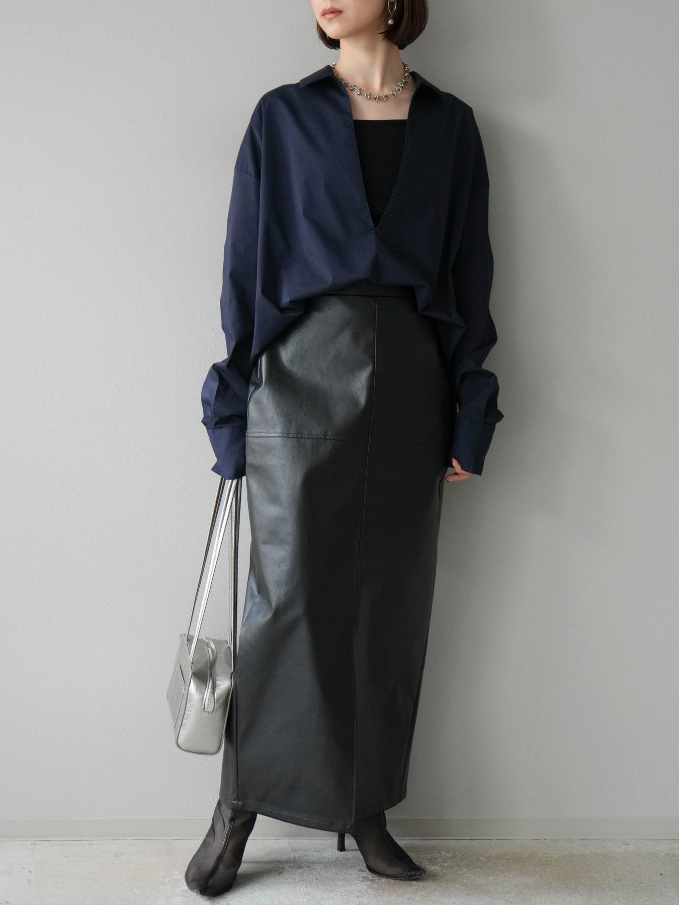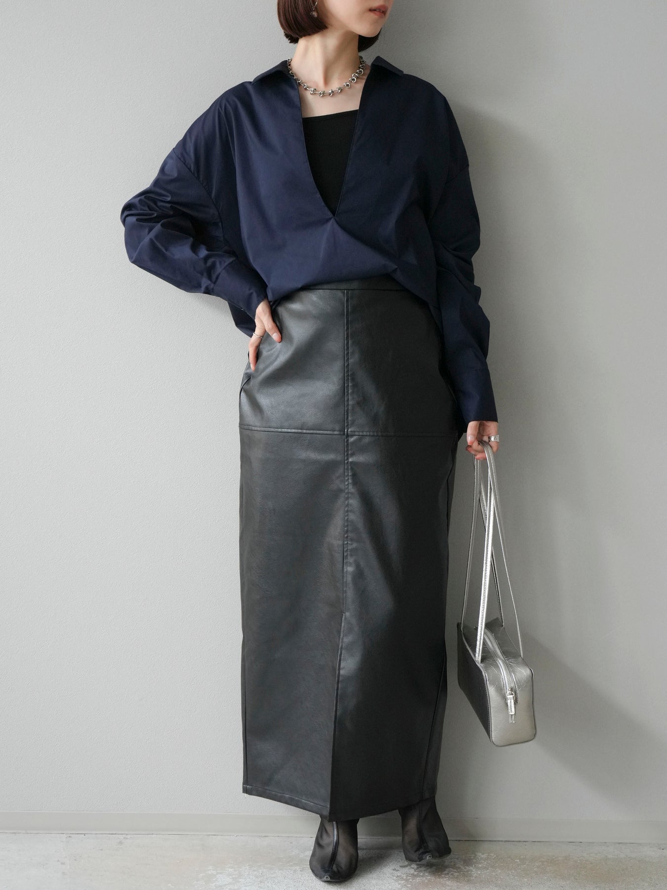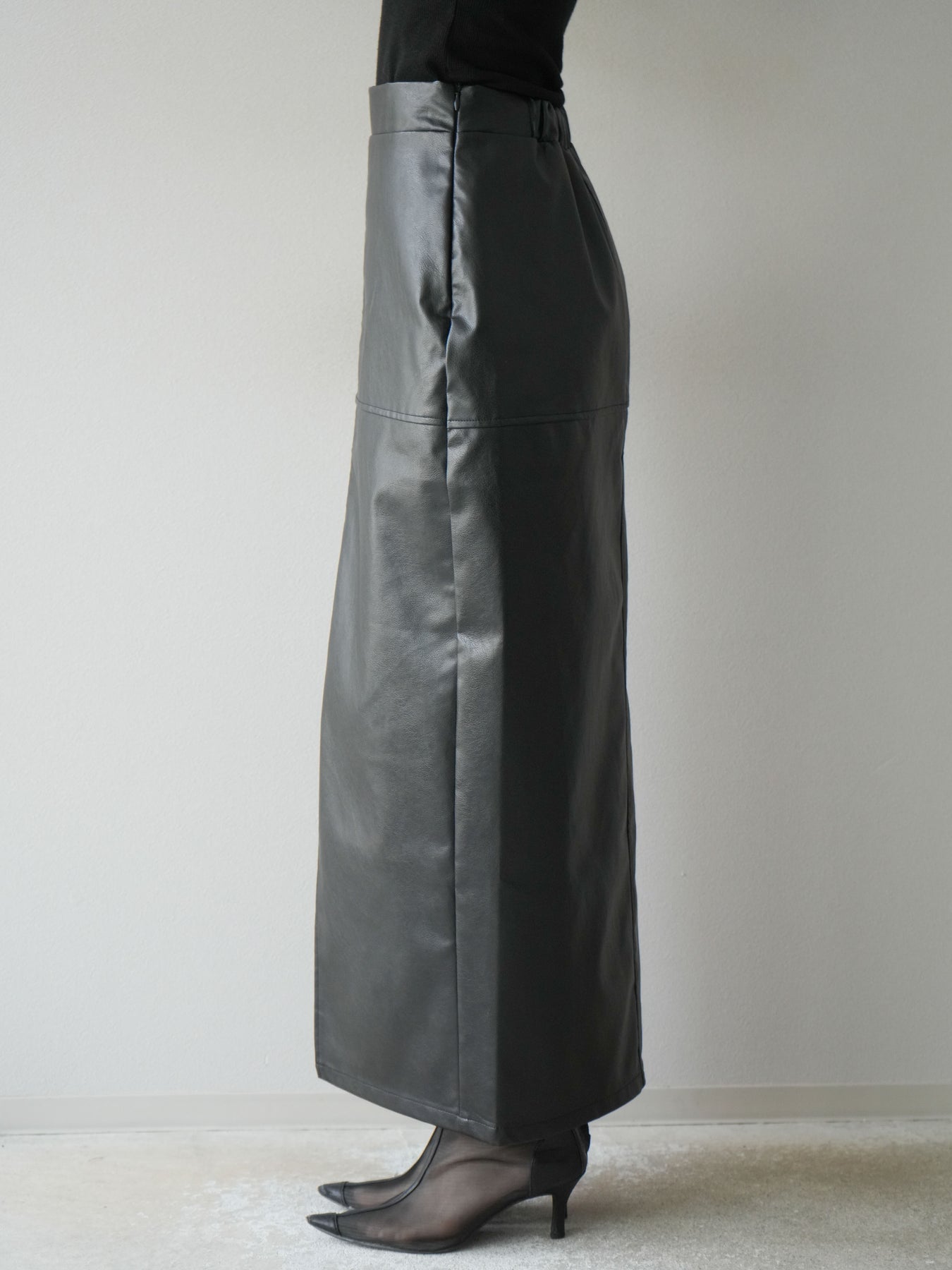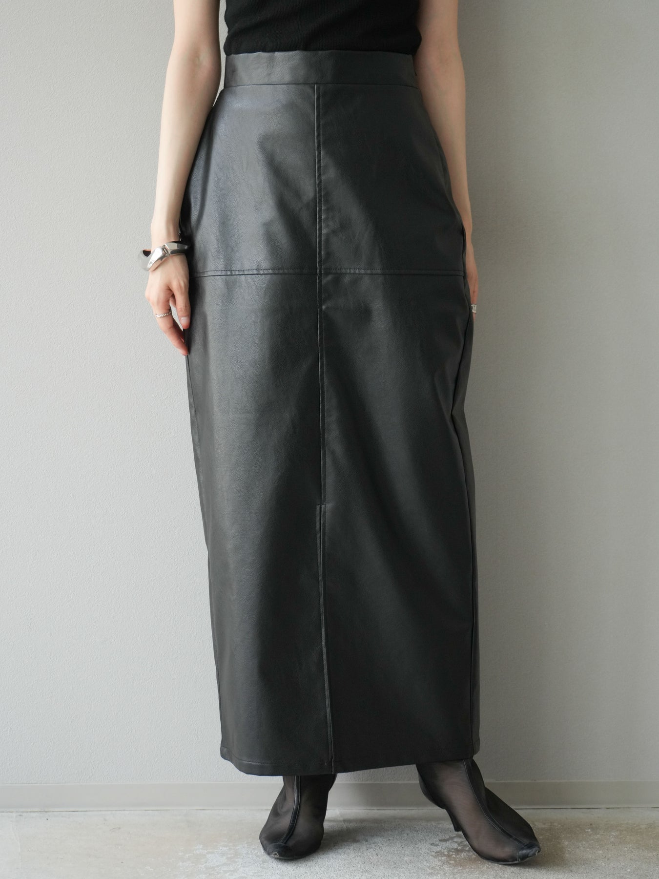[予約]フェイクレザーフロントスリットスカート/ブラック