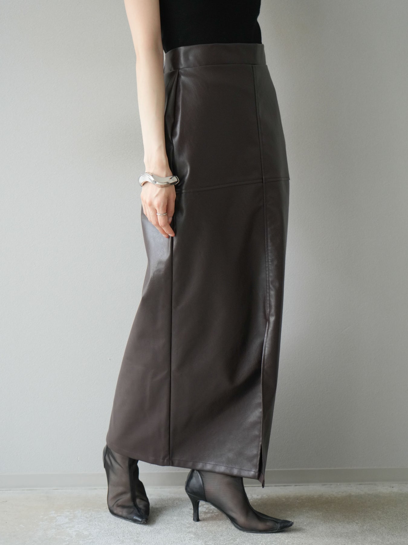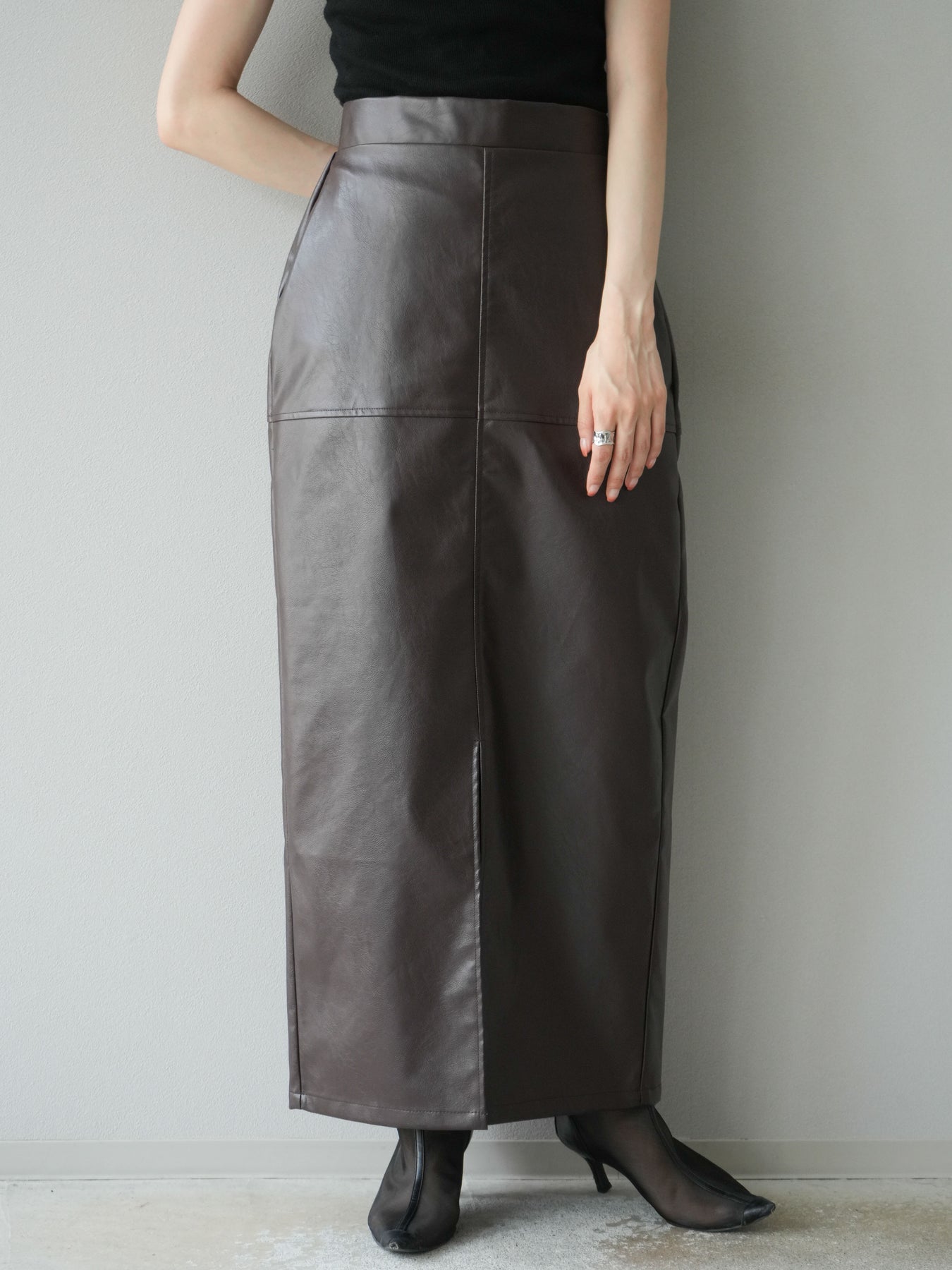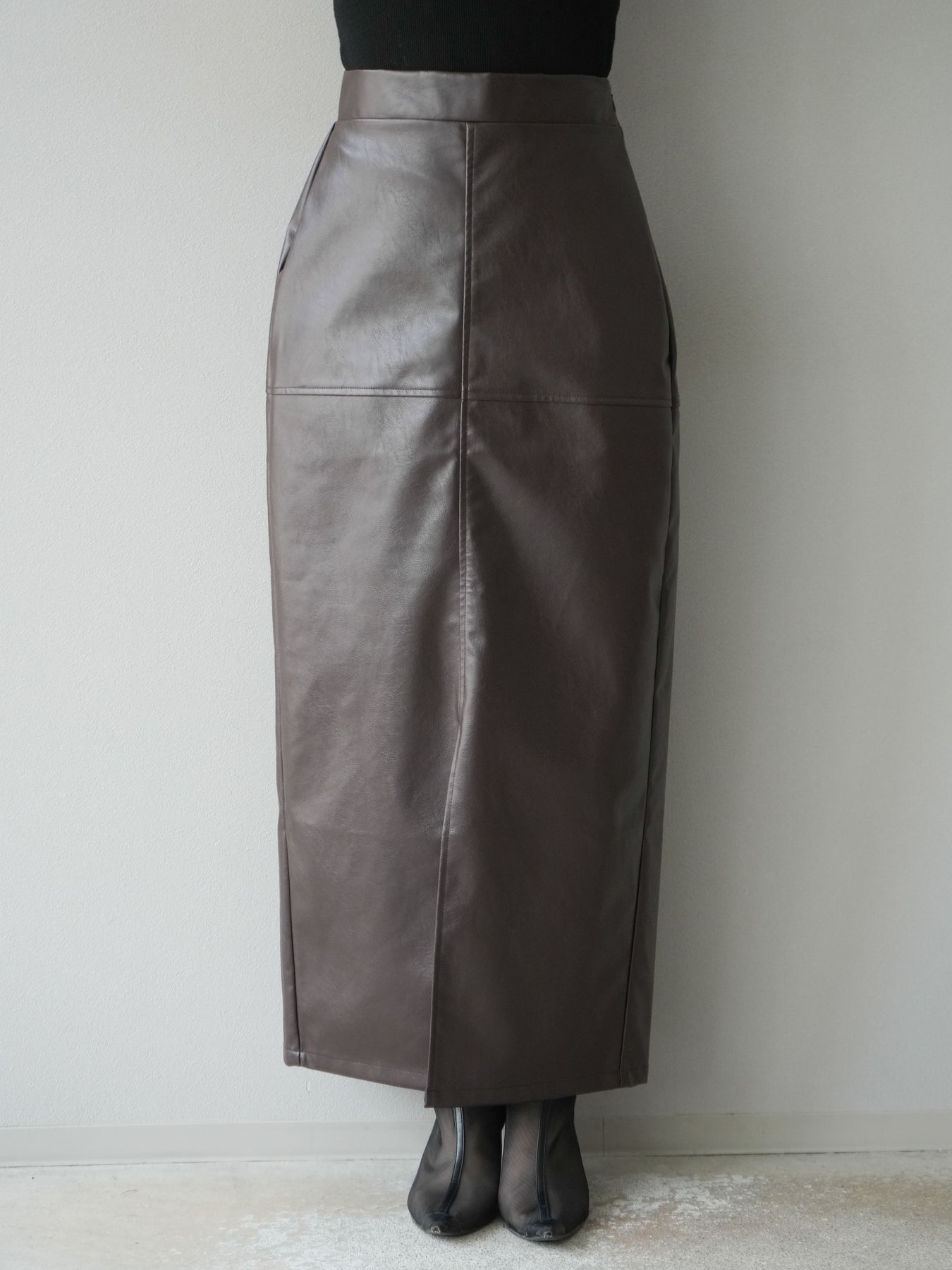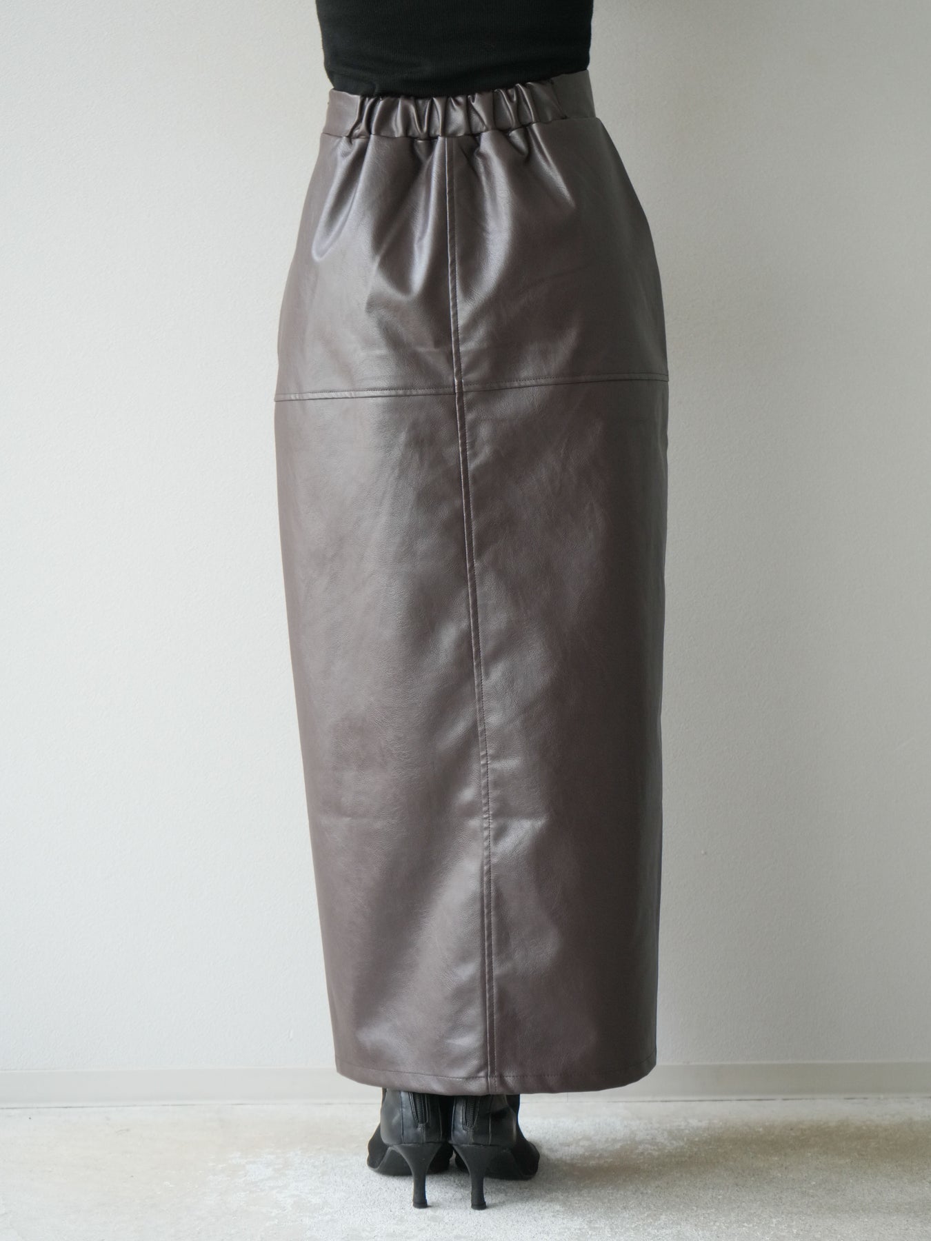 [予約]フェイクレザーフロントスリットスカート/ブラウン