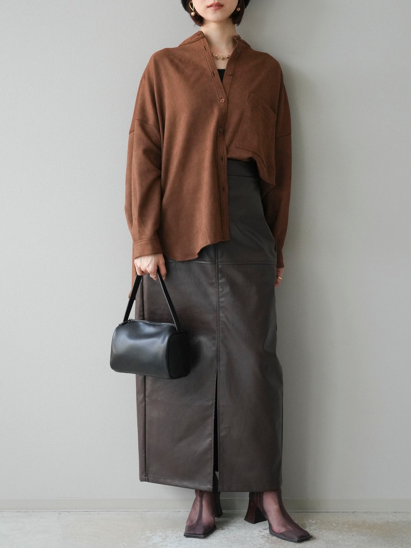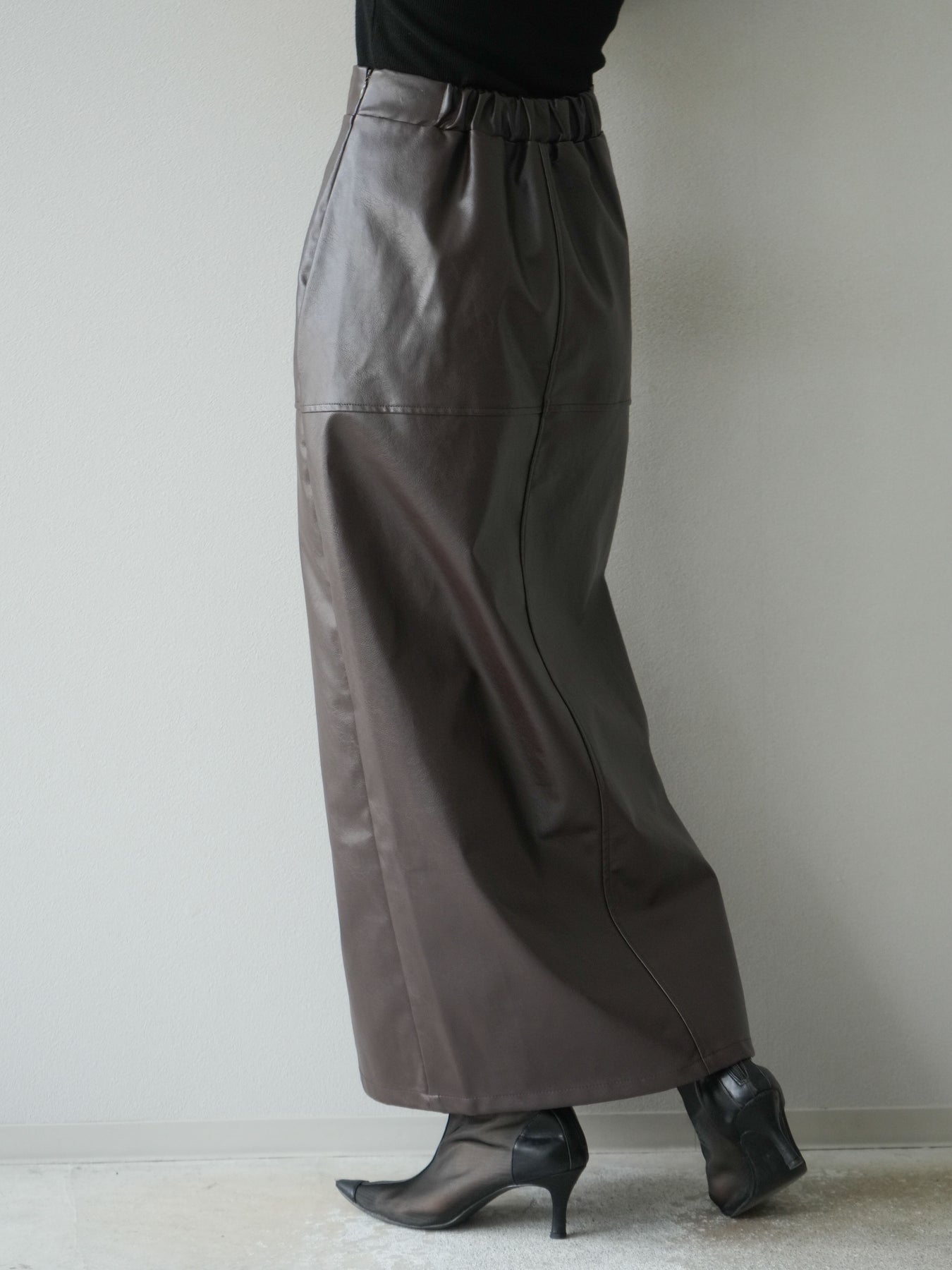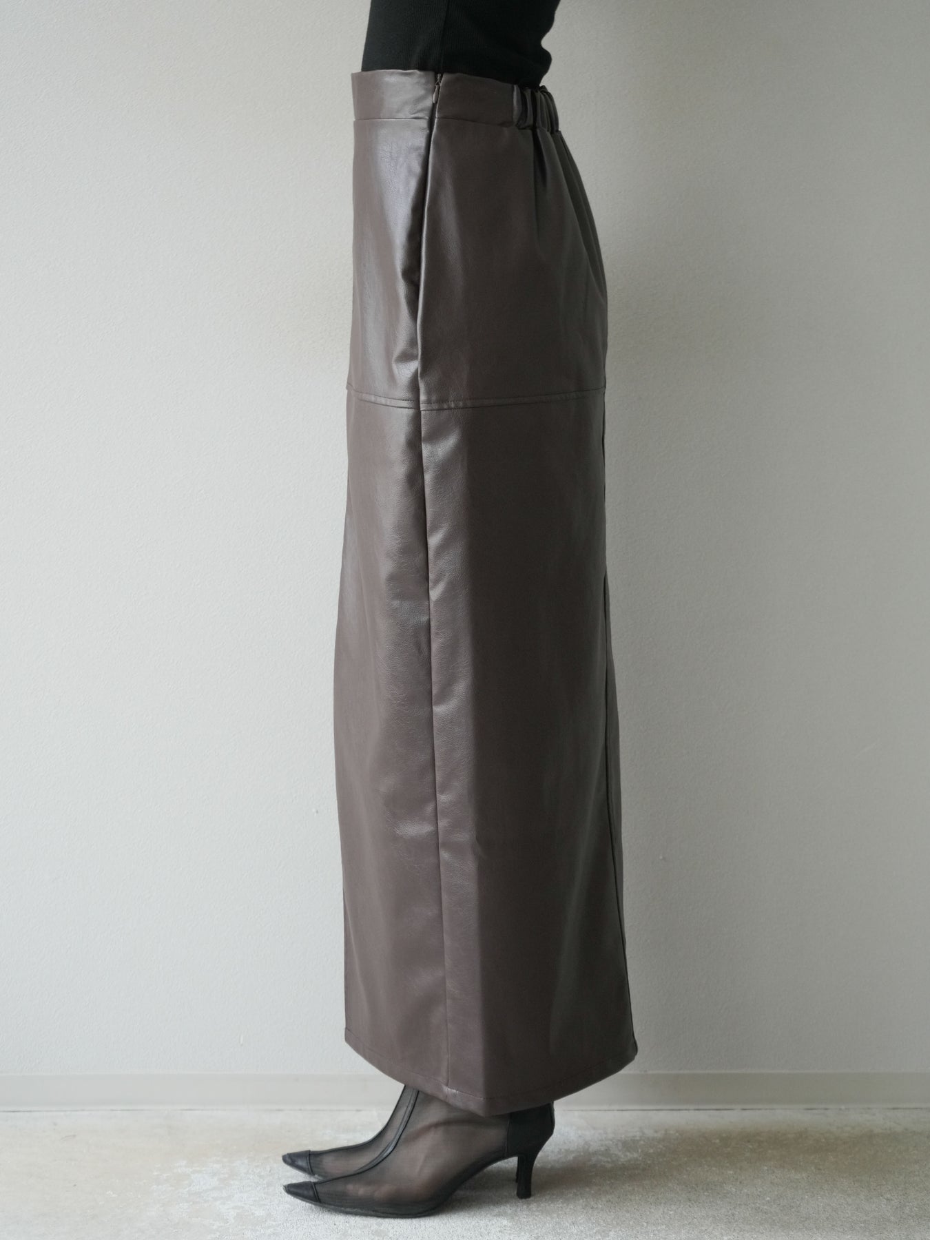 [予約]フェイクレザーフロントスリットスカート/ブラウン