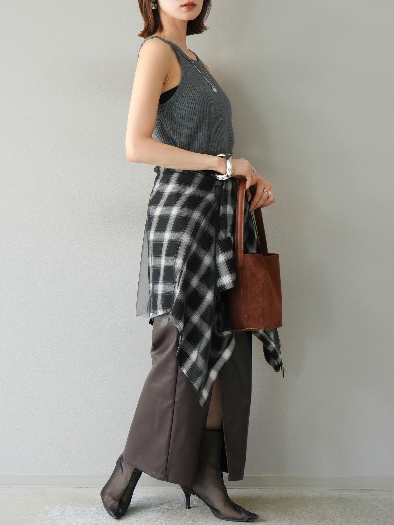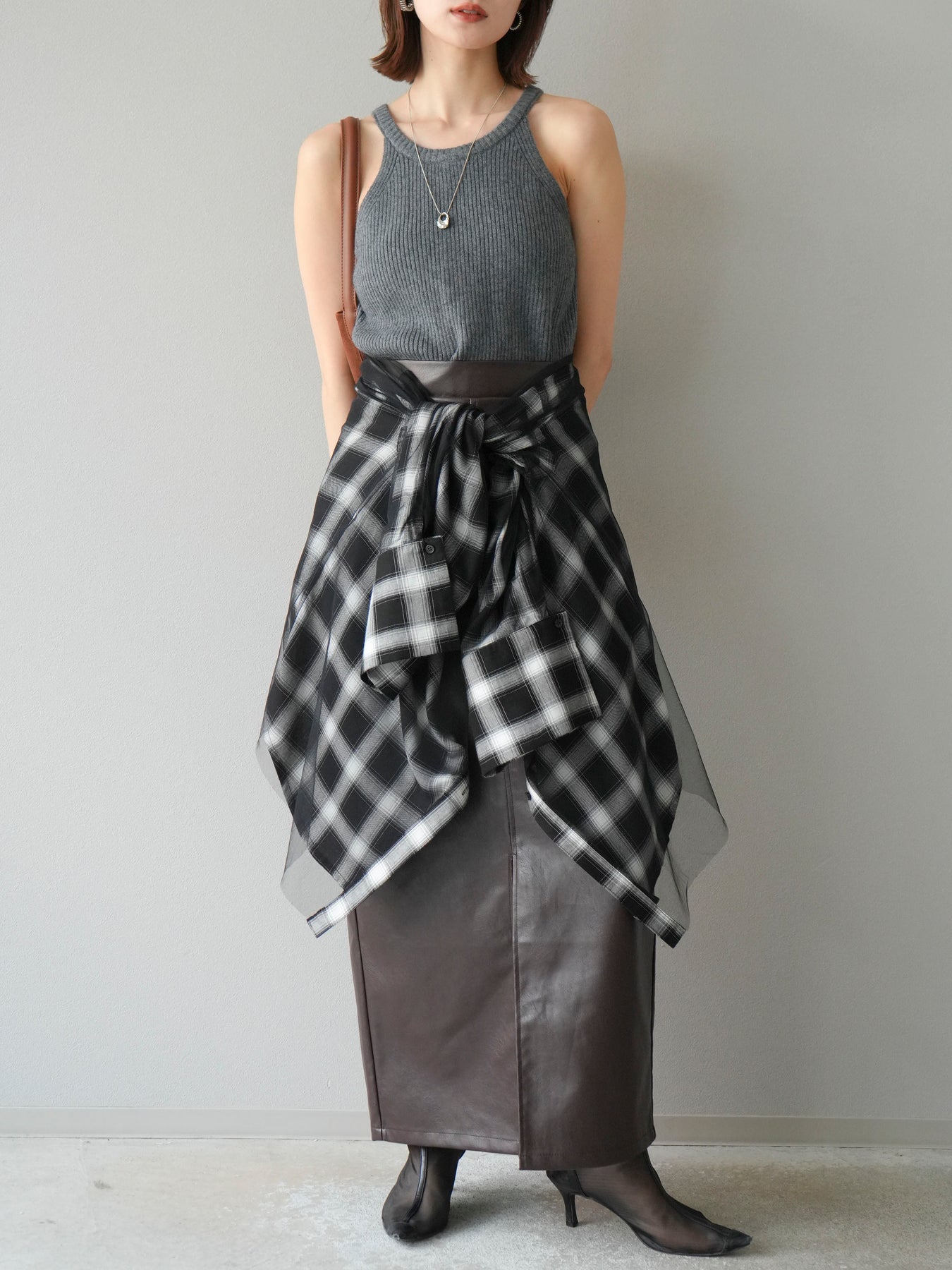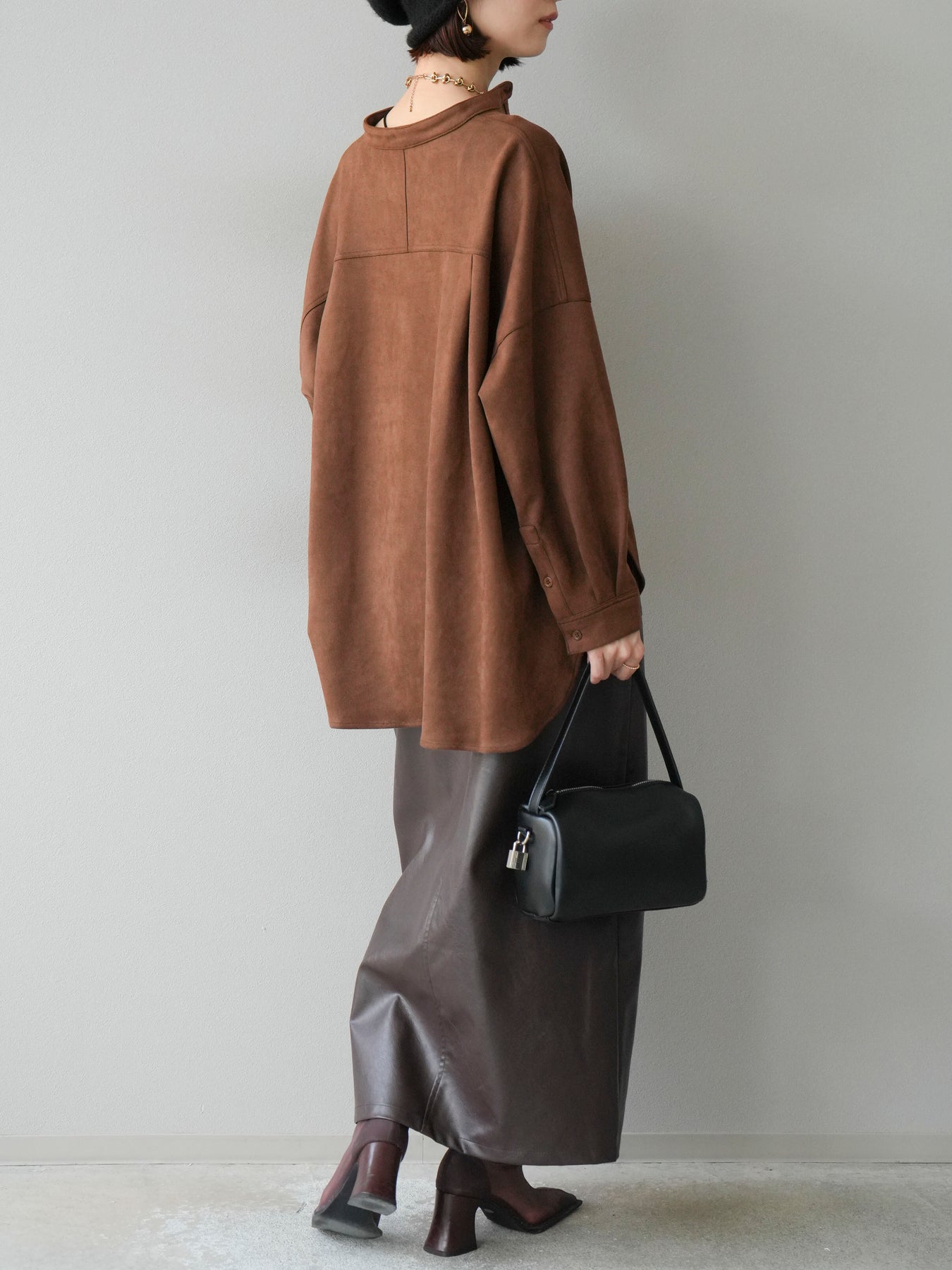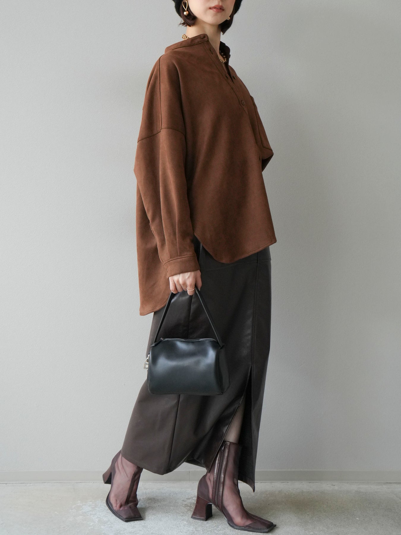 [予約]フェイクレザーフロントスリットスカート/ブラウン