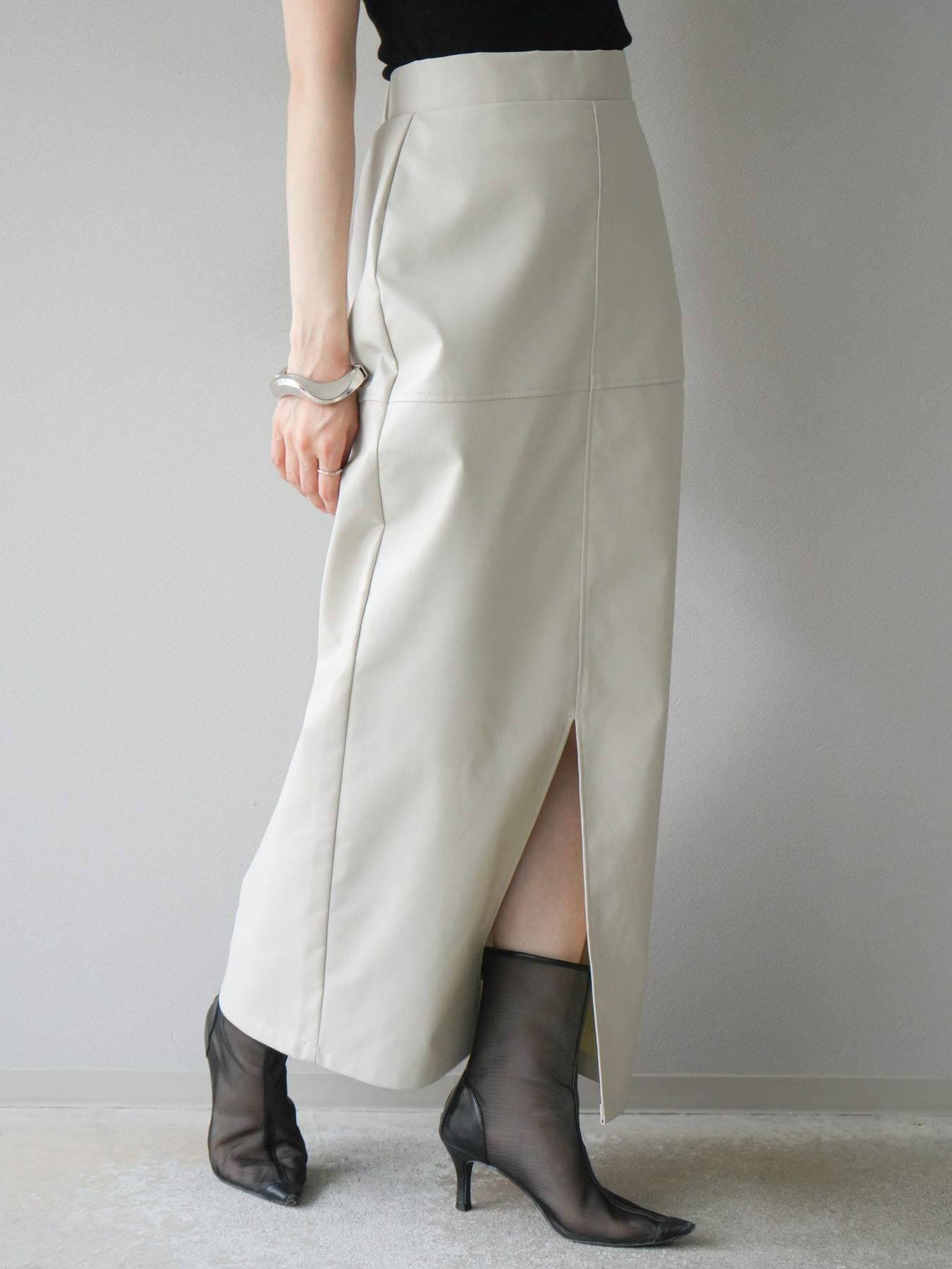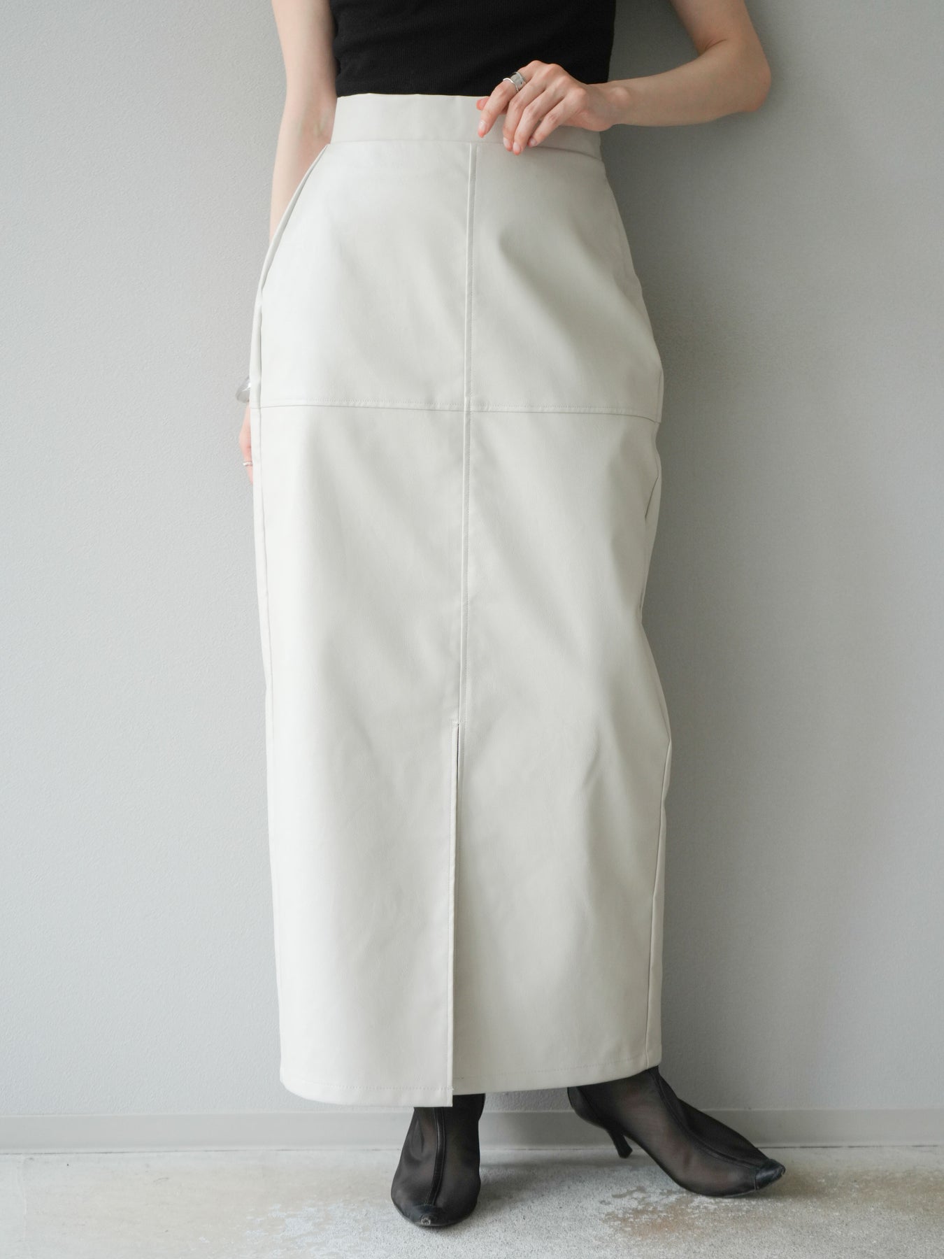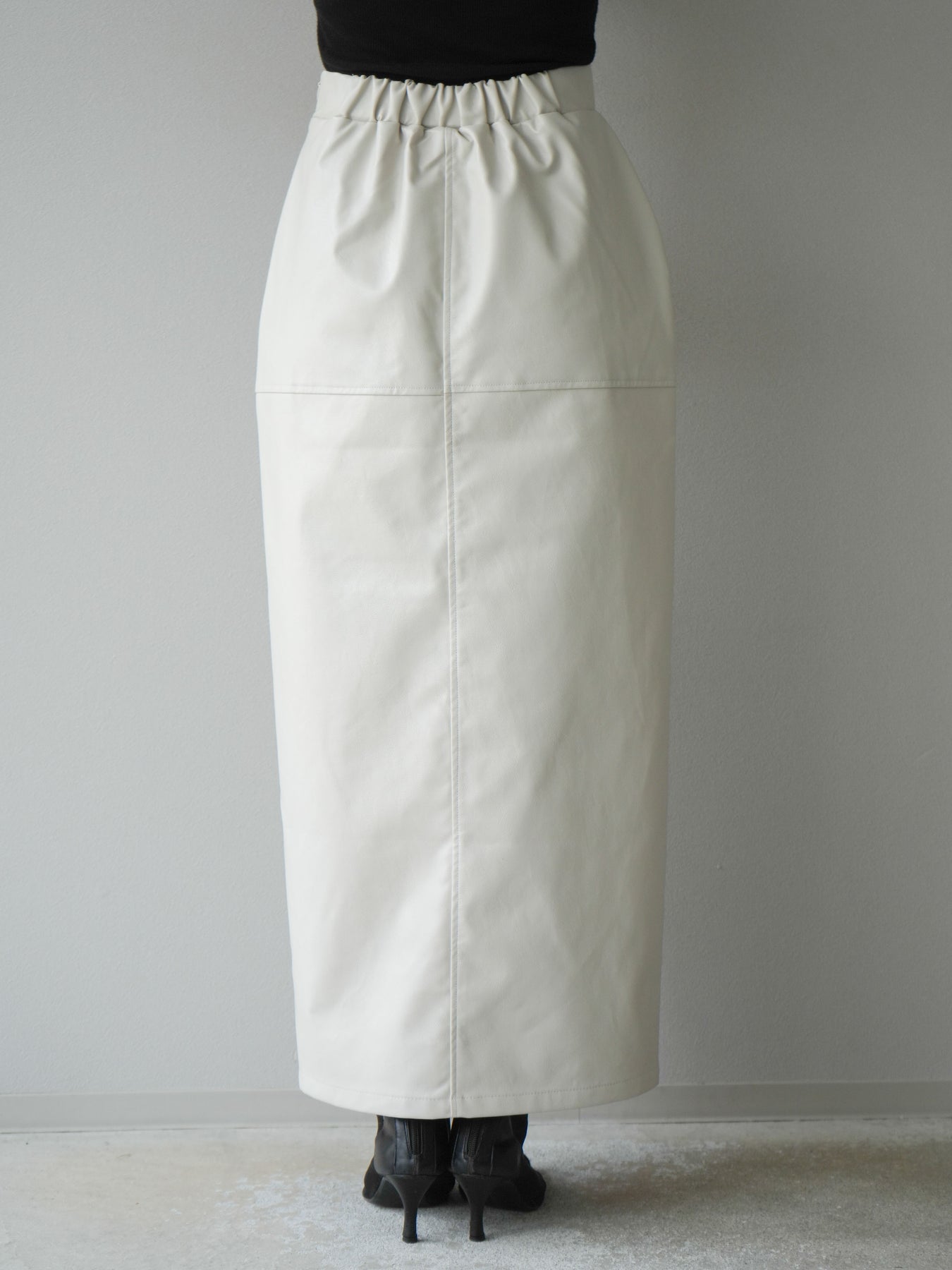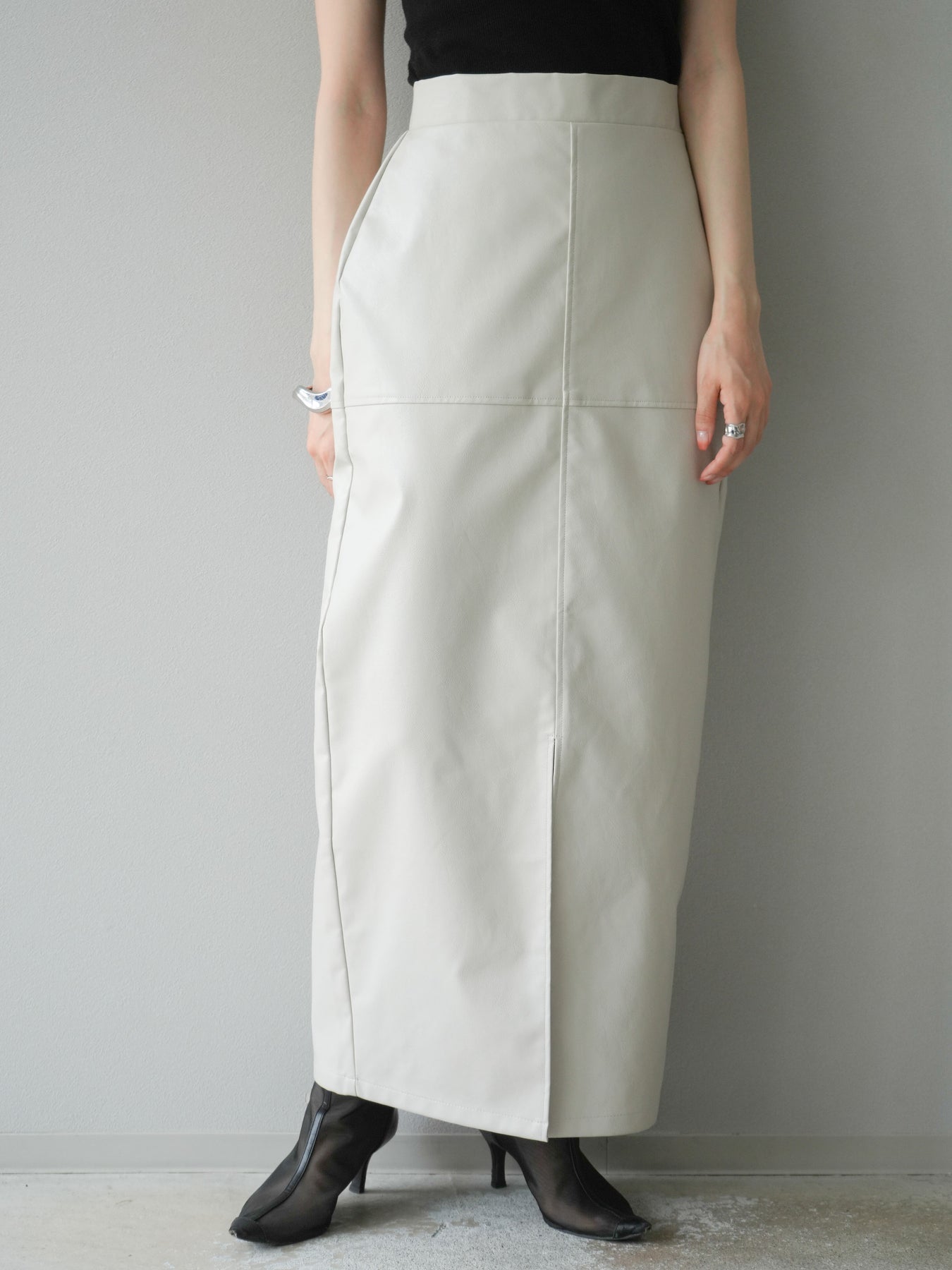 [予約]フェイクレザーフロントスリットスカート/エクリュ