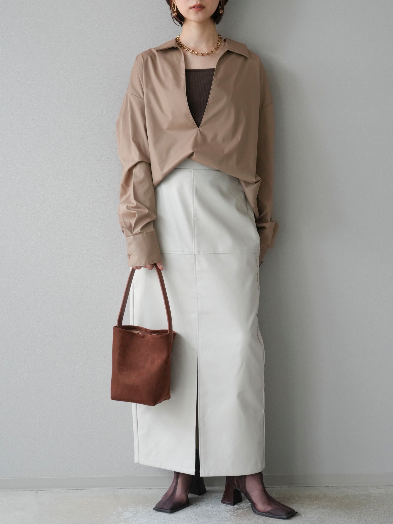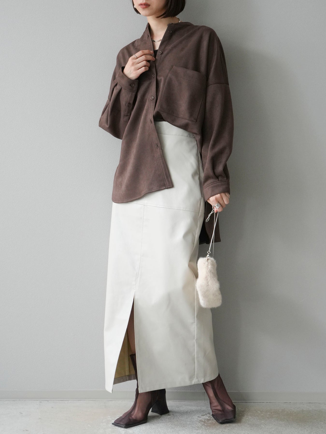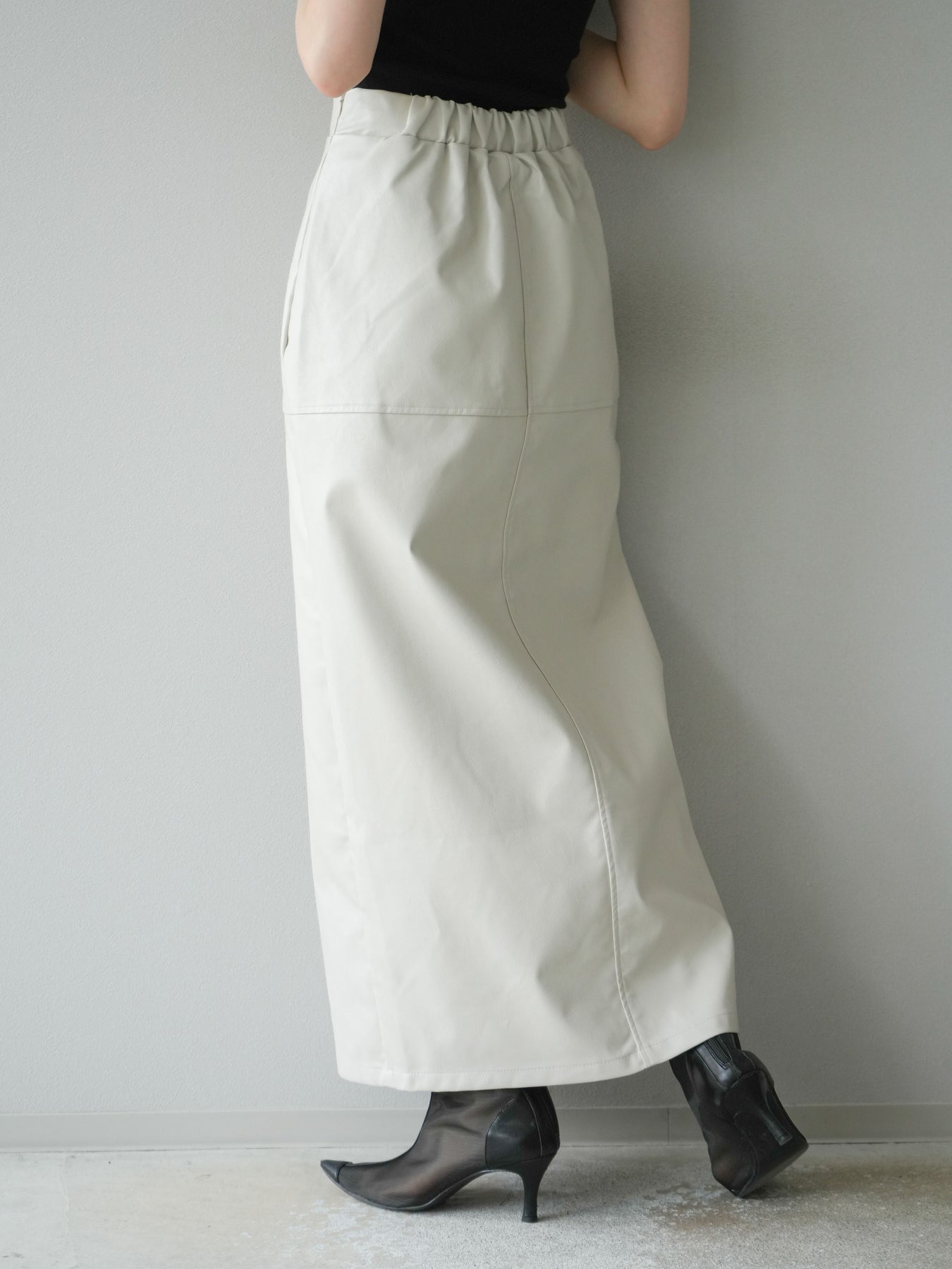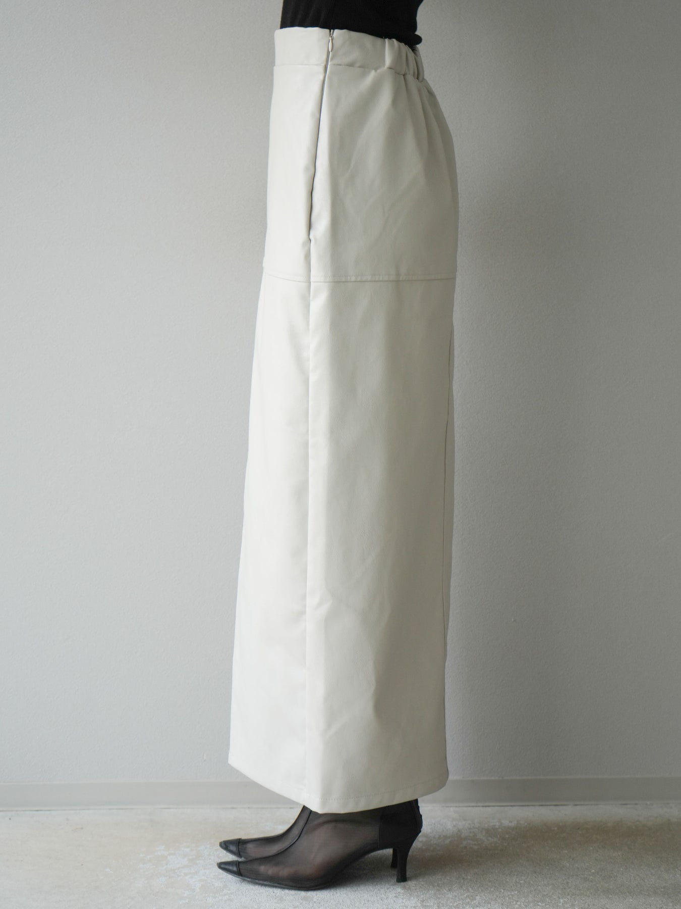 [予約]フェイクレザーフロントスリットスカート/エクリュ