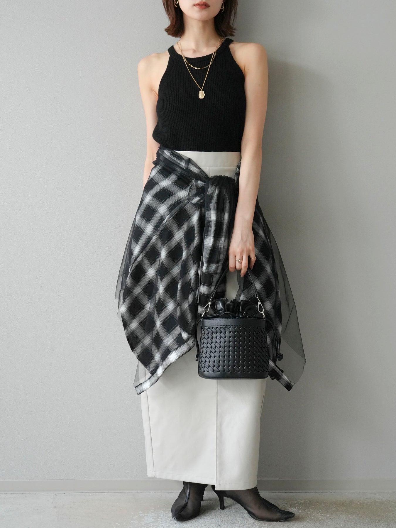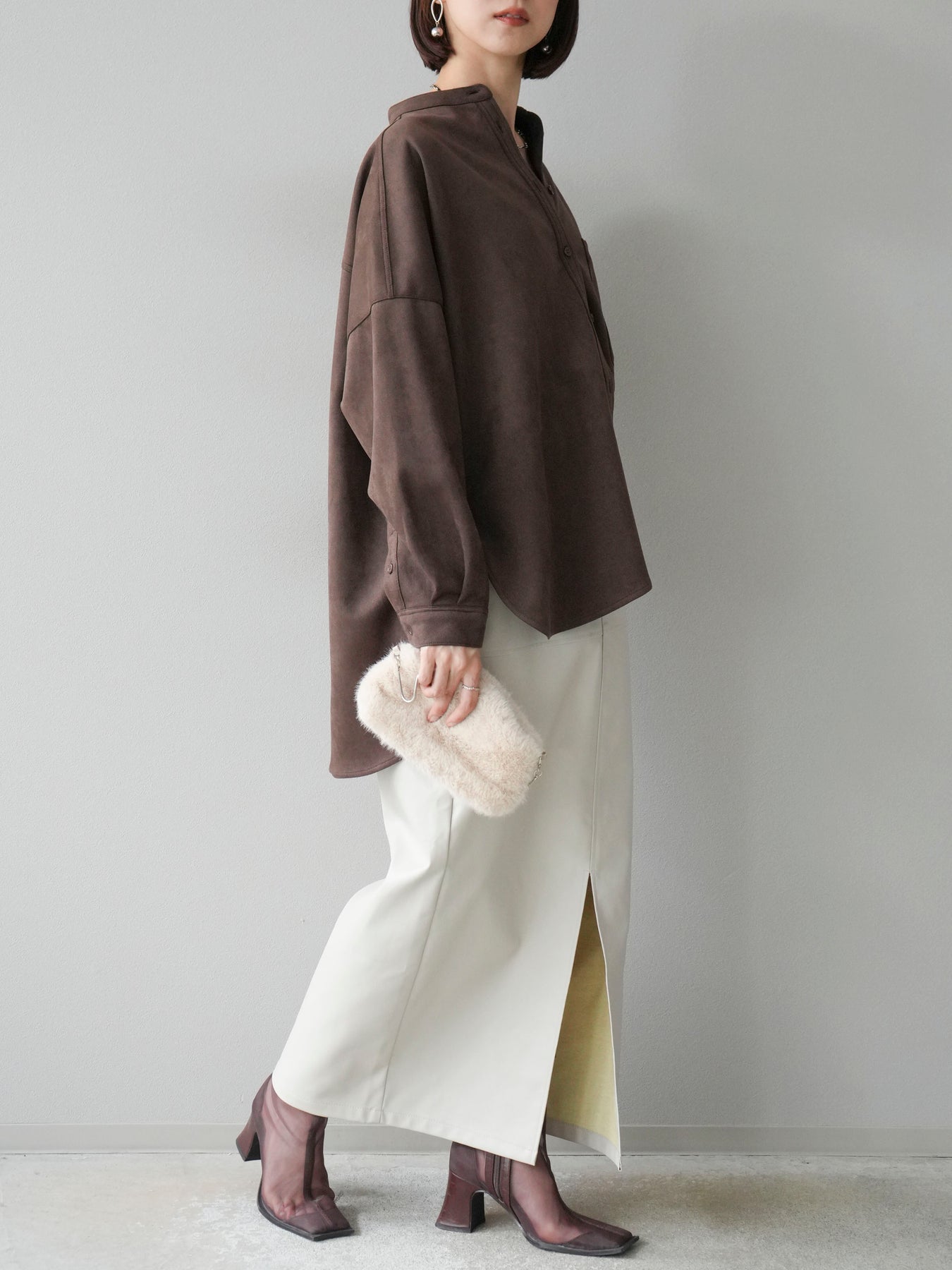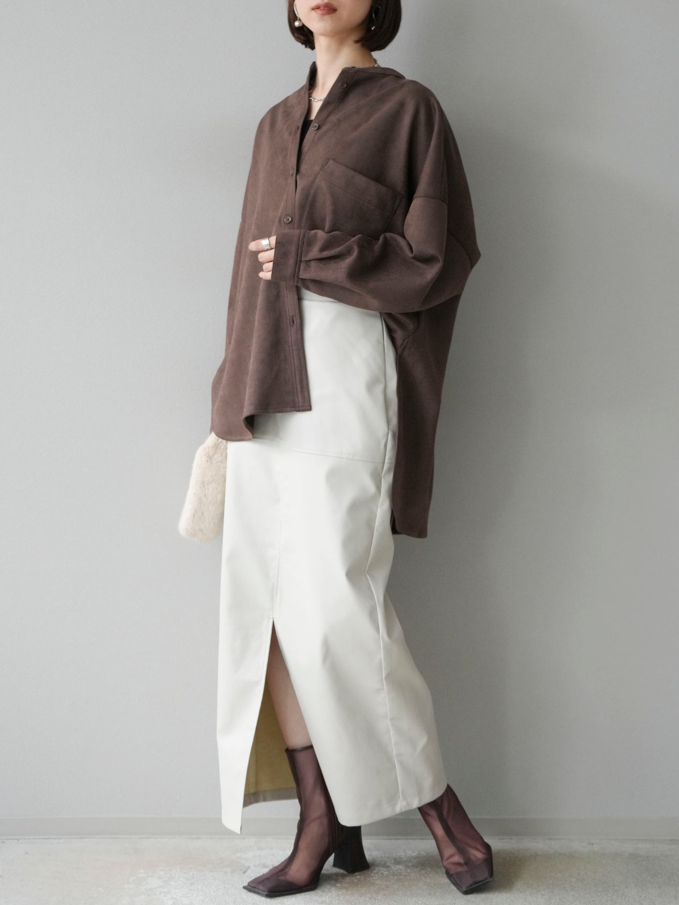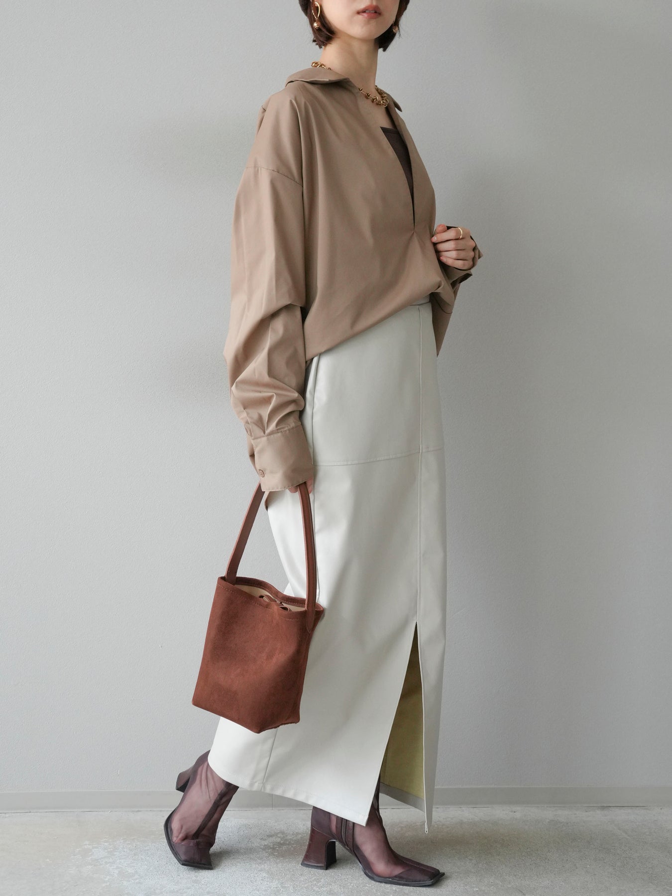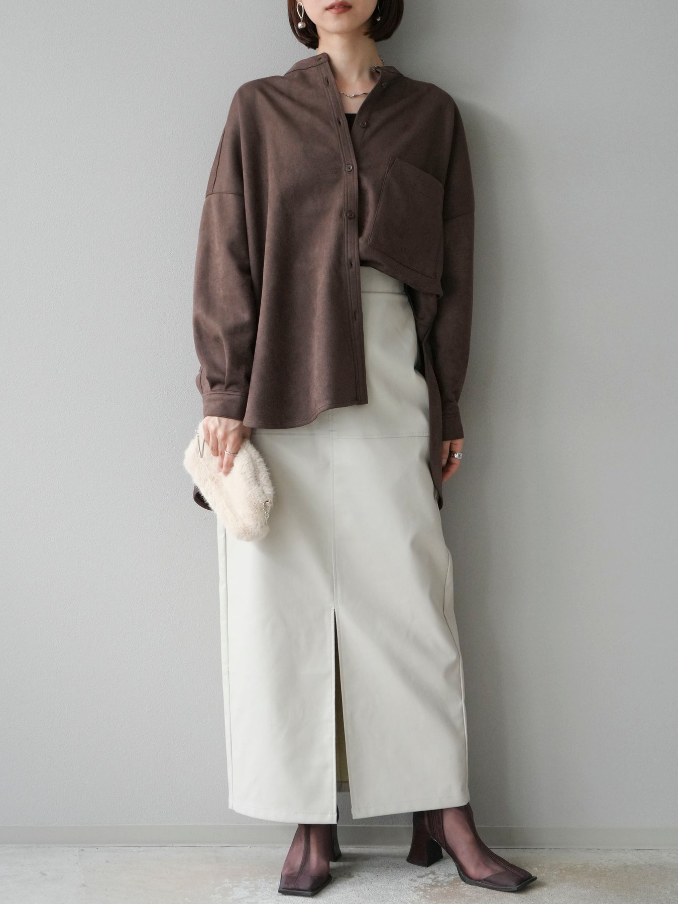 [予約]フェイクレザーフロントスリットスカート/エクリュ