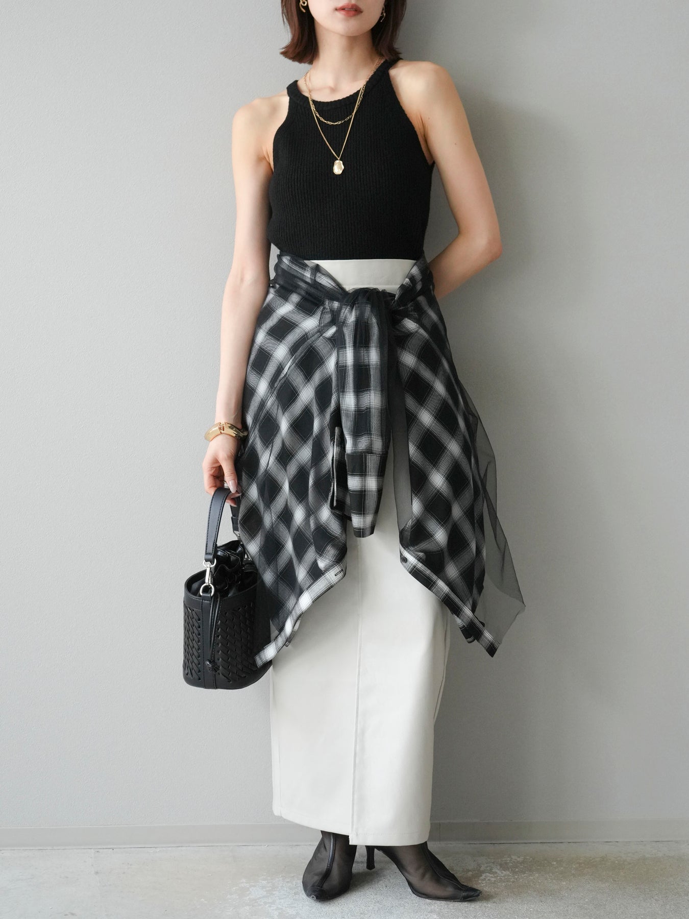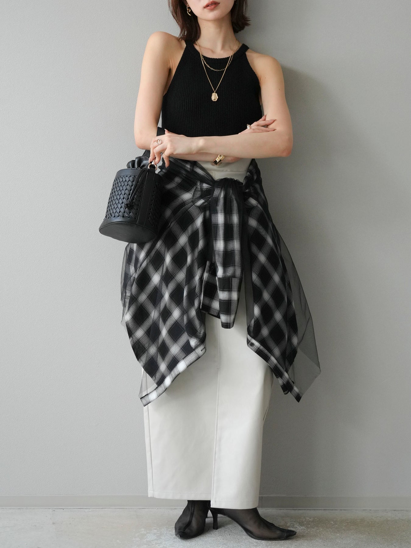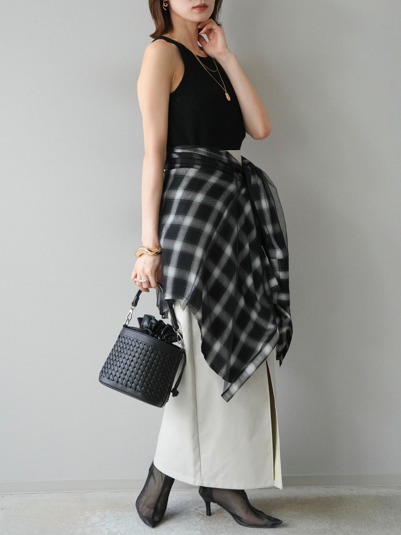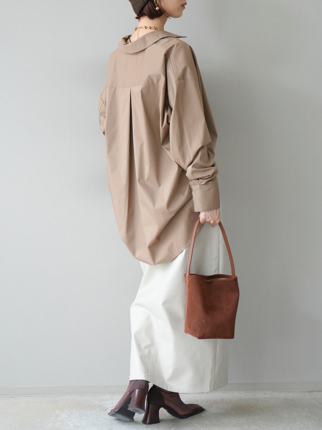 [予約]フェイクレザーフロントスリットスカート/エクリュ