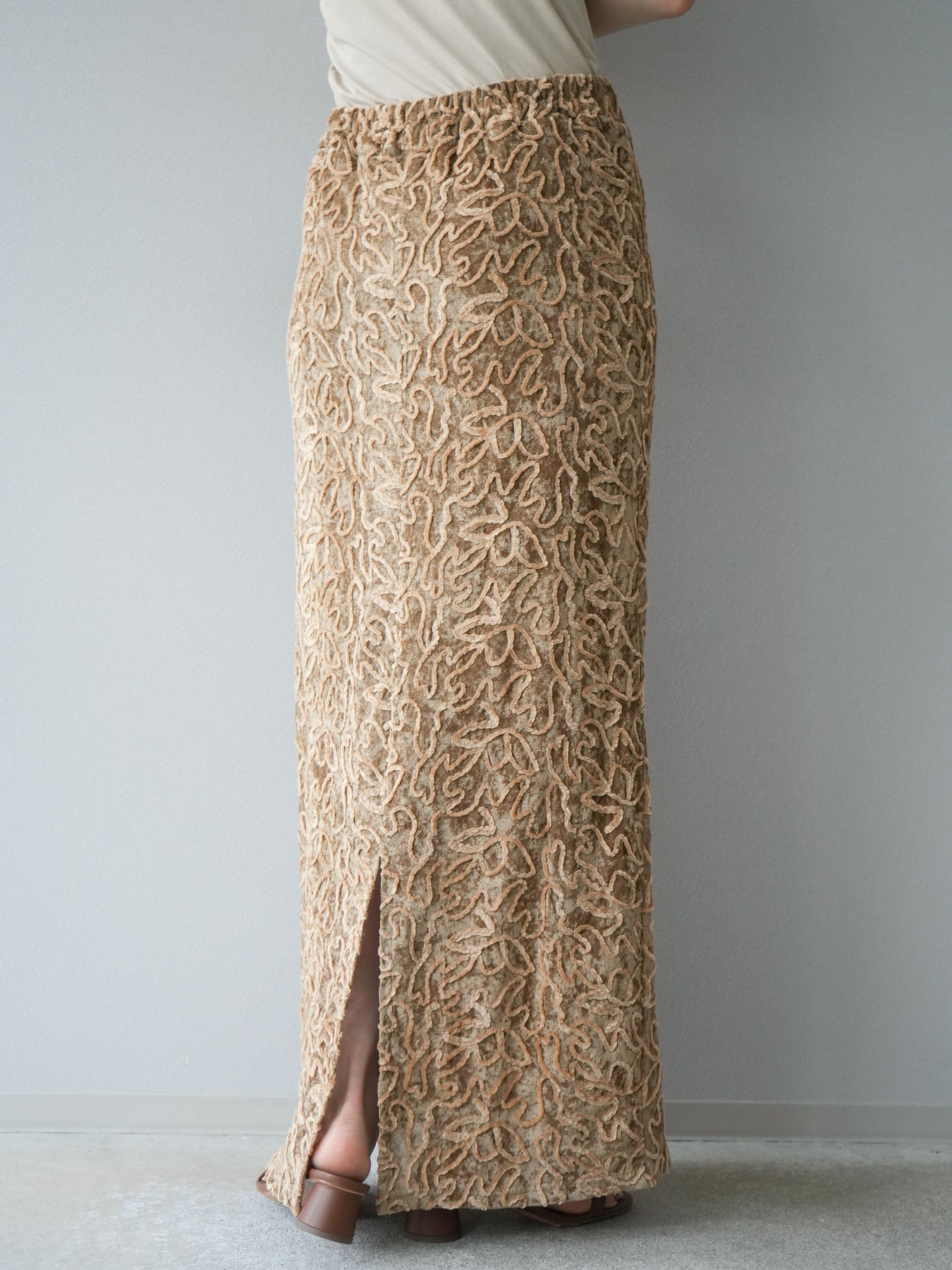[予約]パイピングフラワーシアーベロアスカート/ベージュ