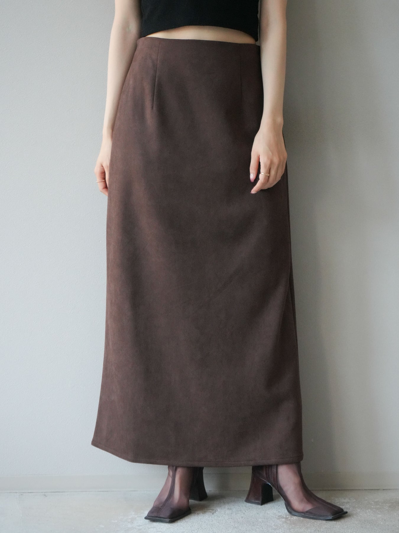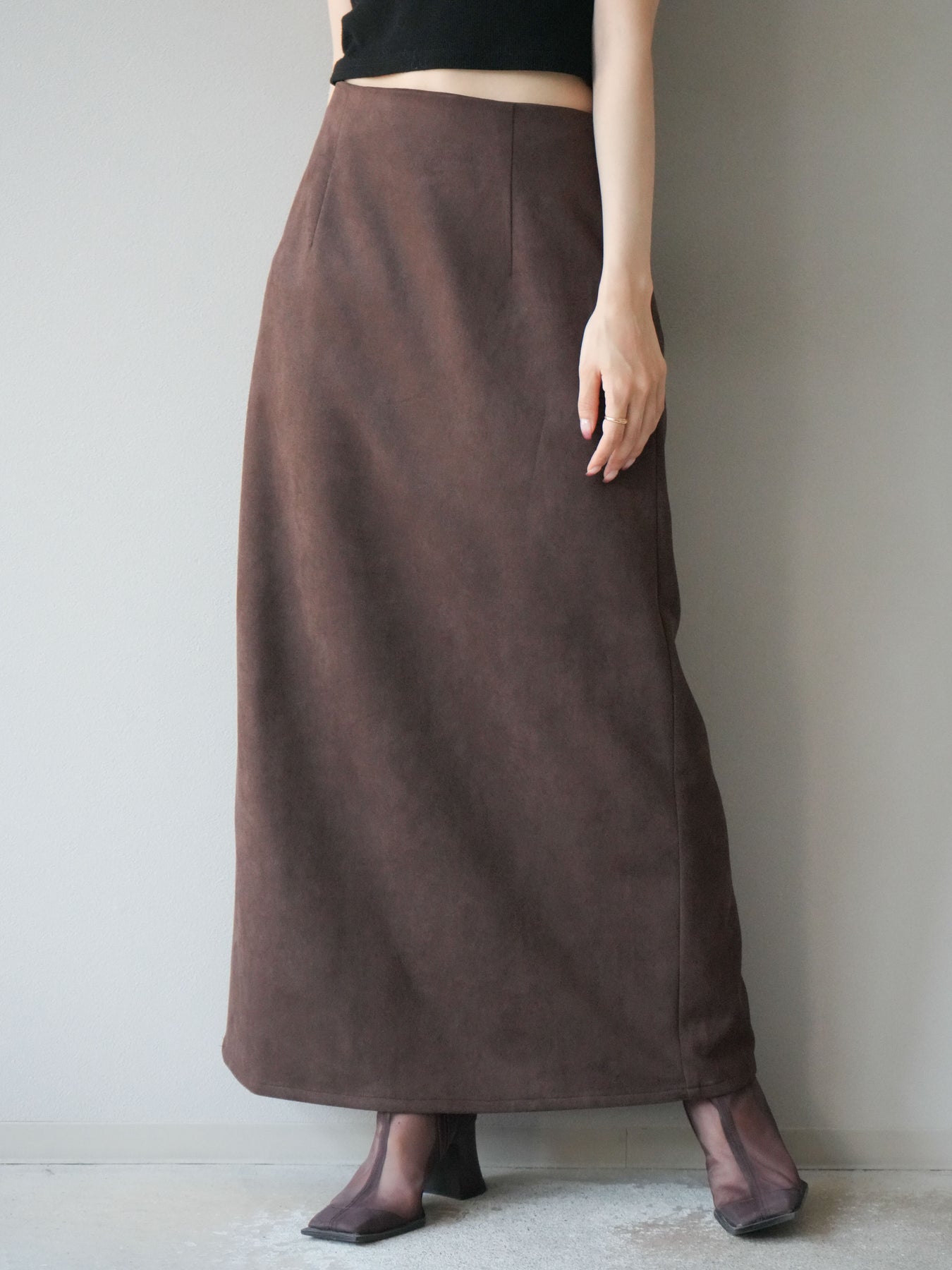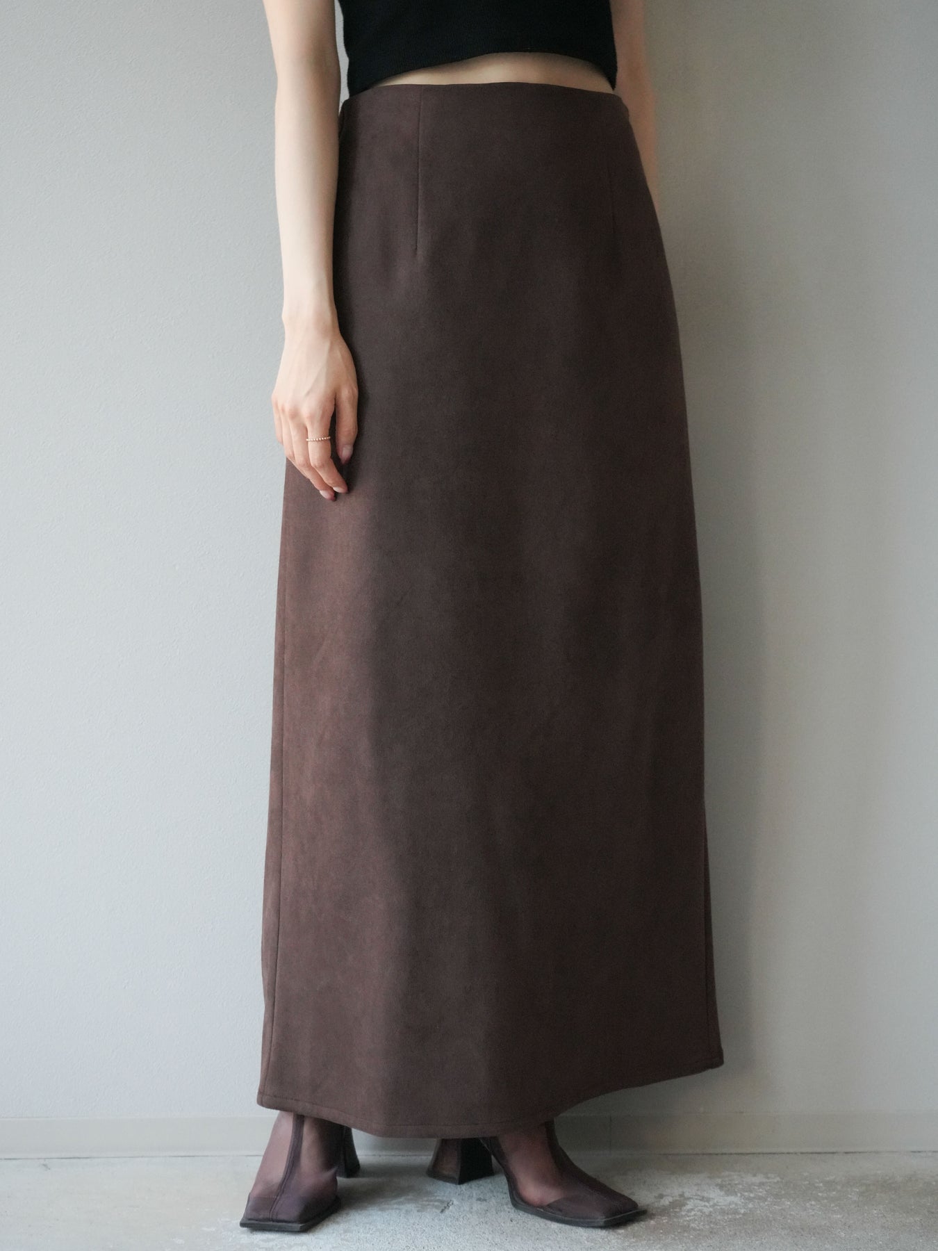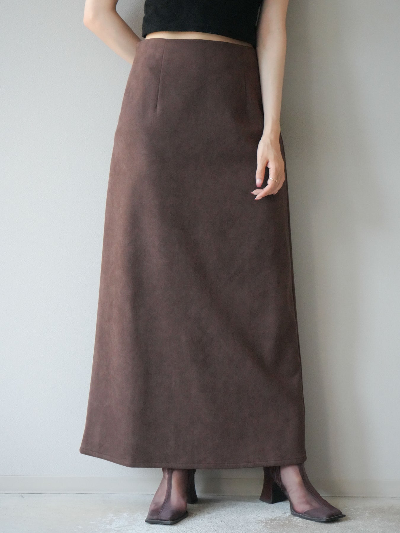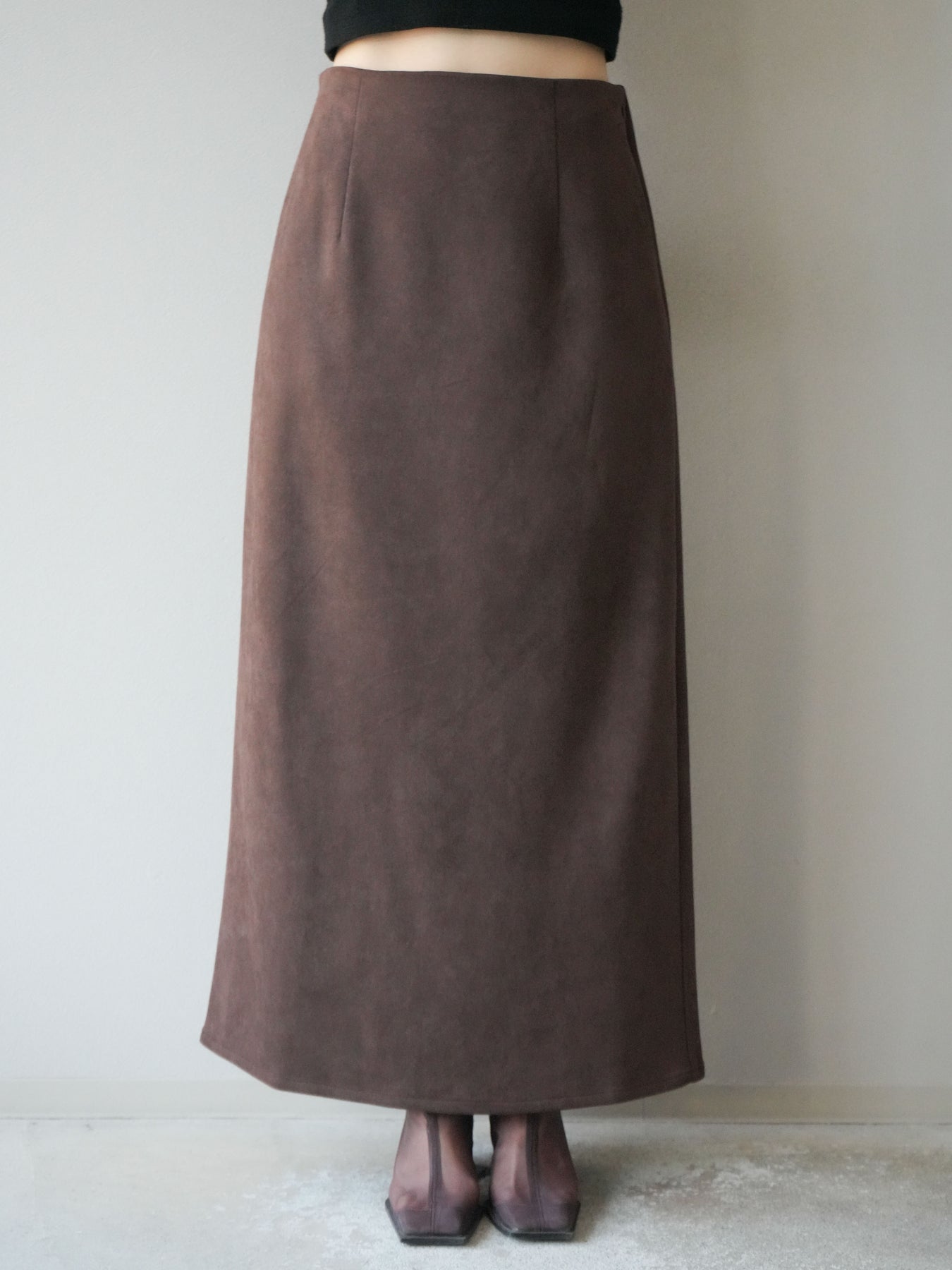 しなやかなスウェード調素材を使用したIラインスカート。シンプルながらも縦のラインを強調するシルエットで、スタイルアップ効果を叶えてくれる一着です。程よく厚みのある生地感がシーズンムードを高めつつ、柔らかさも兼ね備えているため快適な穿き心地を実現。ニットやブラウスを合わせてきれいめに、カジュアルなトップスと合わせればデイリーにも活躍できる万能アイテムです。足元のコーディネート次第で雰囲気を変えられるのも魅力。