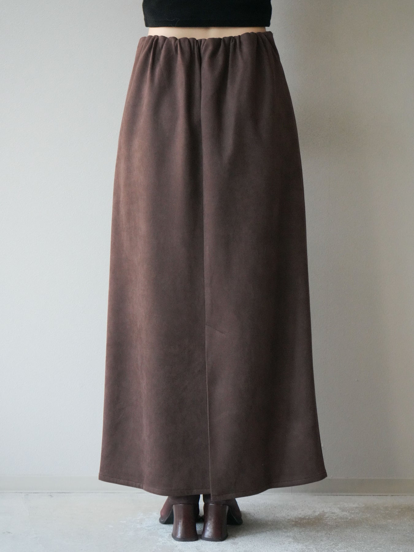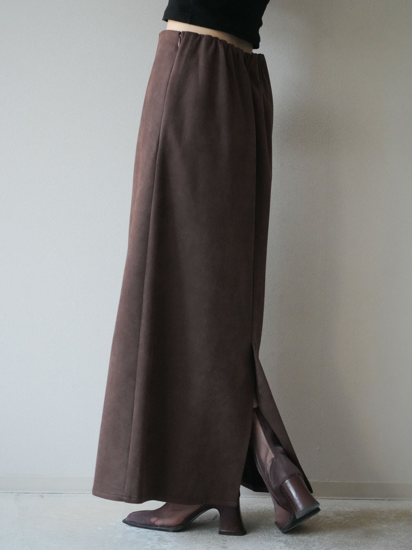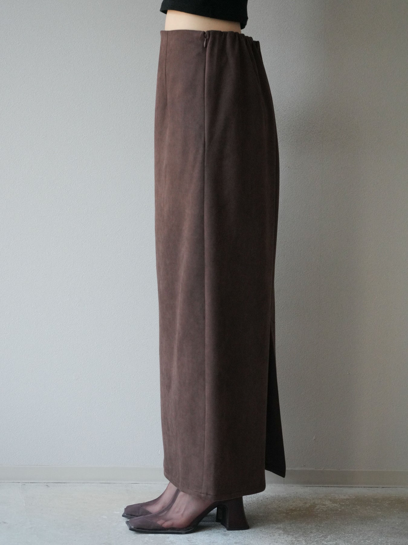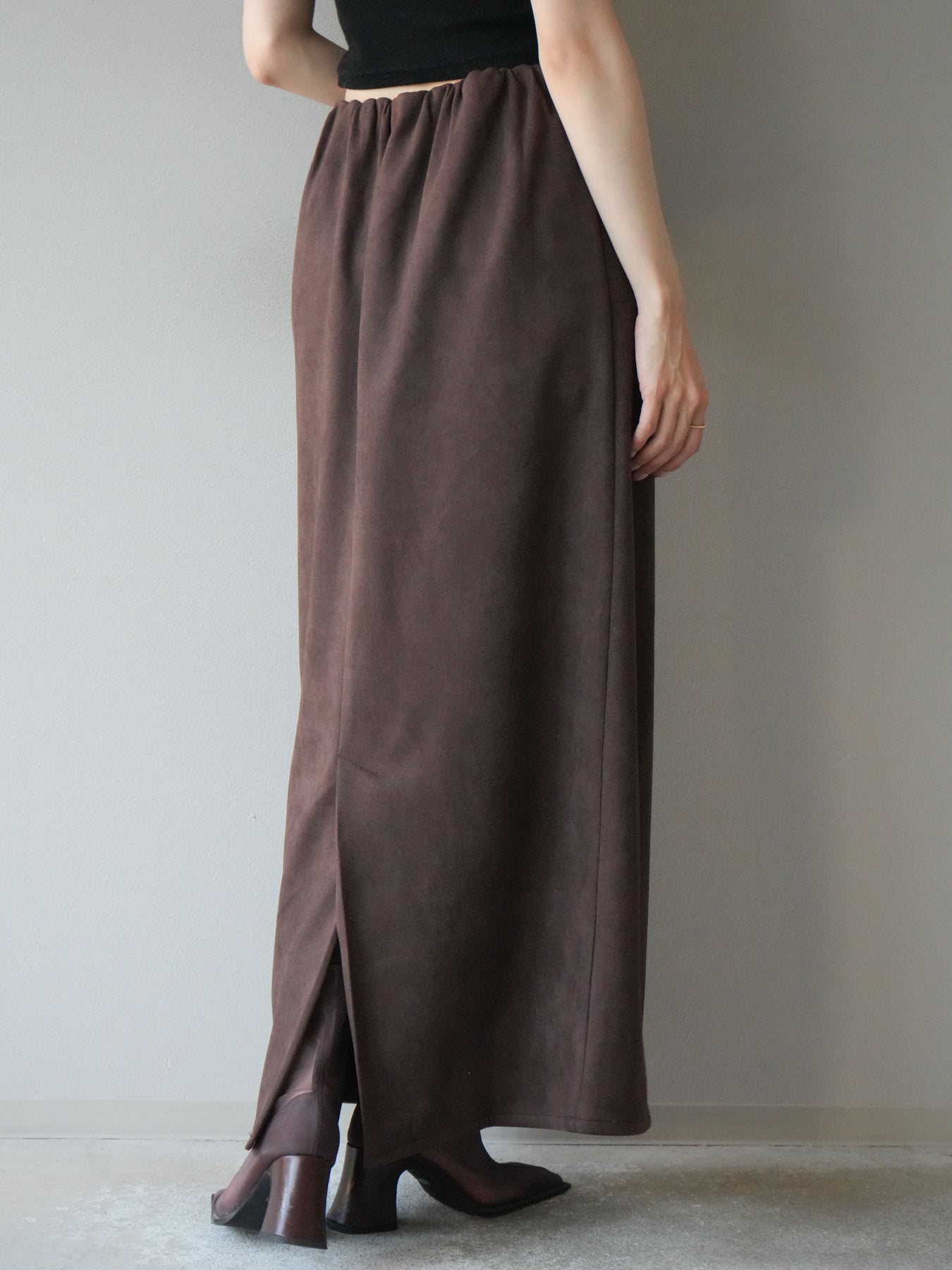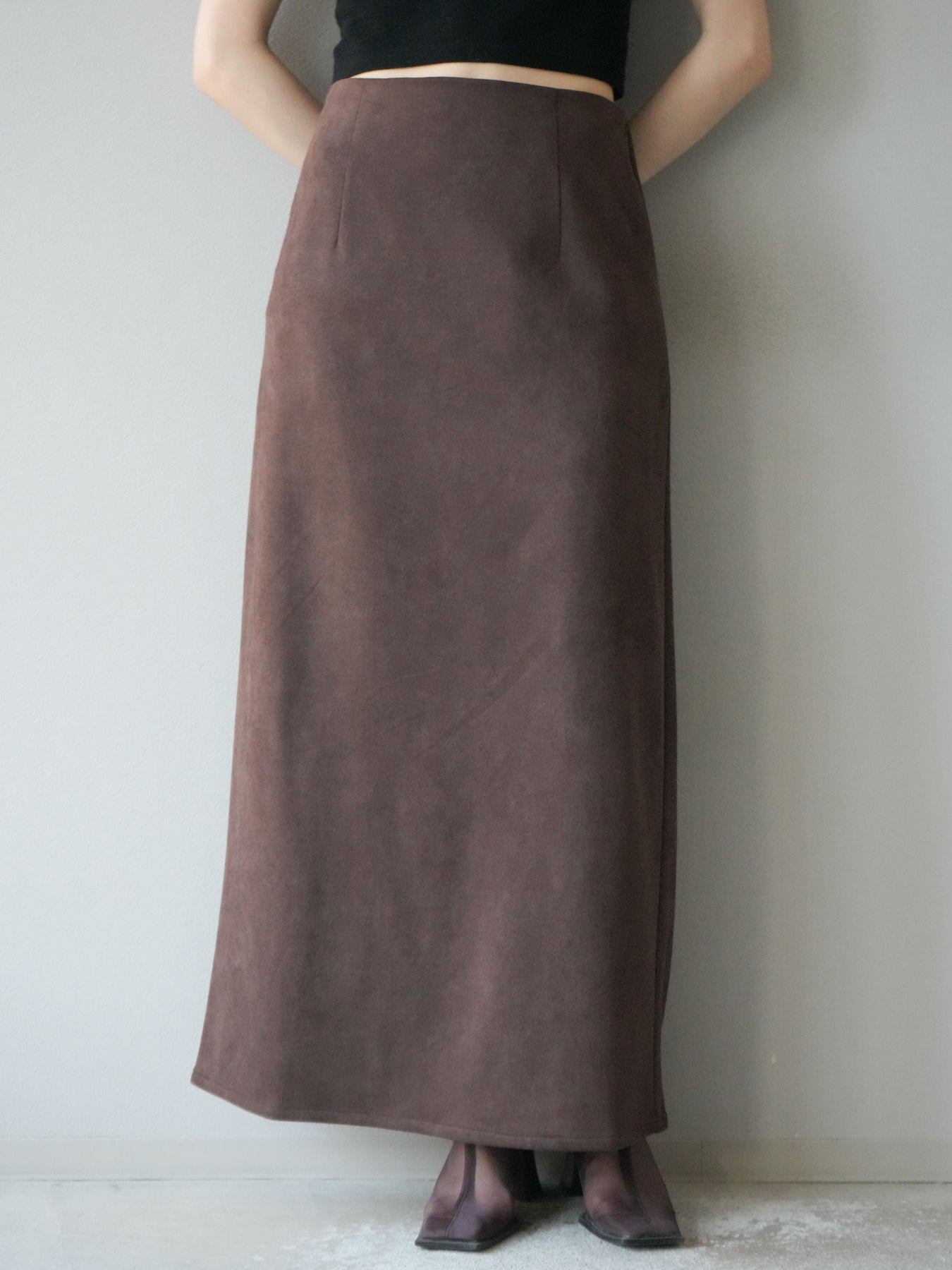 しなやかなスウェード調素材を使用したIラインスカート。シンプルながらも縦のラインを強調するシルエットで、スタイルアップ効果を叶えてくれる一着です。程よく厚みのある生地感がシーズンムードを高めつつ、柔らかさも兼ね備えているため快適な穿き心地を実現。ニットやブラウスを合わせてきれいめに、カジュアルなトップスと合わせればデイリーにも活躍できる万能アイテムです。足元のコーディネート次第で雰囲気を変えられるのも魅力。