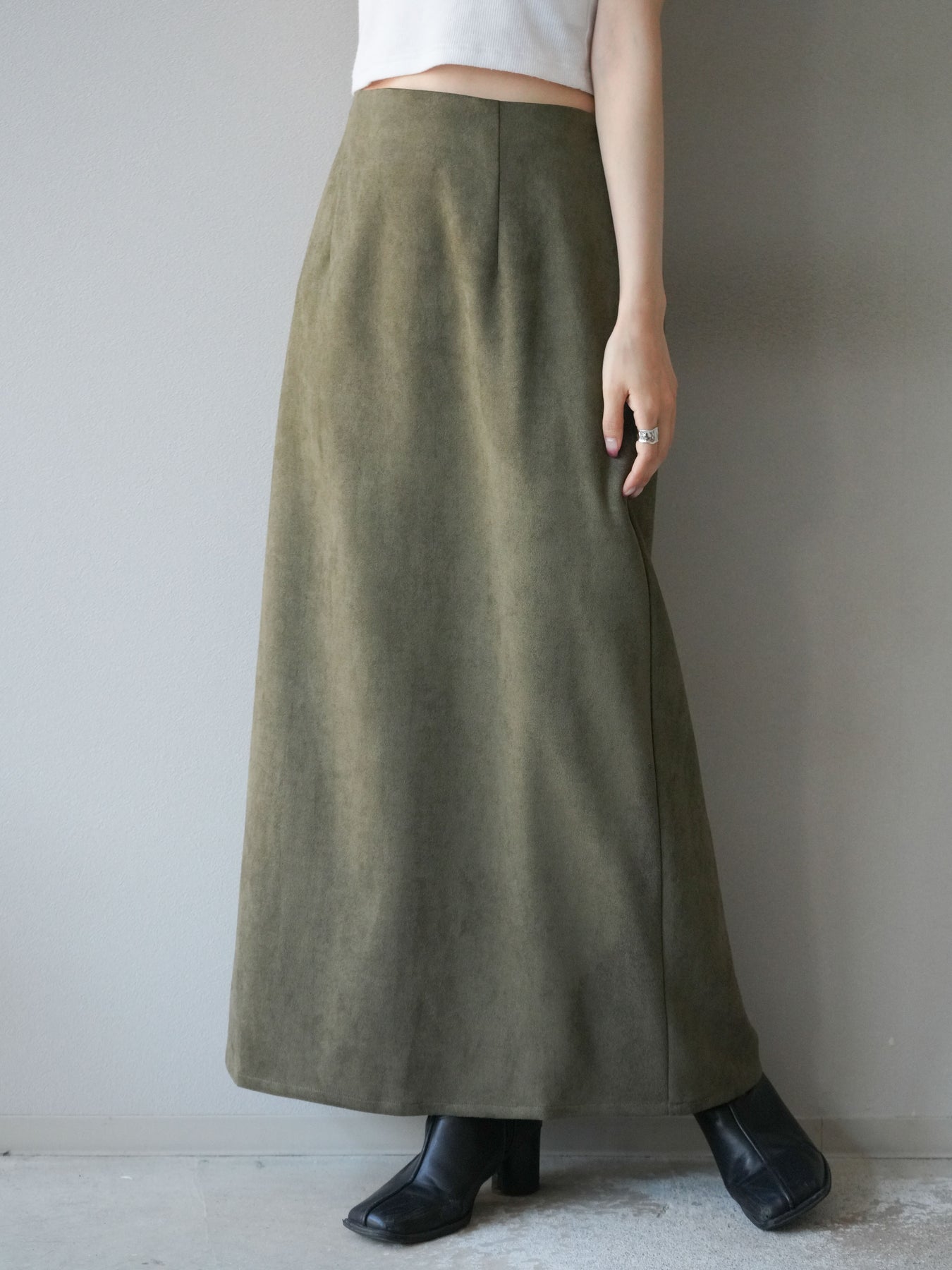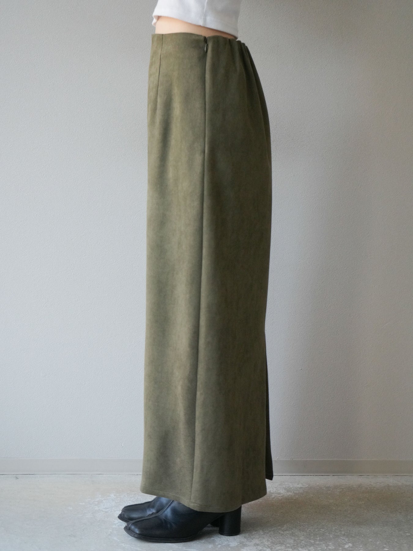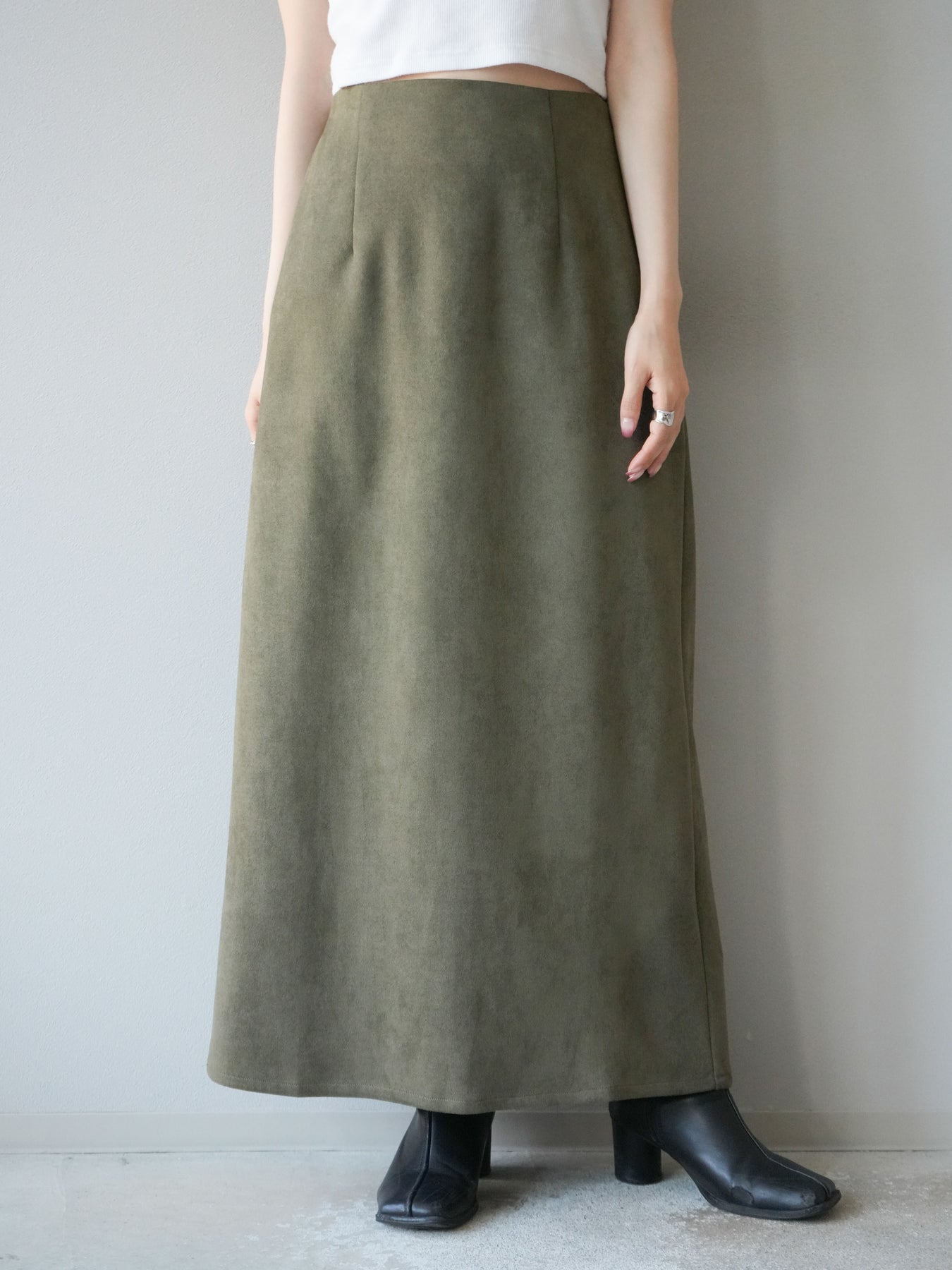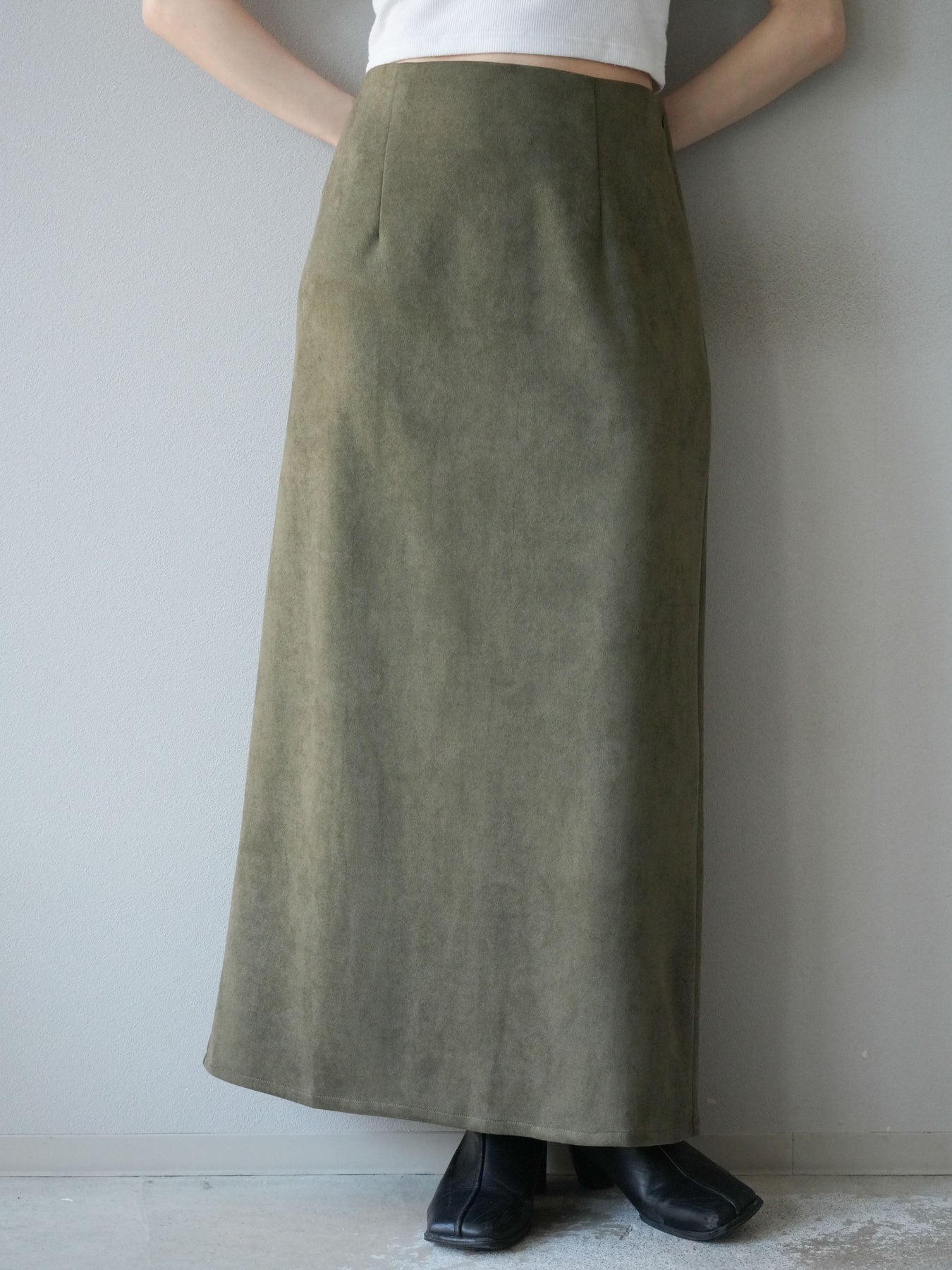 しなやかなスウェード調素材を使用したIラインスカート。シンプルながらも縦のラインを強調するシルエットで、スタイルアップ効果を叶えてくれる一着です。程よく厚みのある生地感がシーズンムードを高めつつ、柔らかさも兼ね備えているため快適な穿き心地を実現。ニットやブラウスを合わせてきれいめに、カジュアルなトップスと合わせればデイリーにも活躍できる万能アイテムです。足元のコーディネート次第で雰囲気を変えられるのも魅力。