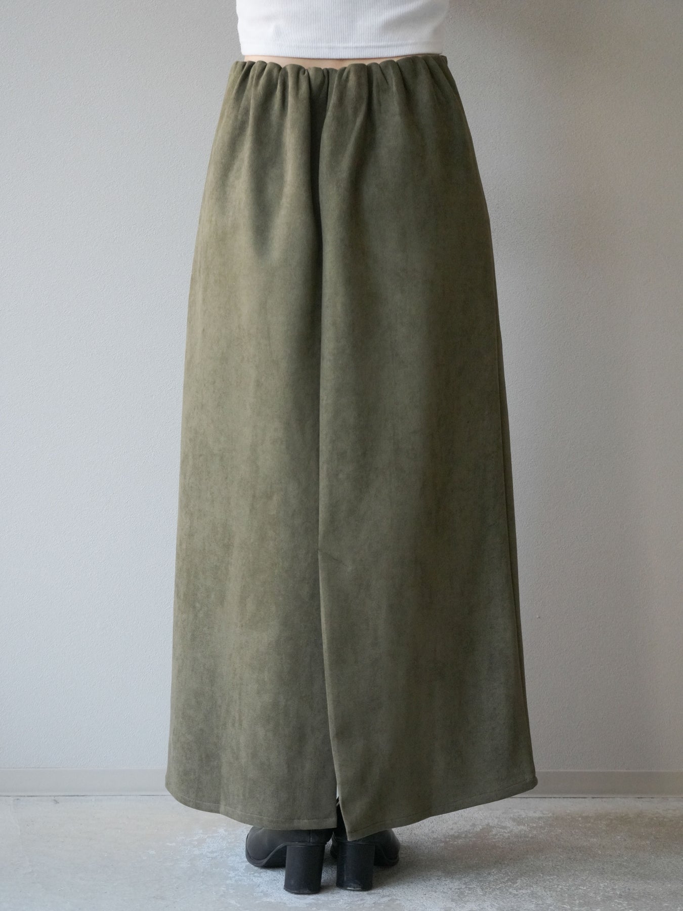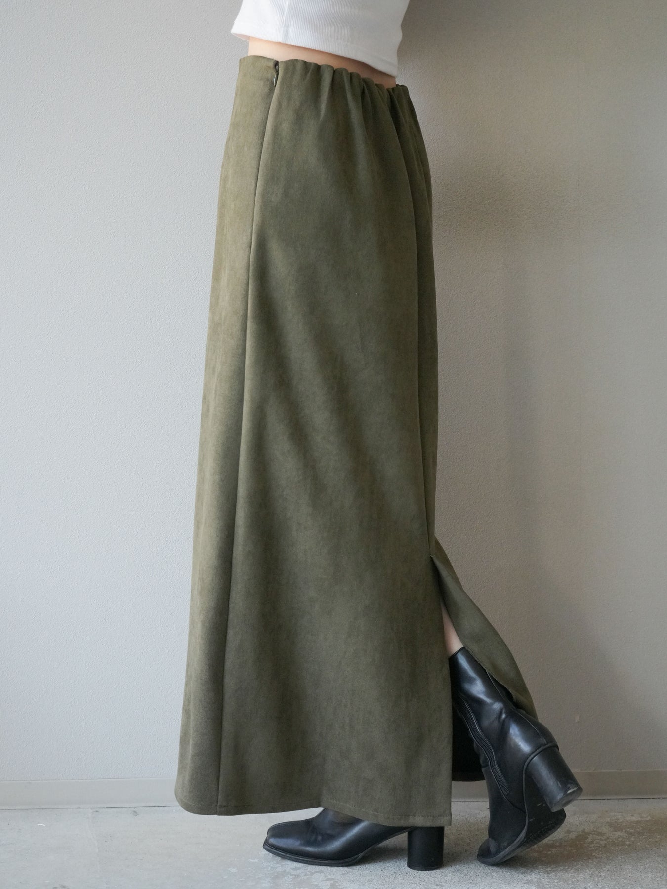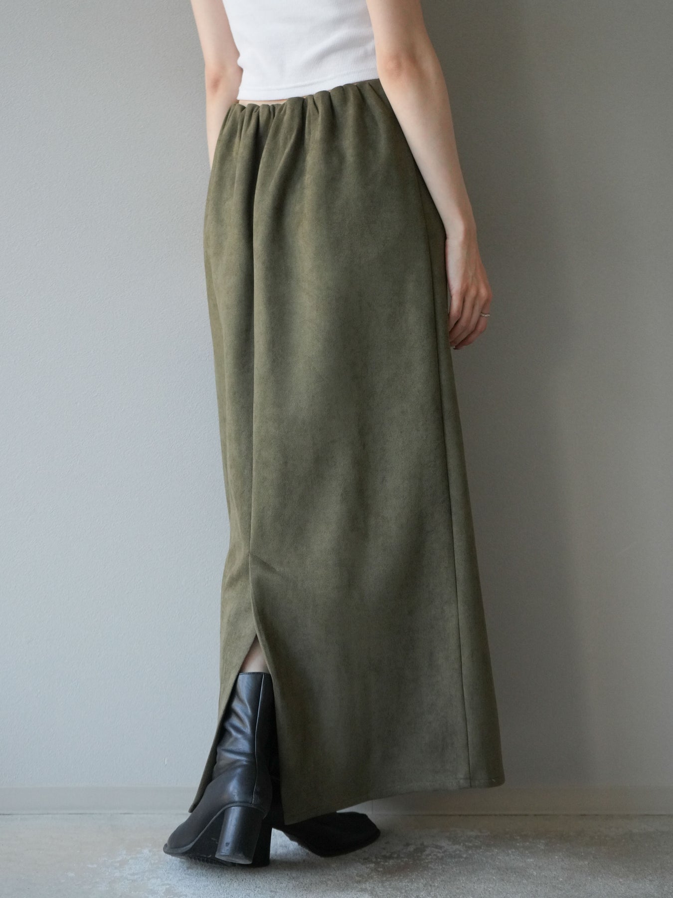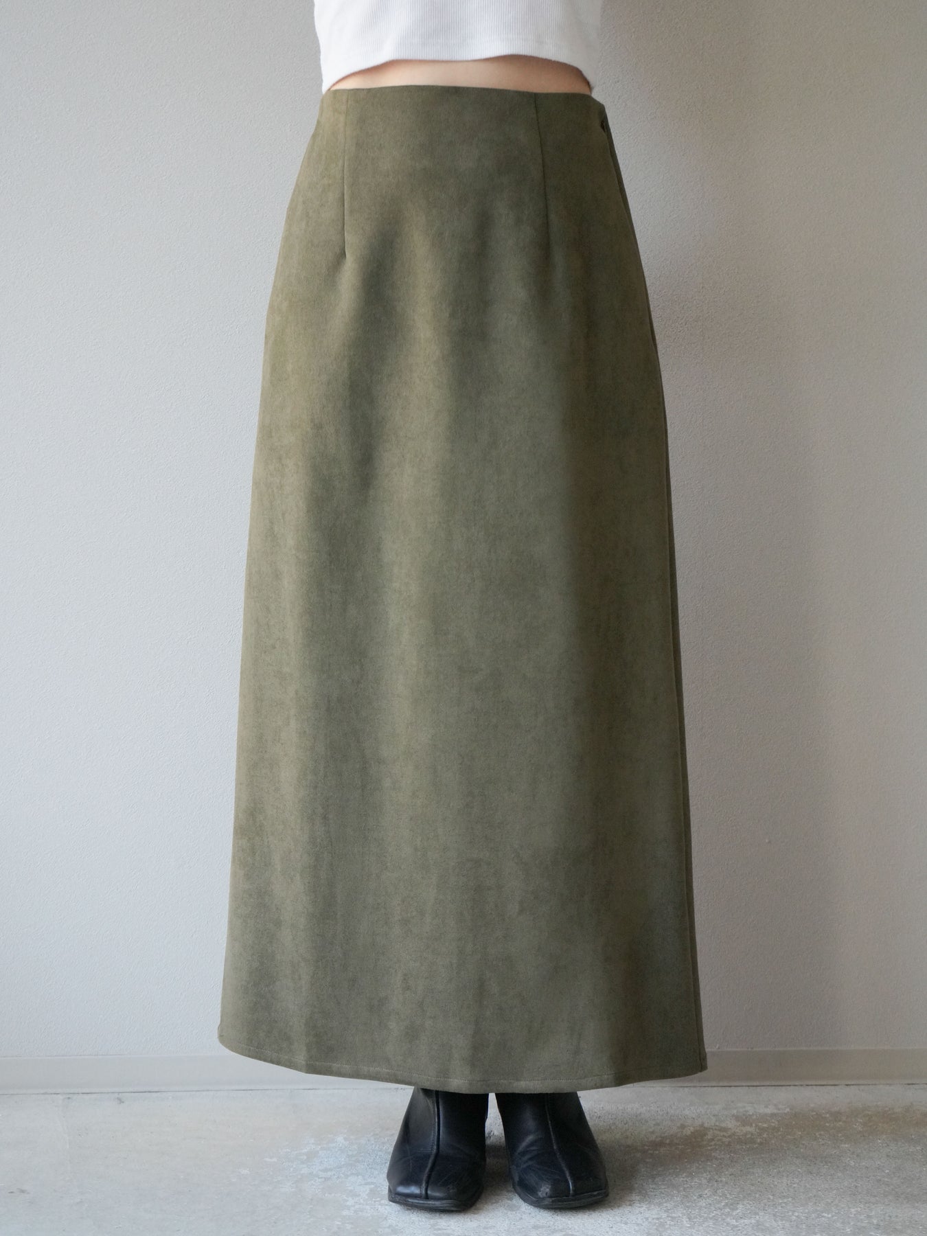 しなやかなスウェード調素材を使用したIラインスカート。シンプルながらも縦のラインを強調するシルエットで、スタイルアップ効果を叶えてくれる一着です。程よく厚みのある生地感がシーズンムードを高めつつ、柔らかさも兼ね備えているため快適な穿き心地を実現。ニットやブラウスを合わせてきれいめに、カジュアルなトップスと合わせればデイリーにも活躍できる万能アイテムです。足元のコーディネート次第で雰囲気を変えられるのも魅力。