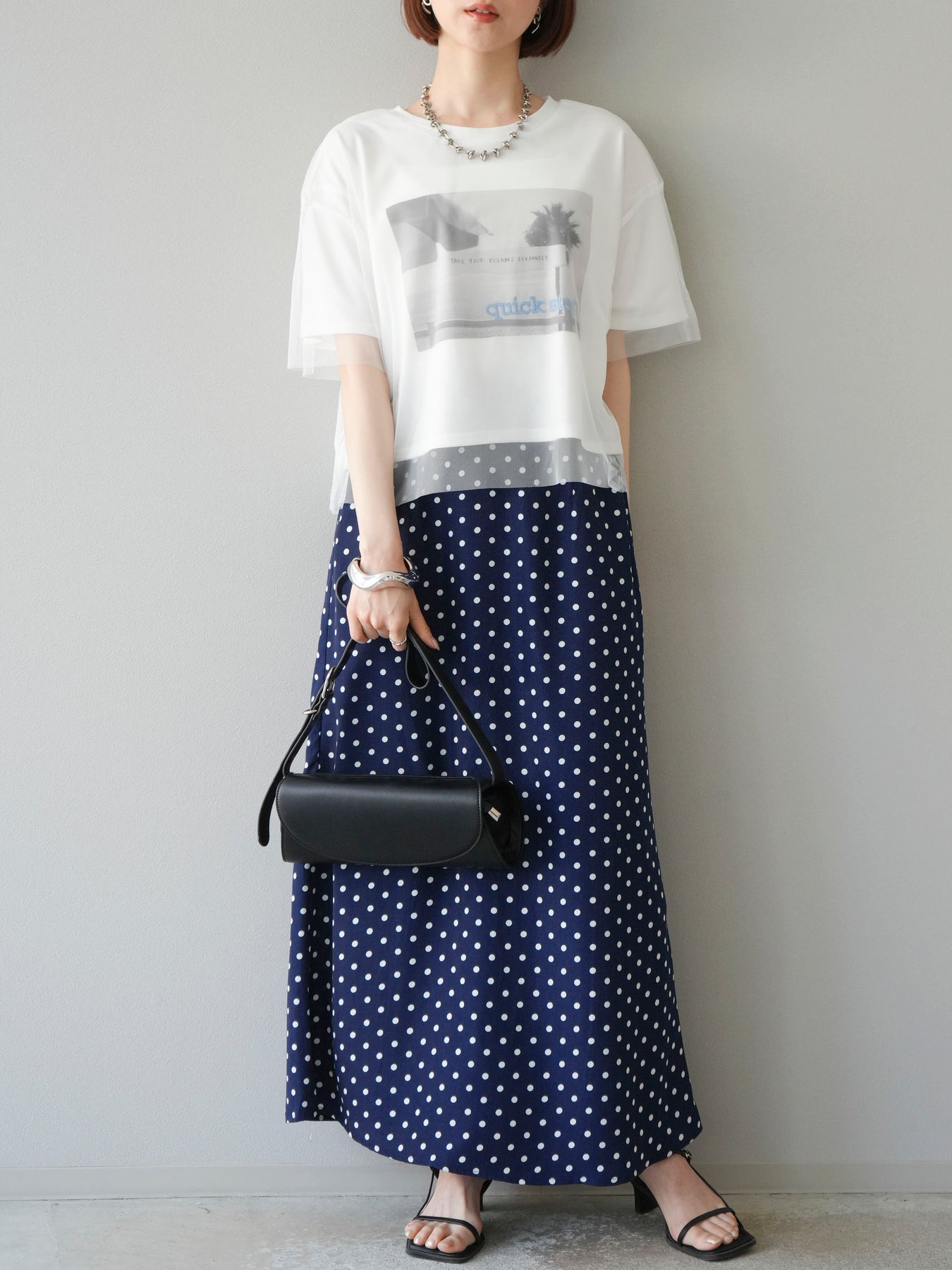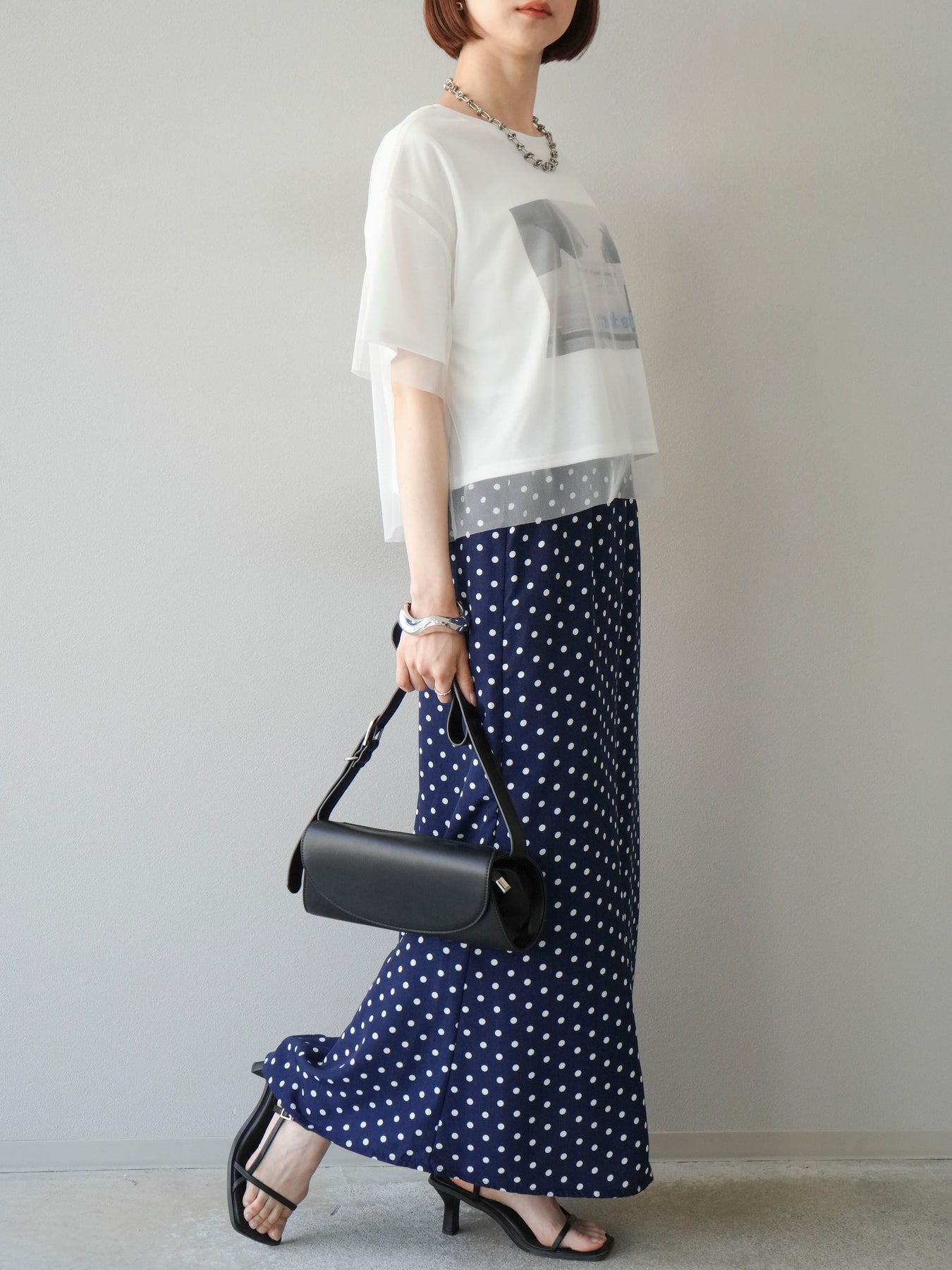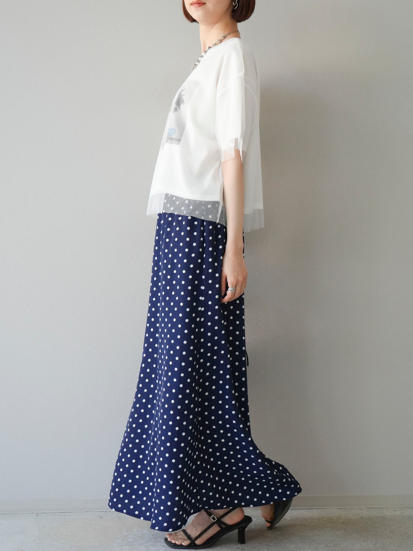 [予約]ドットAラインスカート/ネイビー