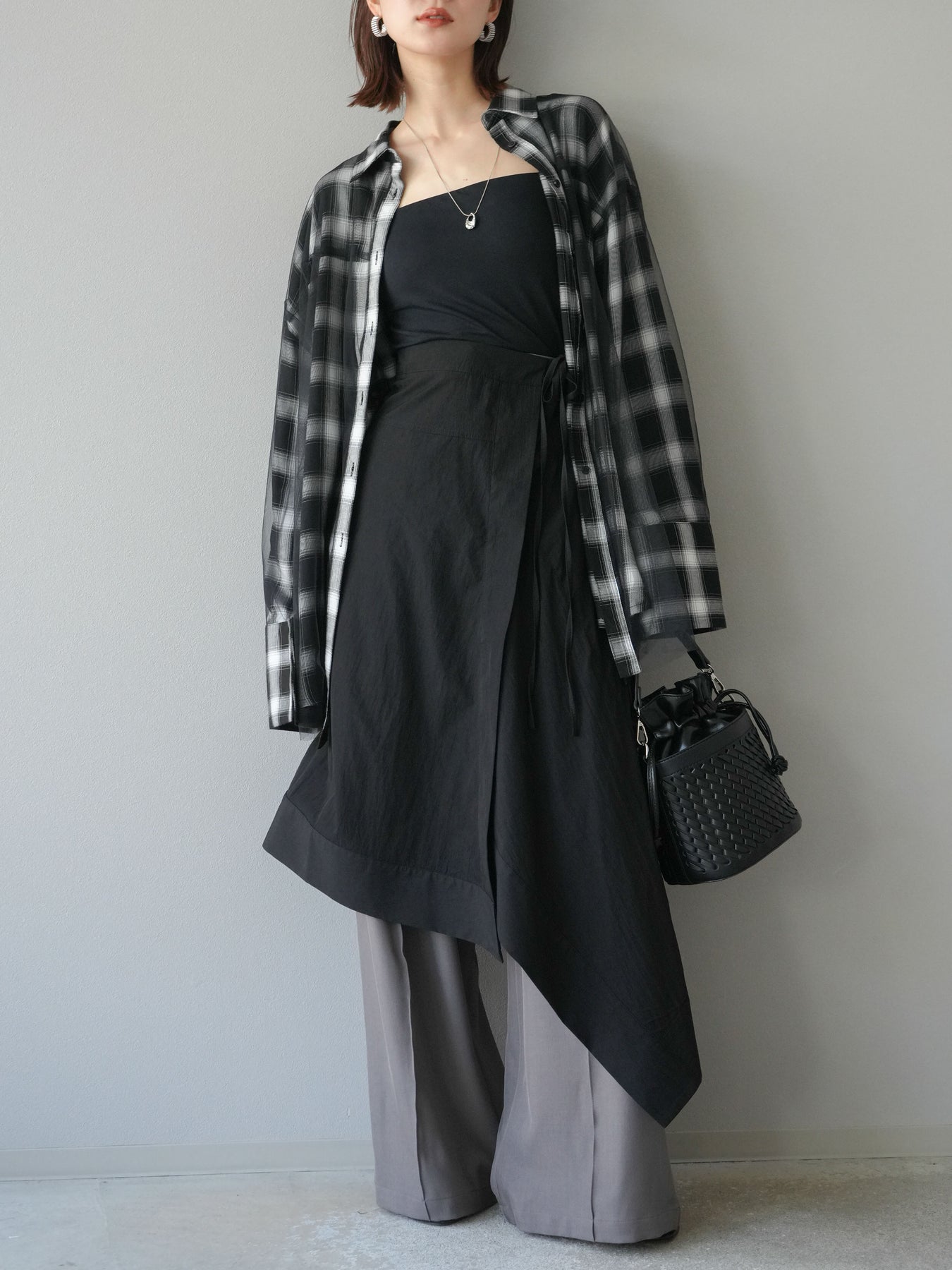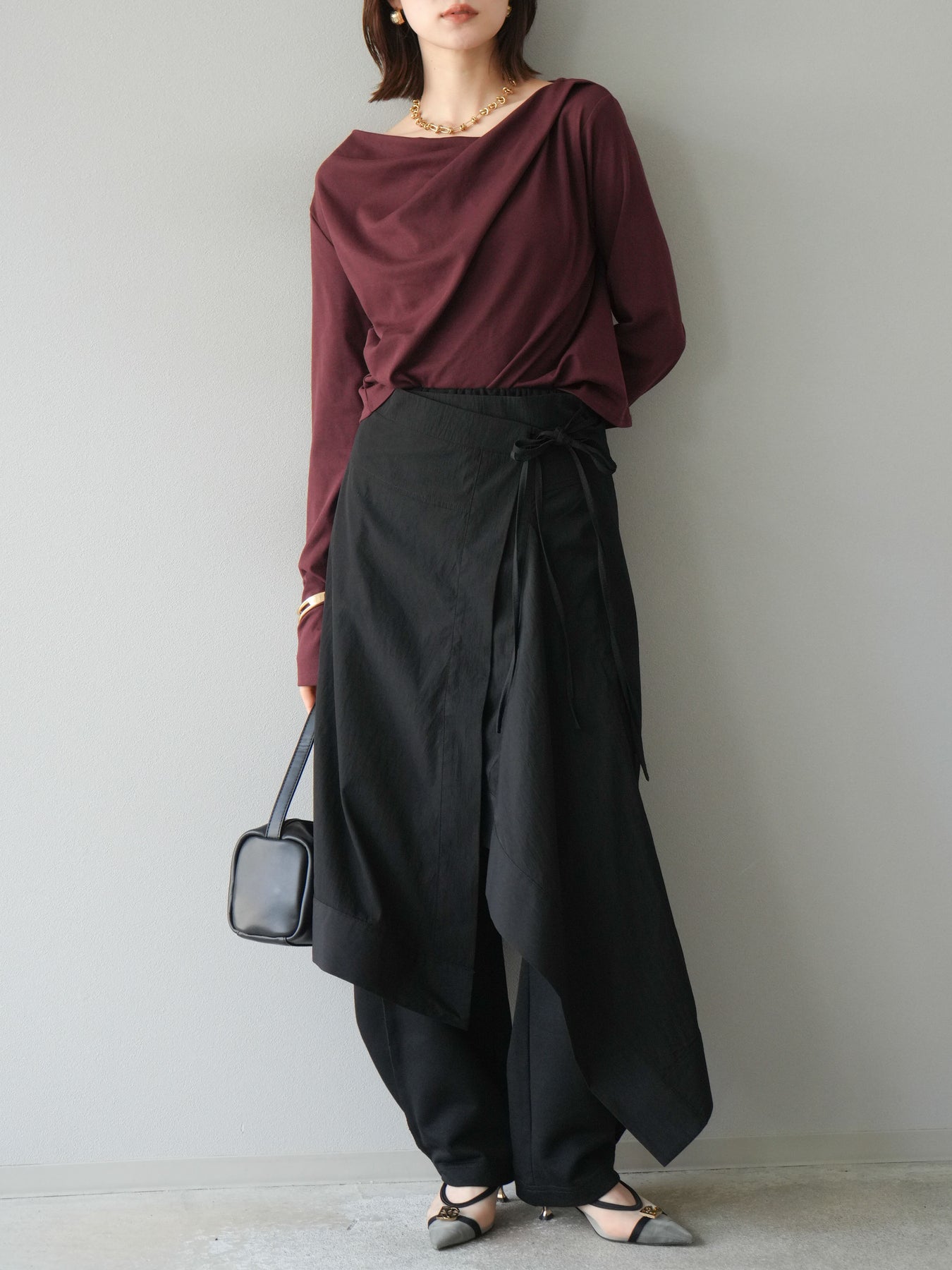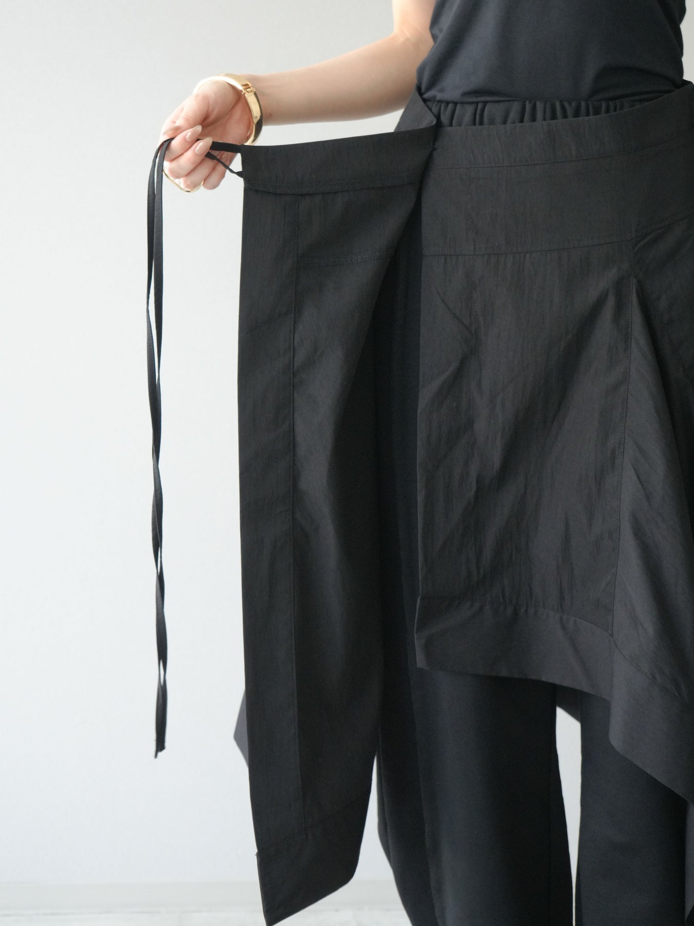 立体感のあるレイヤードデザインが特徴的なアシンメトリースカート。左右で長さやドレープに変化をつけ、動くたびに美しい揺れ感を演出します。ウエスト部分はリボンで調整でき、フィット感とデザイン性を両立。軽やかな素材感でシーズンレスに着用でき、シンプルなトップスと合わせるだけでコーディネートが決まります。 ※ボトムス、キャミソール(インナー)以外の商品は一律でインナーは付属していません