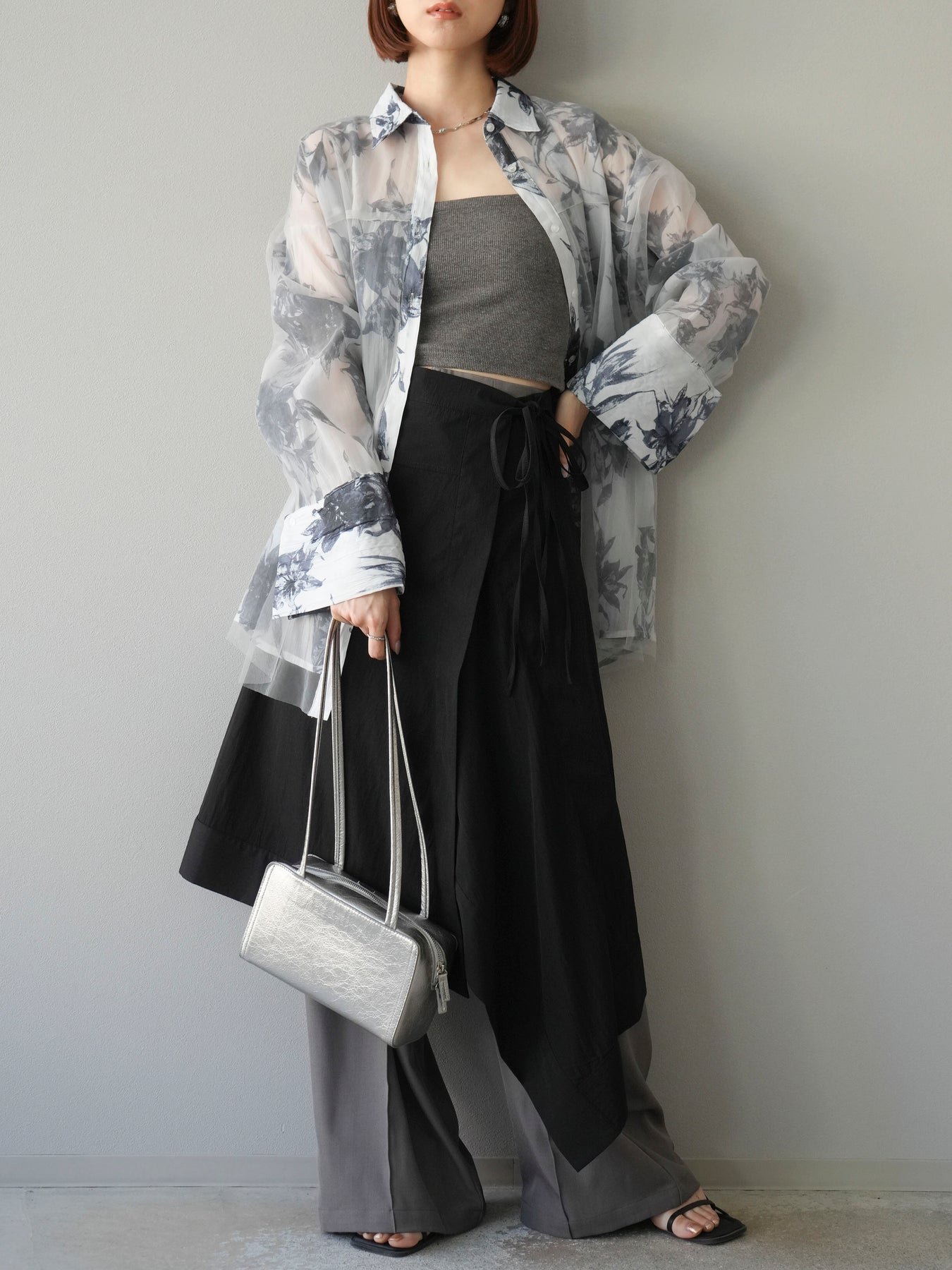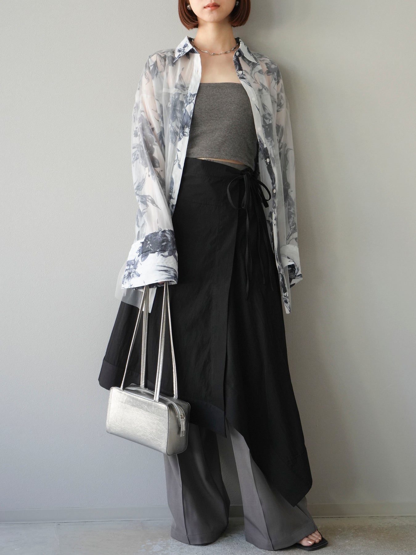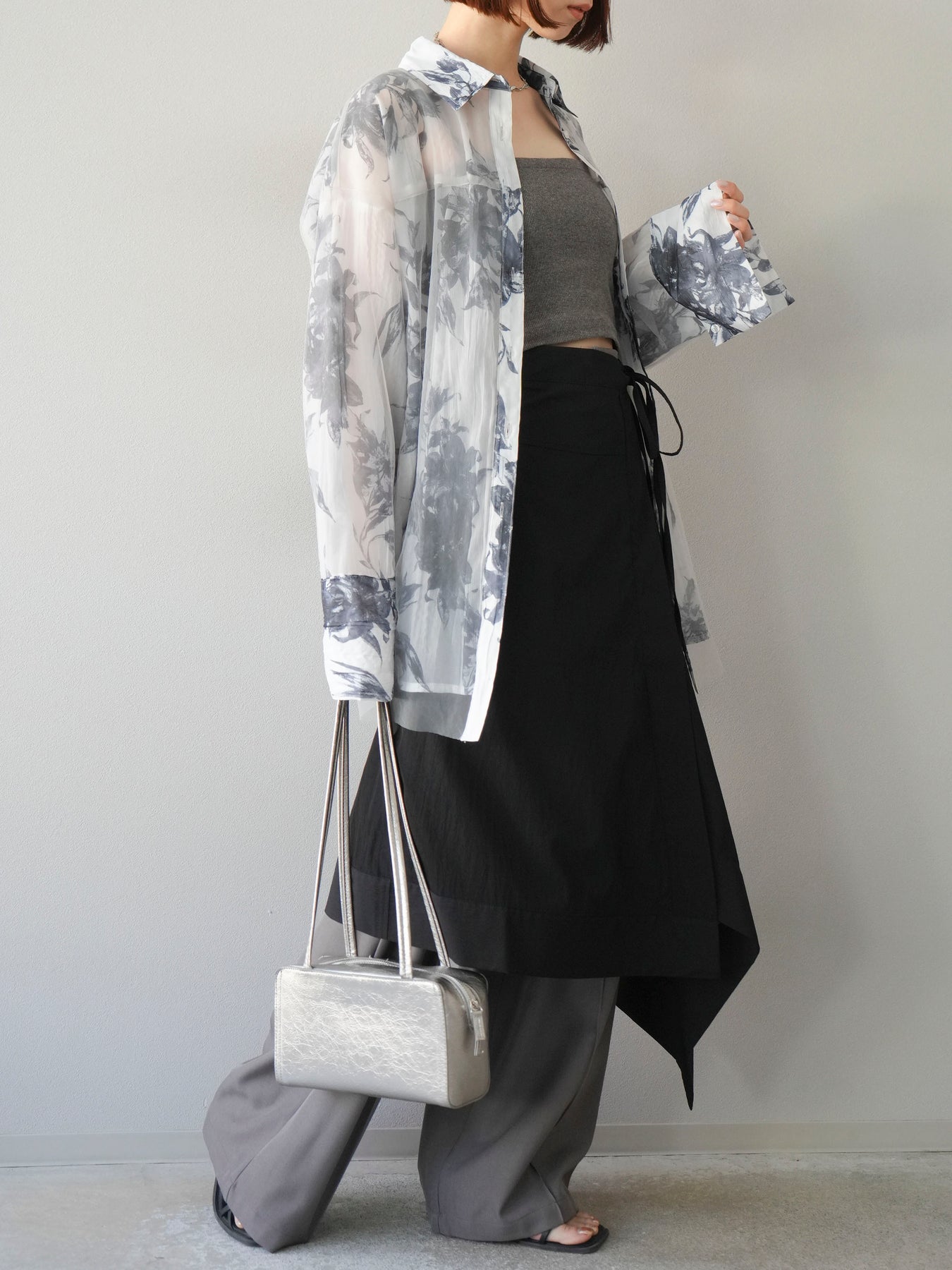 立体感のあるレイヤードデザインが特徴的なアシンメトリースカート。左右で長さやドレープに変化をつけ、動くたびに美しい揺れ感を演出します。ウエスト部分はリボンで調整でき、フィット感とデザイン性を両立。軽やかな素材感でシーズンレスに着用でき、シンプルなトップスと合わせるだけでコーディネートが決まります。 ※ボトムス、キャミソール(インナー)以外の商品は一律でインナーは付属していません