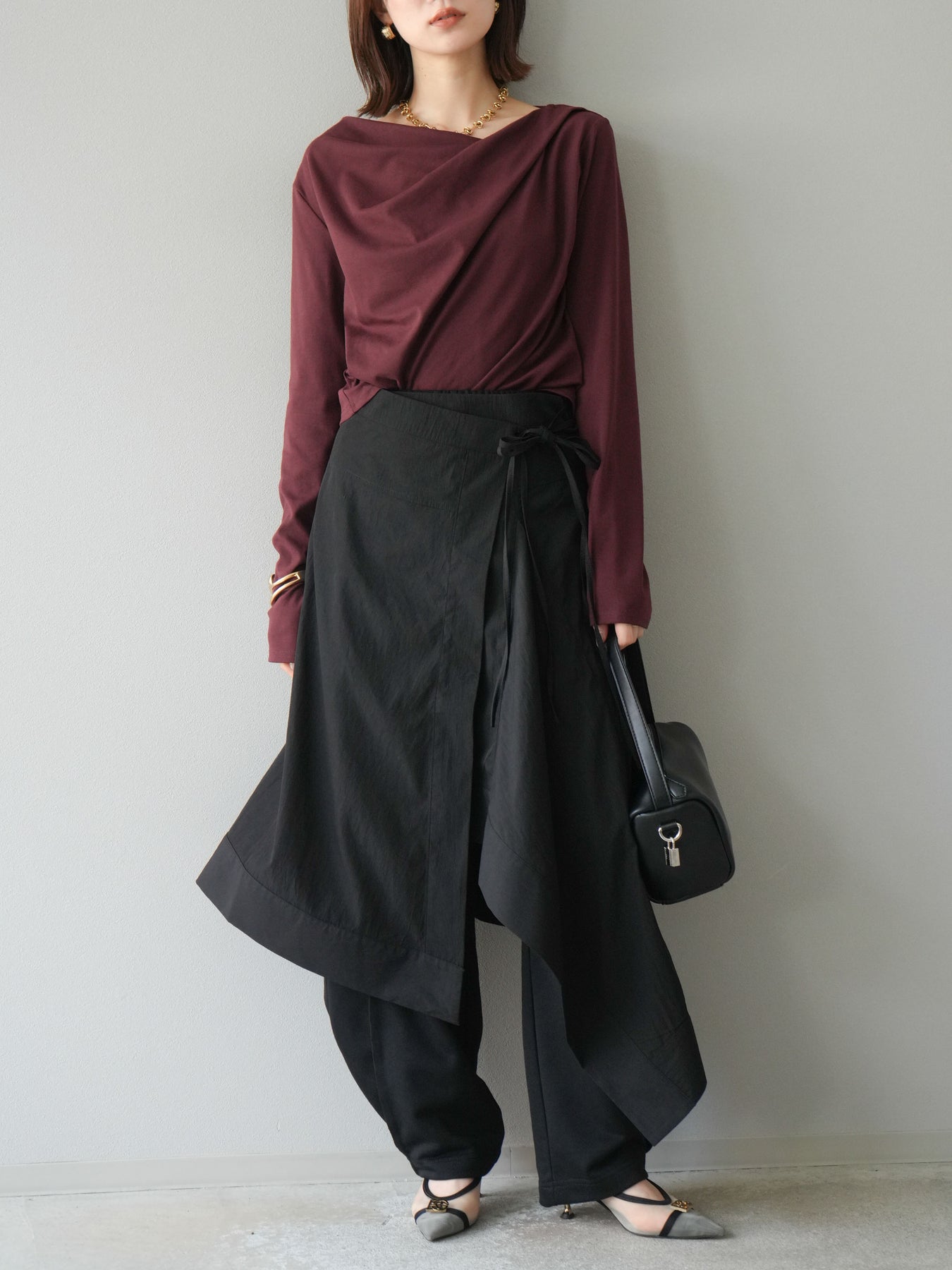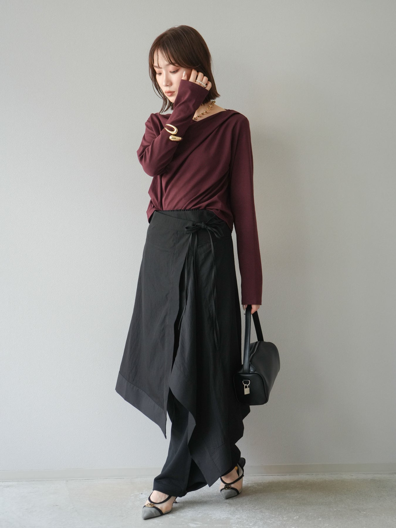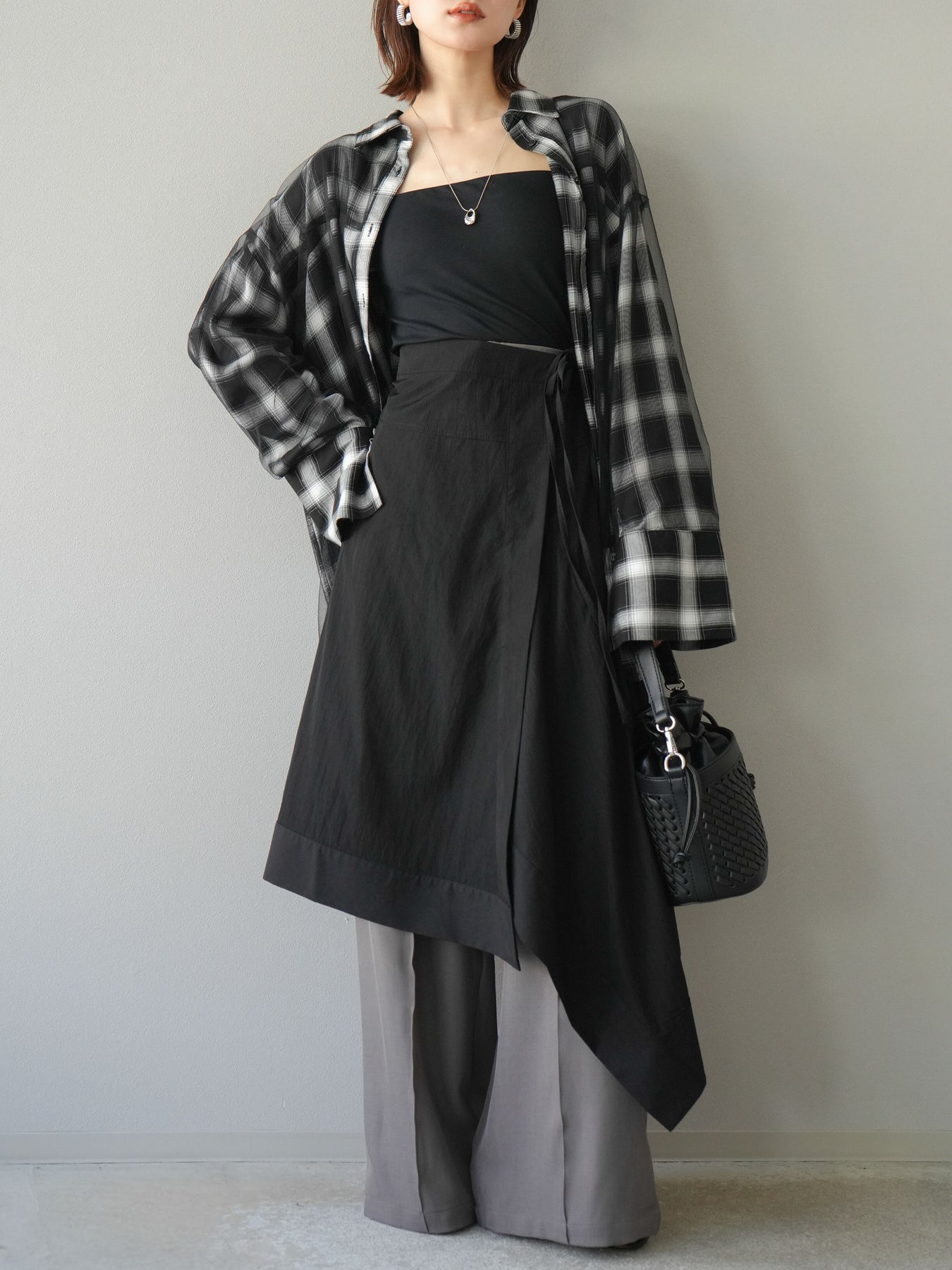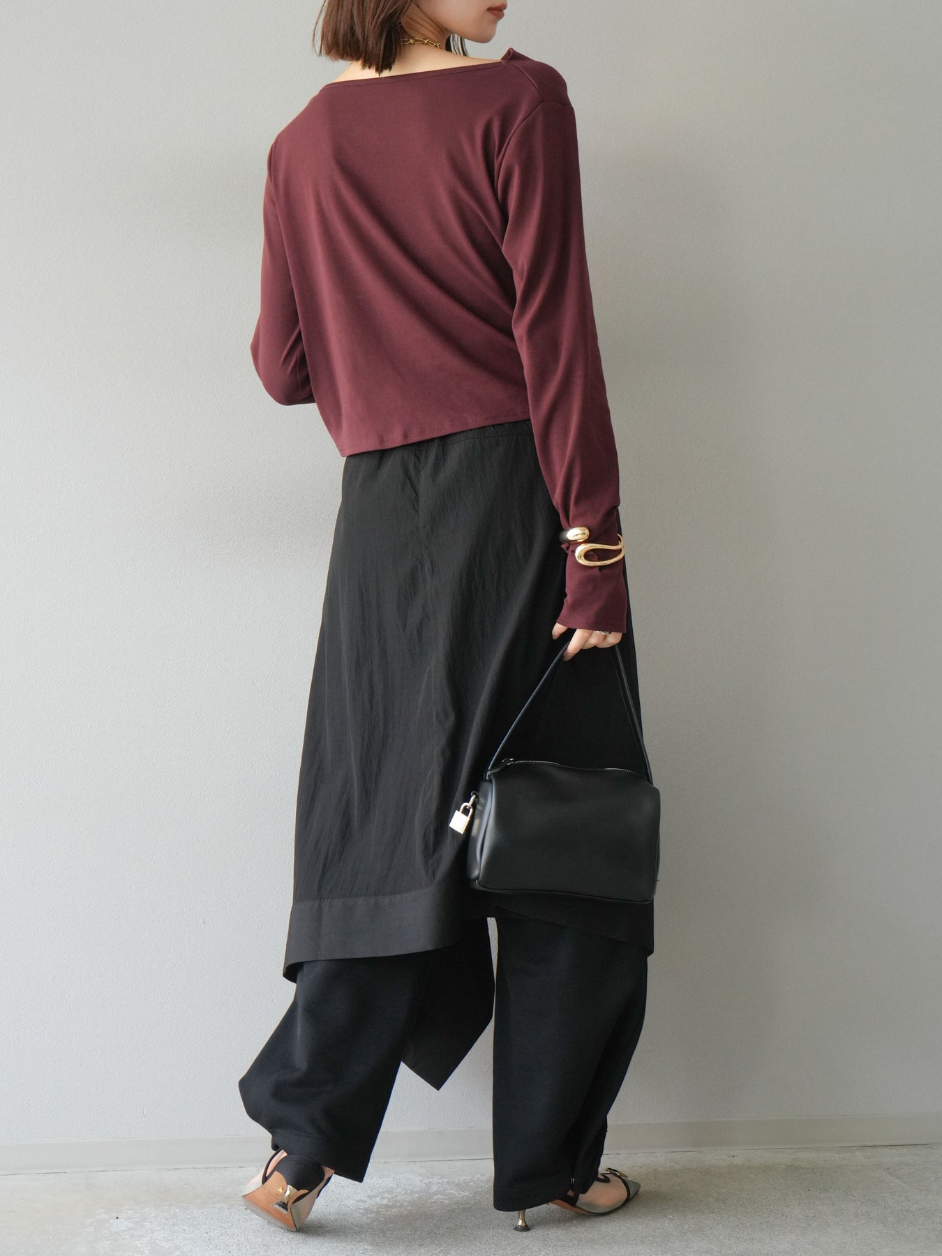 [予約]アシンメトリーレイヤードスカート/ブラック