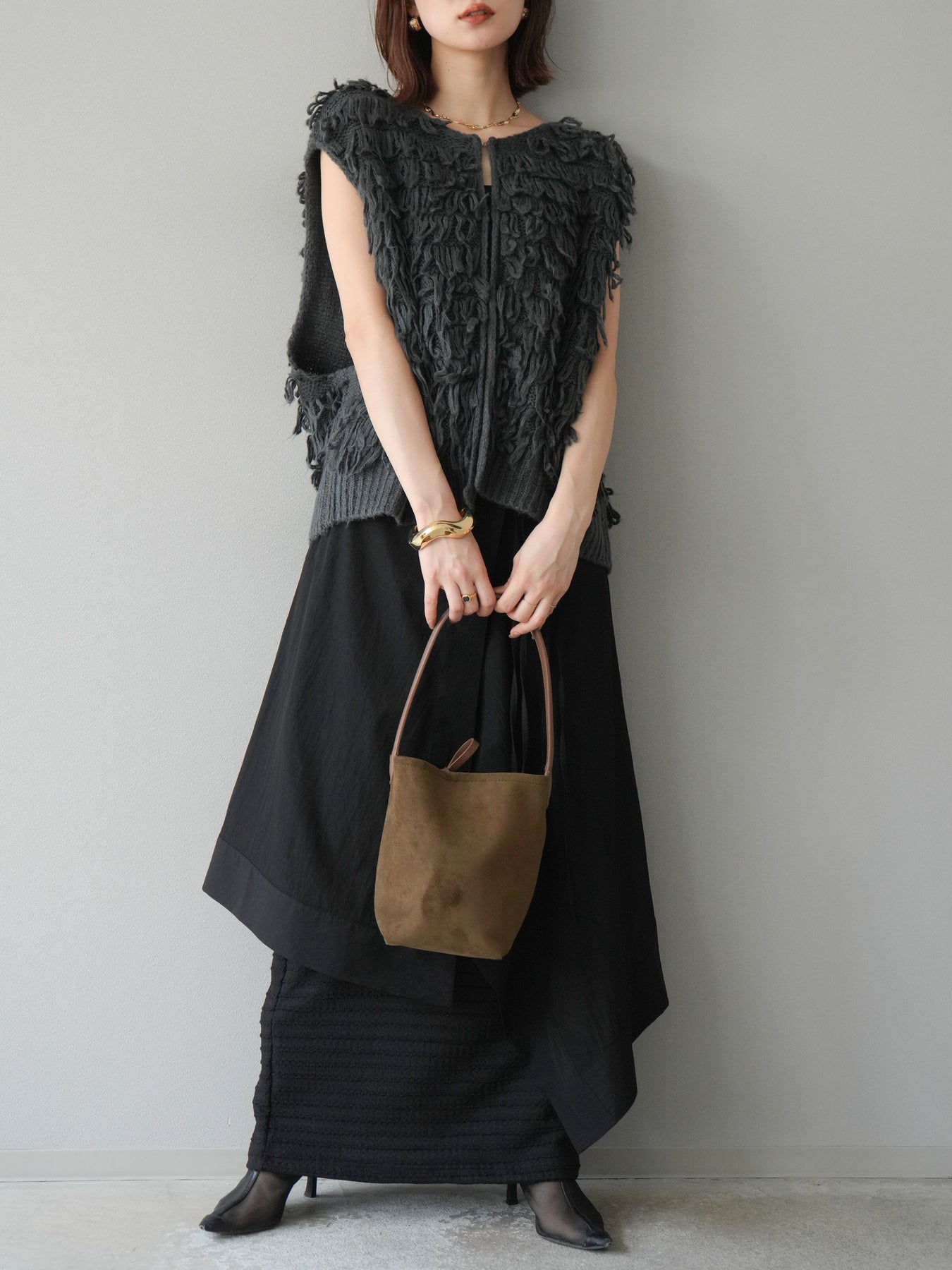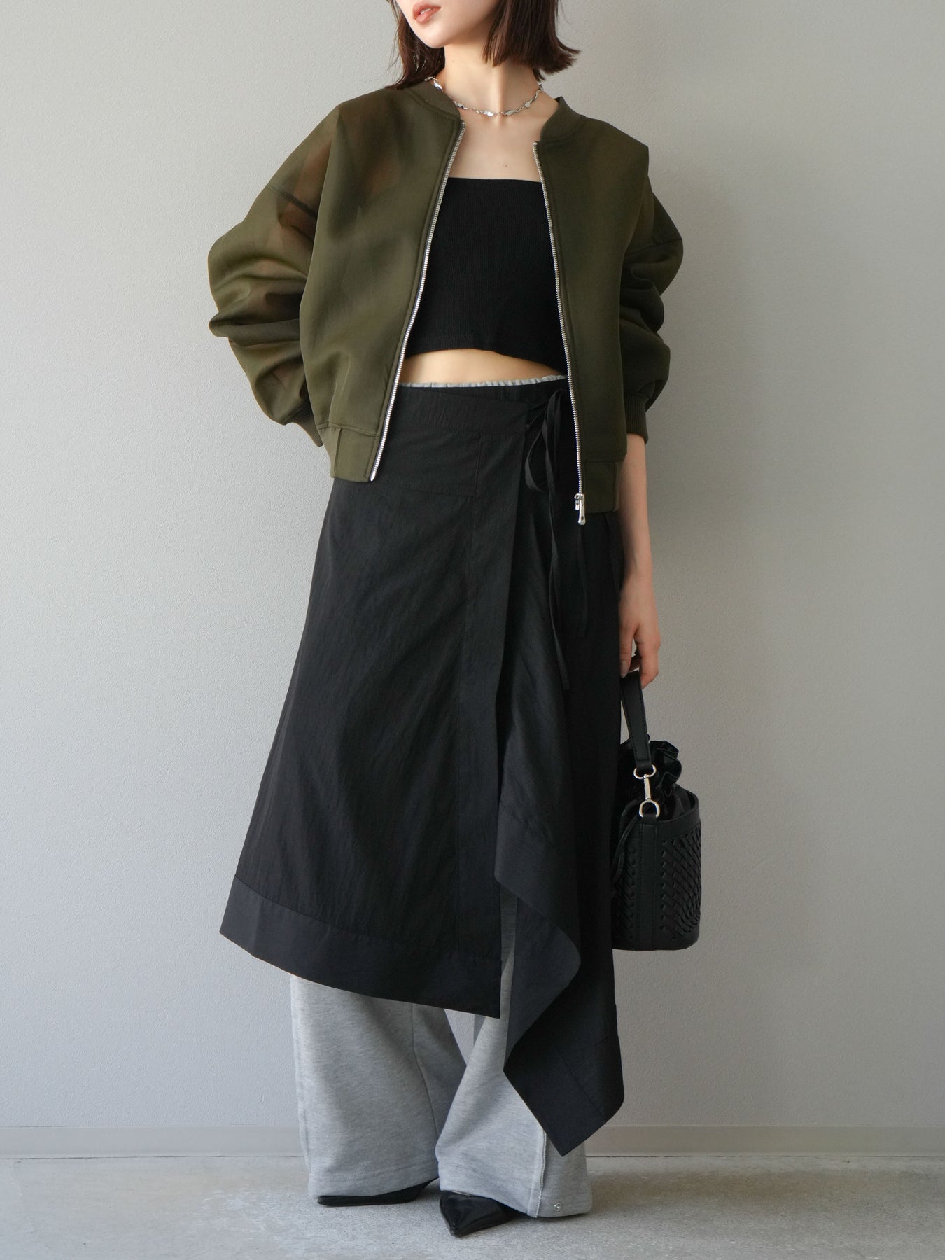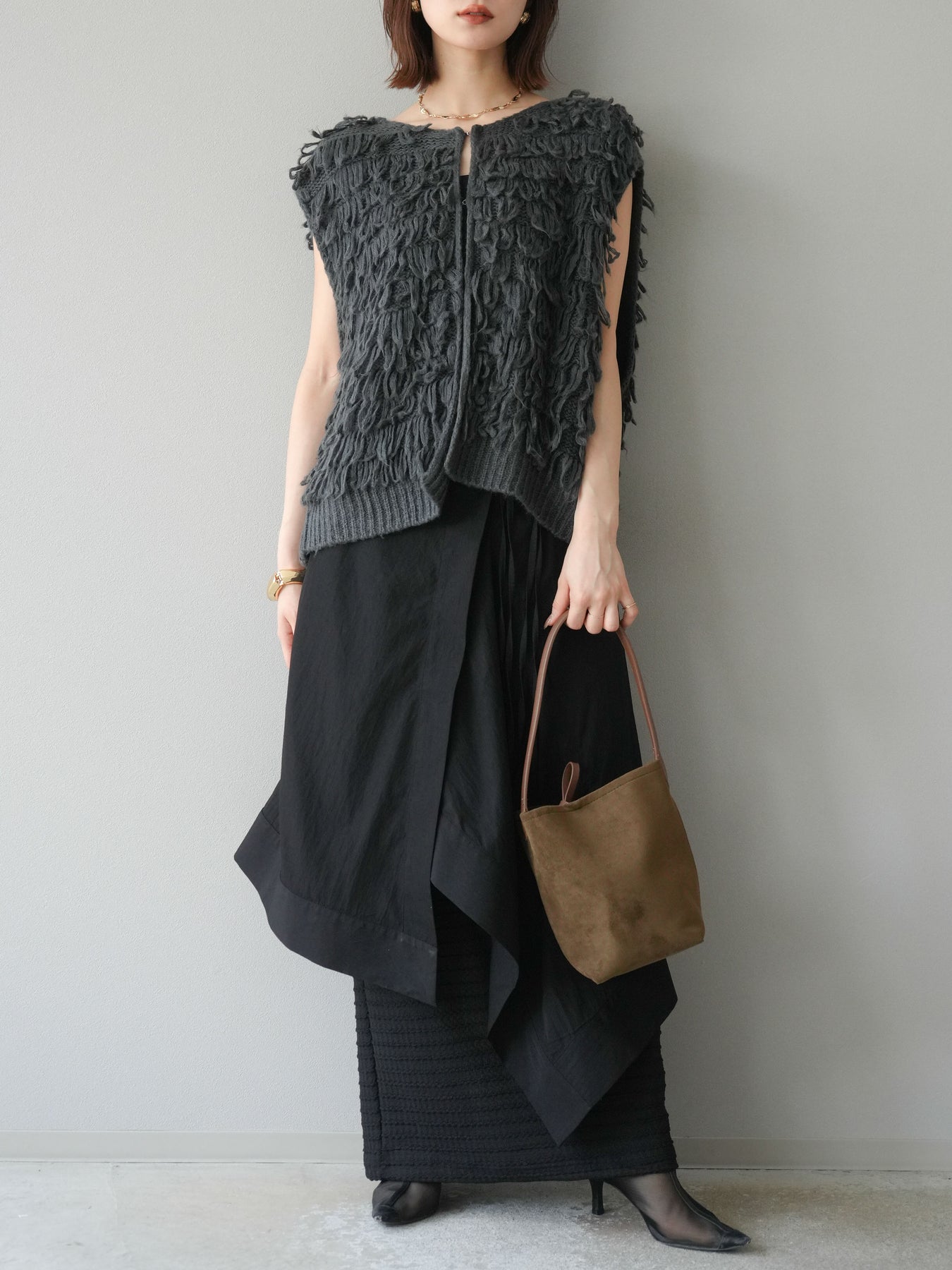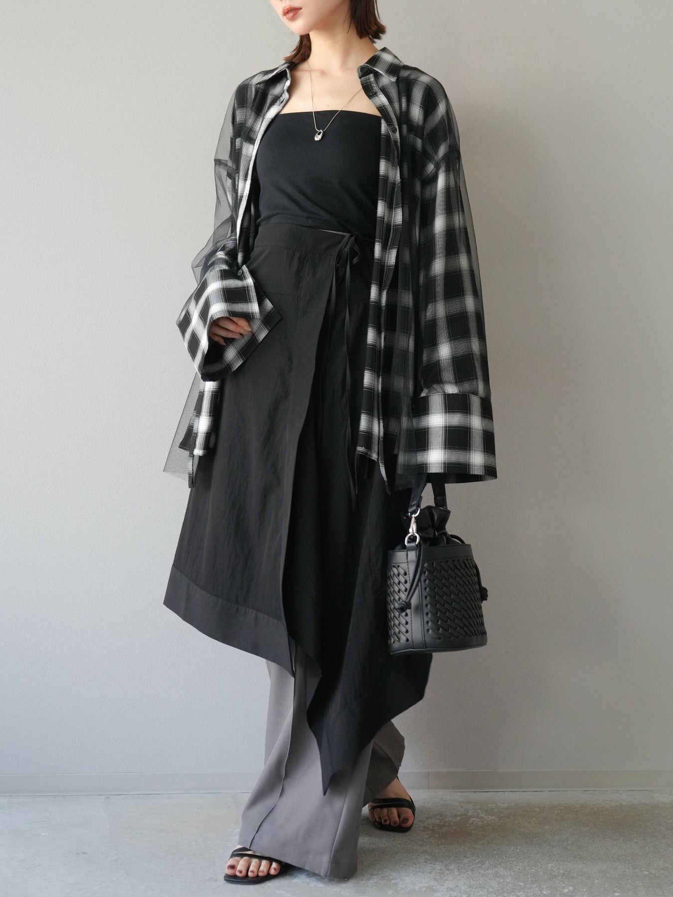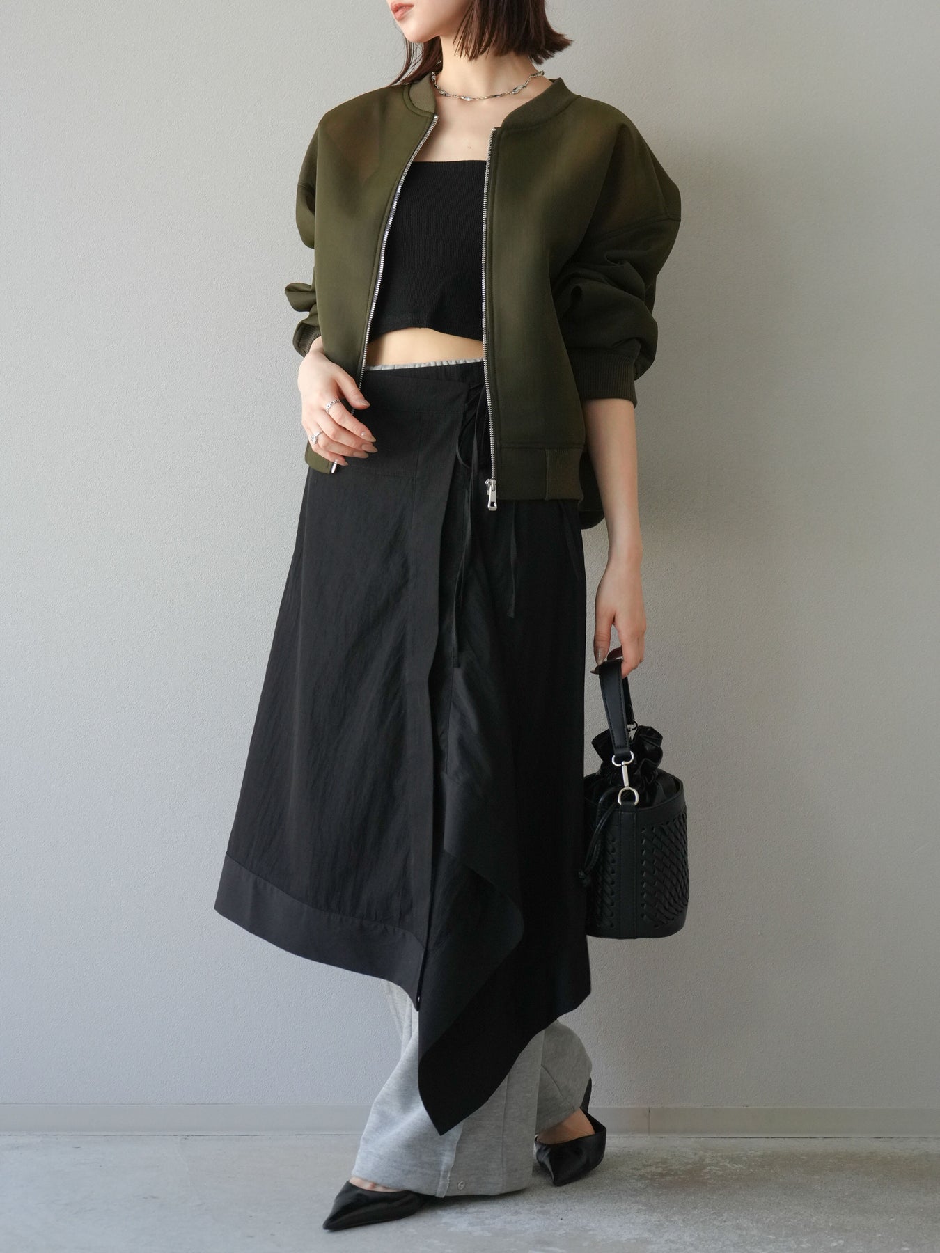 [予約]アシンメトリーレイヤードスカート/ブラック
