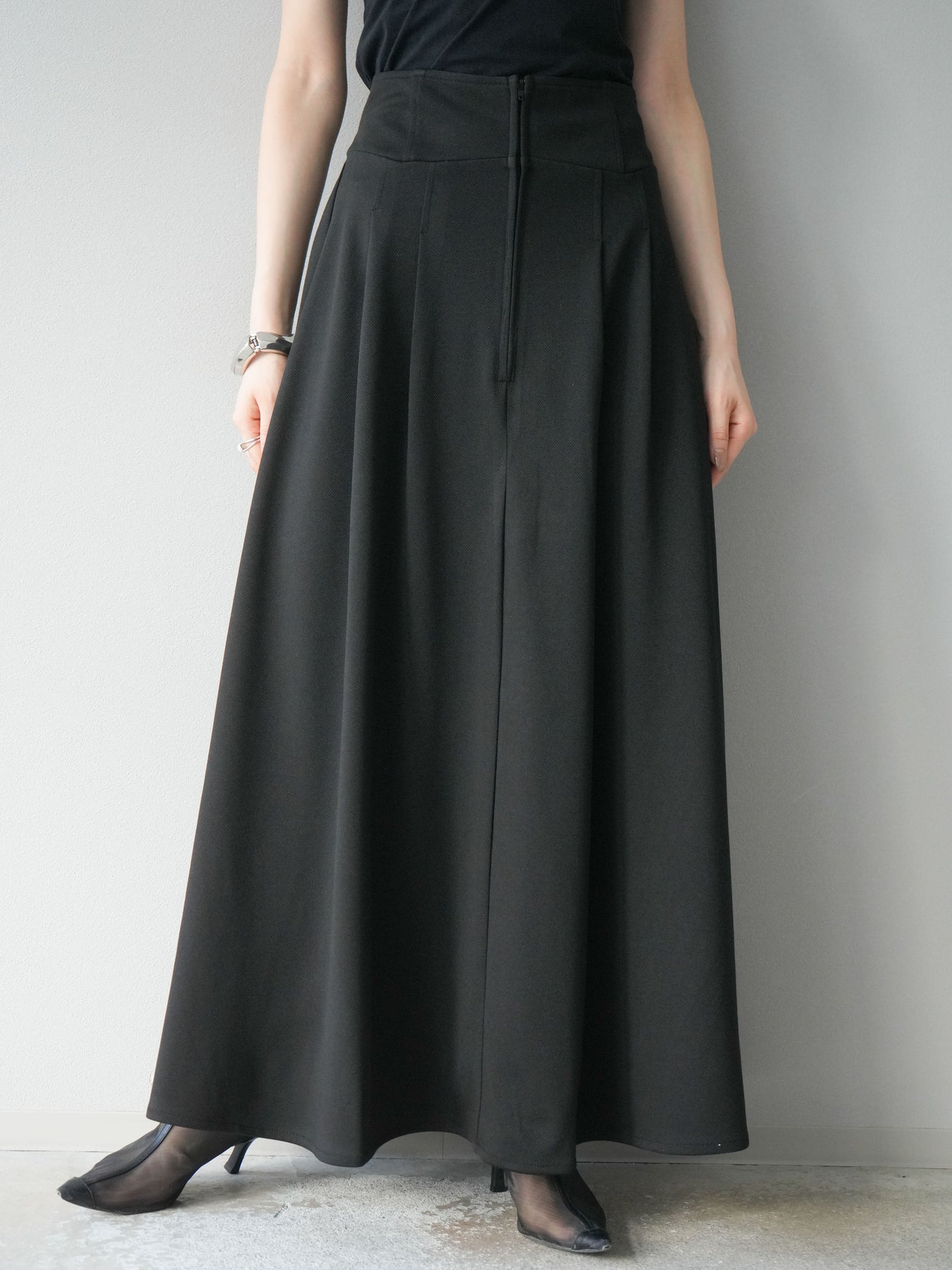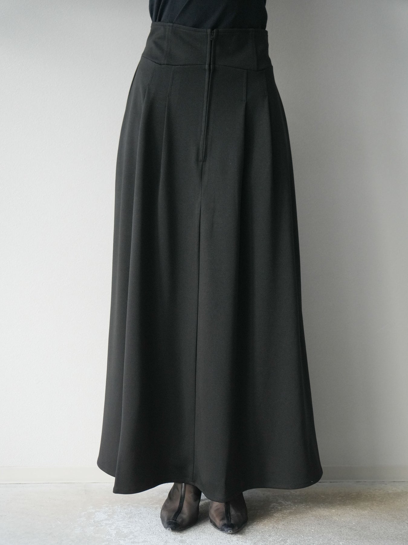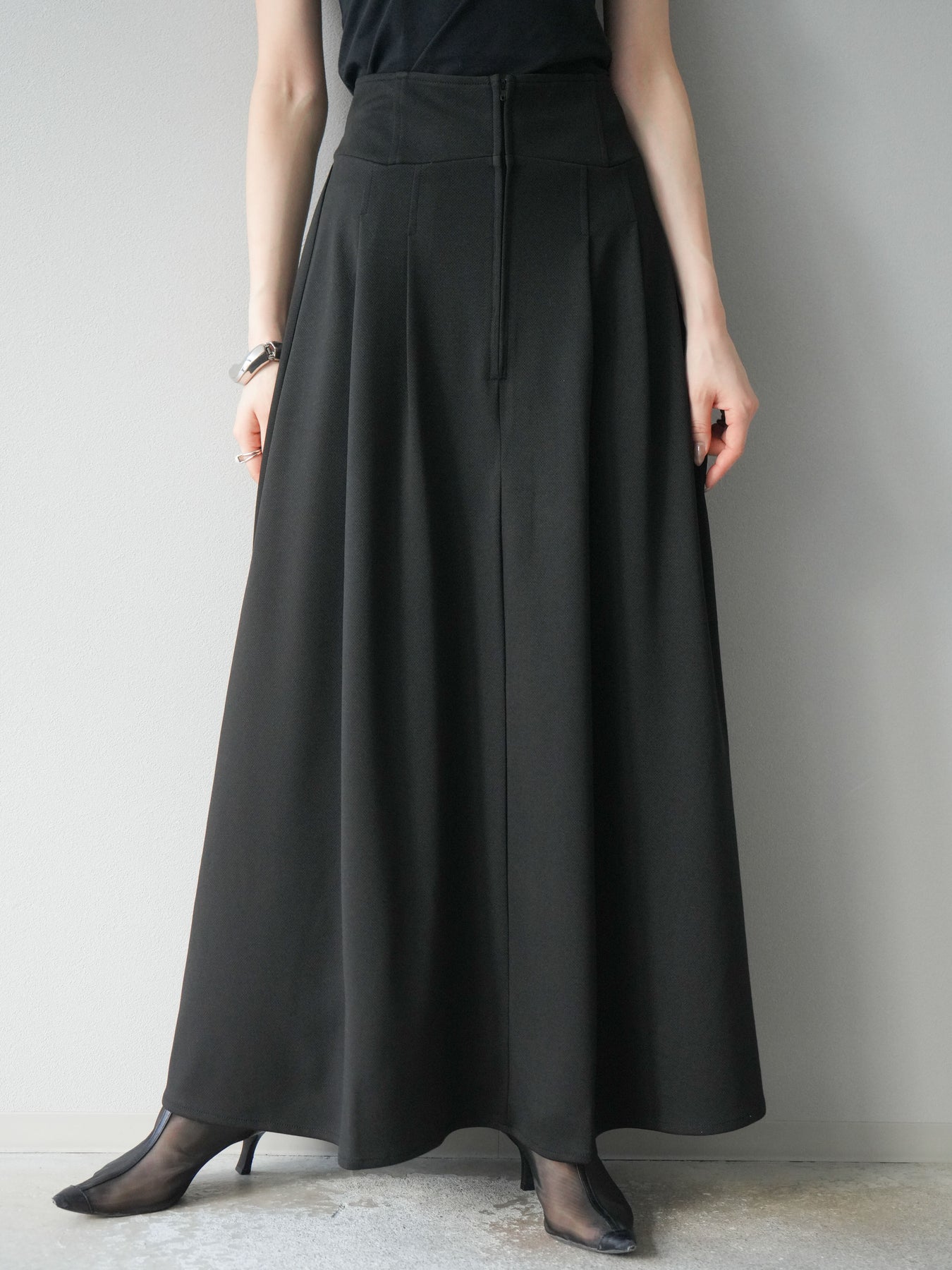 [予約]ポンチフロントZIPフレアロングスカート/ブラック