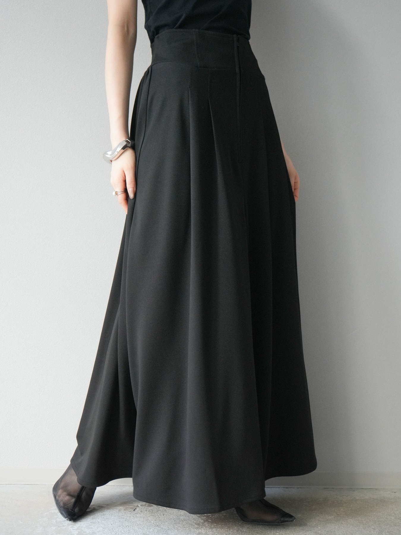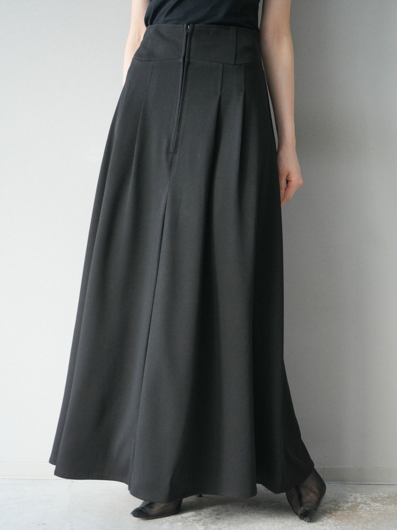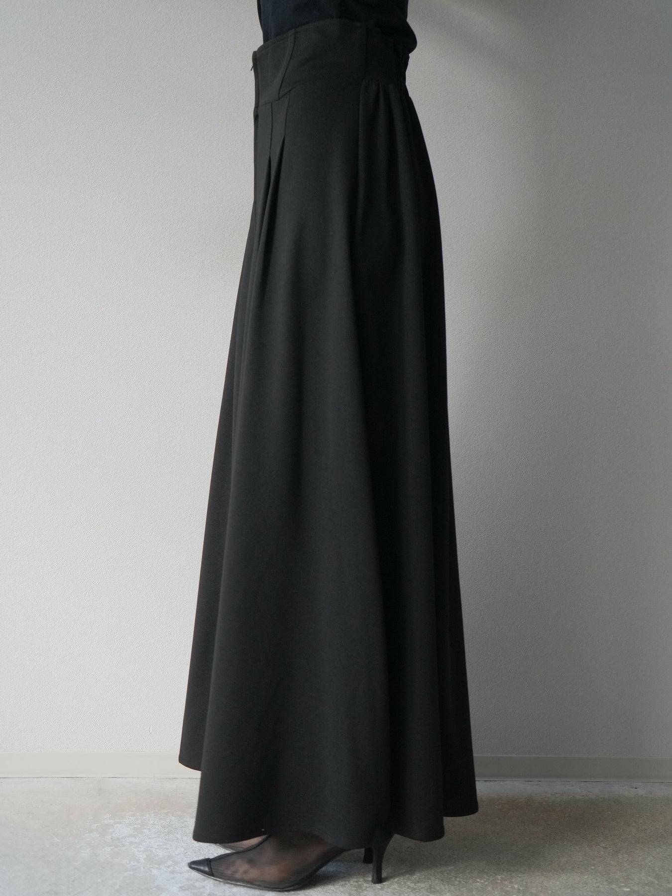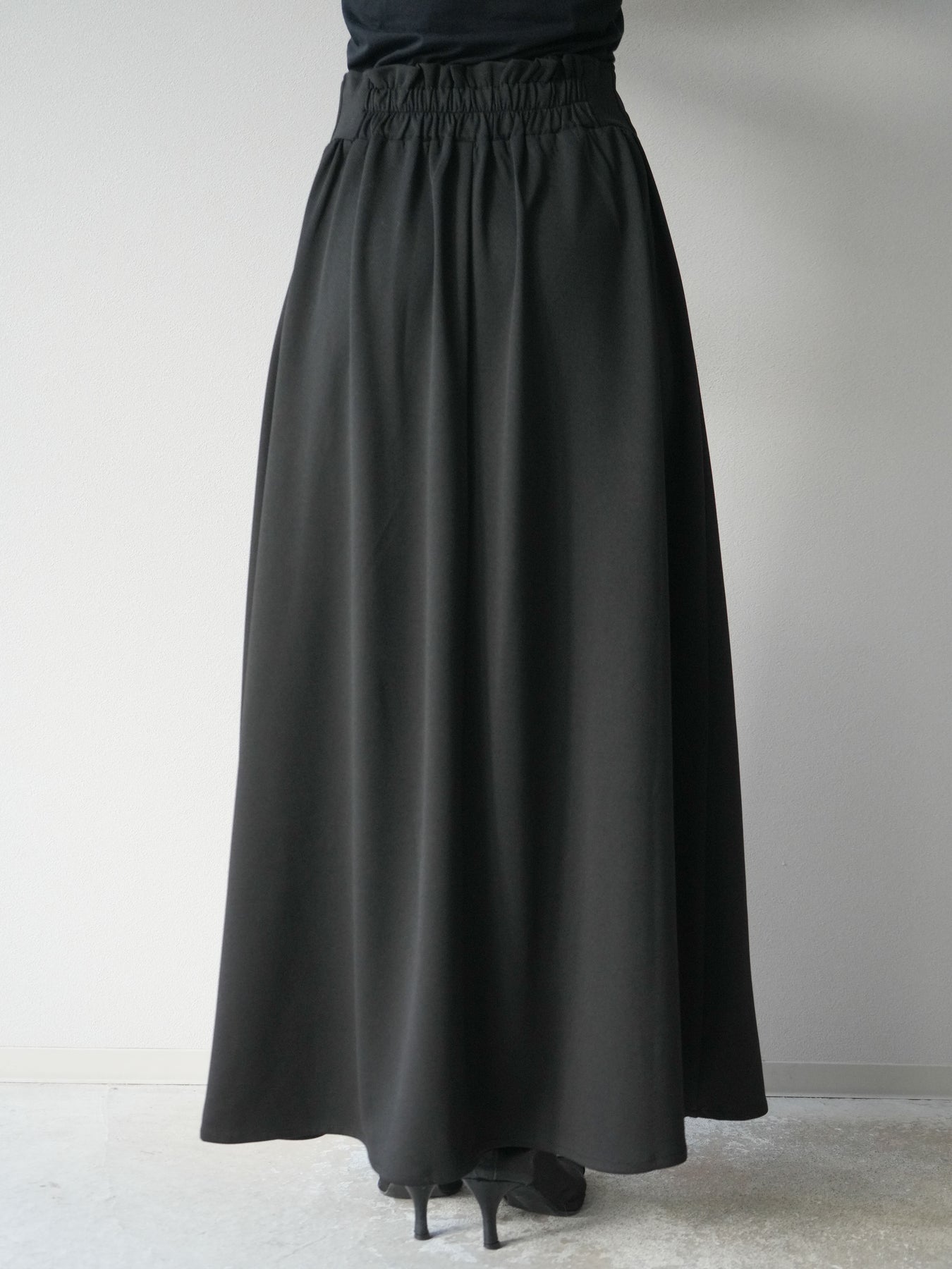 [予約]ポンチフロントZIPフレアロングスカート/ブラック