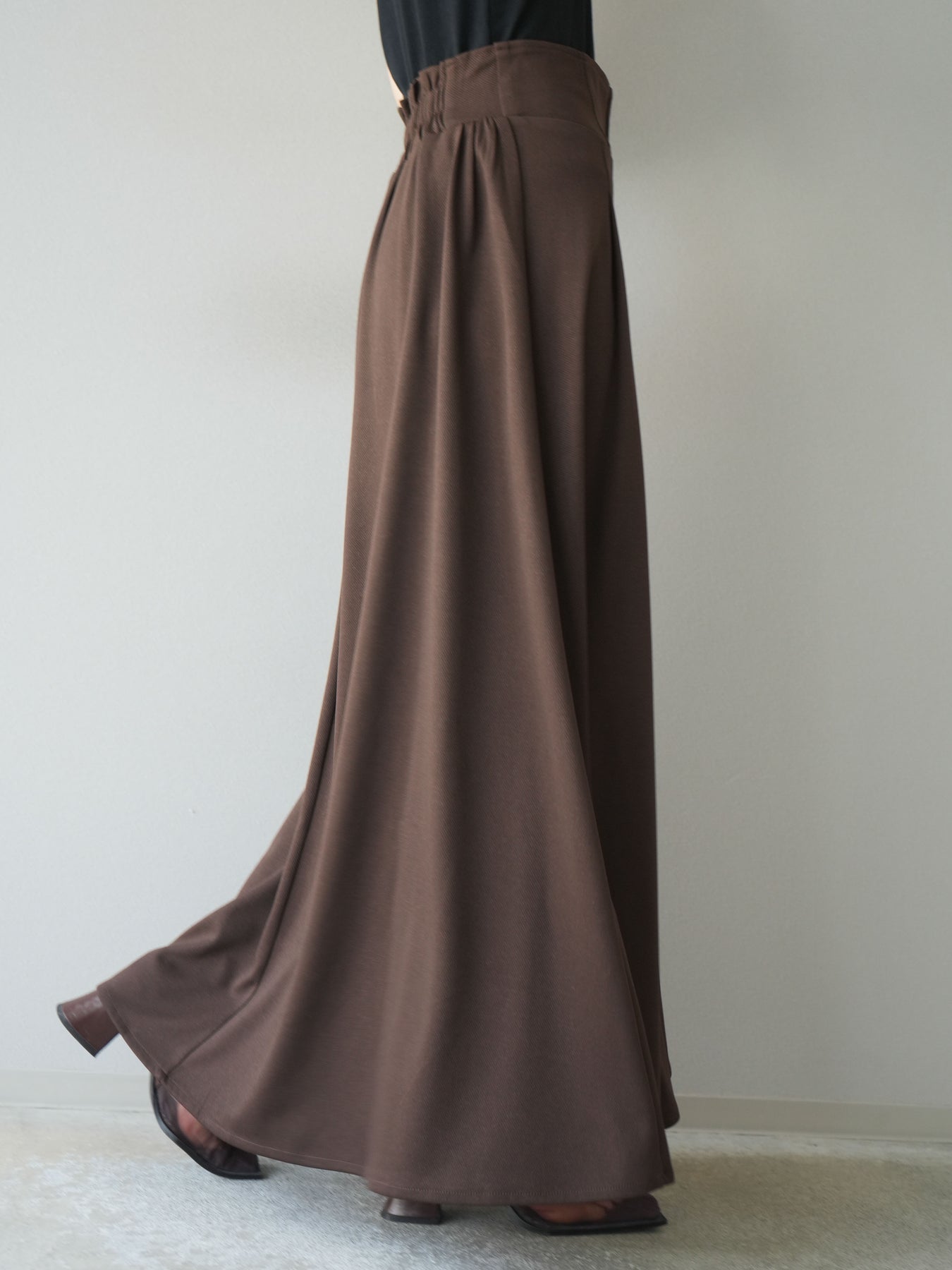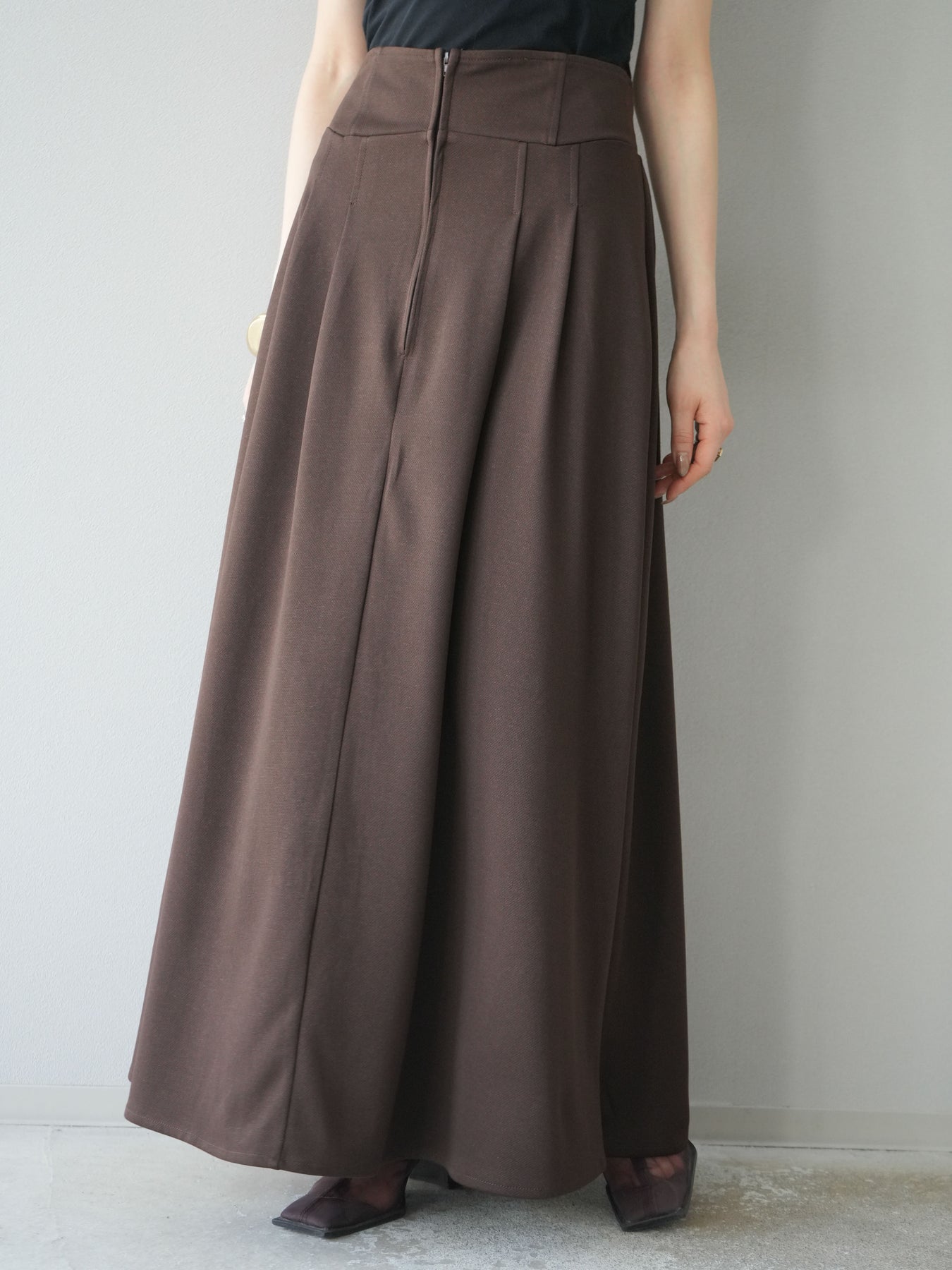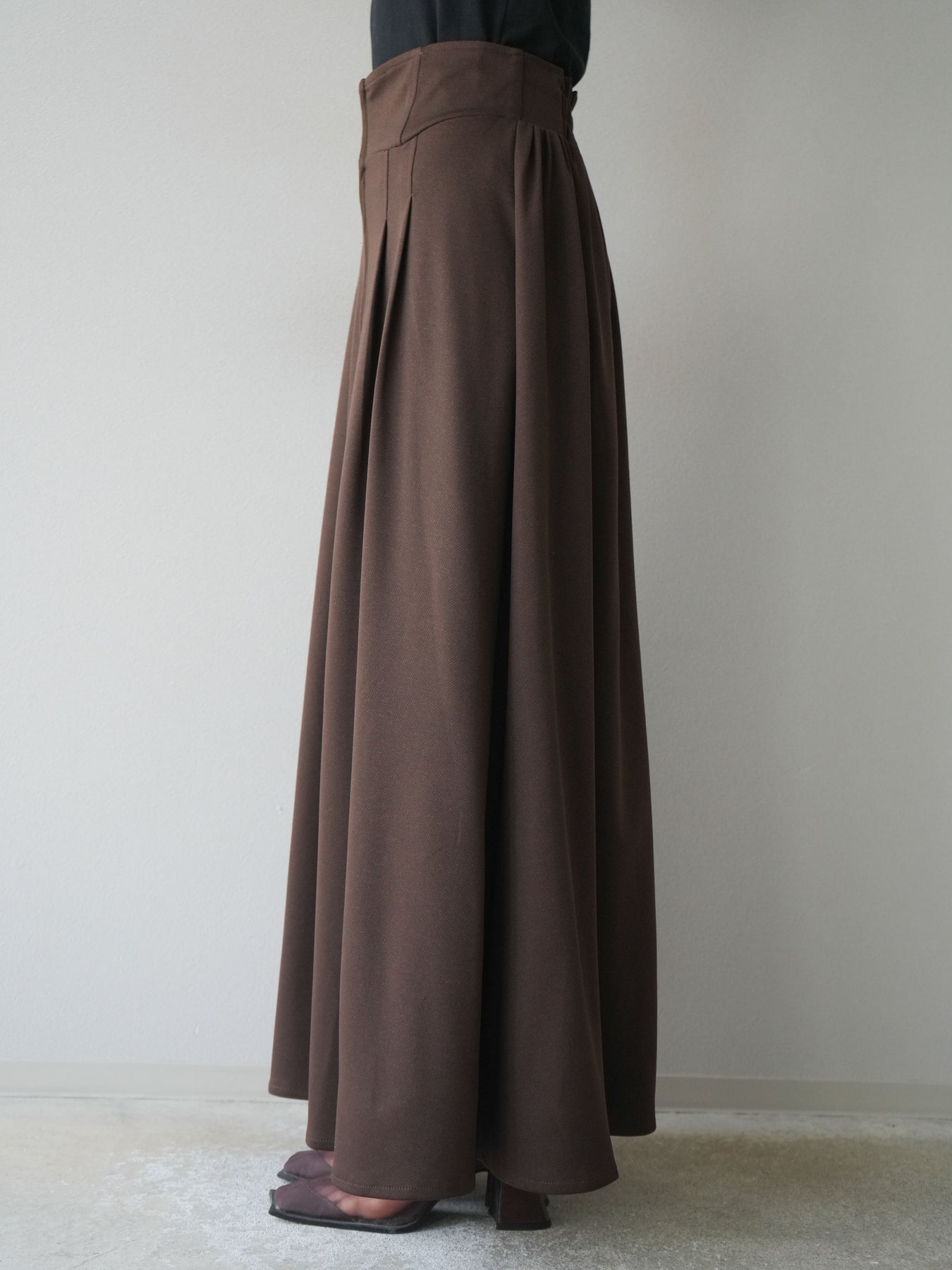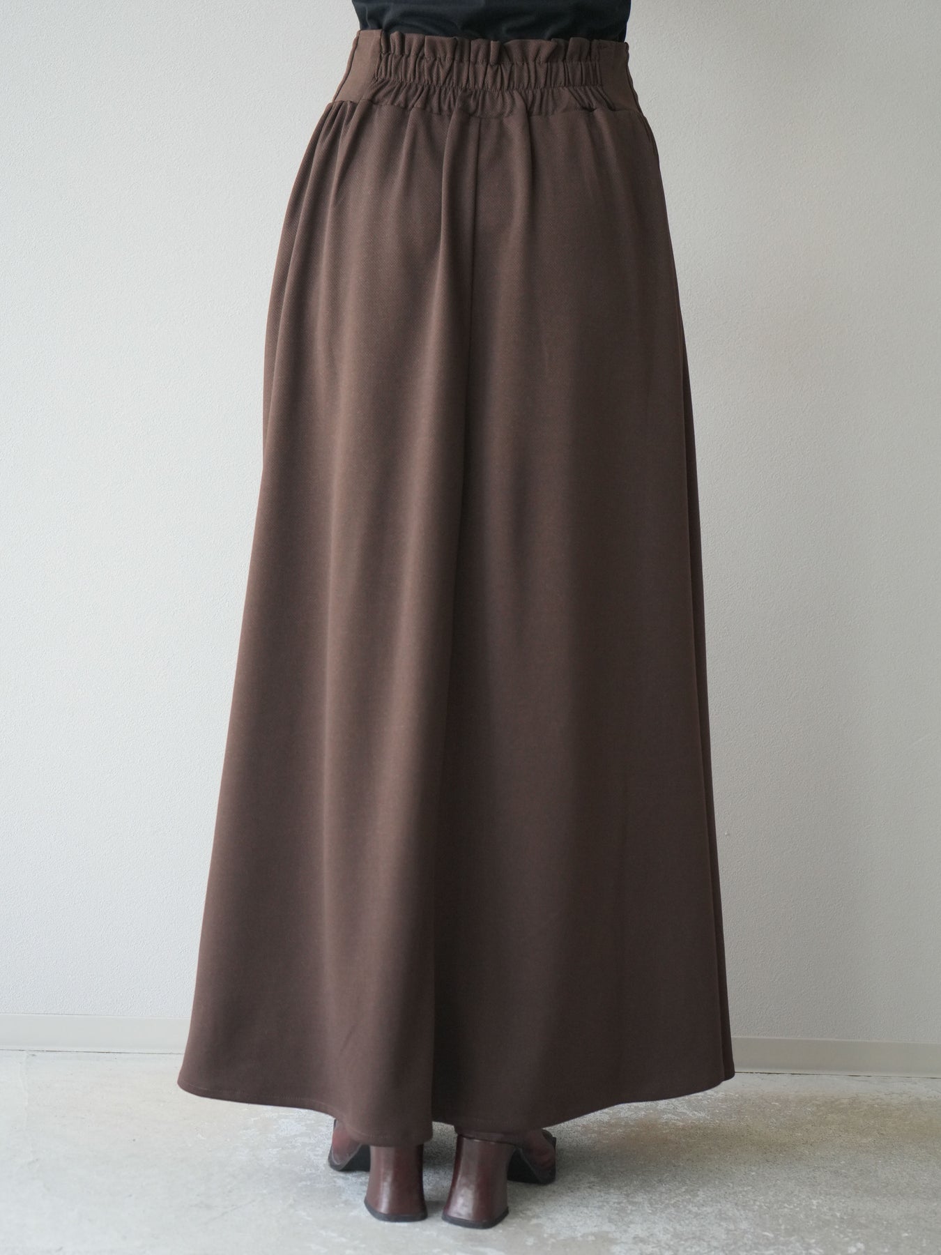 [予約]ポンチフロントZIPフレアロングスカート/ブラウン