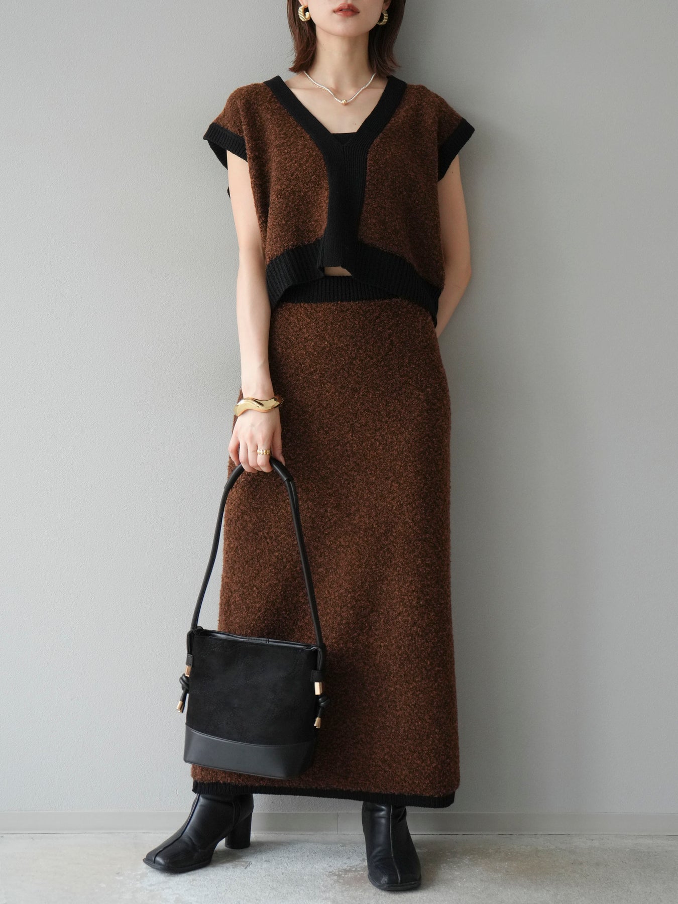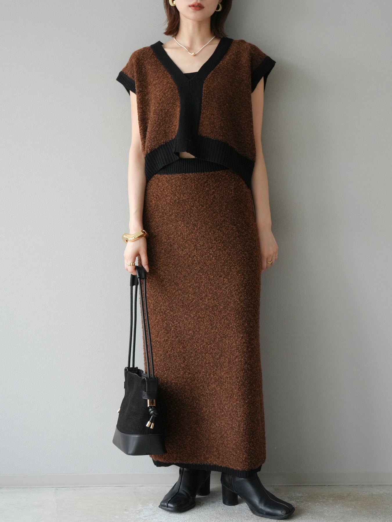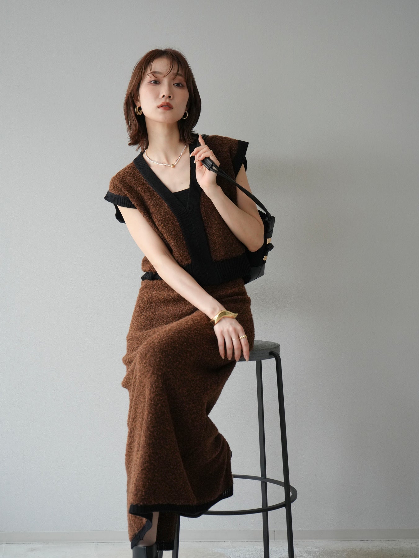 [予約]ブークレバイカラータイトニットスカート/ブラウン