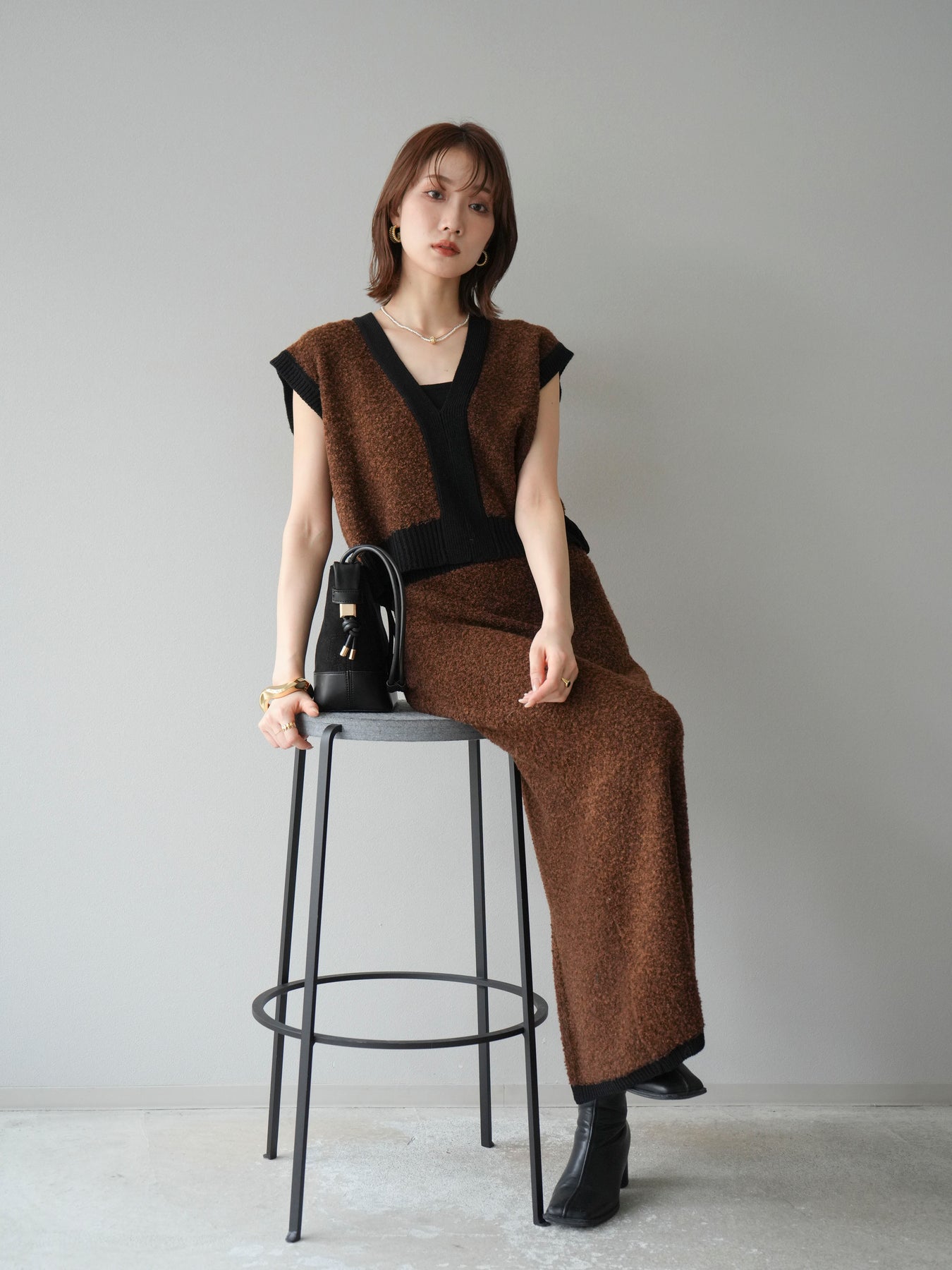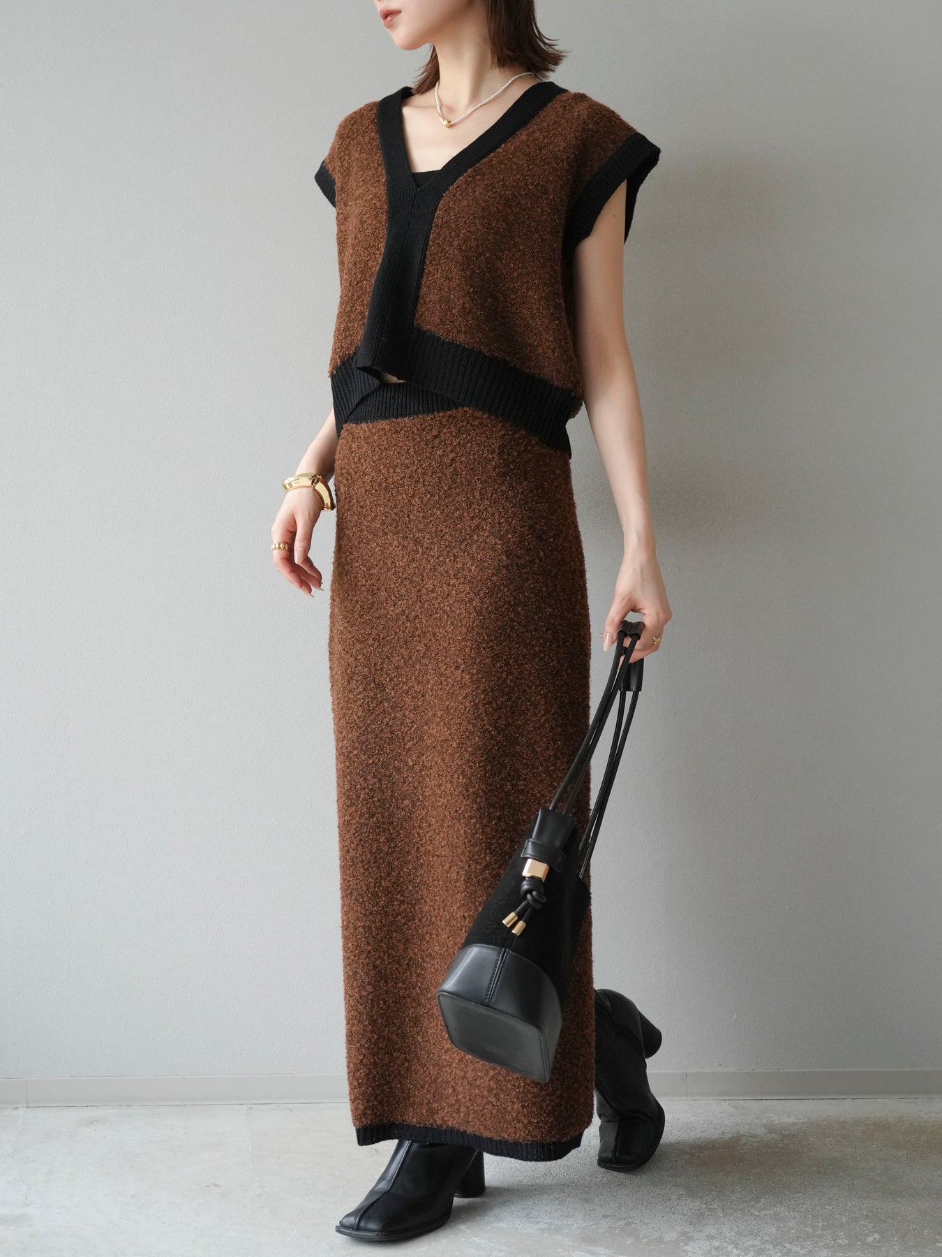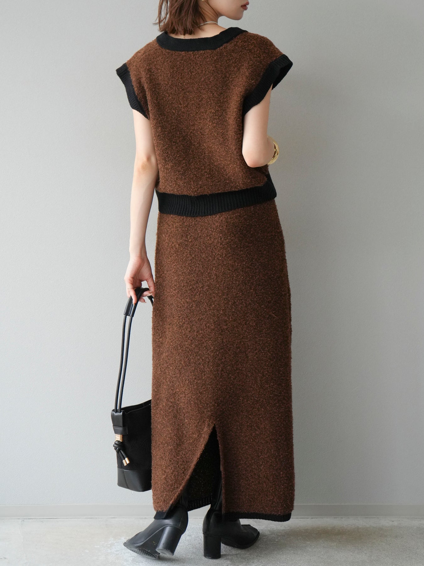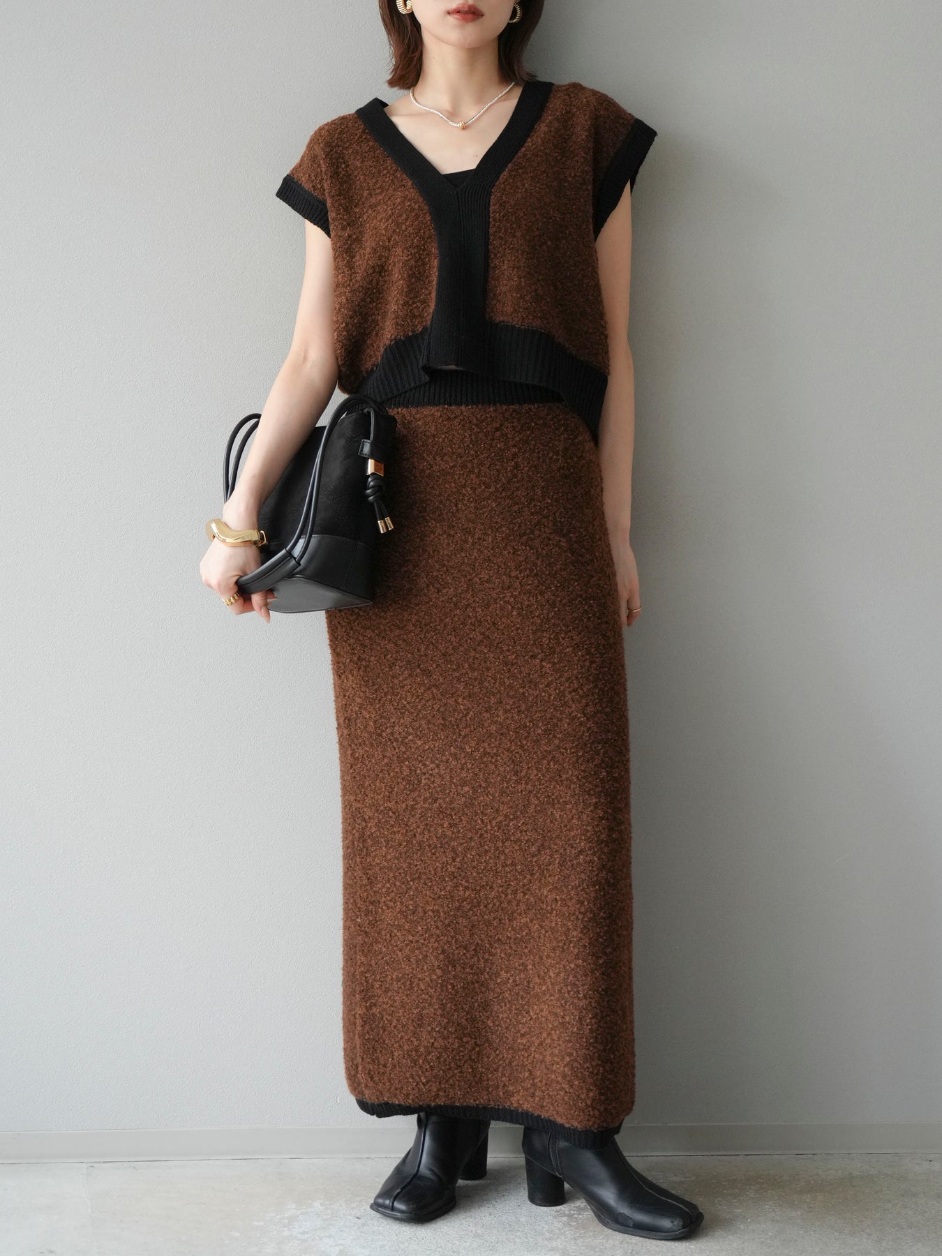 [予約]ブークレバイカラータイトニットスカート/ブラウン
