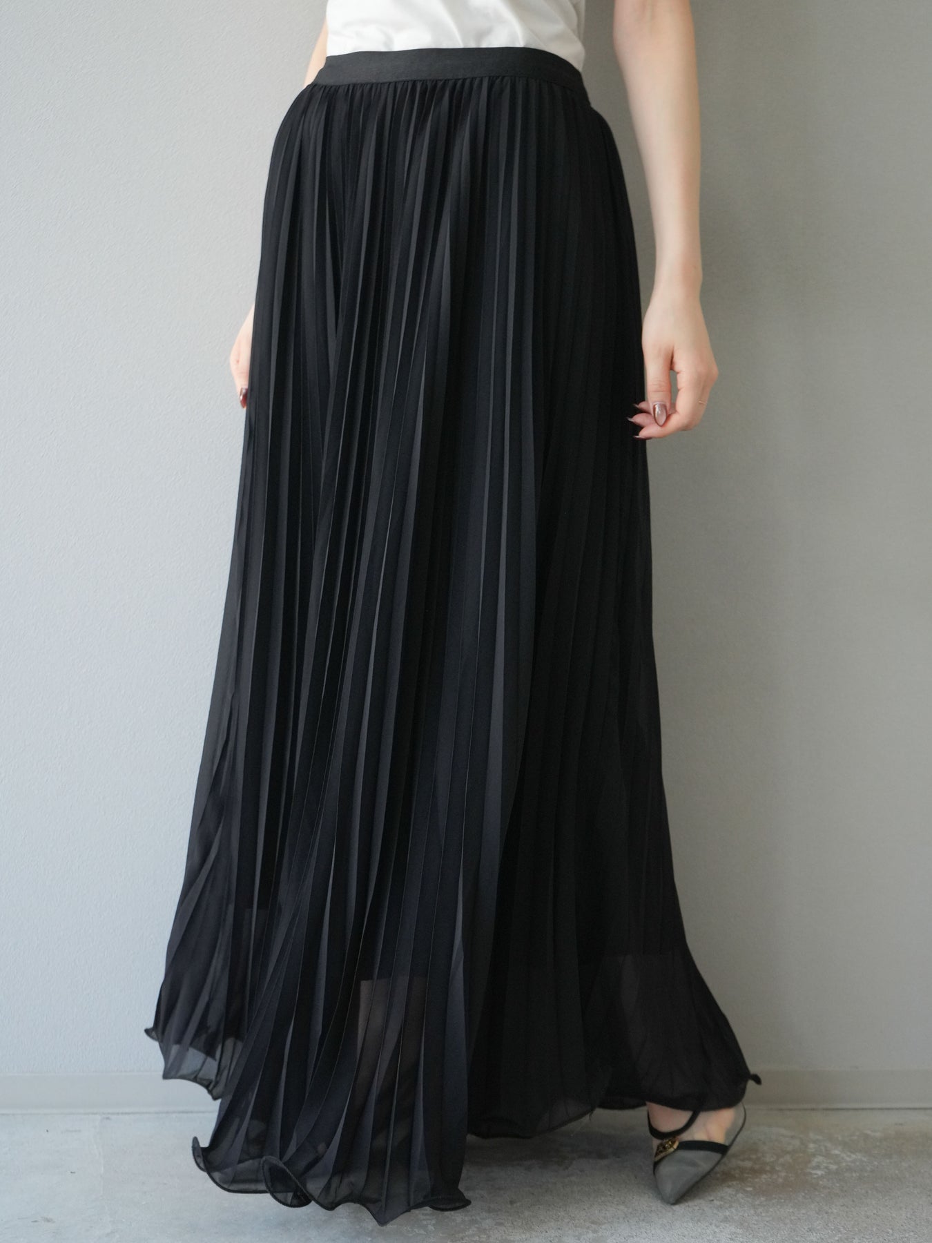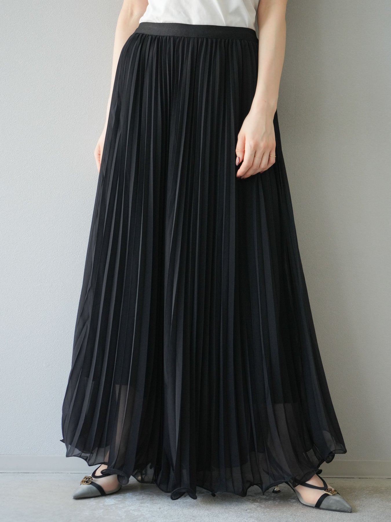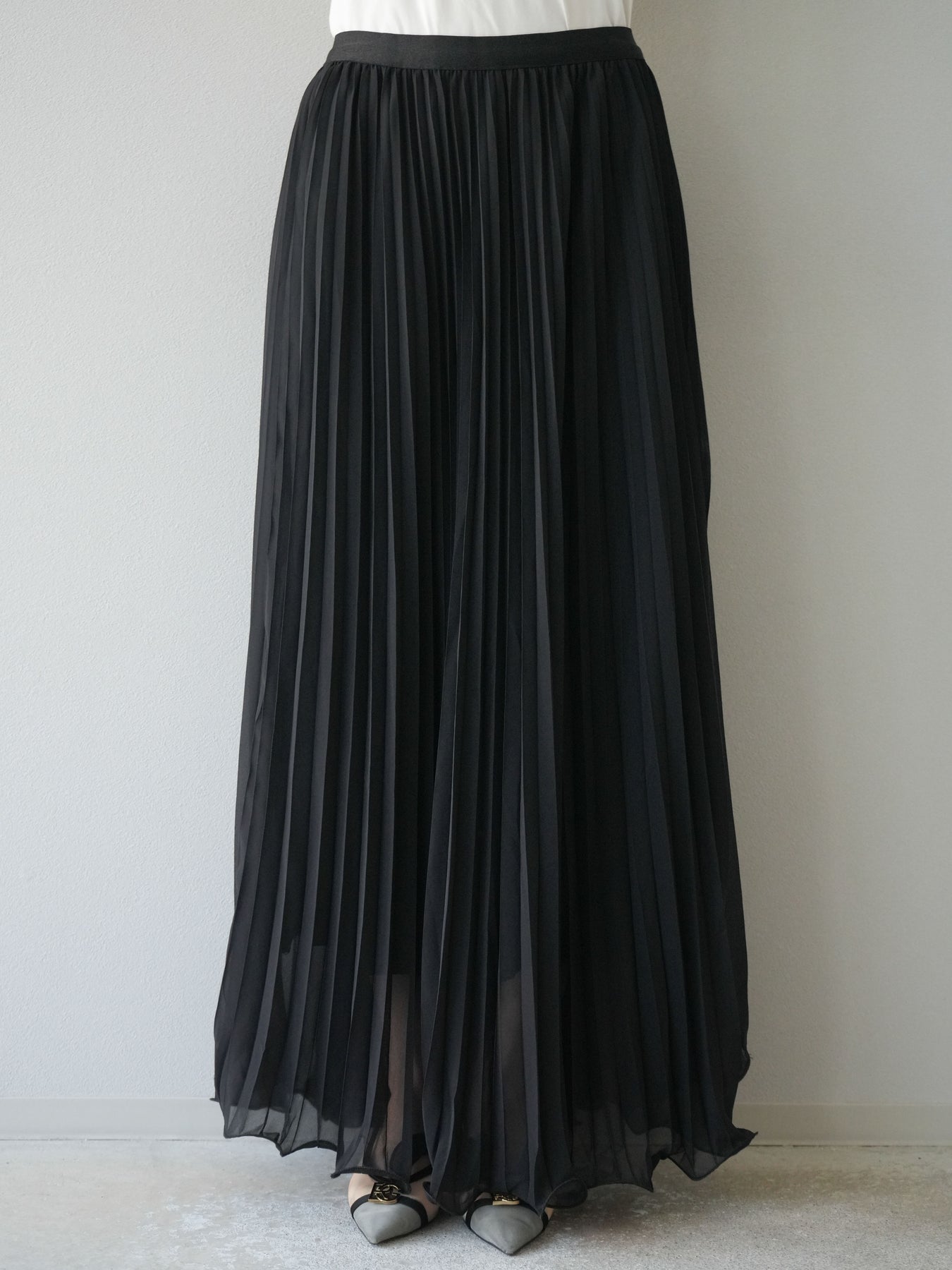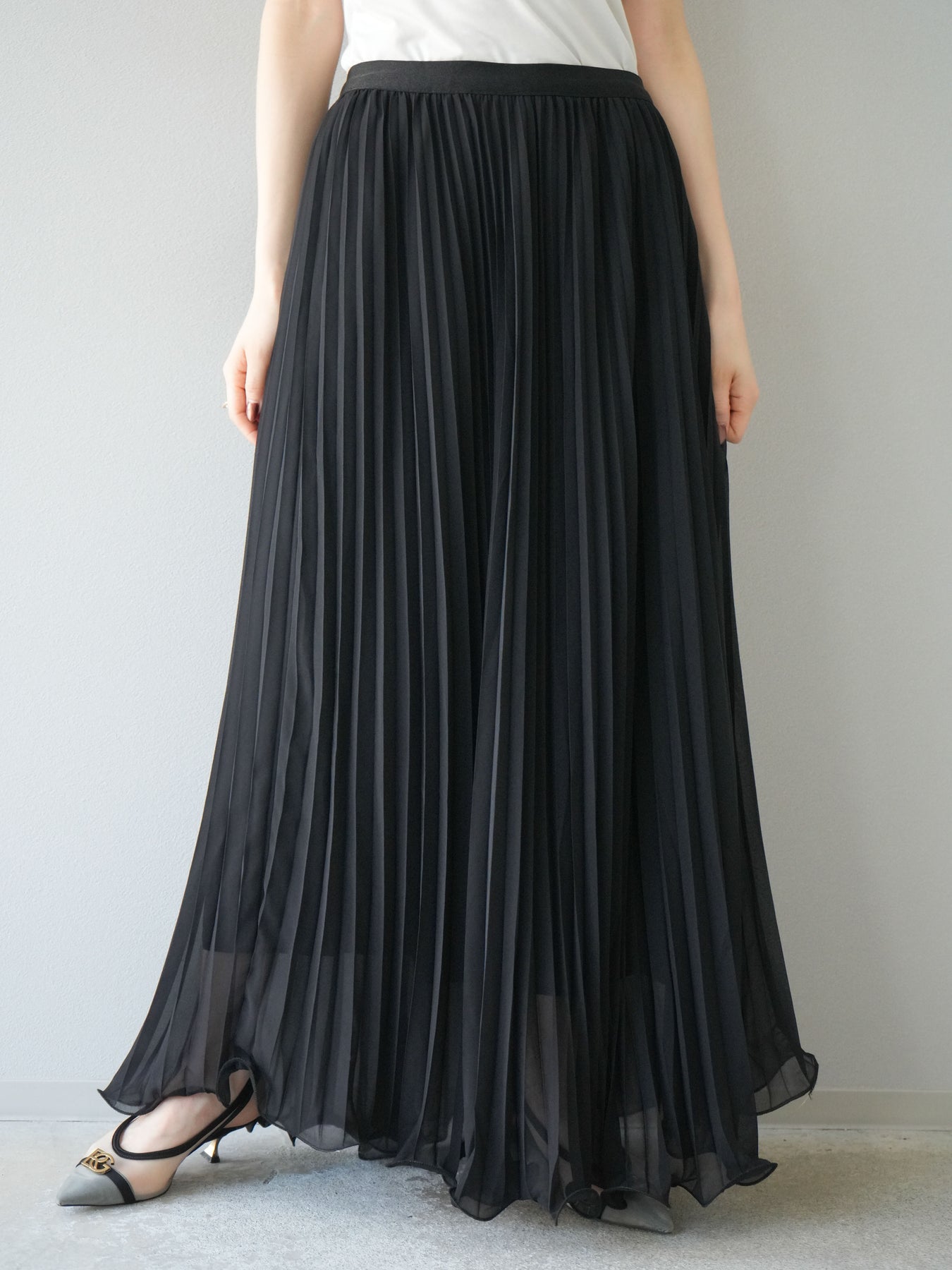 [予約]シフォンプリーツパイピングスカート/ブラック