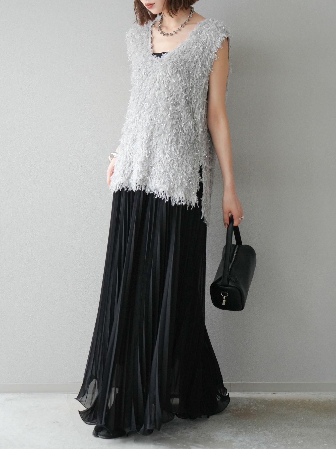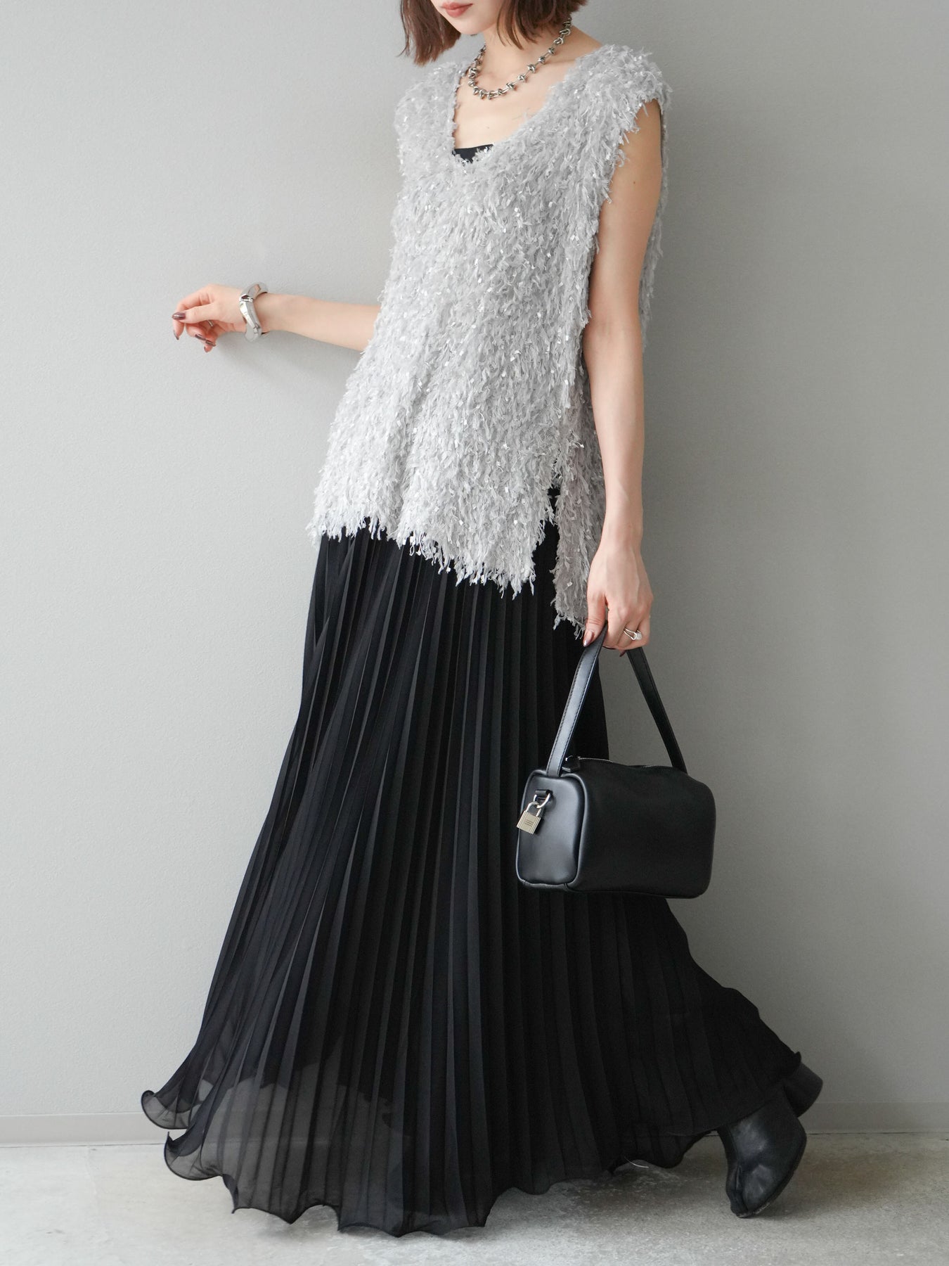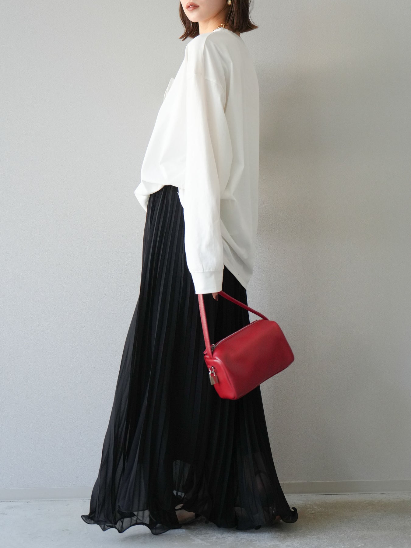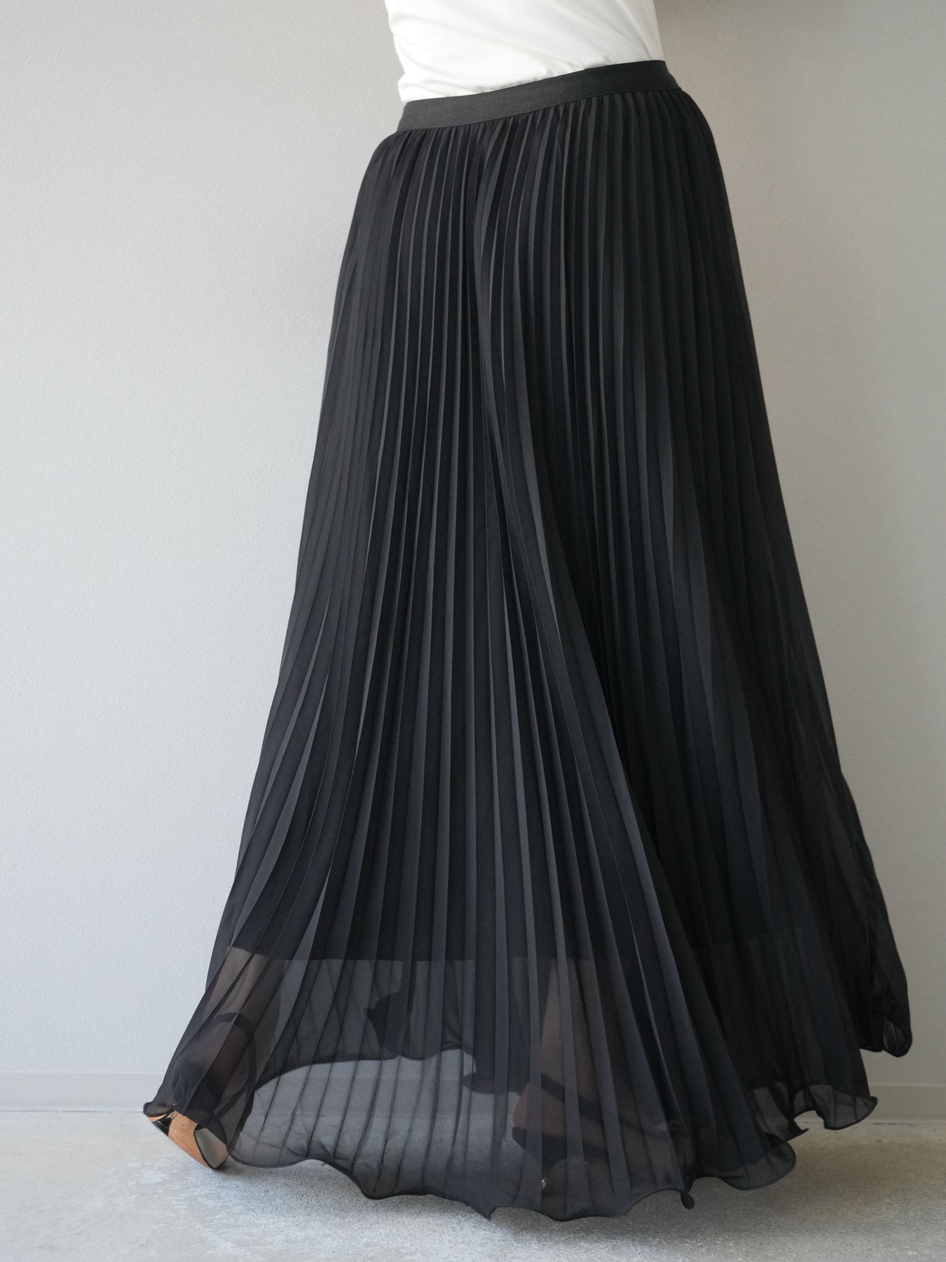 [予約]シフォンプリーツパイピングスカート/ブラック