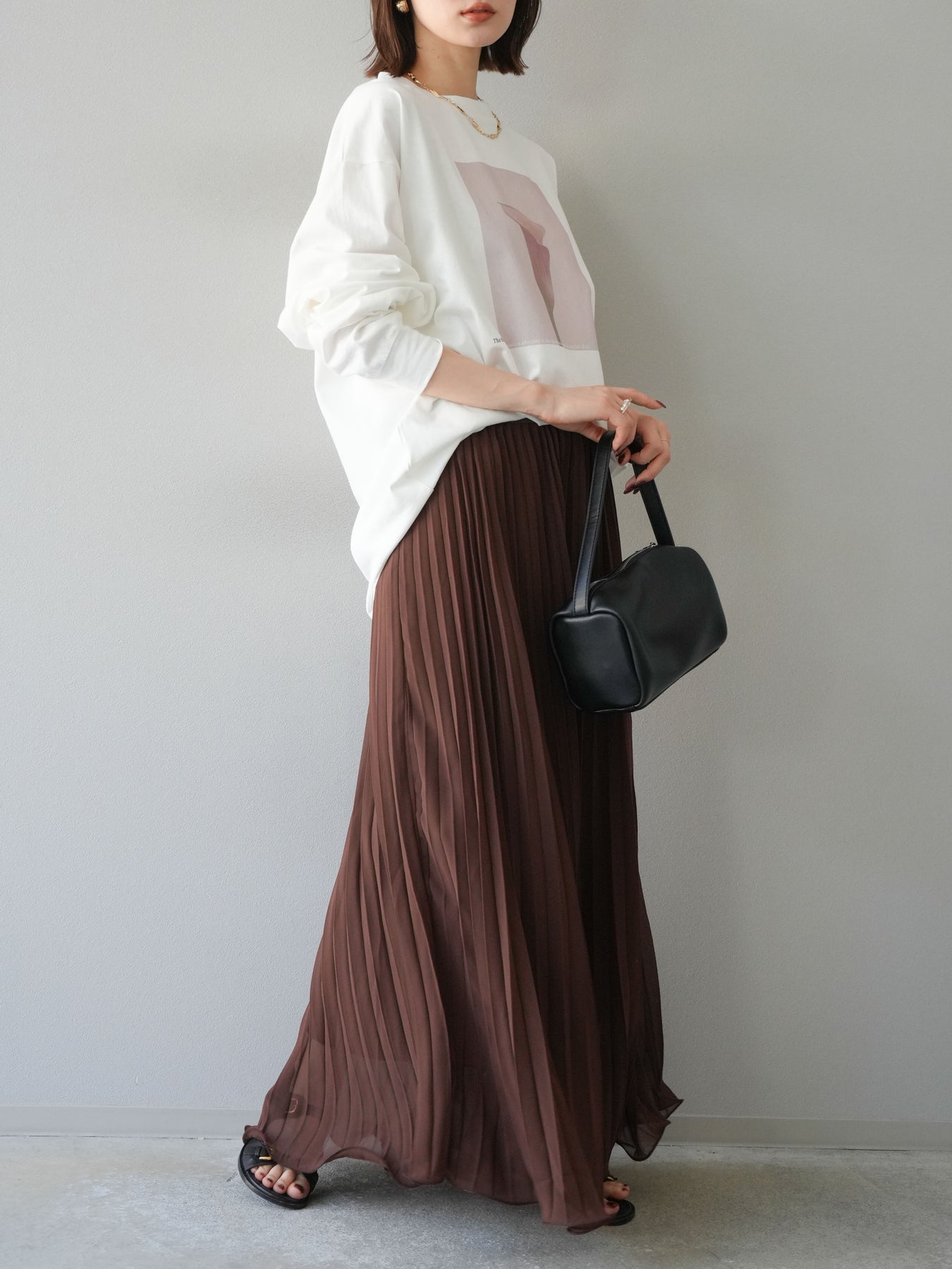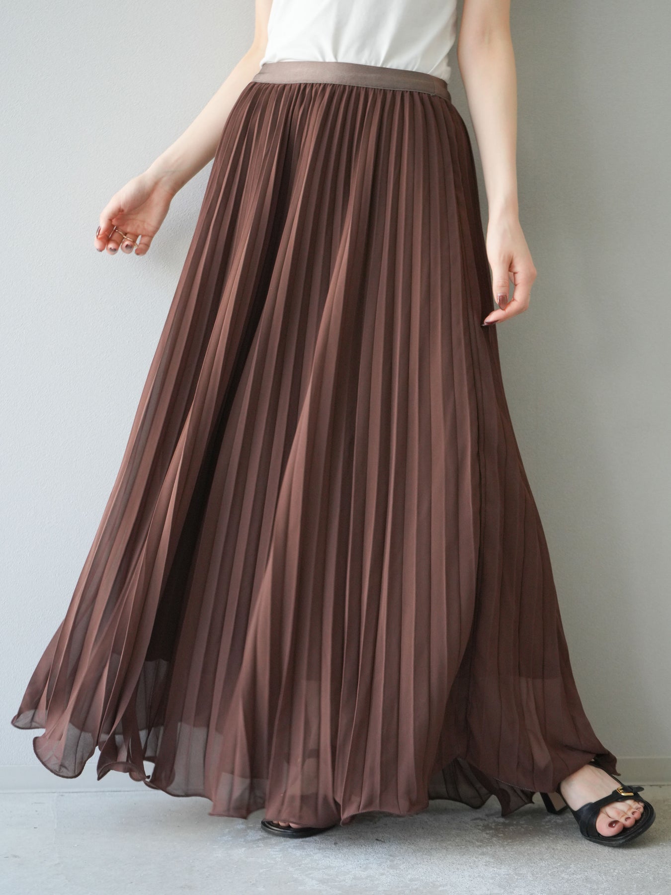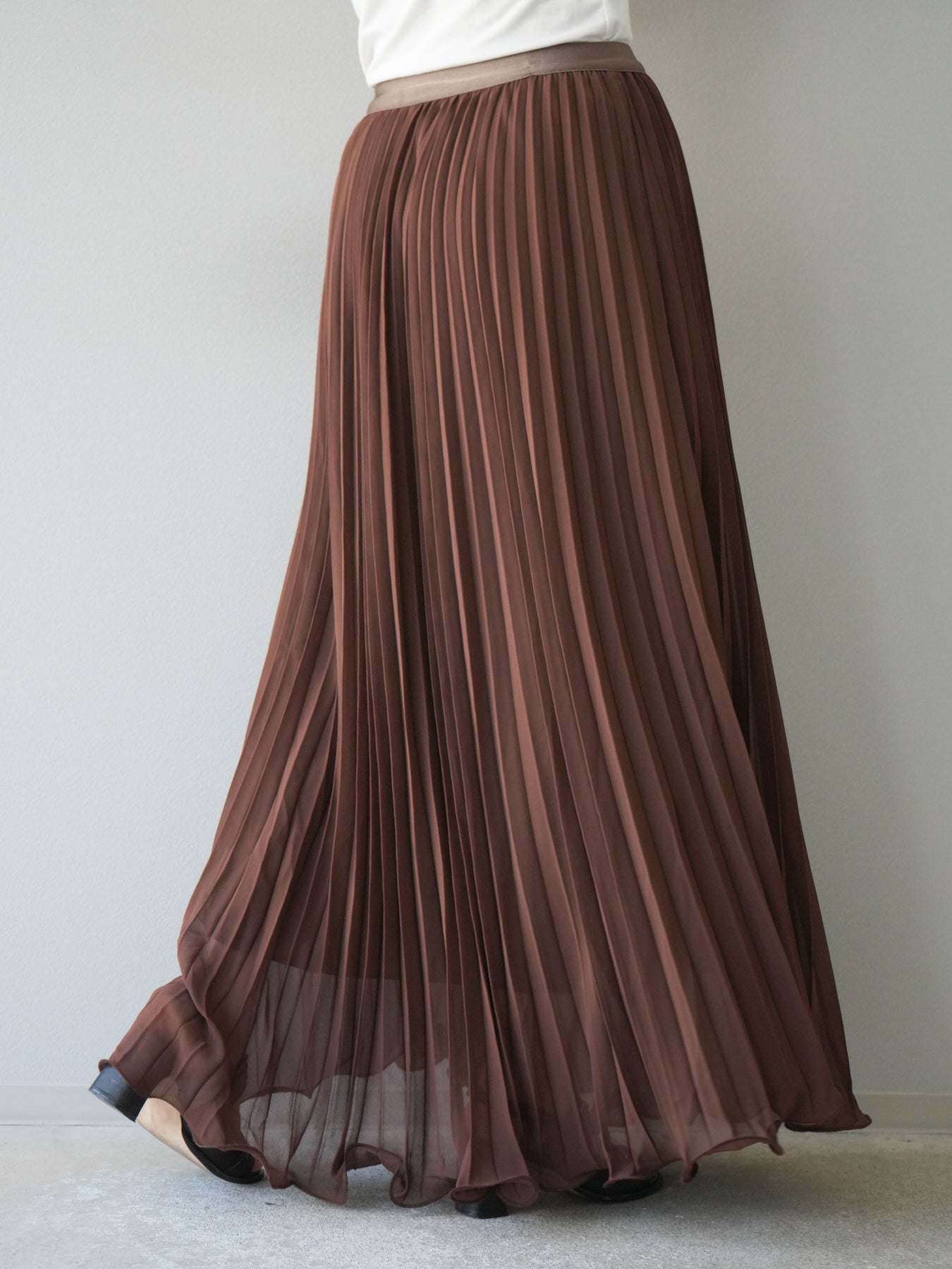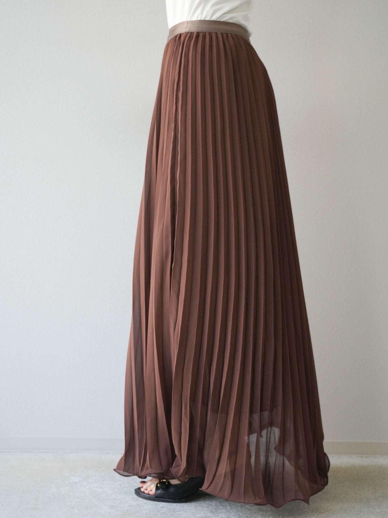 [予約]シフォンプリーツパイピングスカート/ブラウン