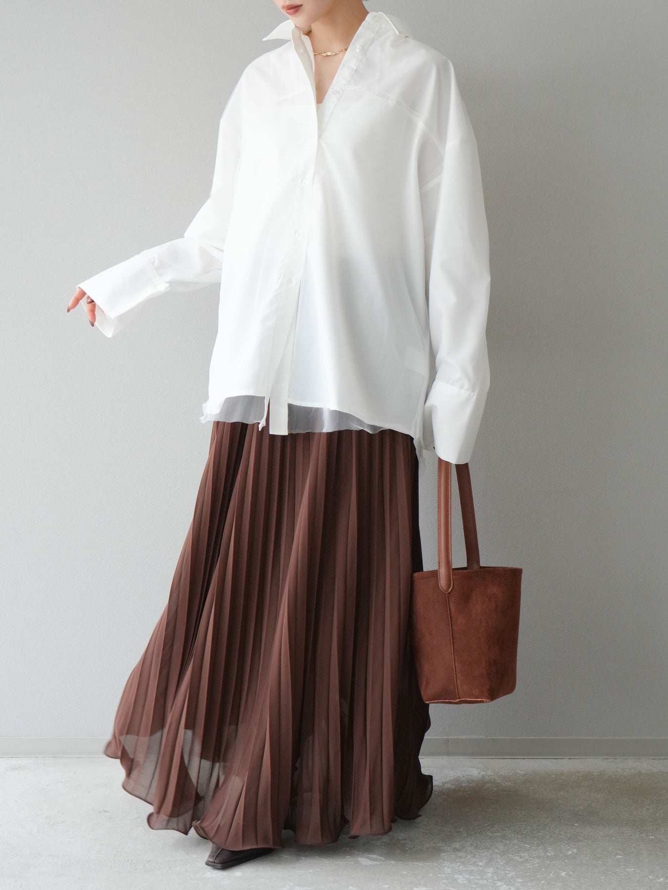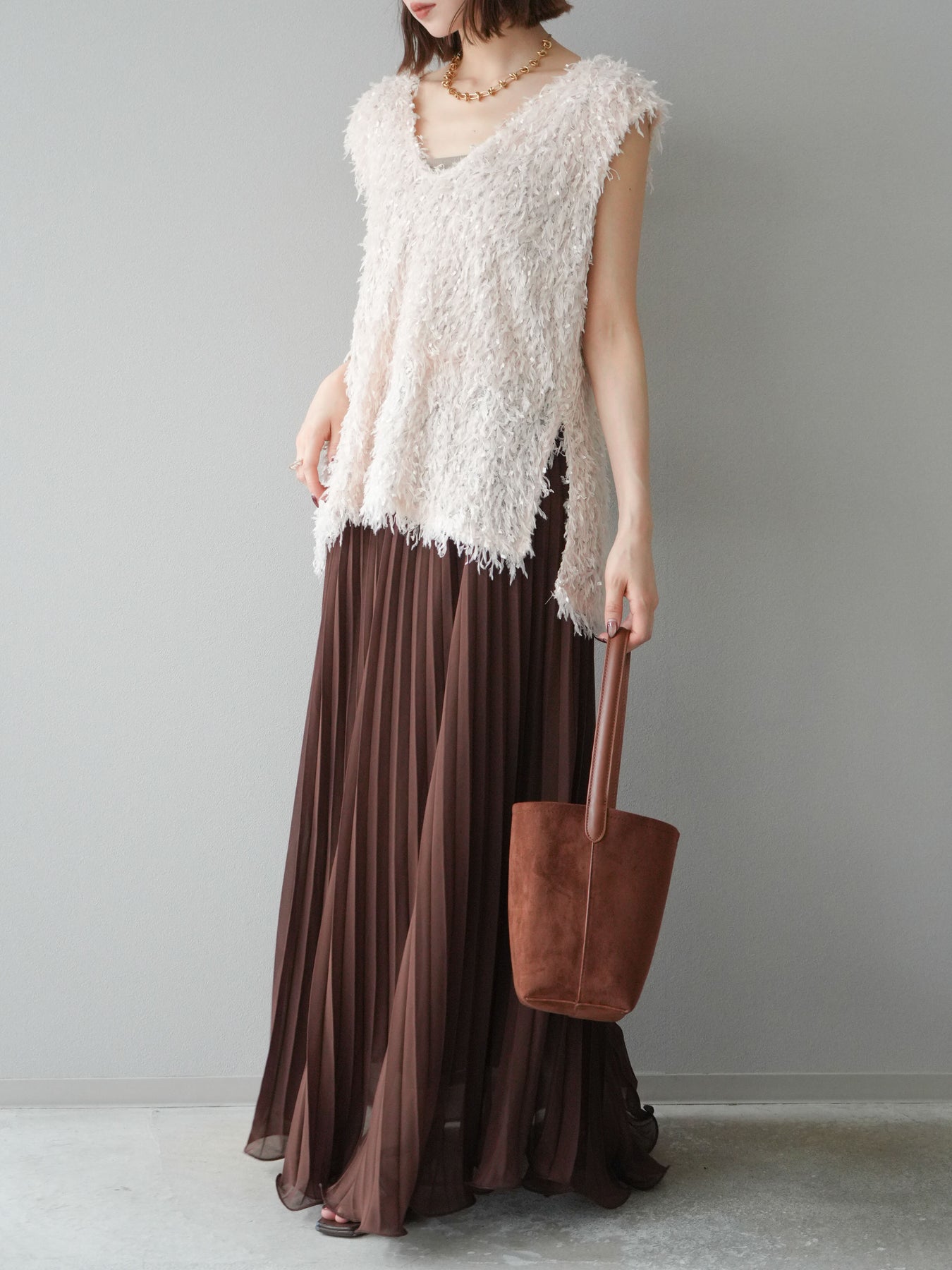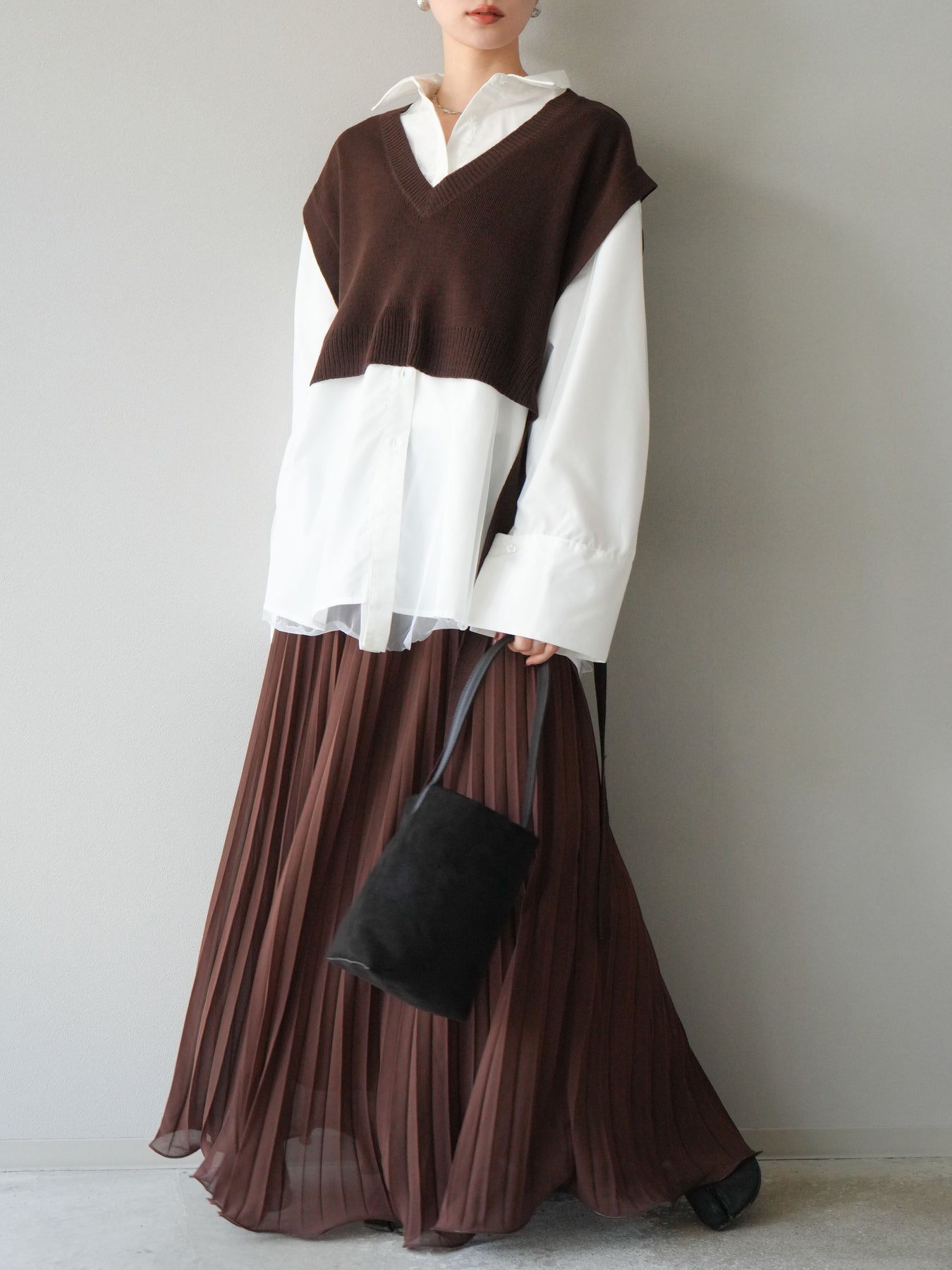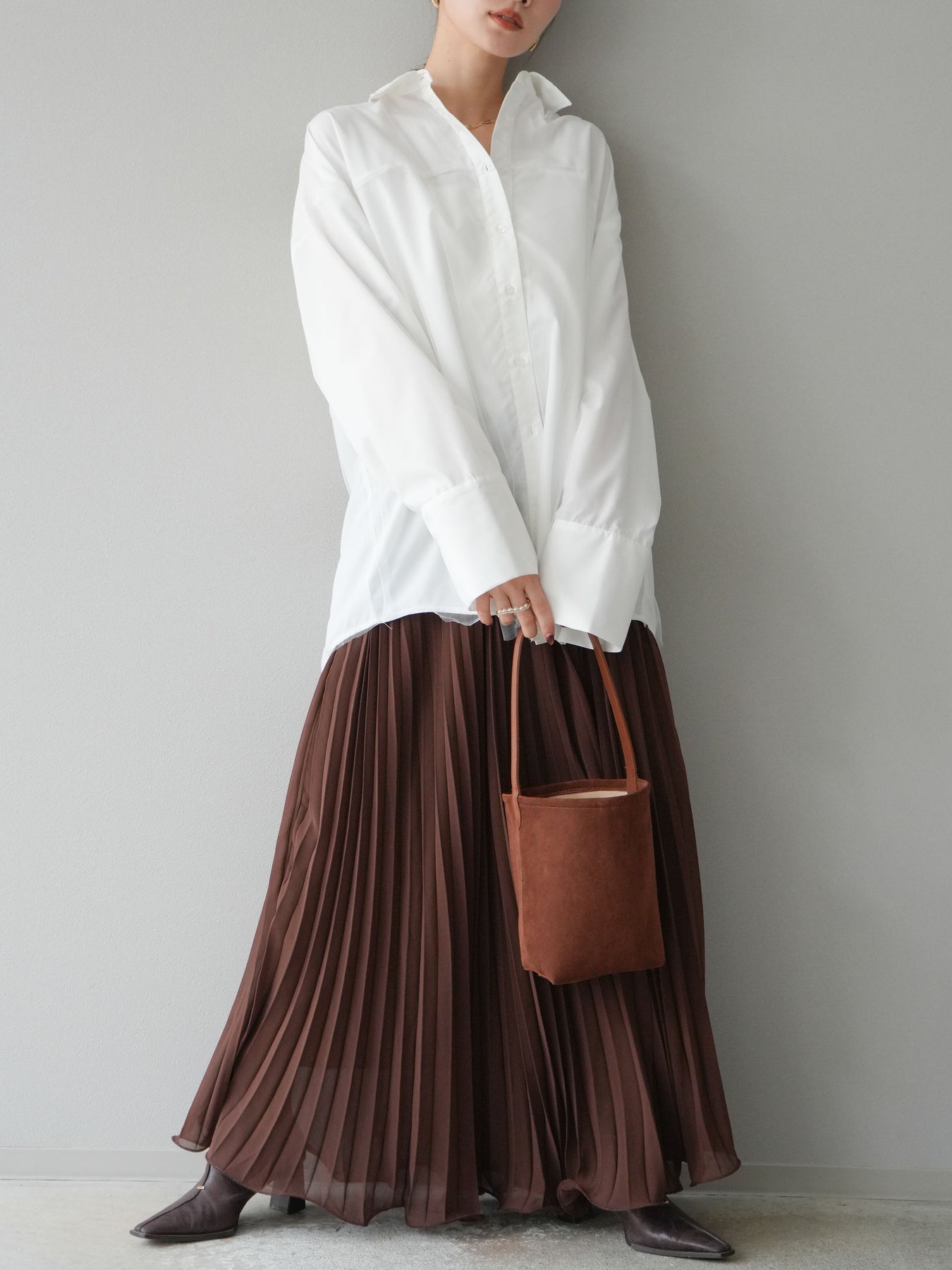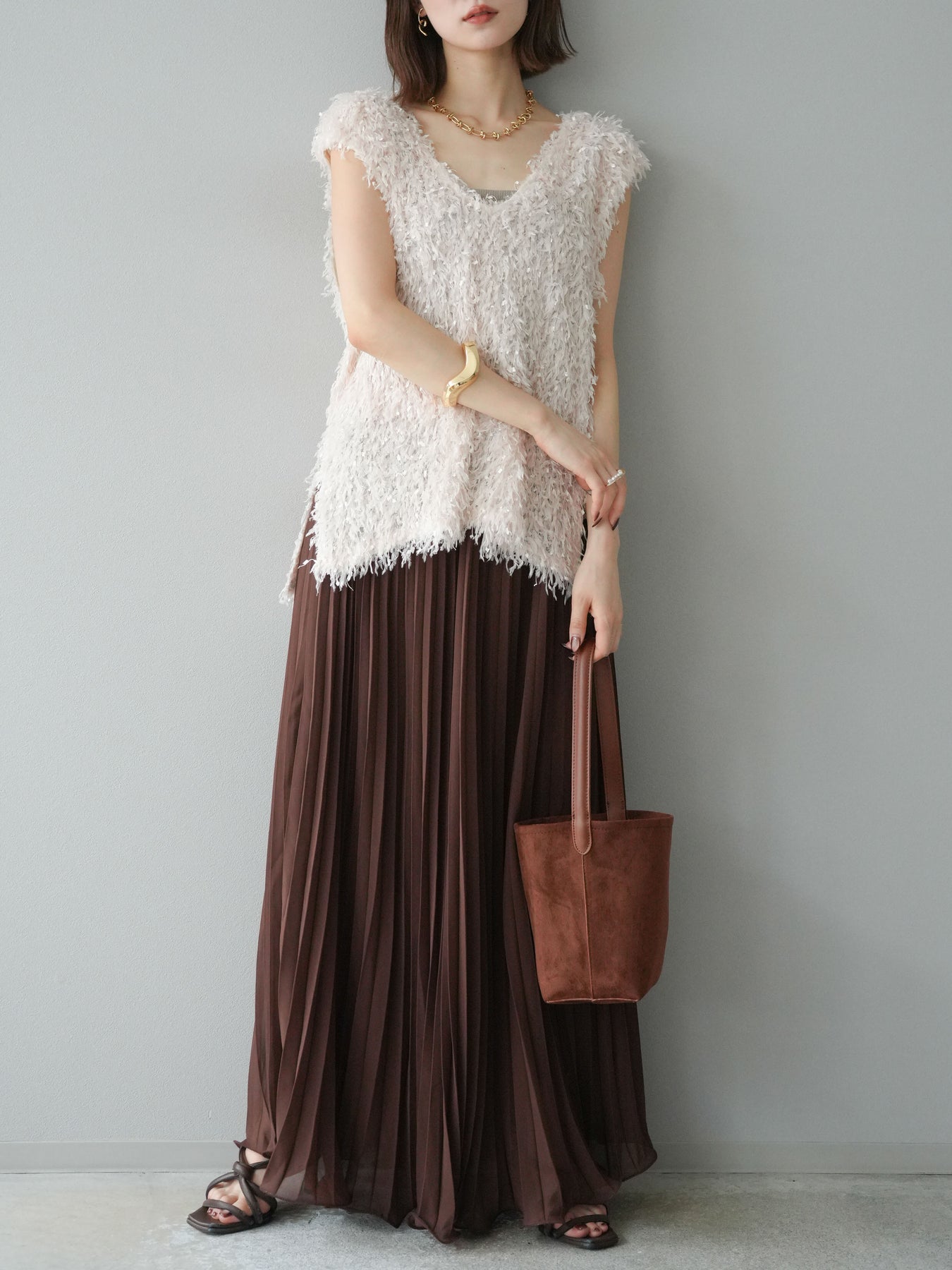 [予約]シフォンプリーツパイピングスカート/ブラウン