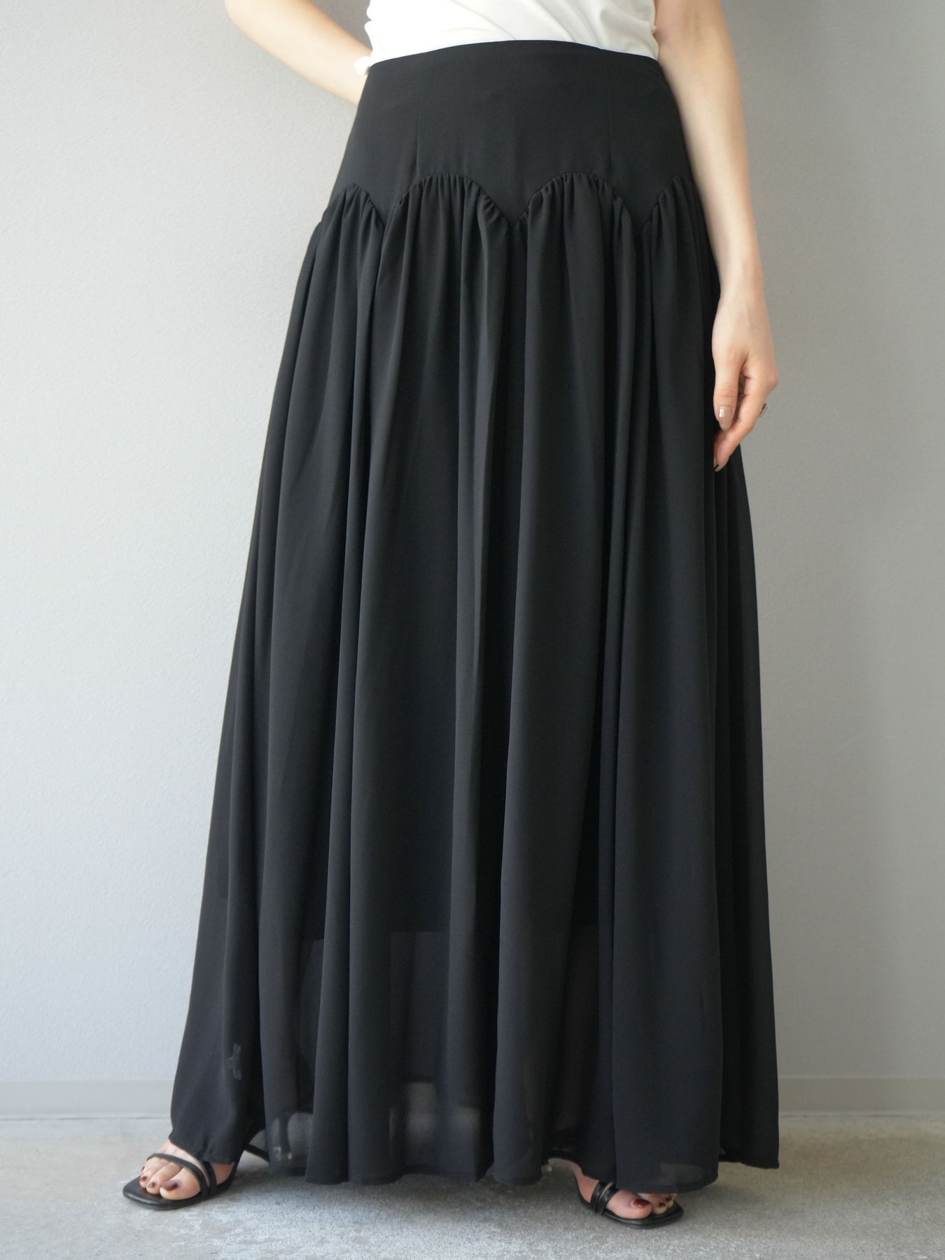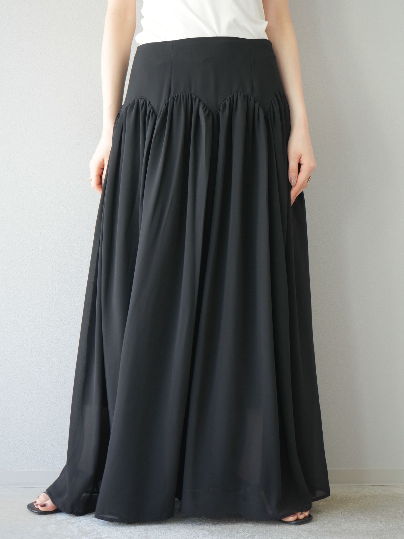 [予約]シフォンフレアスカート/ブラック