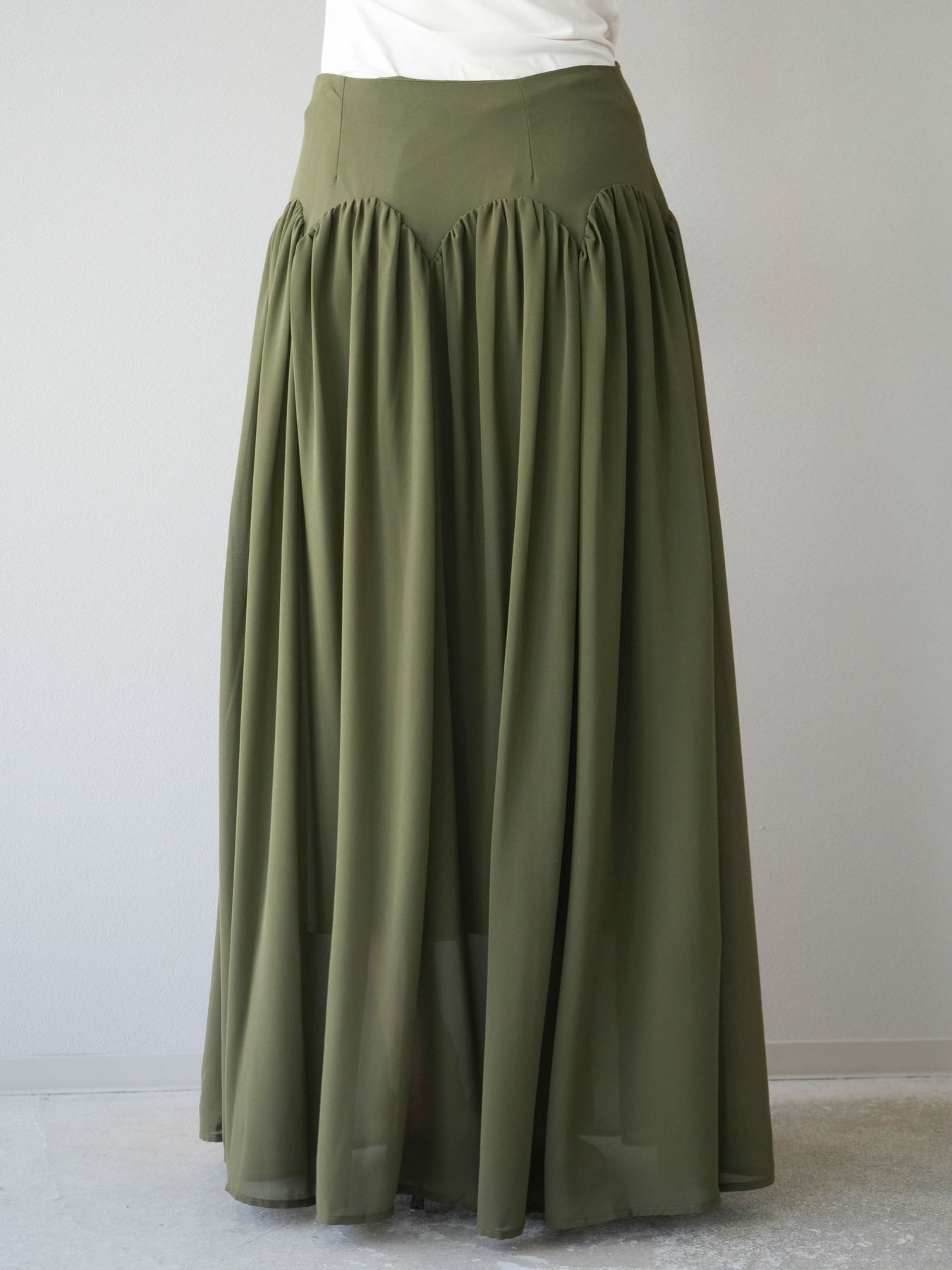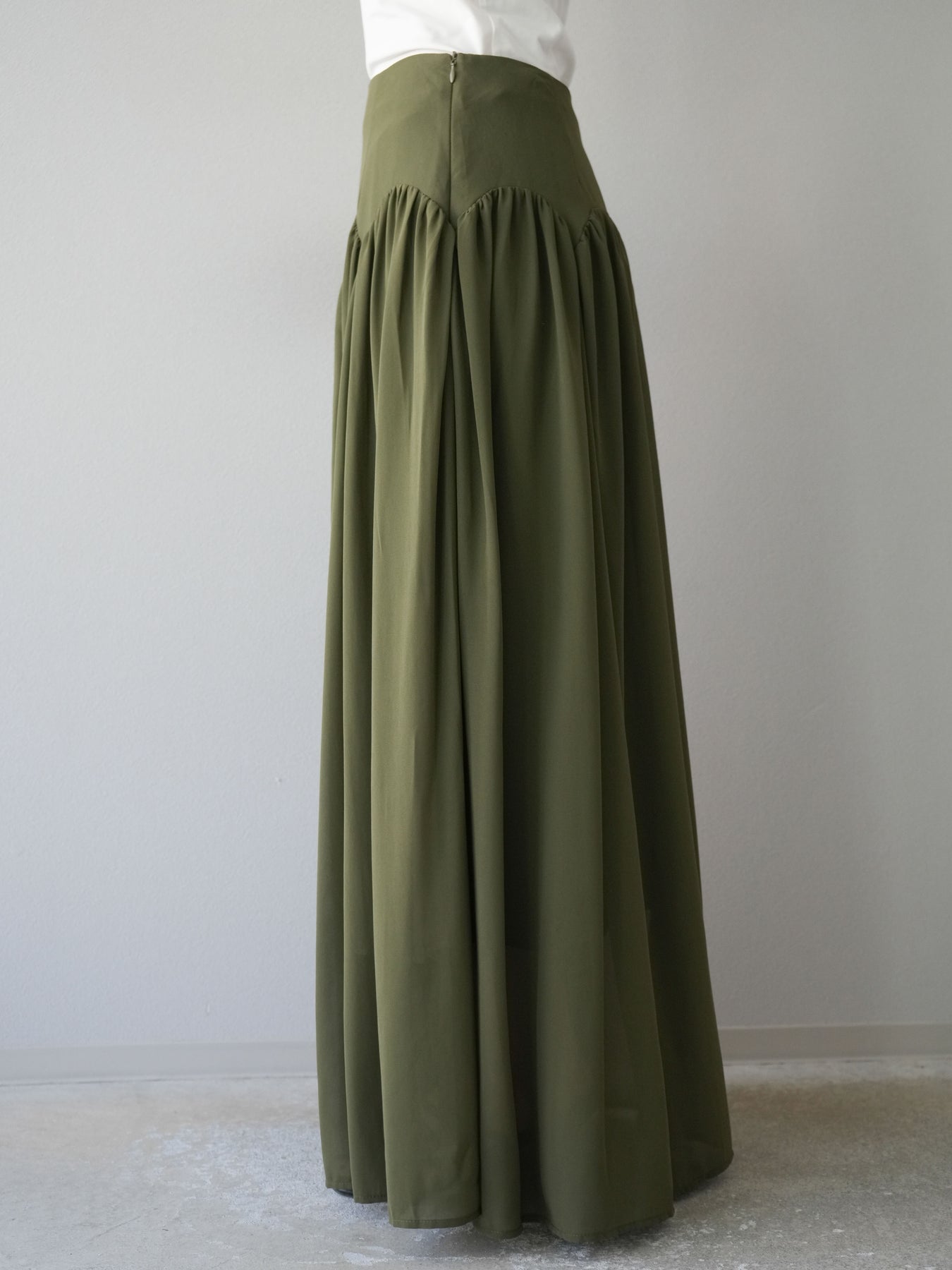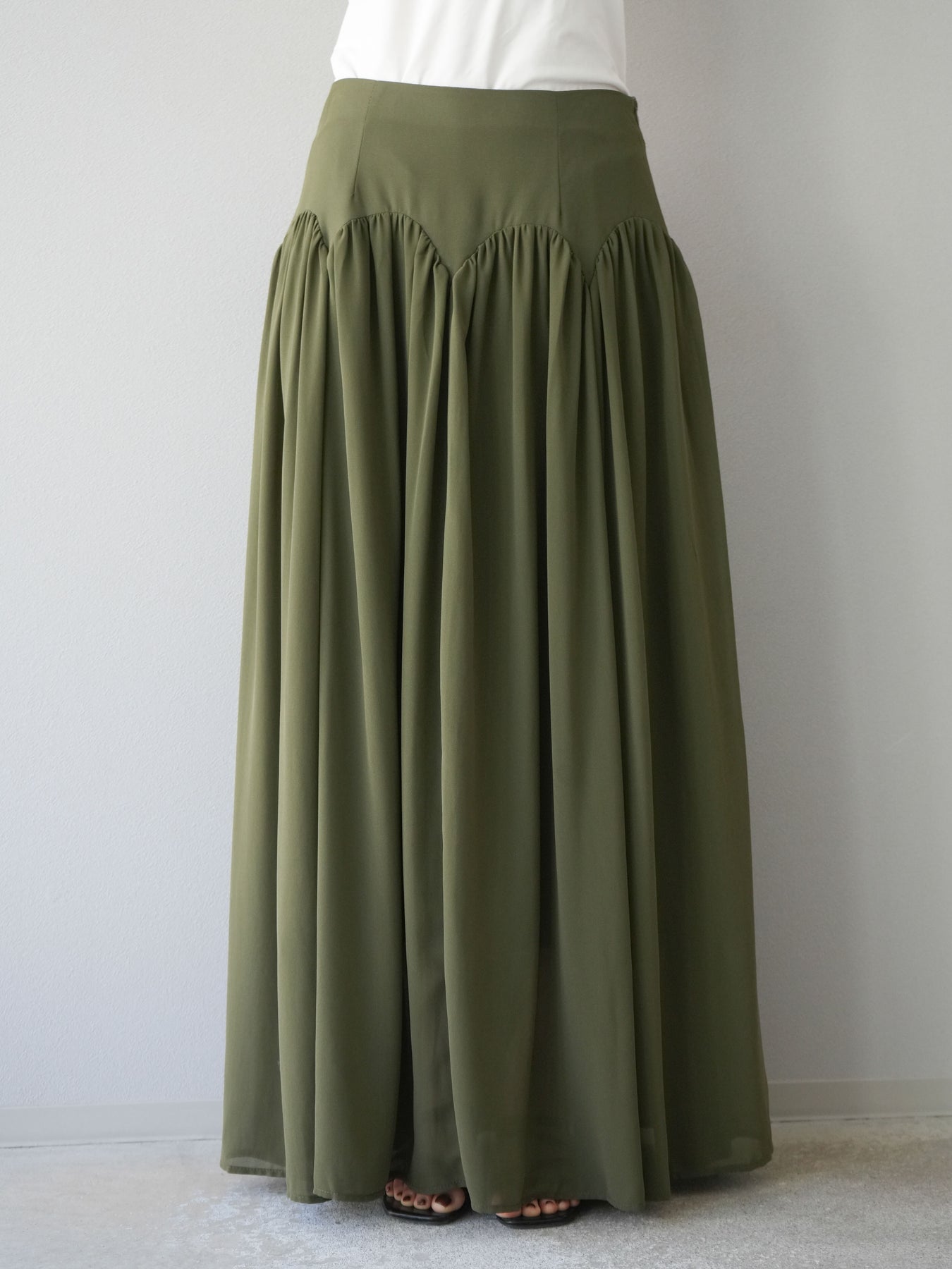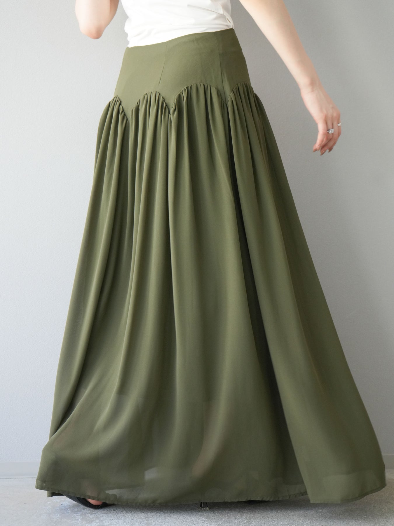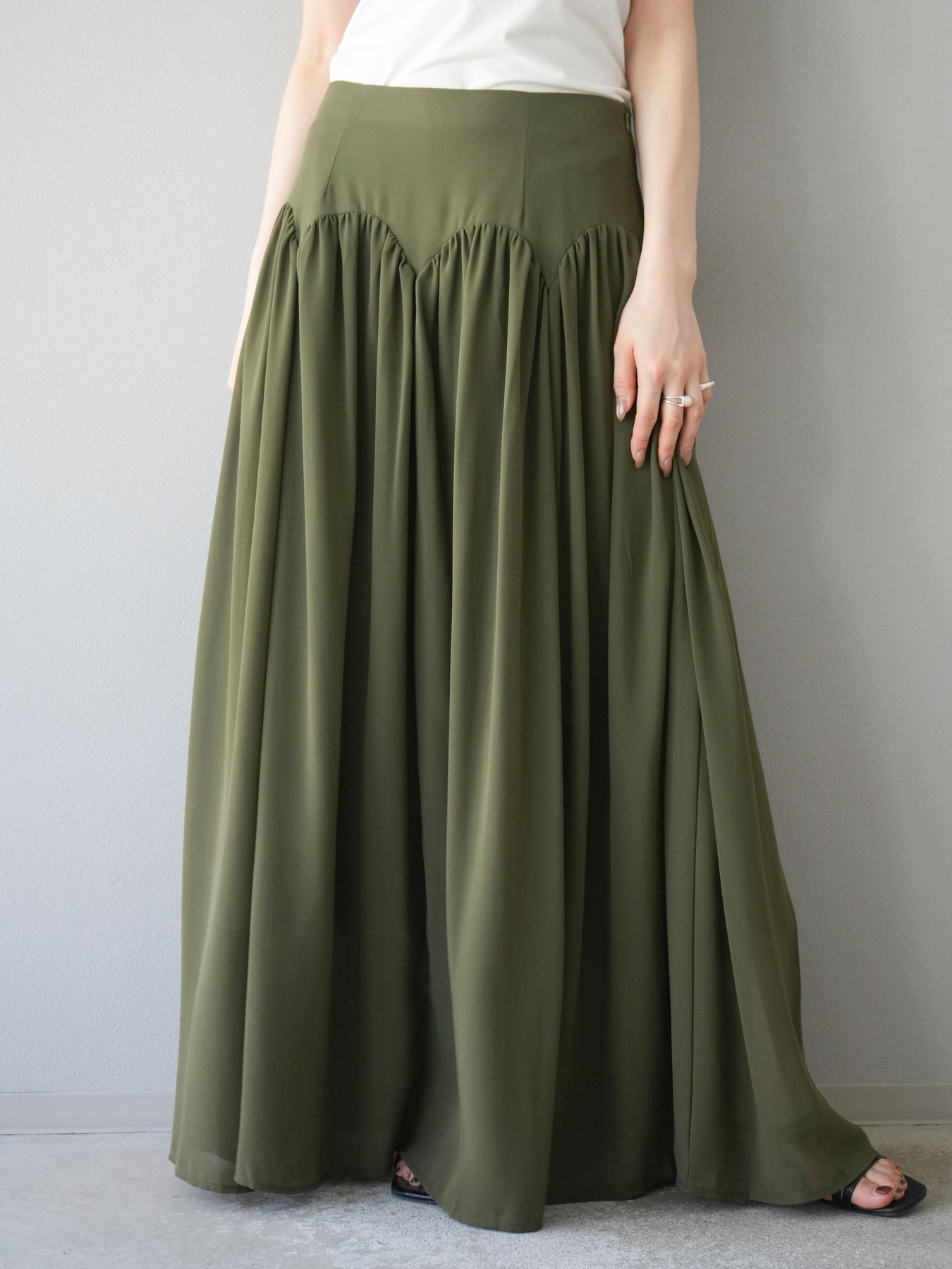 軽やかなシフォン素材を贅沢に使用したフレアスカート。動くたびにふわりと広がるシルエットが女性らしさを引き立てます。ウエスト周りはすっきりと仕上げ、トップスインもきれいに決まるデザイン。裏地付きで透け感を気にせず着用でき、シーズンレスで活躍します。 ※ボトムス、キャミソール(インナー)以外の商品は一律でインナーは付属していません