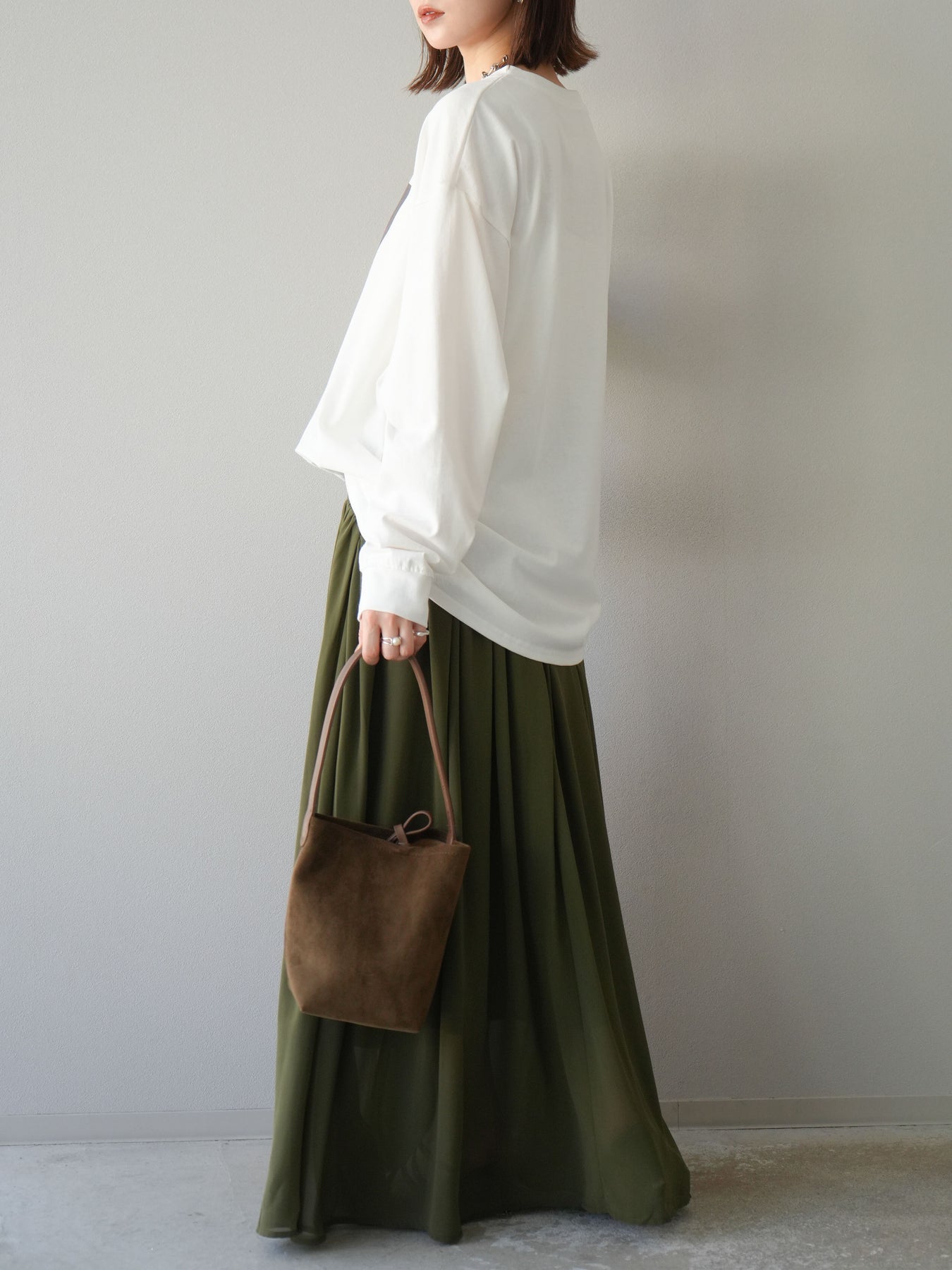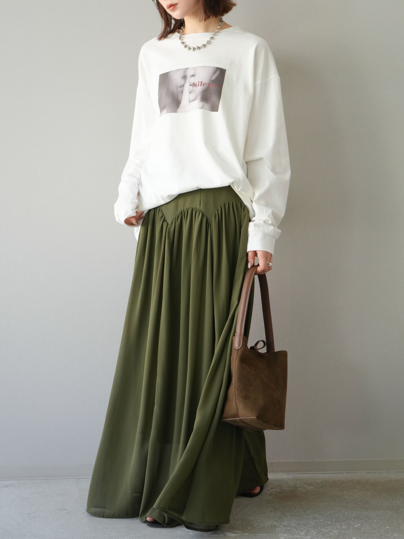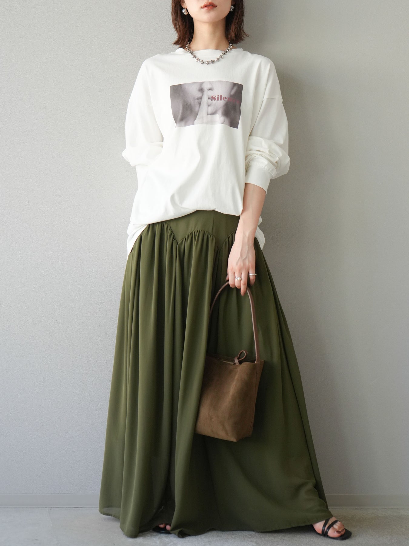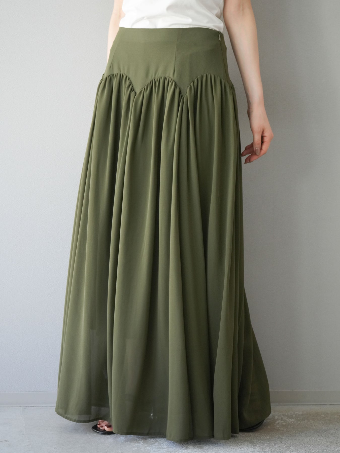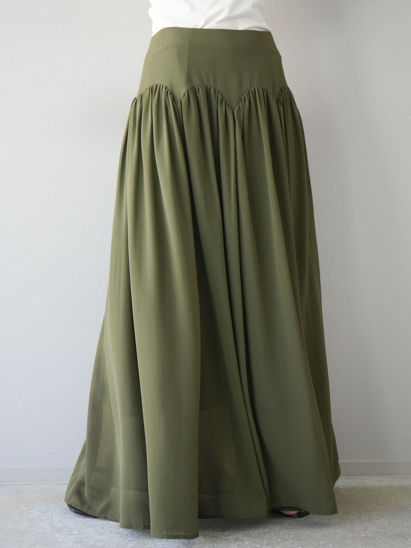 軽やかなシフォン素材を贅沢に使用したフレアスカート。動くたびにふわりと広がるシルエットが女性らしさを引き立てます。ウエスト周りはすっきりと仕上げ、トップスインもきれいに決まるデザイン。裏地付きで透け感を気にせず着用でき、シーズンレスで活躍します。 ※ボトムス、キャミソール(インナー)以外の商品は一律でインナーは付属していません