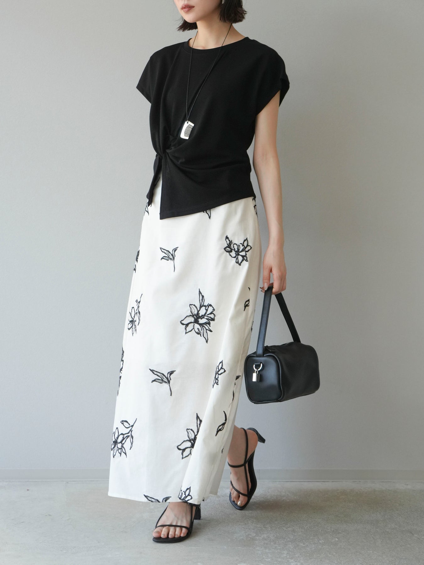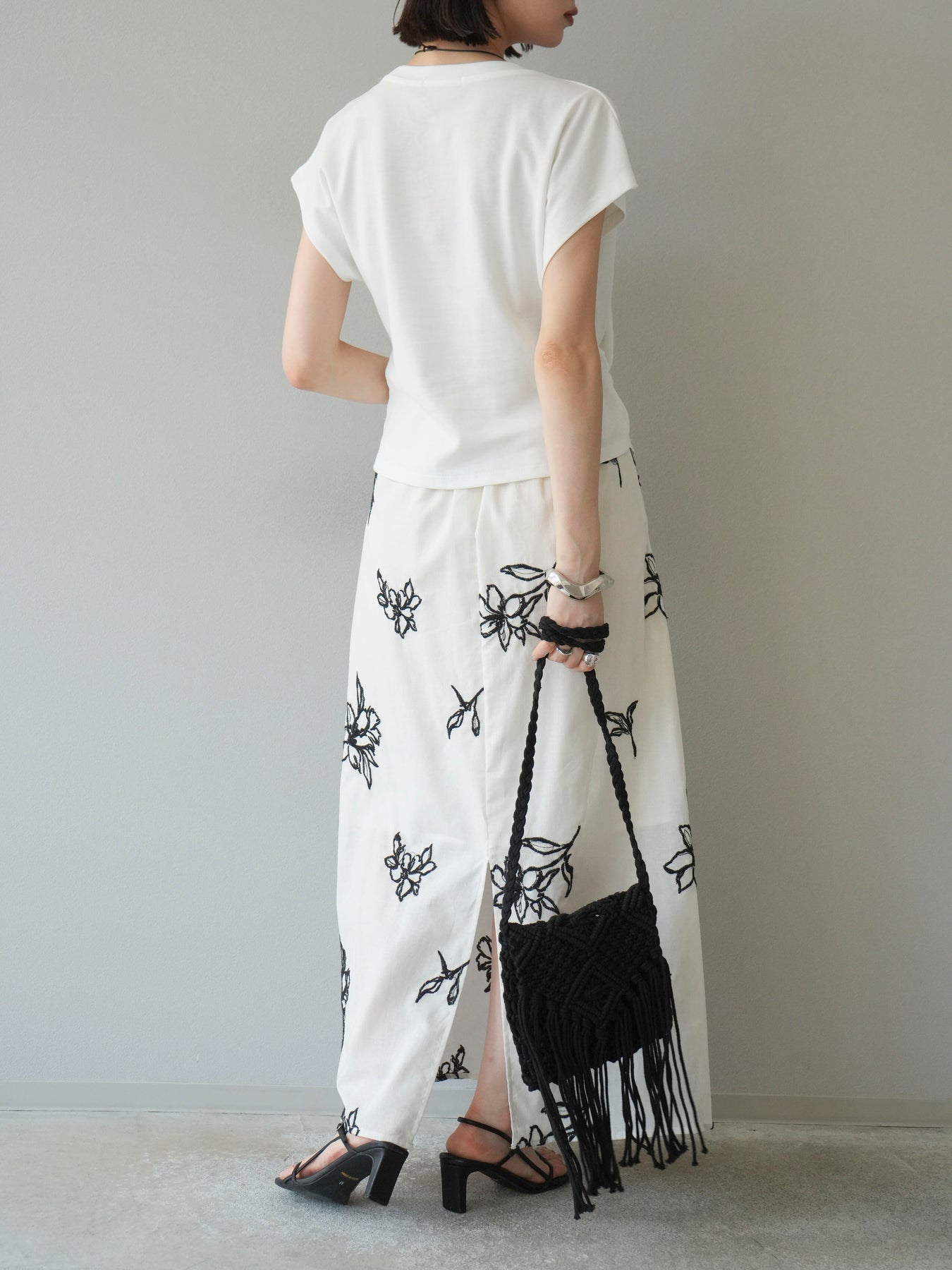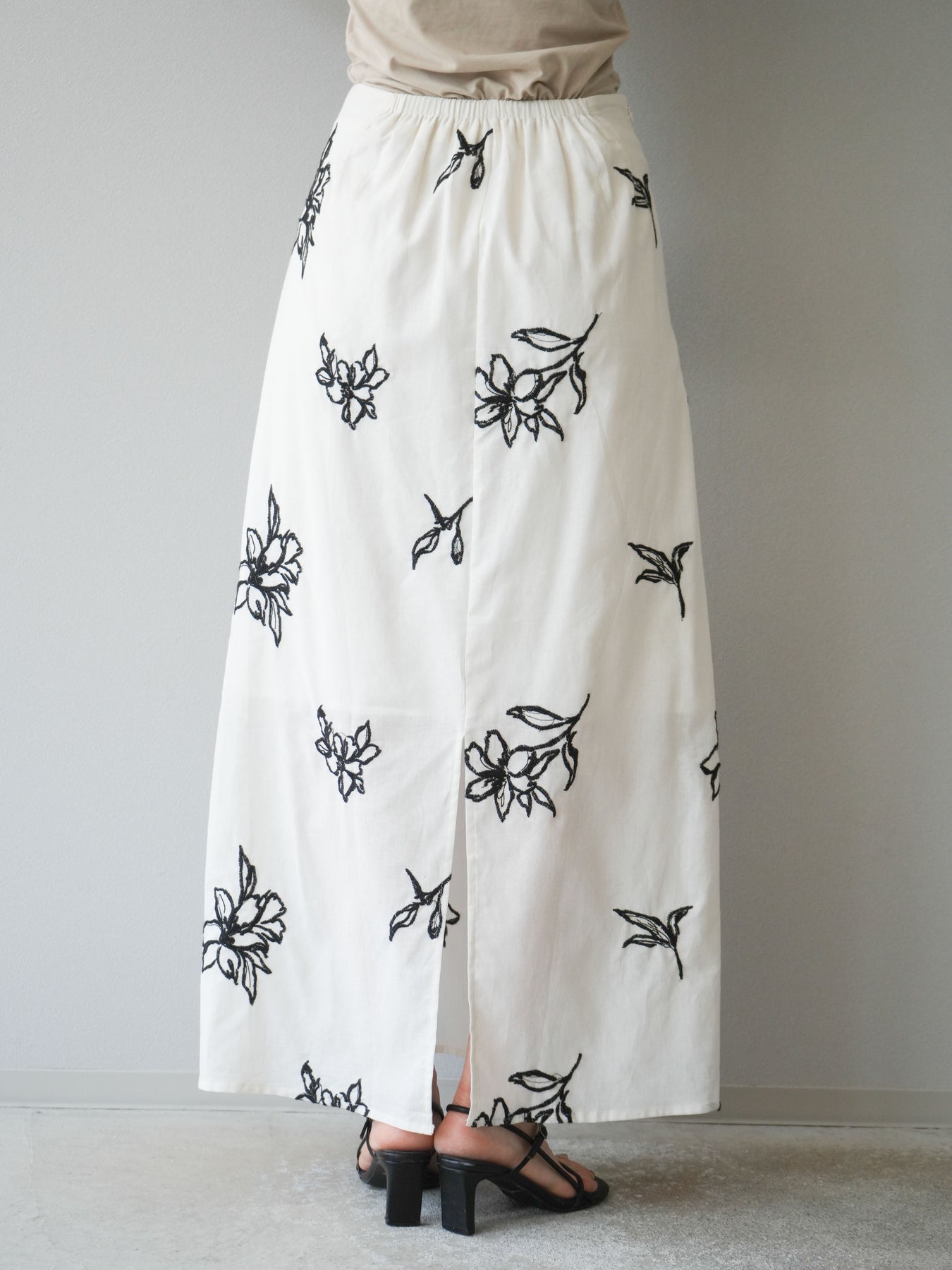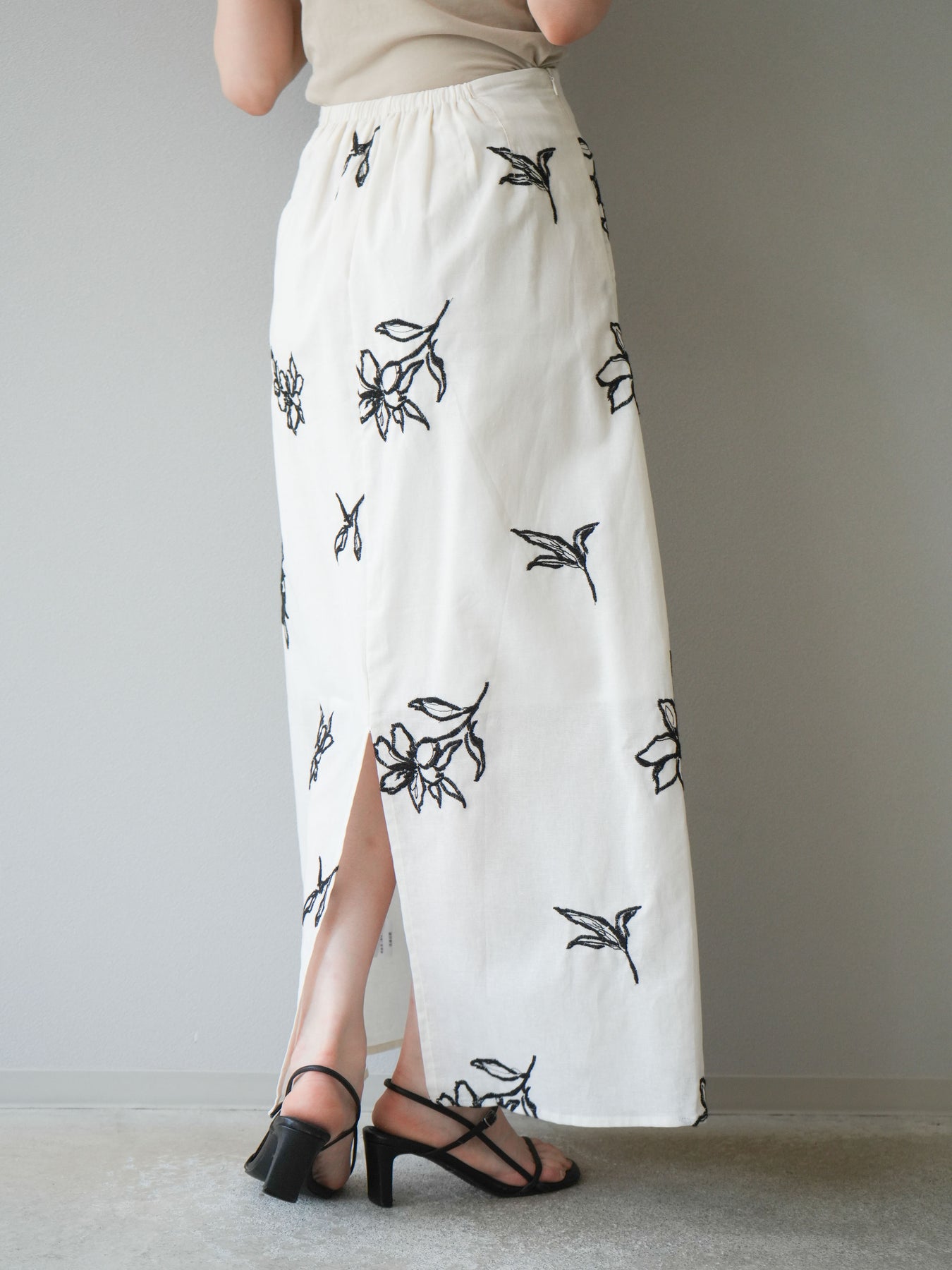 [予約]フラワー刺繍ナロースカート/ホワイト