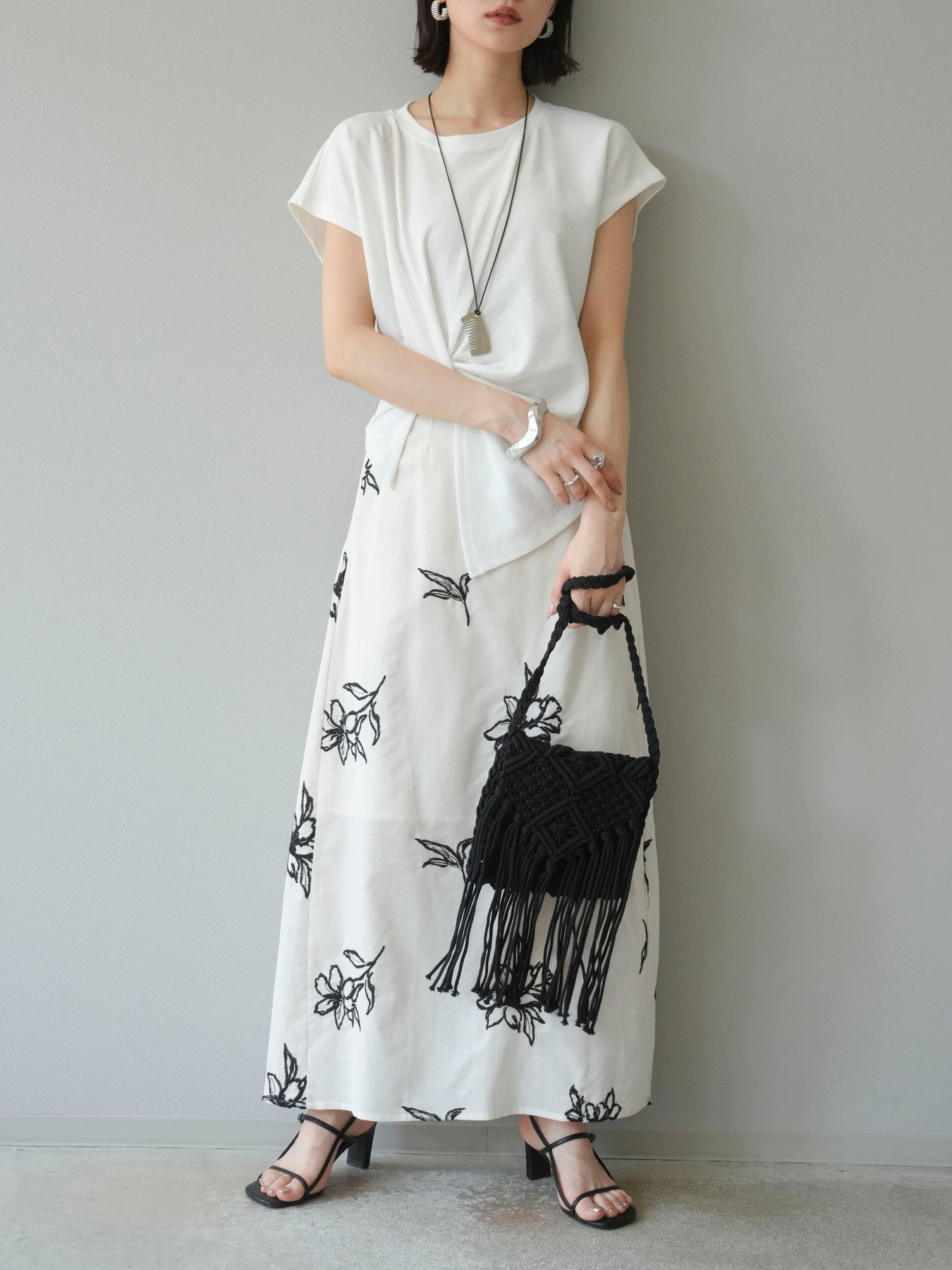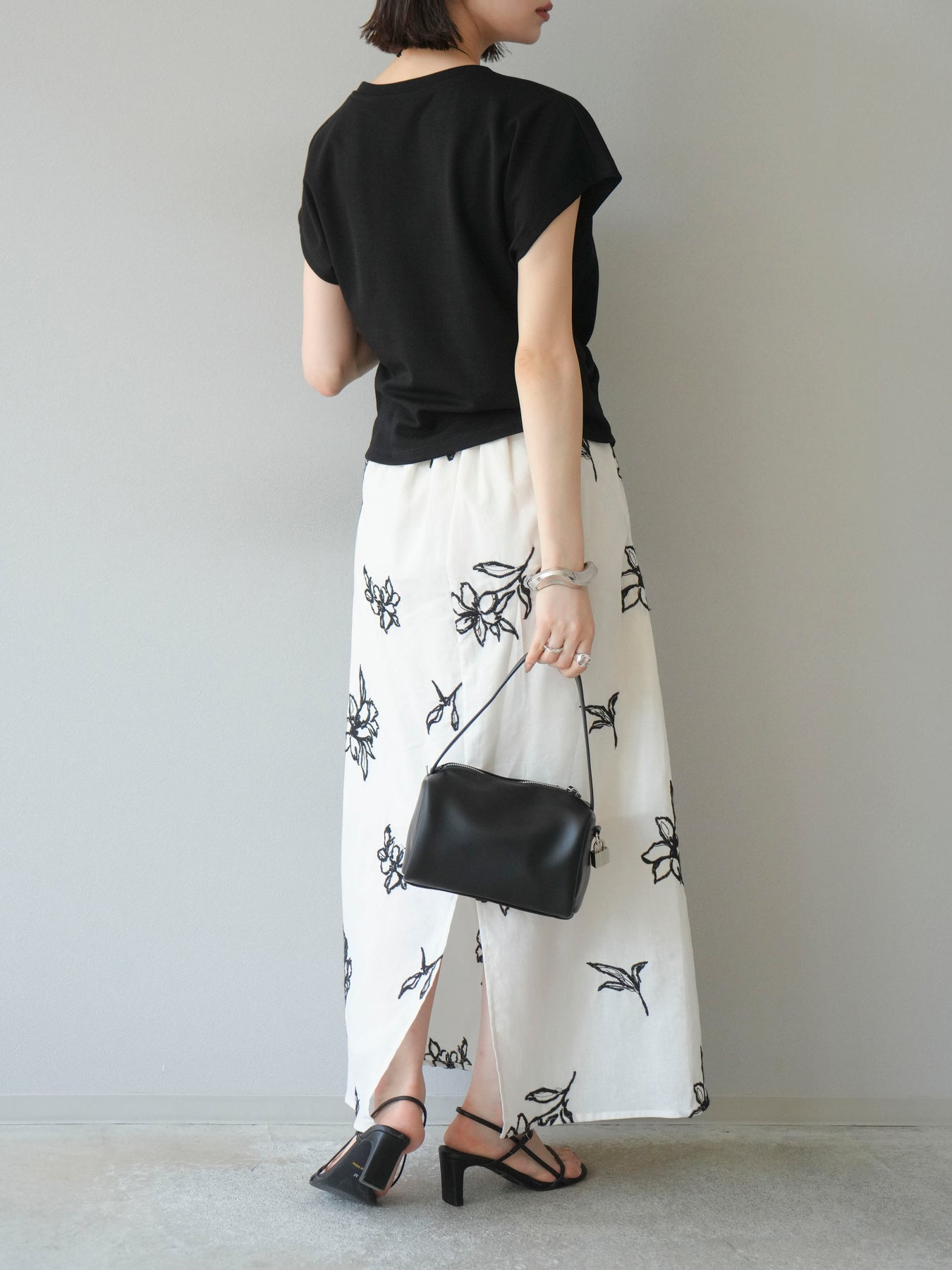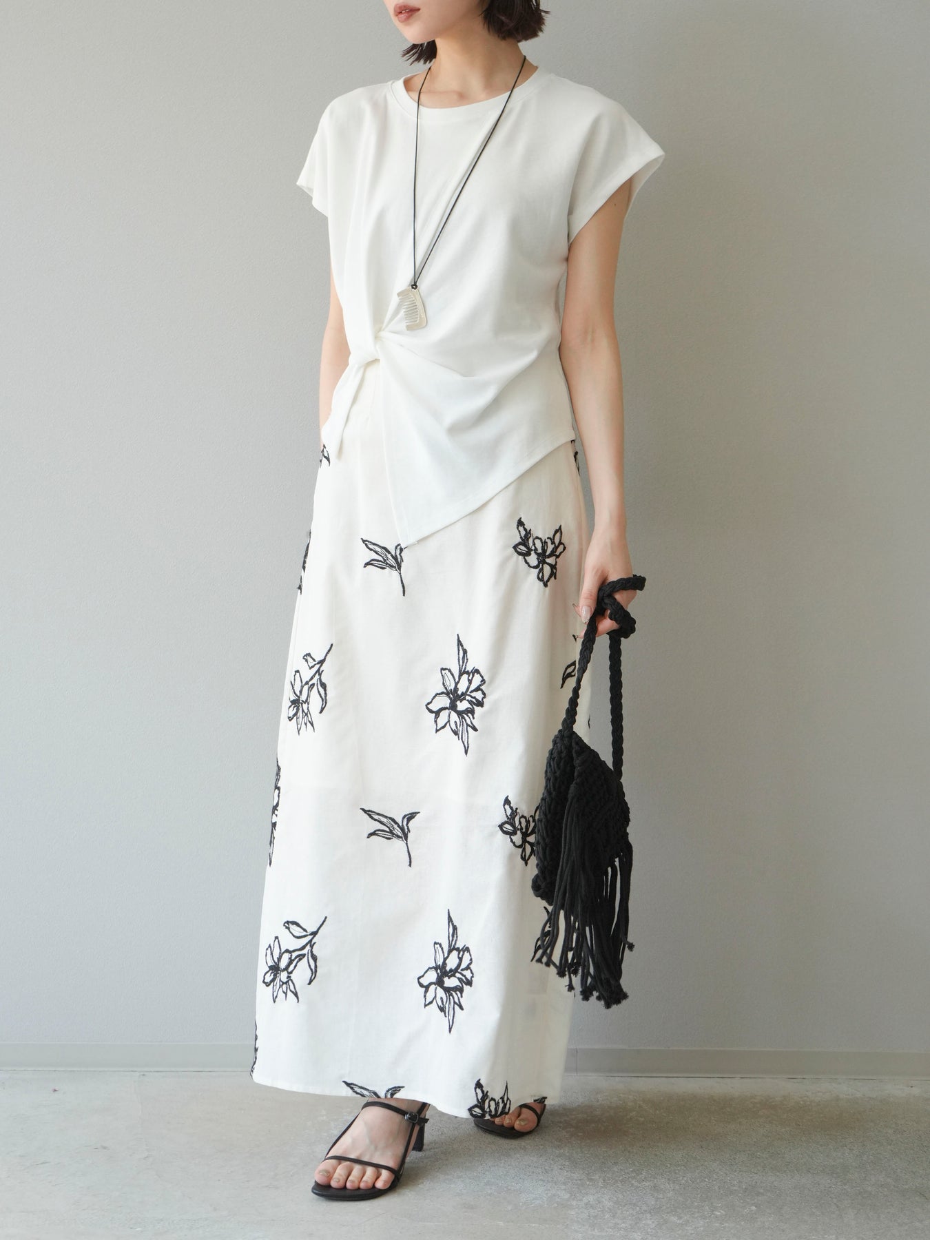 [予約]フラワー刺繍ナロースカート/ホワイト