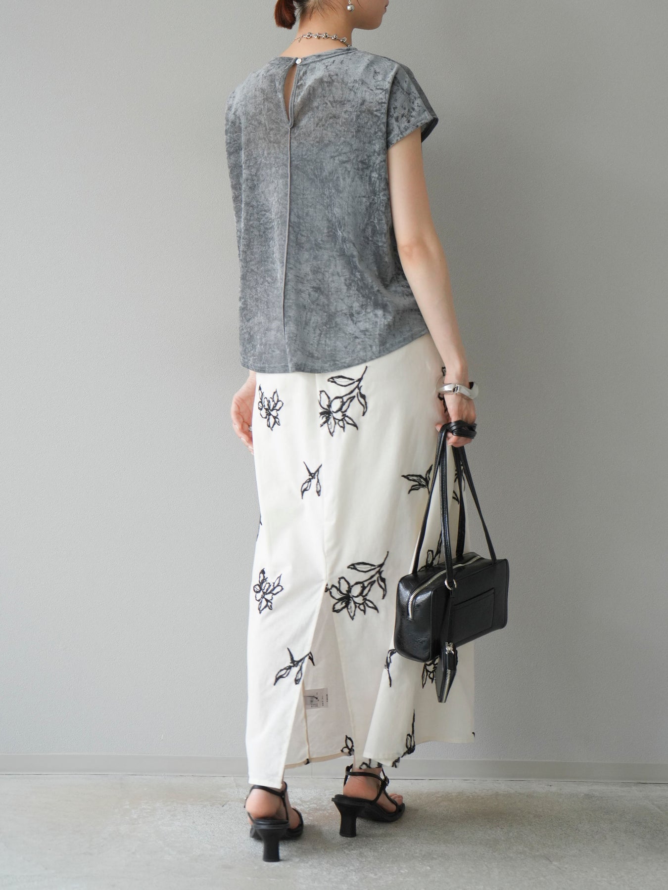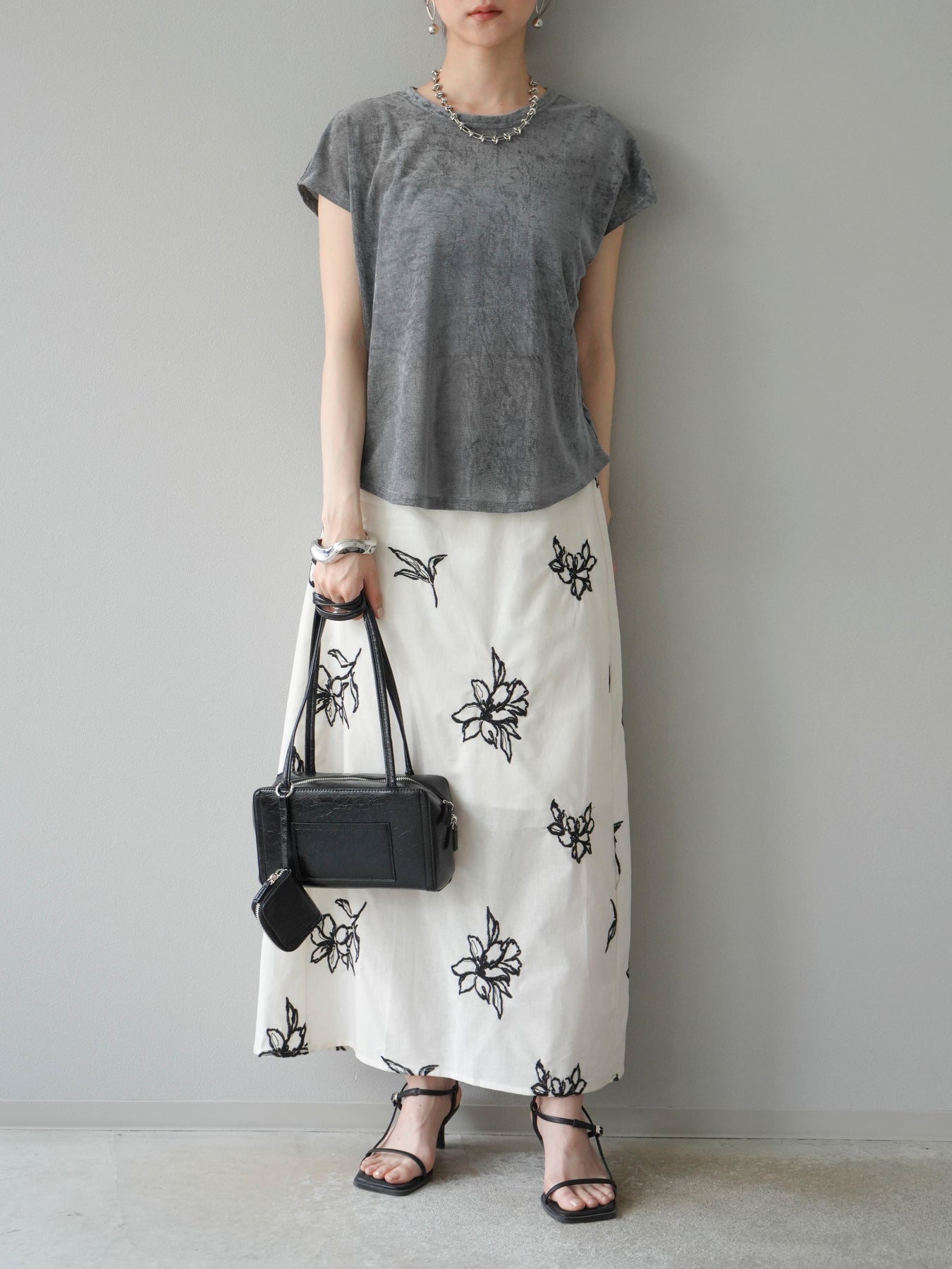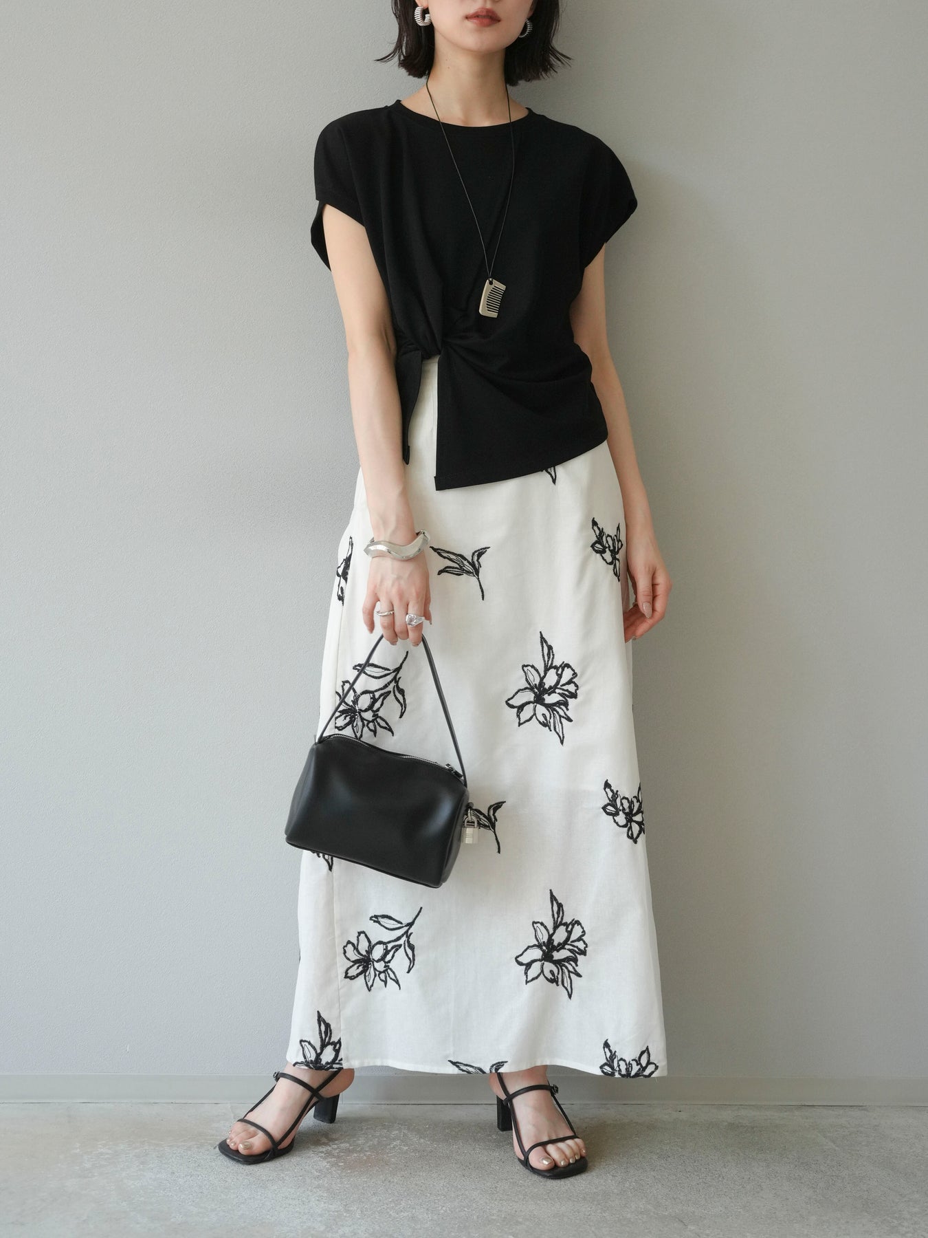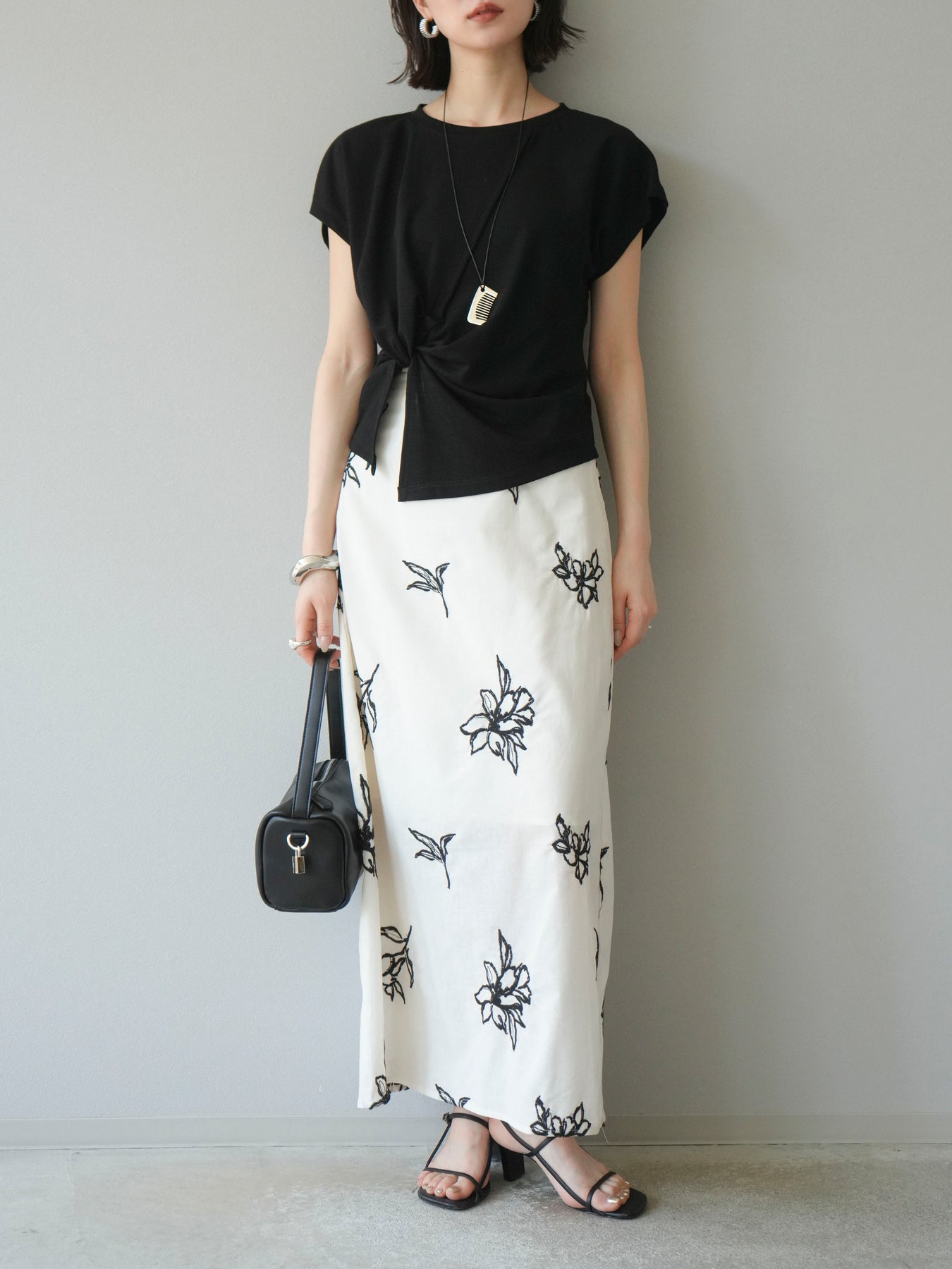 [予約]フラワー刺繍ナロースカート/ホワイト