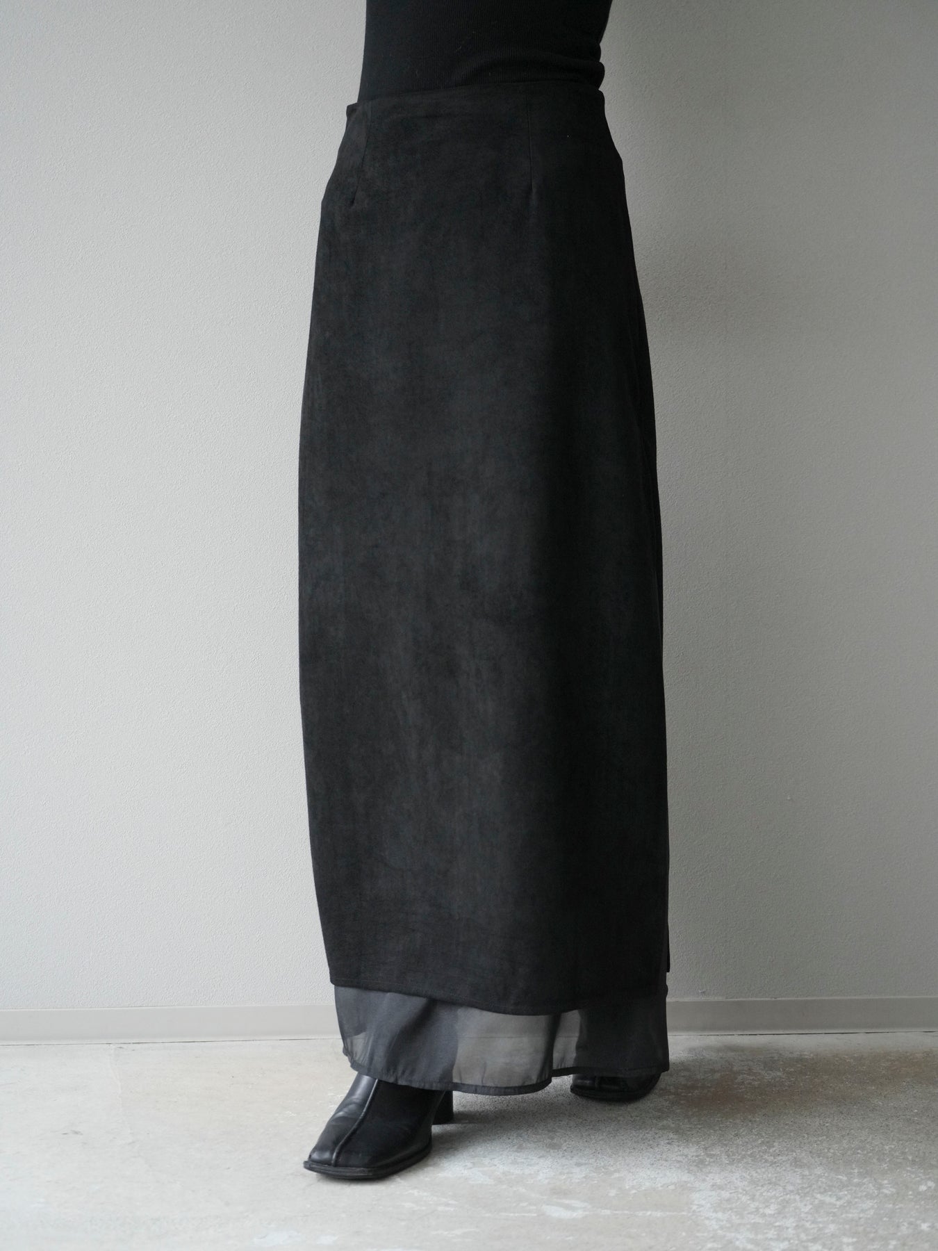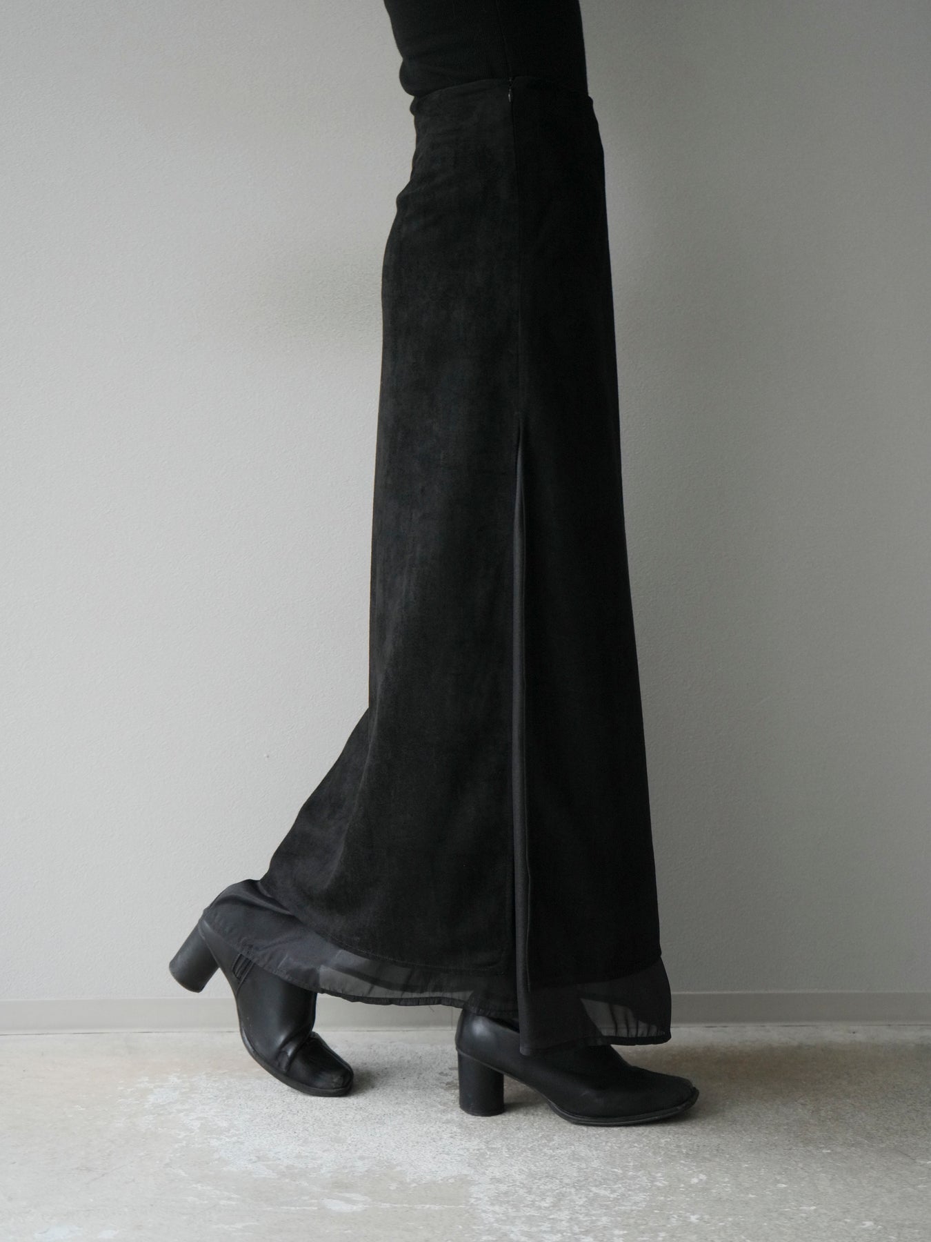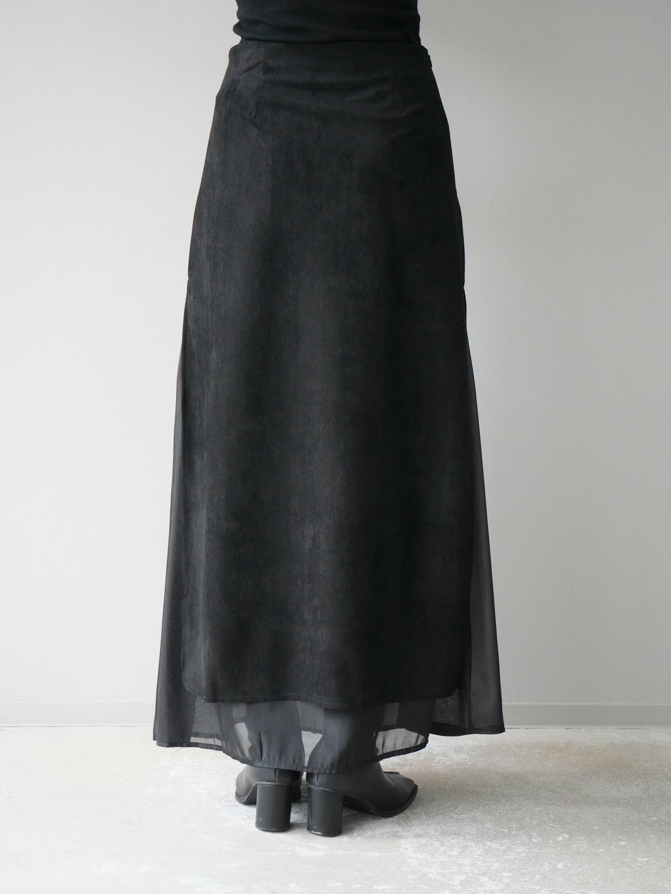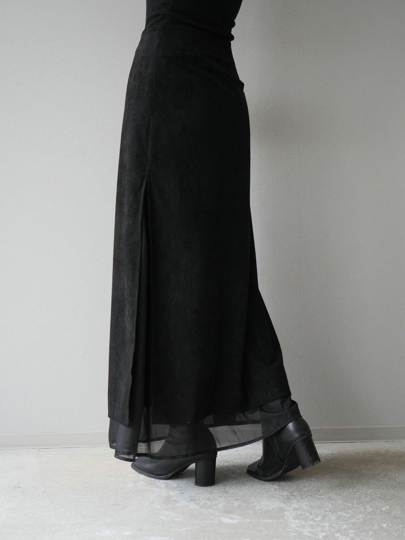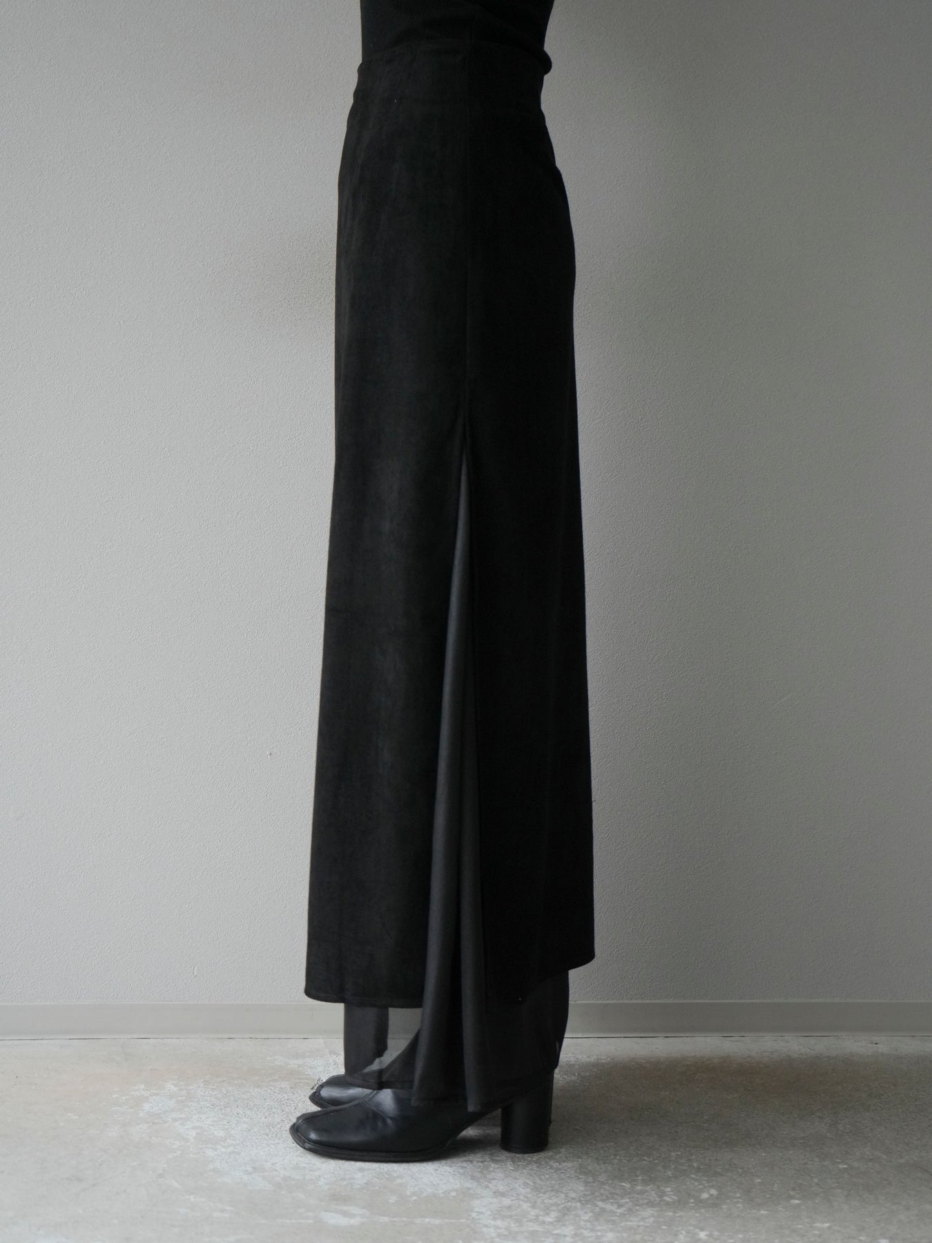 [予約]サイドスリットスウェードドッキングシフォンスカート/ブラック
