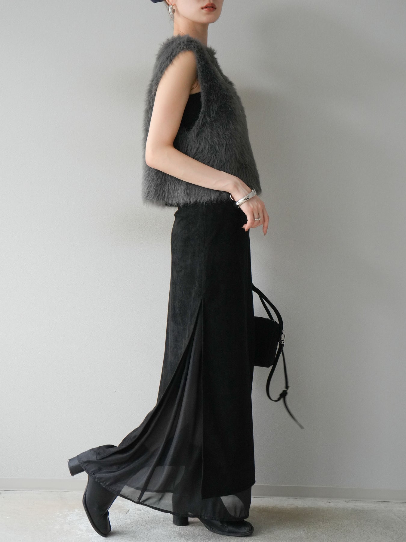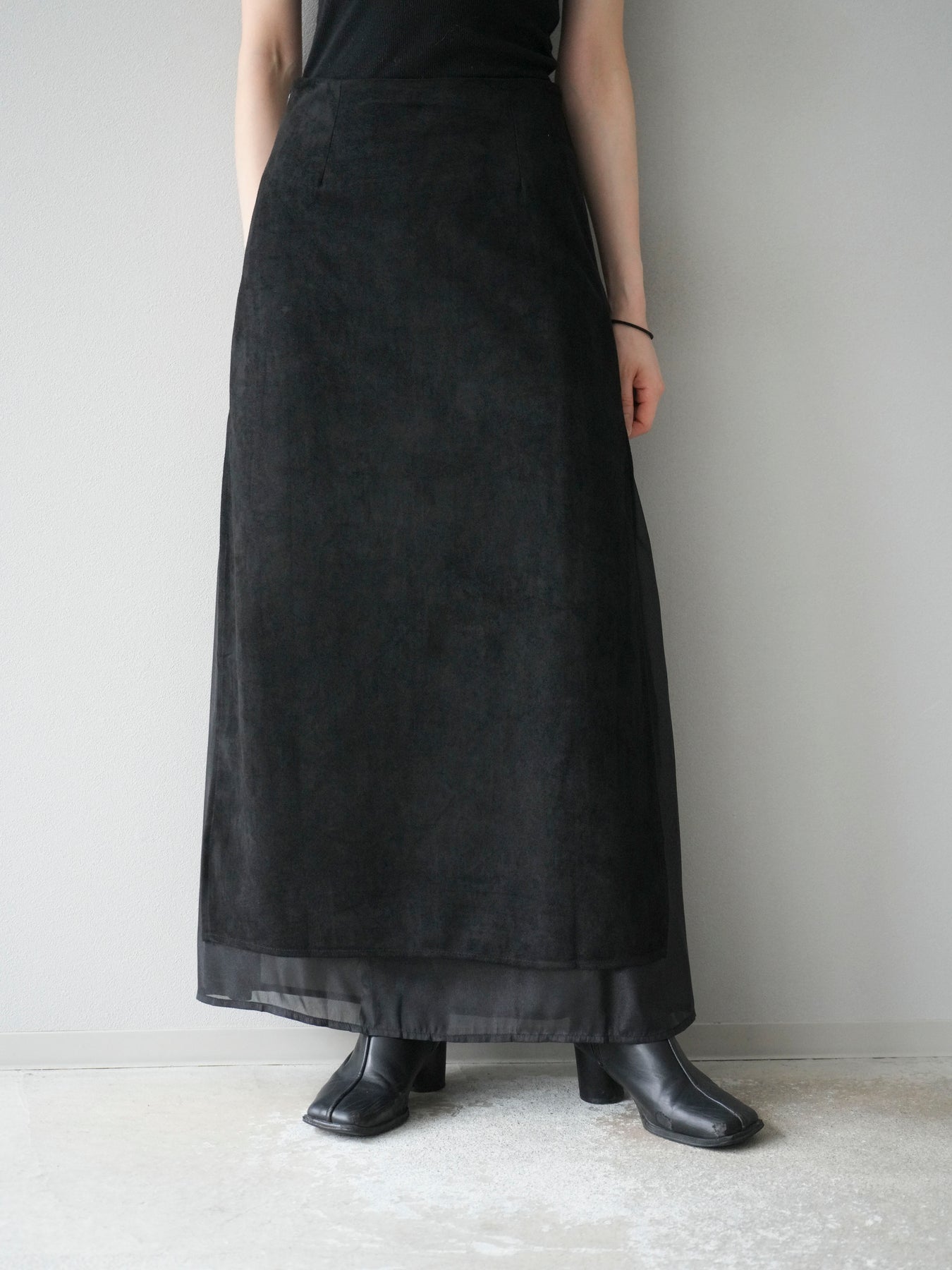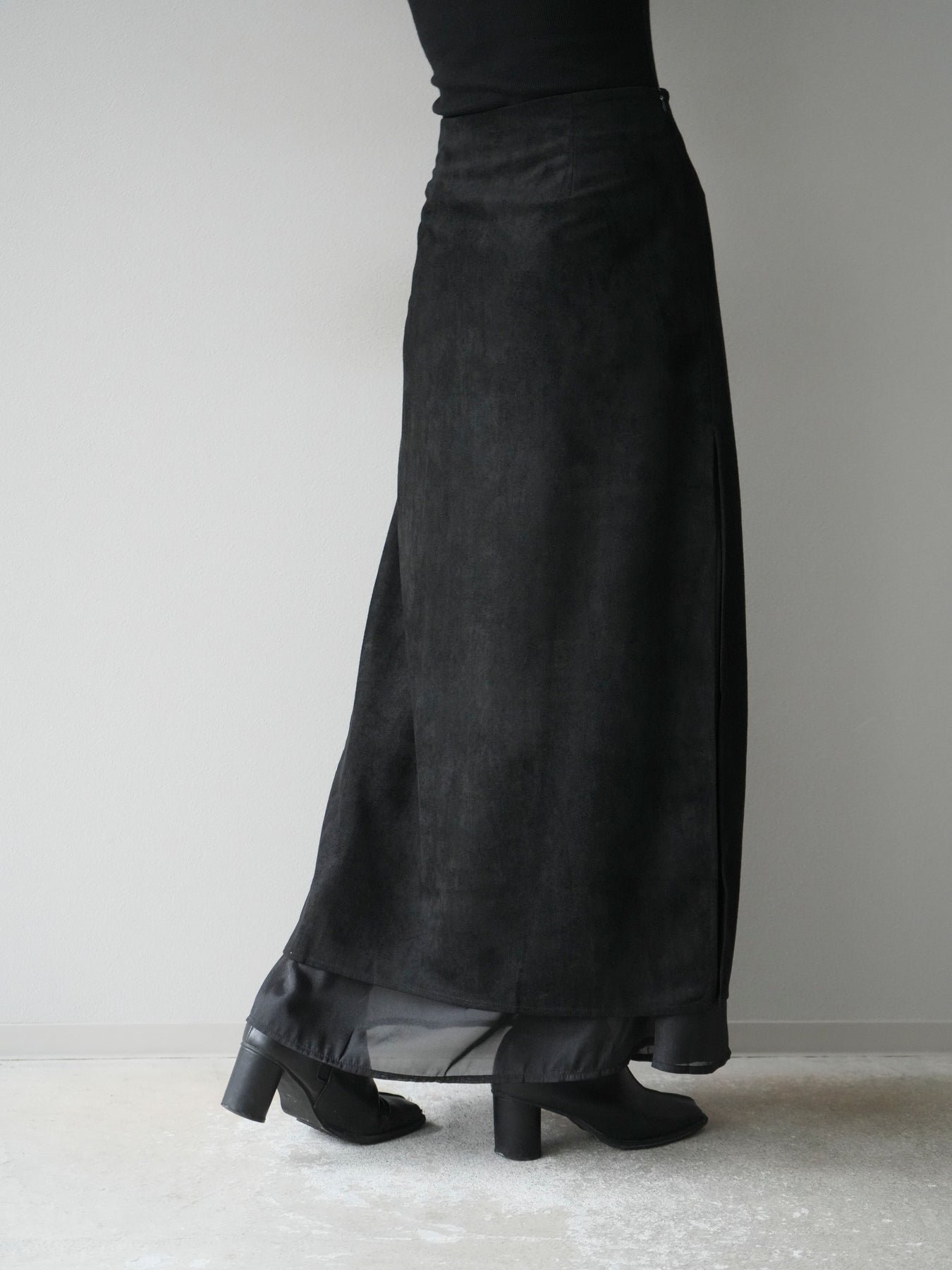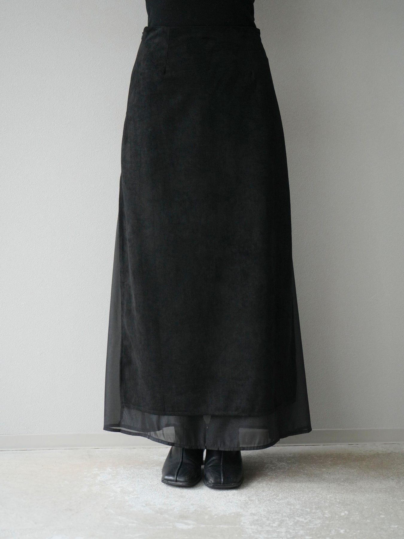[予約]サイドスリットスウェードドッキングシフォンスカート/ブラック
