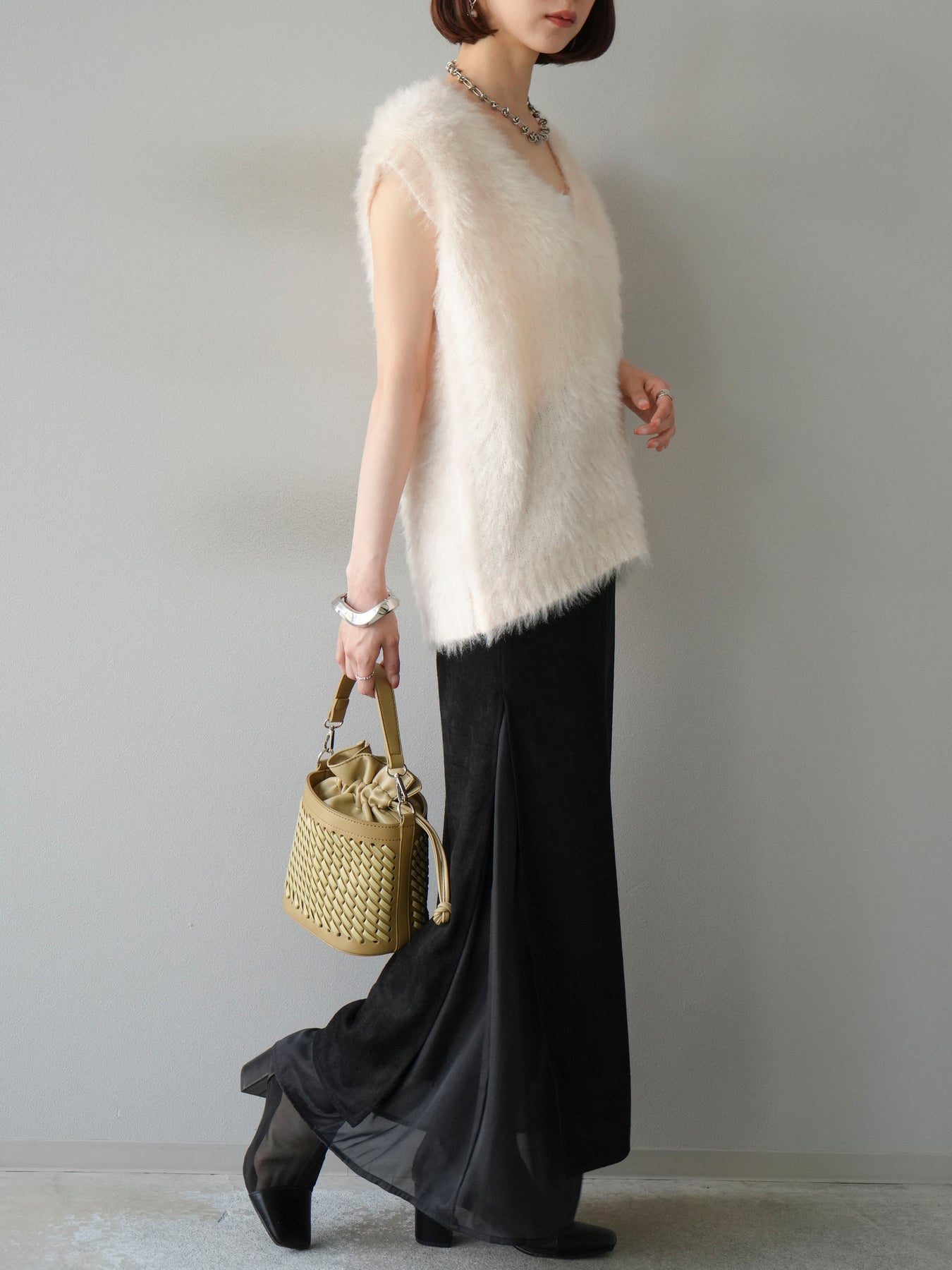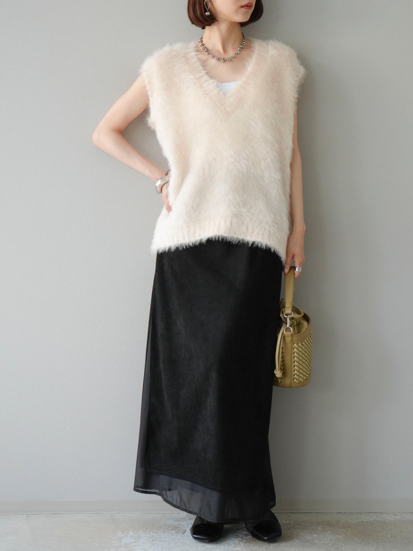 [予約]サイドスリットスウェードドッキングシフォンスカートに関連する商品を探す↓