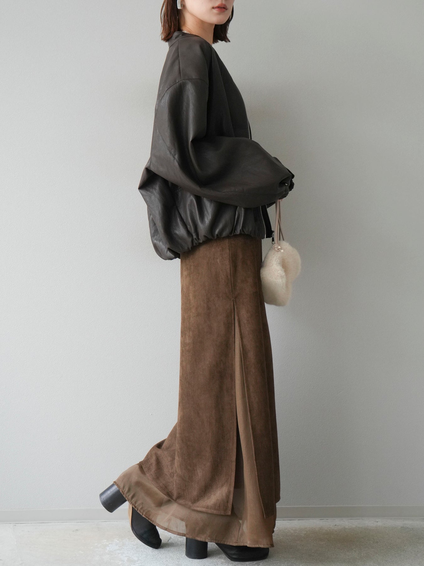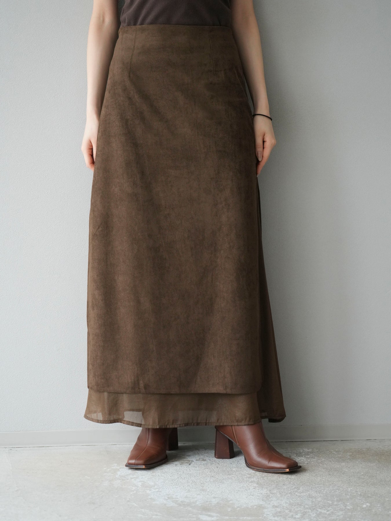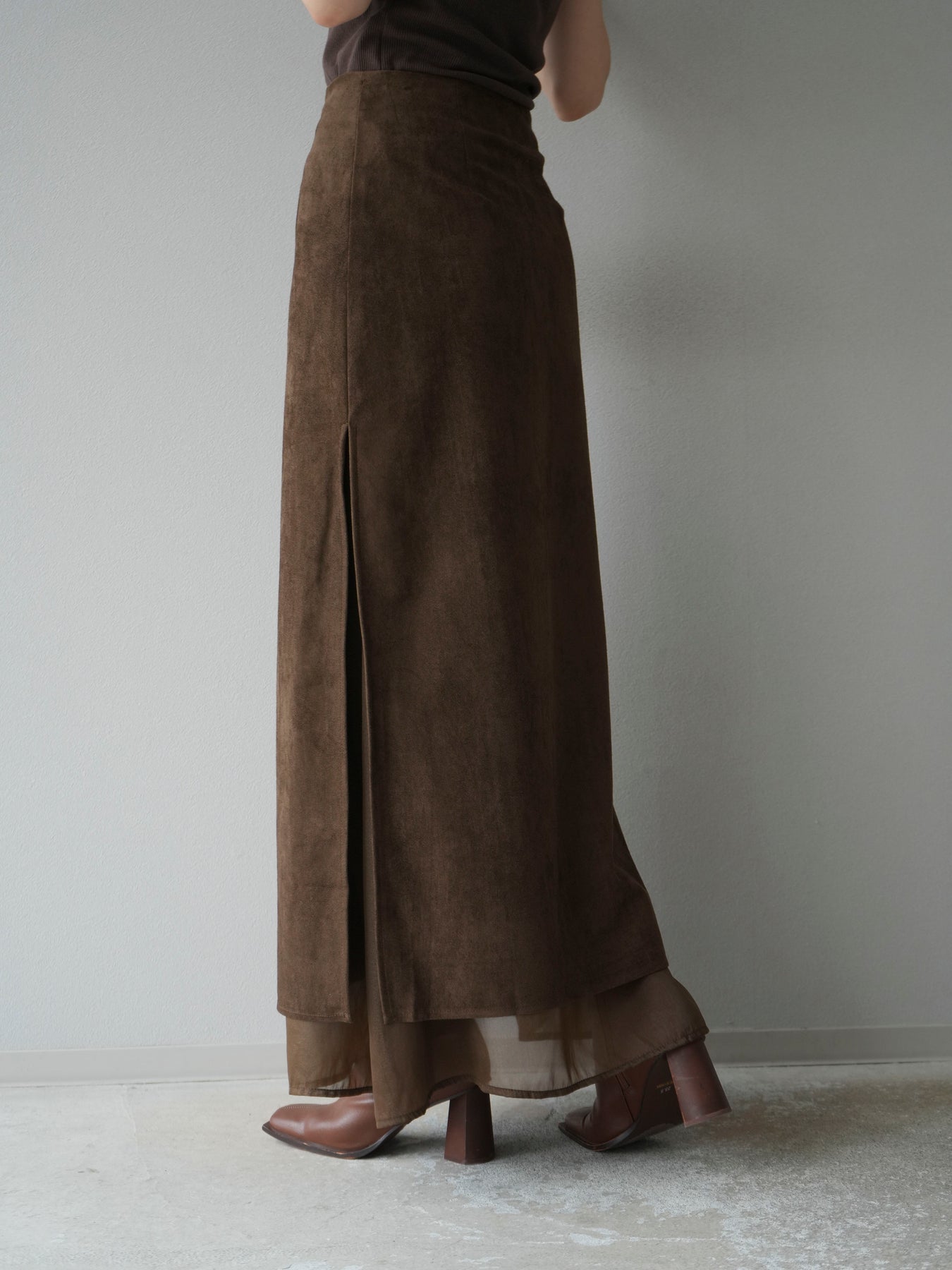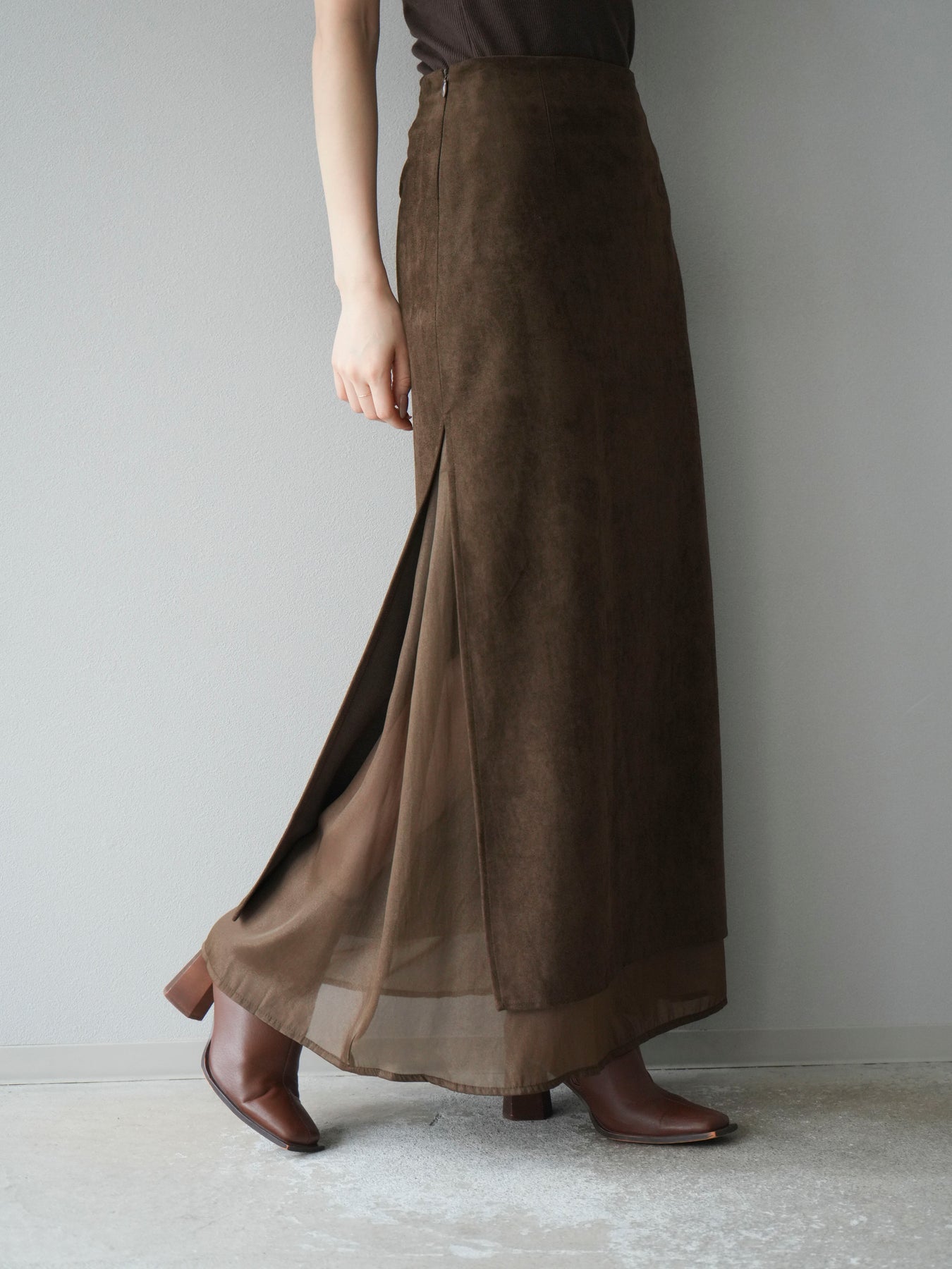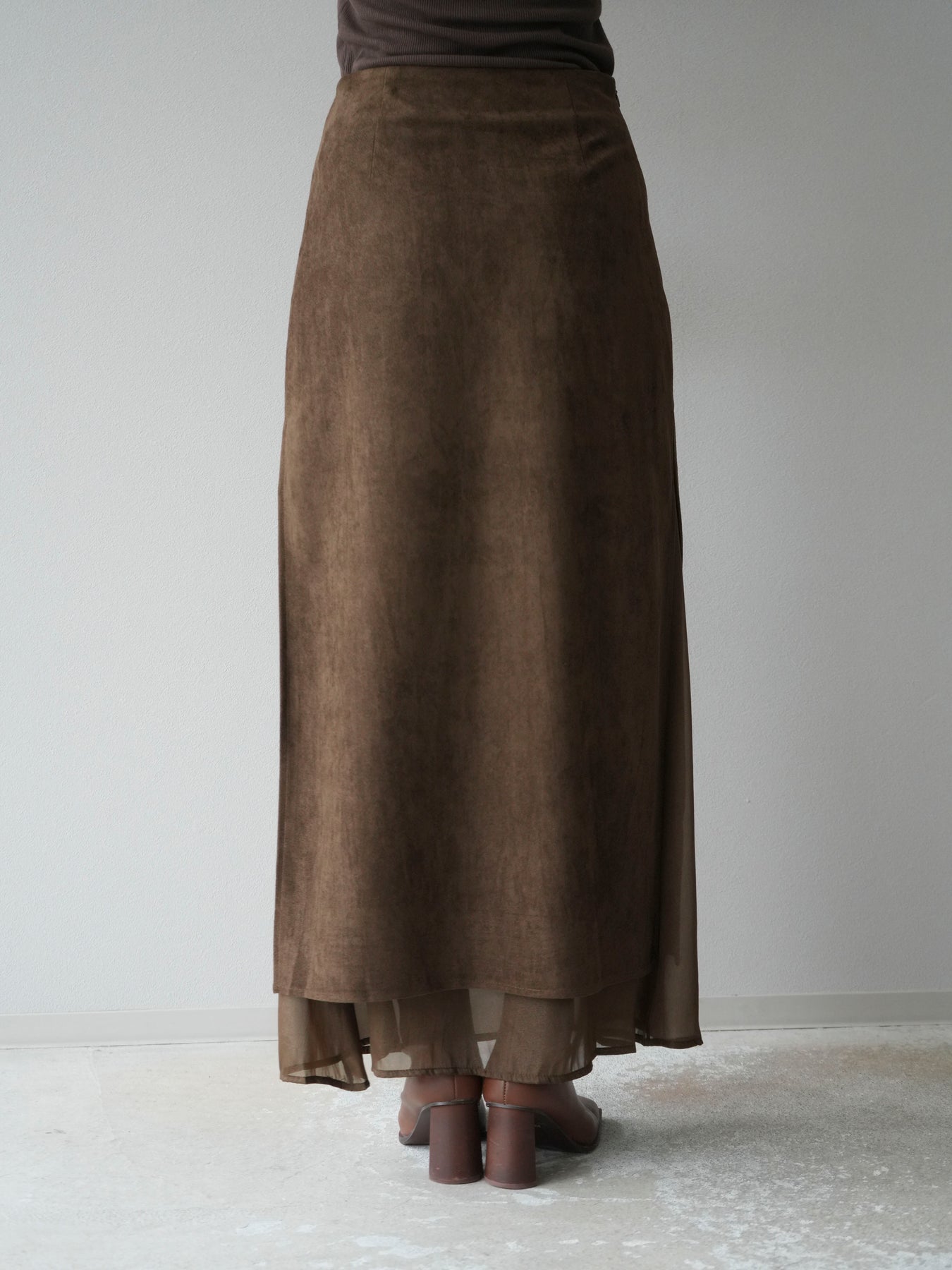[予約]サイドスリットスウェードドッキングシフォンスカート/ブラウン