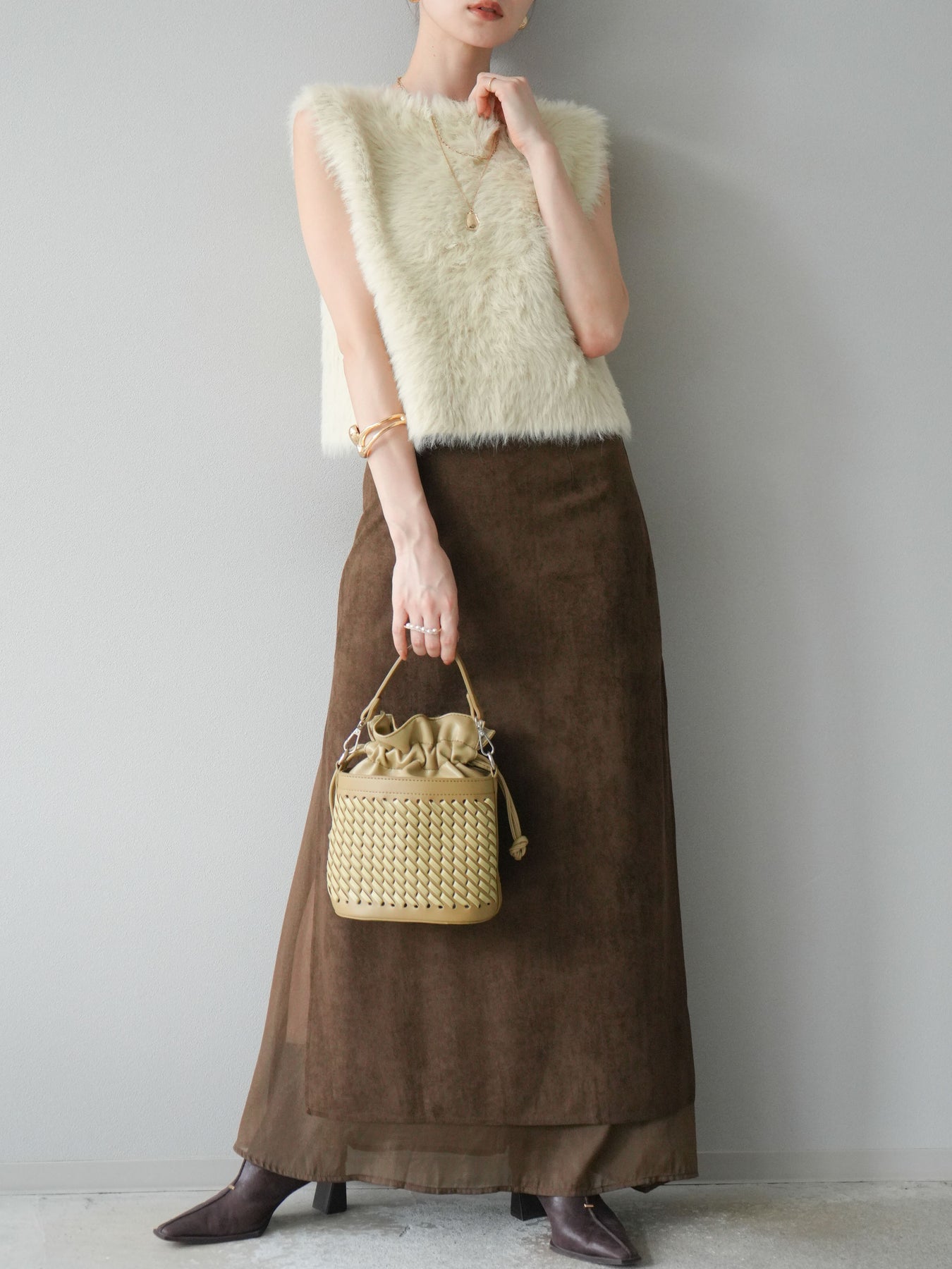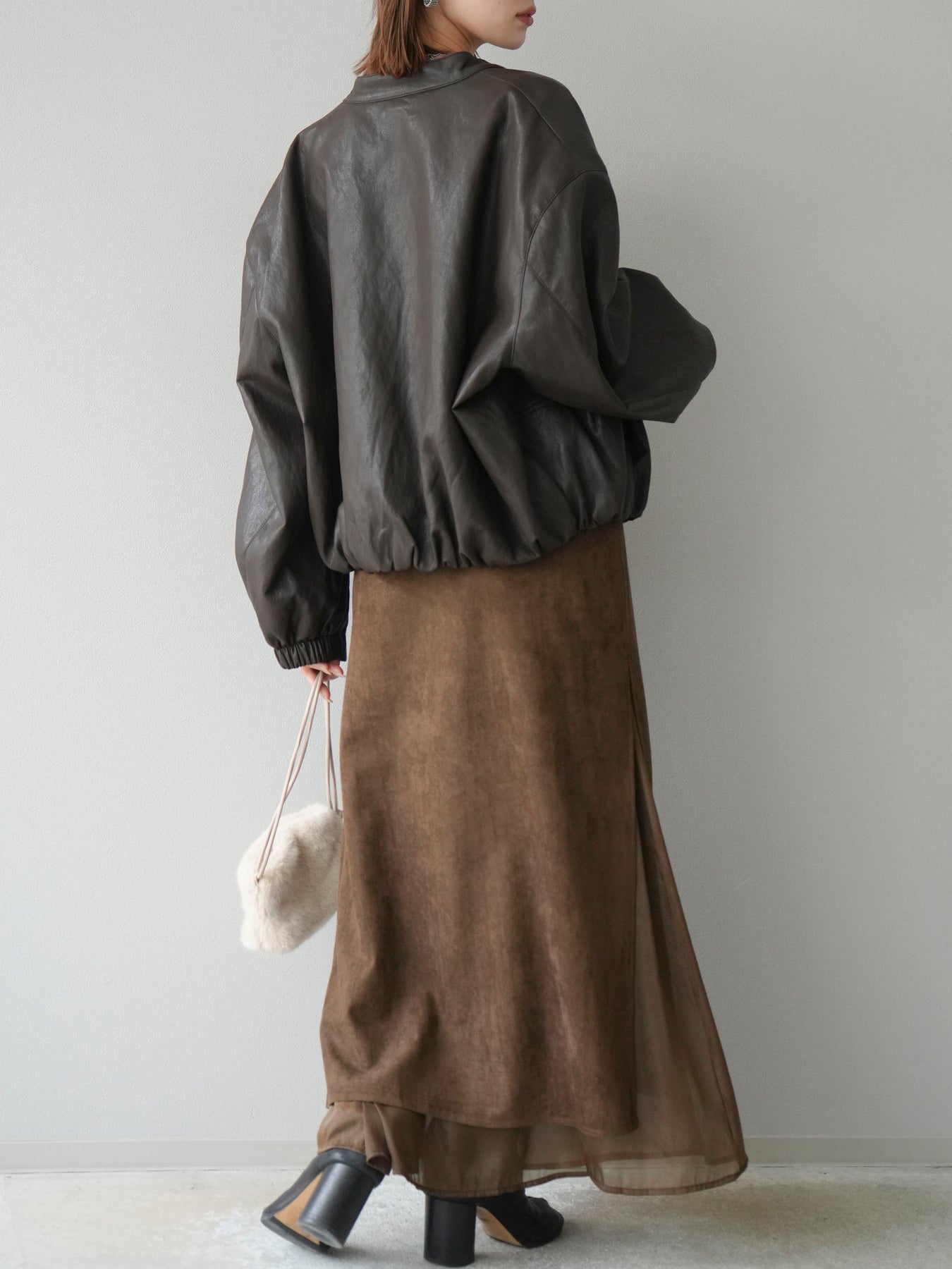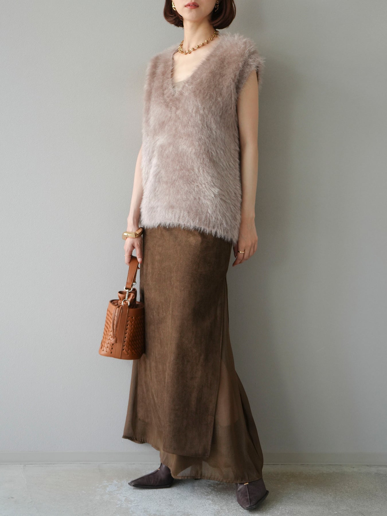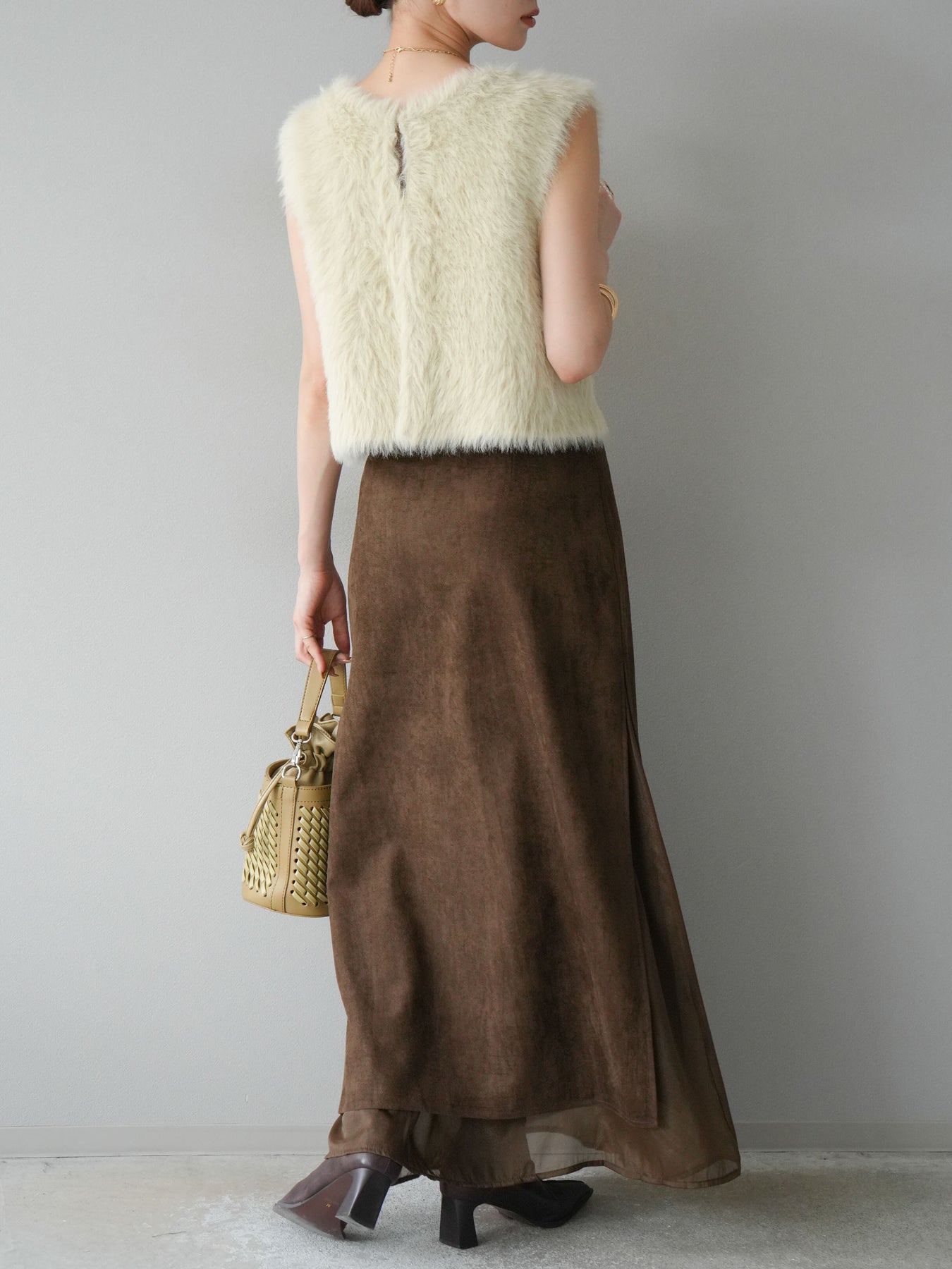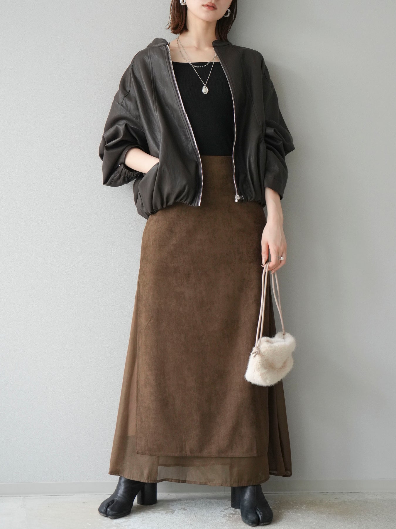 [予約]サイドスリットスウェードドッキングシフォンスカート/ブラウン