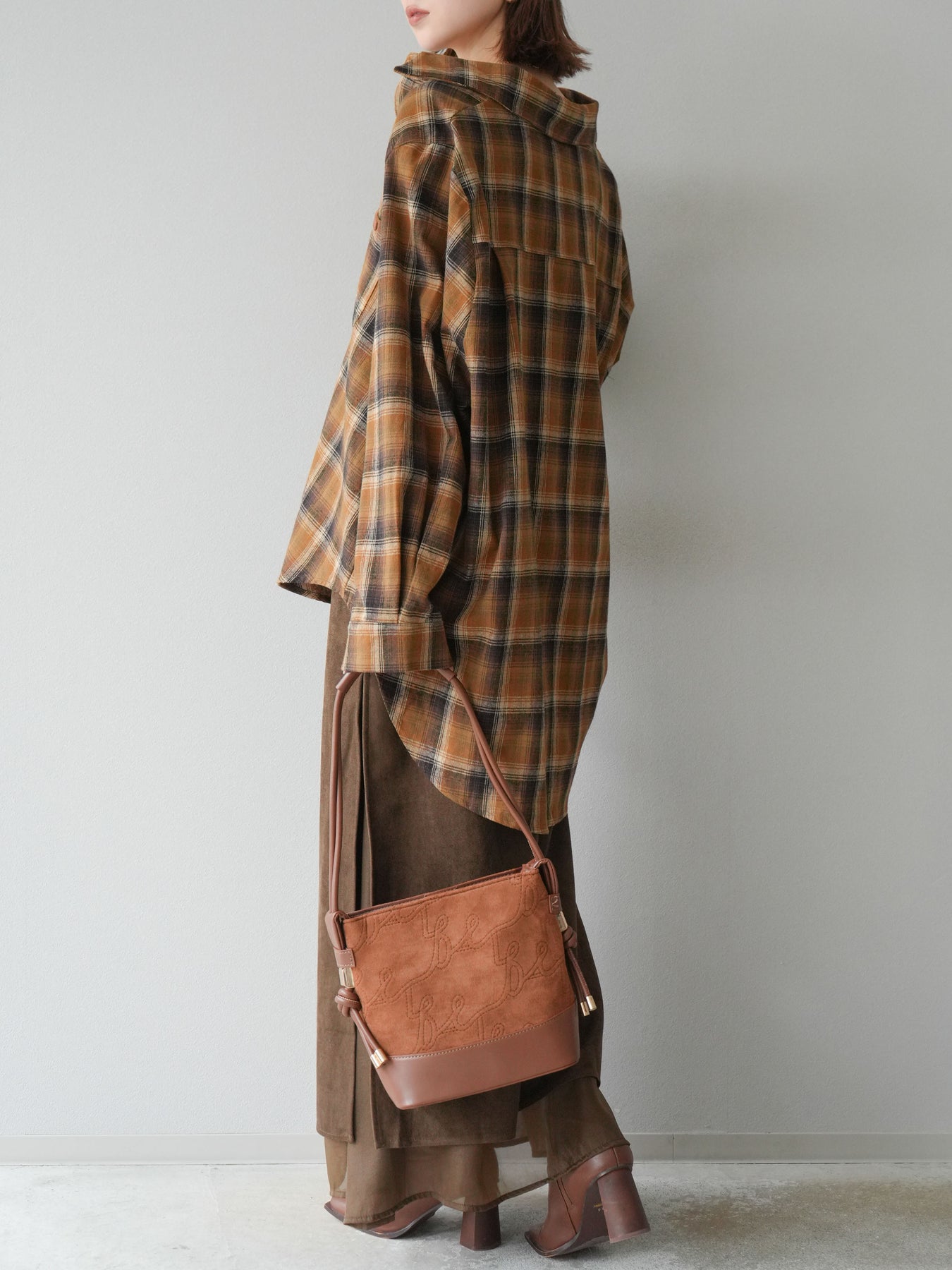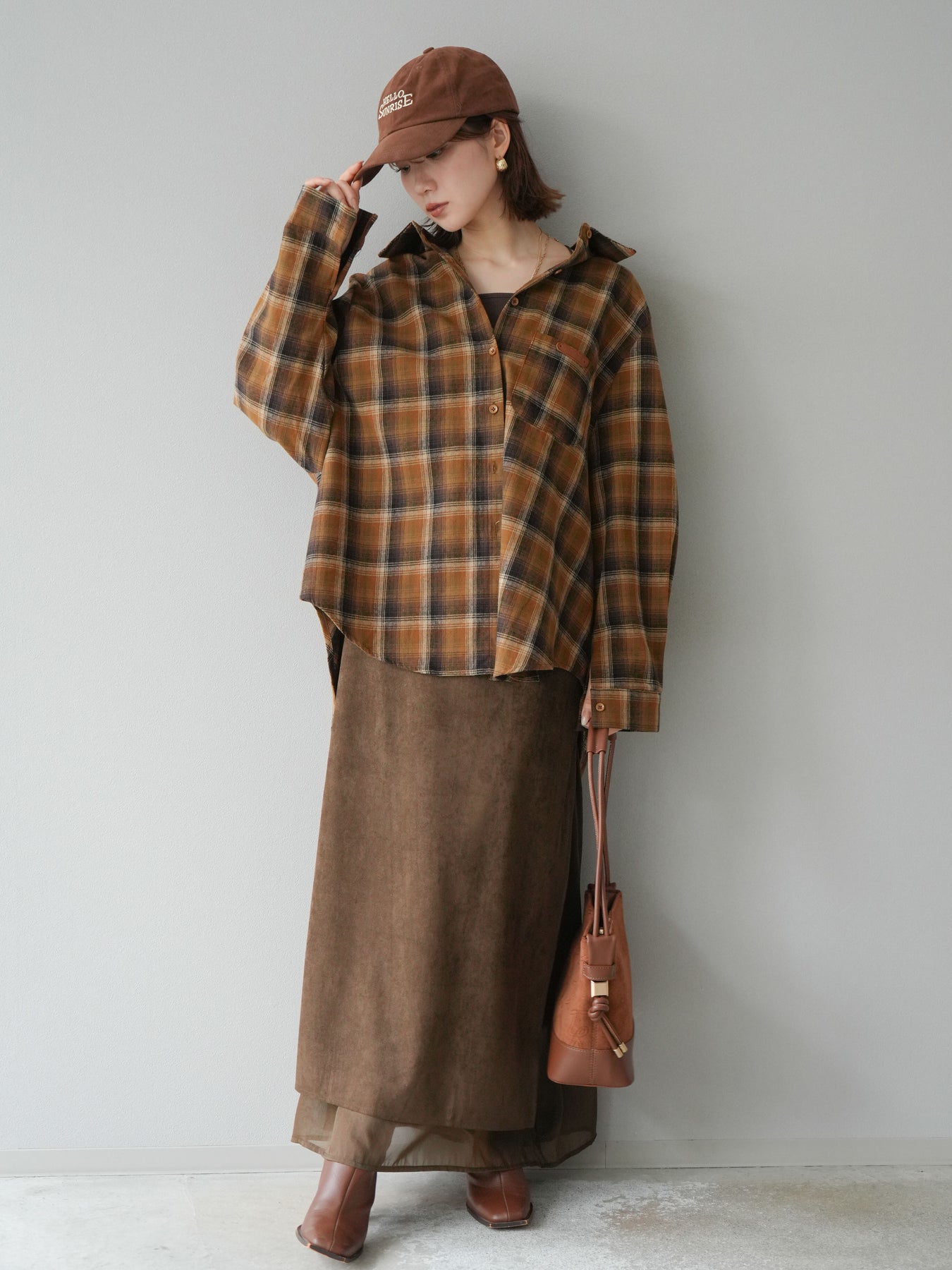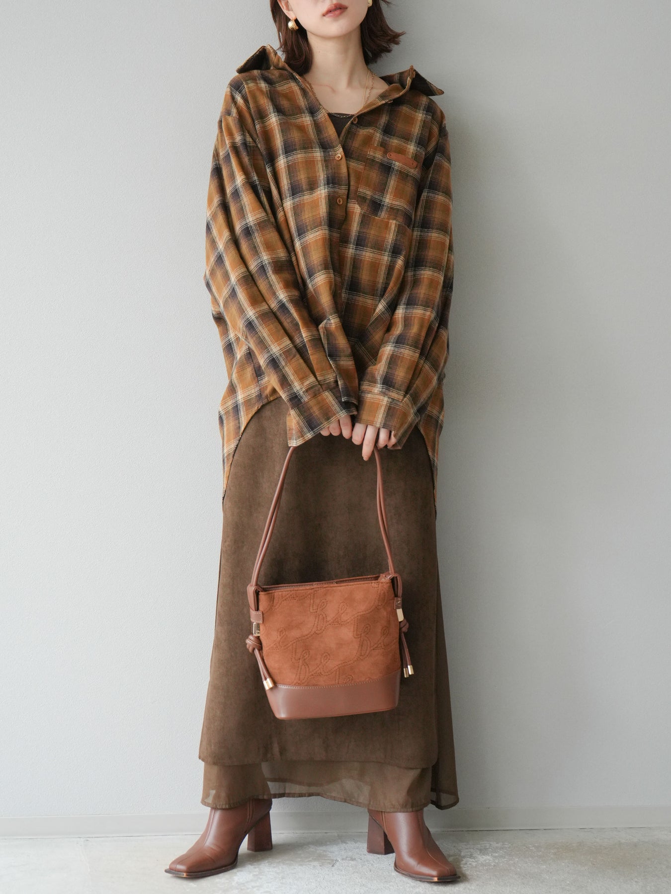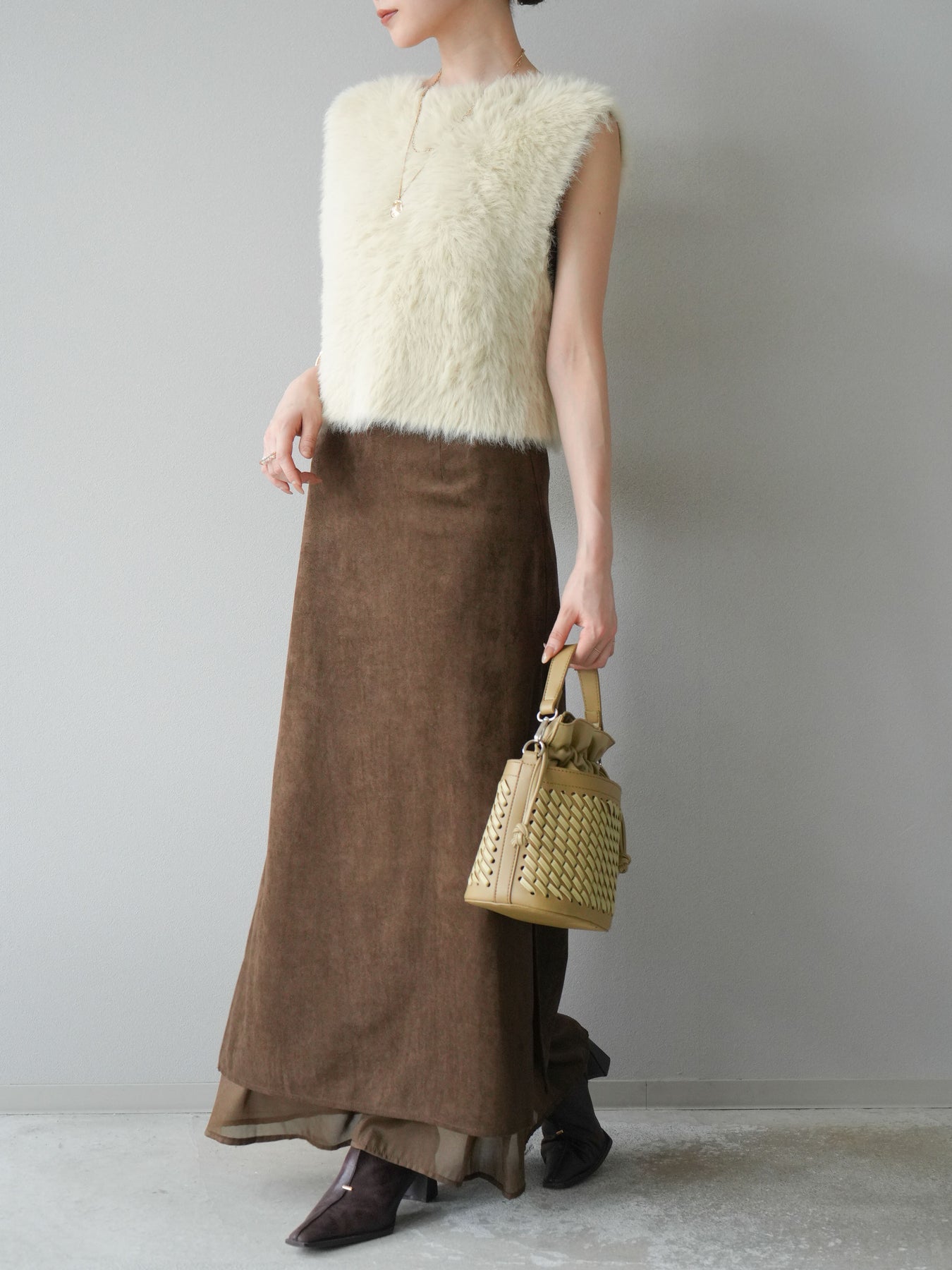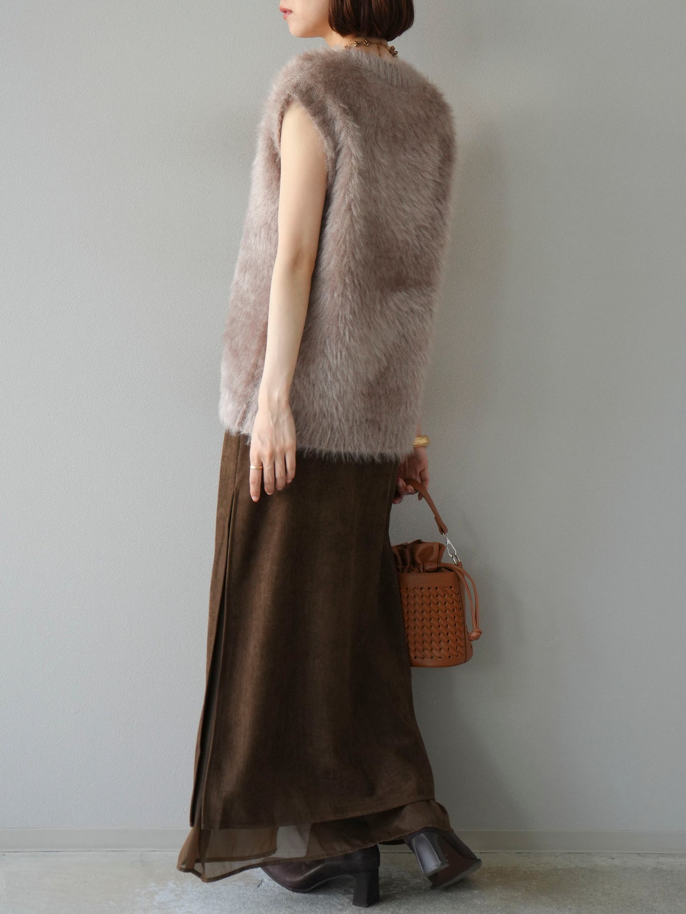 [予約]サイドスリットスウェードドッキングシフォンスカート/ブラウン