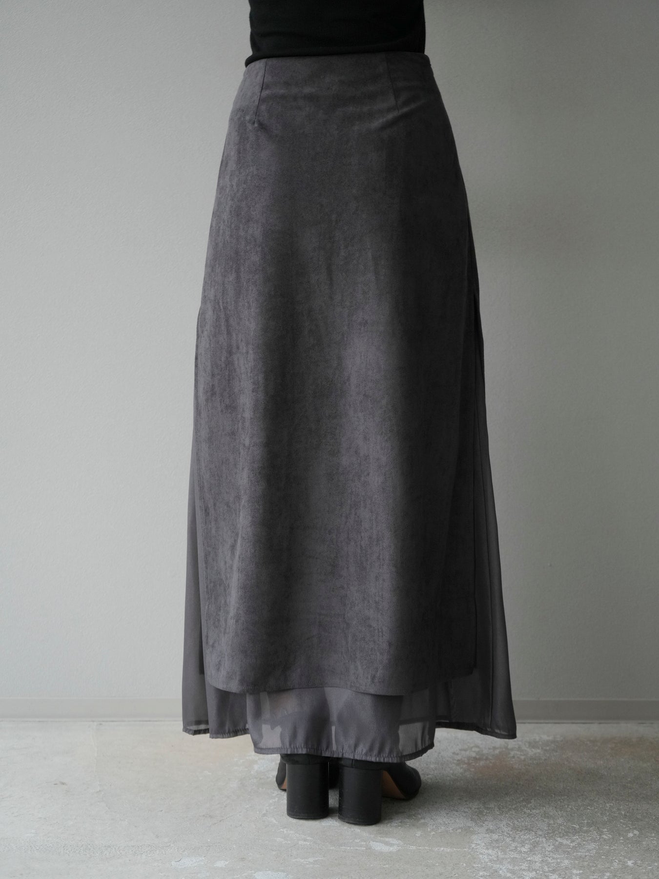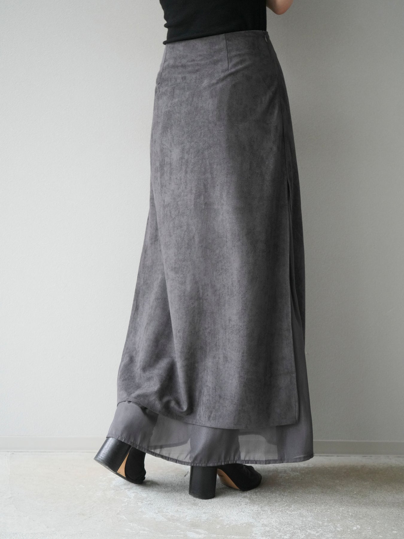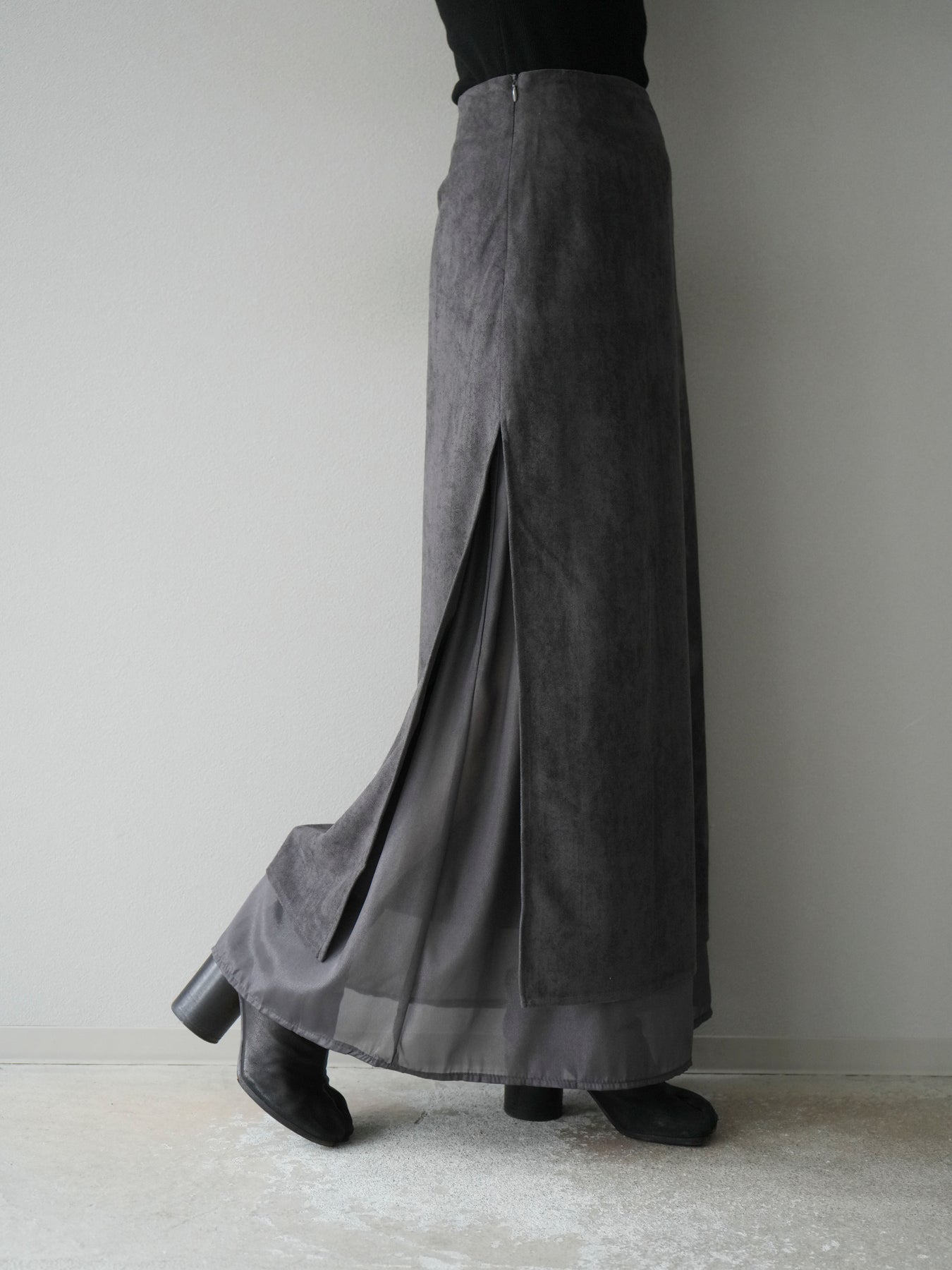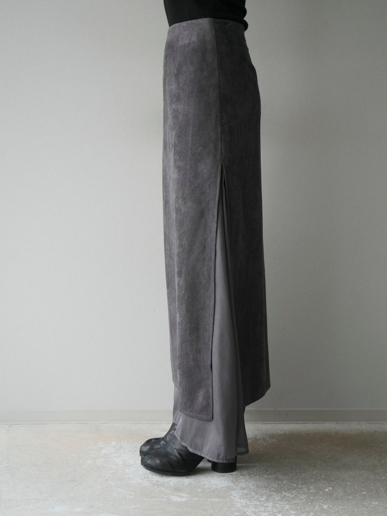[予約]サイドスリットスウェードドッキングシフォンスカート/グレー