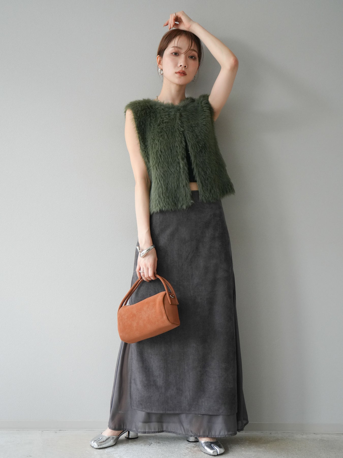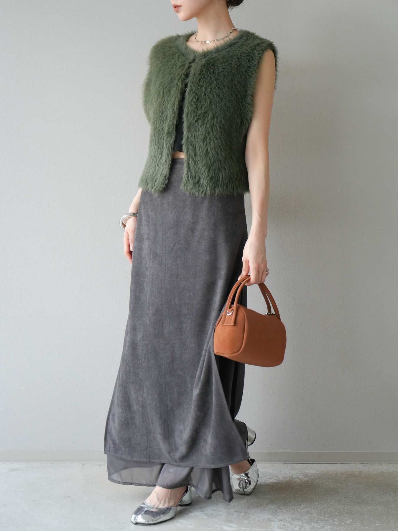 [予約]サイドスリットスウェードドッキングシフォンスカートに関連する商品を探す↓