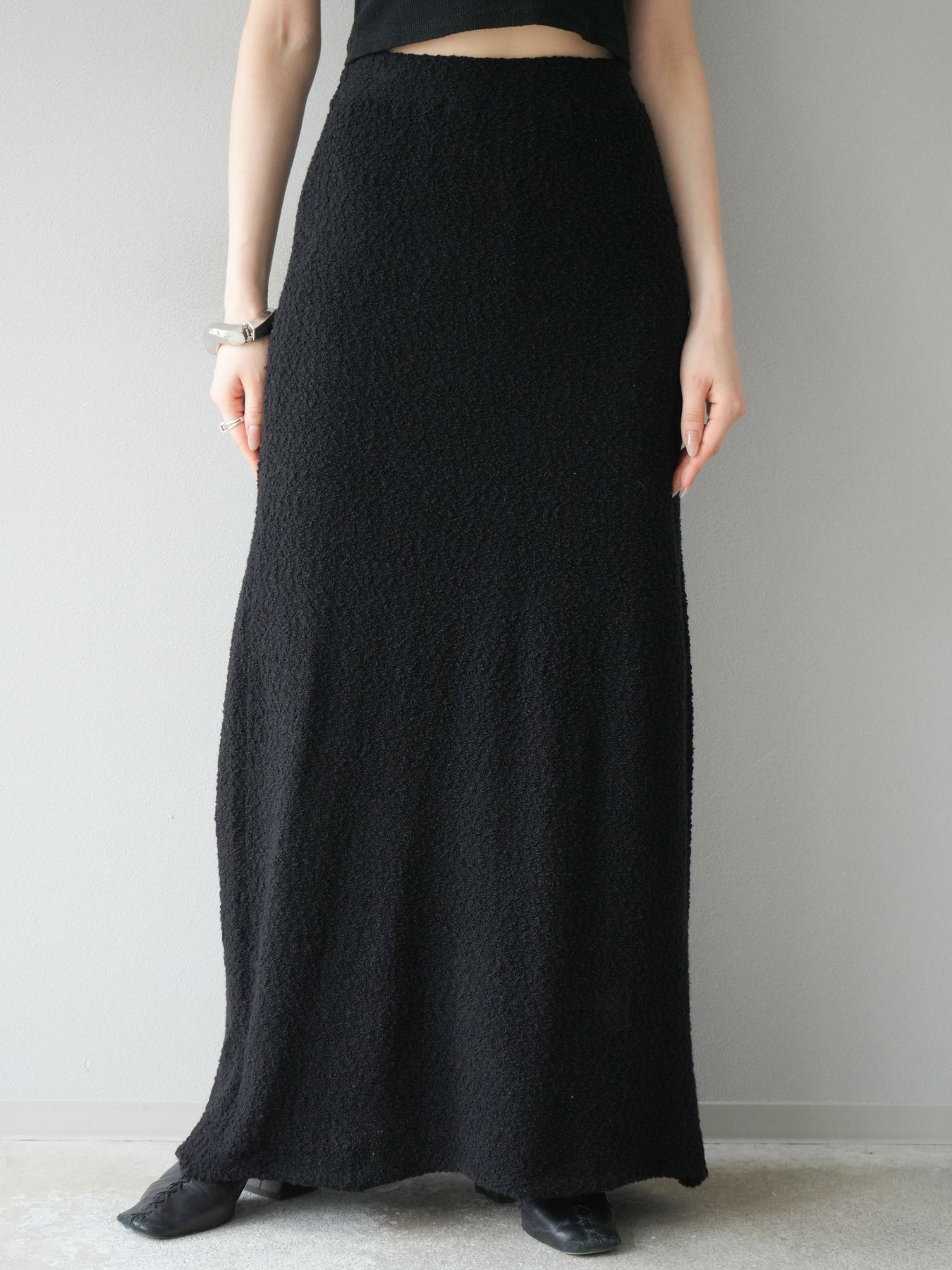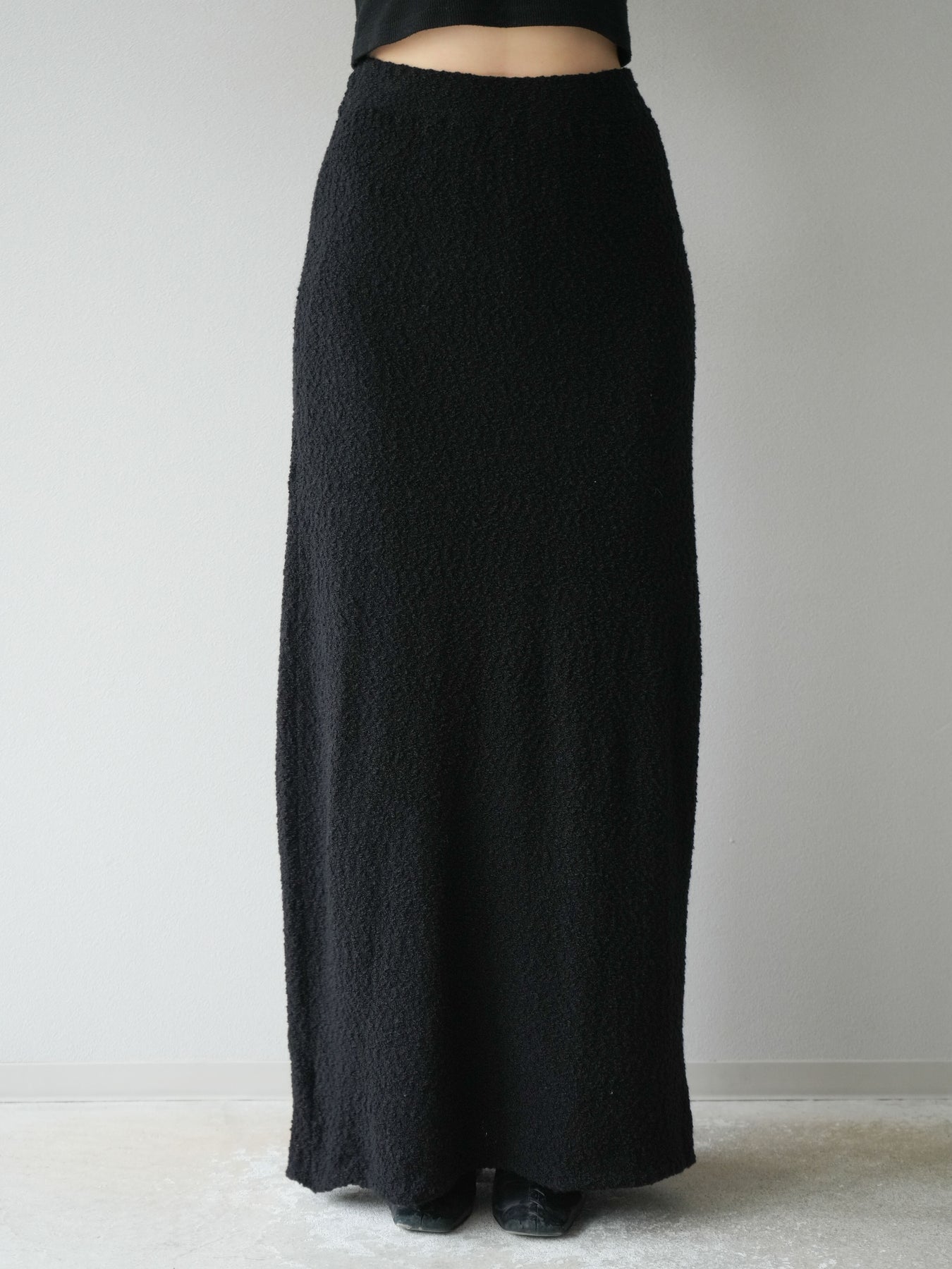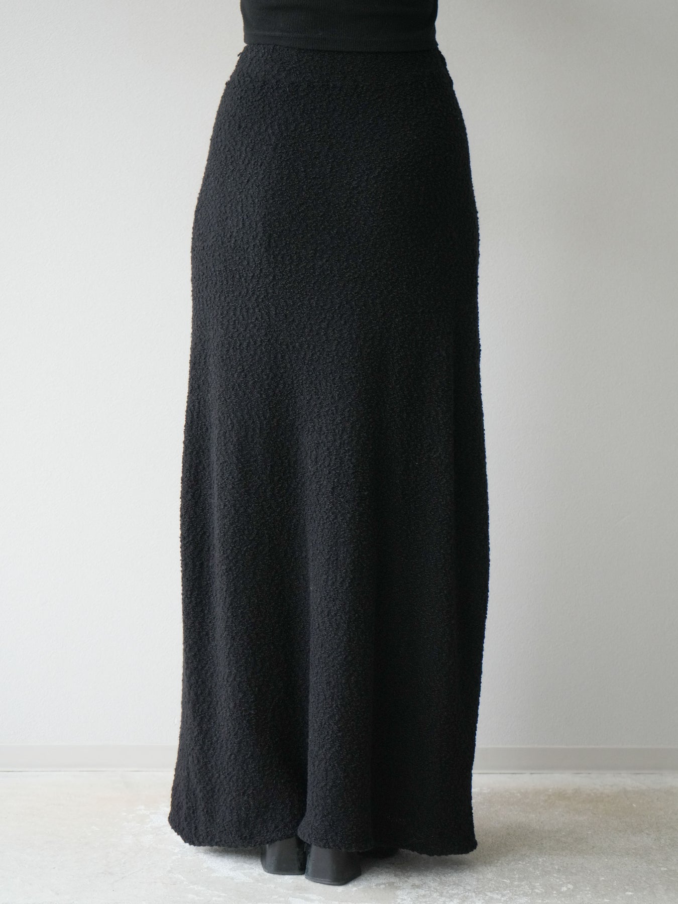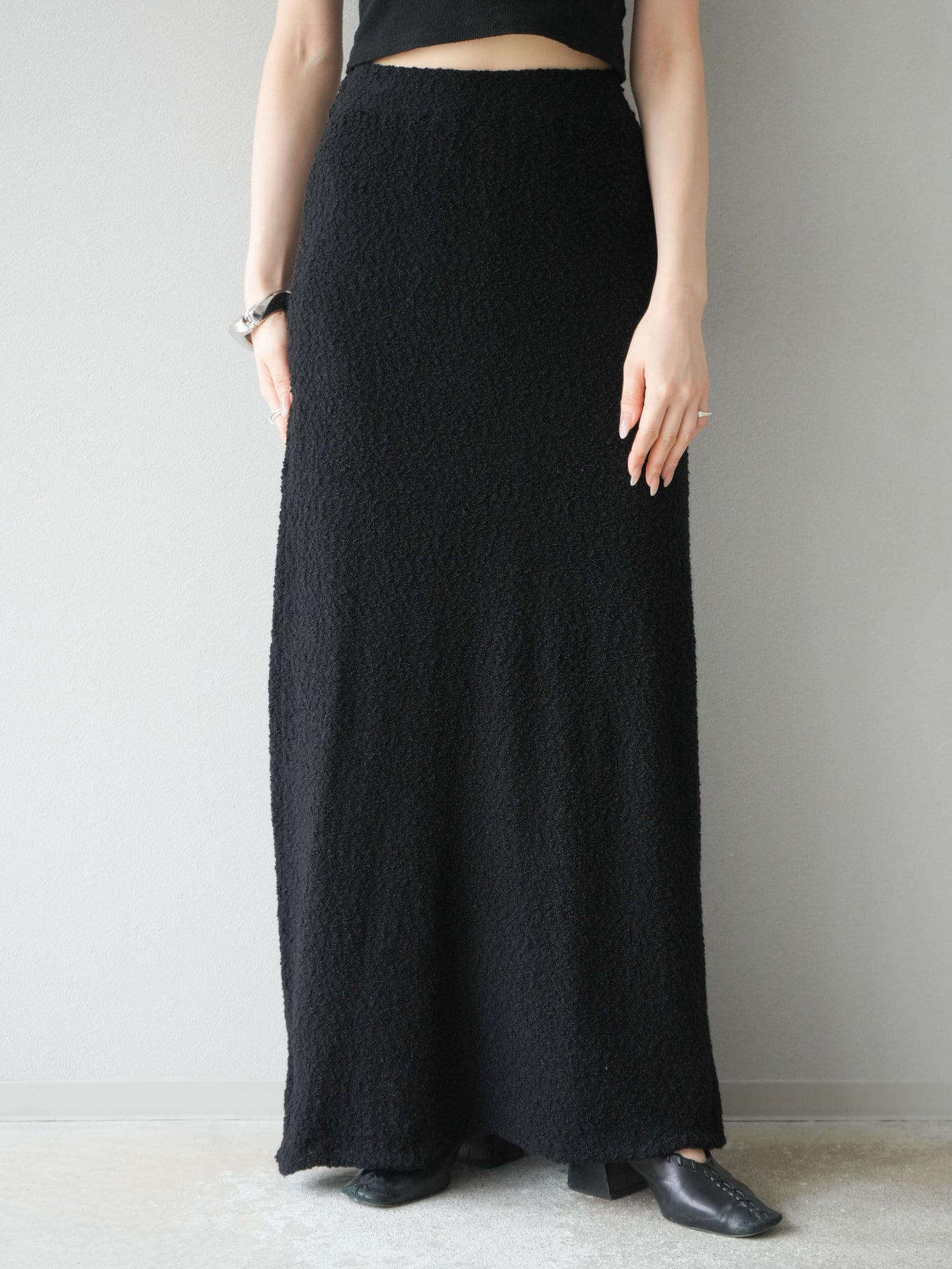 表情豊かなブークレーニットを使用したIラインスカート。縦にすとんと落ちるシルエットがスタイルをすっきりと見せ、上品で洗練された印象を与えます。ほどよい厚みのある素材感で体のラインを拾いにくく、快適な穿き心地も魅力。ウエストはゴム仕様でリラクシーに仕上げながらも、トップスをインすればきちんと感のあるコーディネートにも対応可能です。シンプルなデザインで合わせやすく、同素材のトップスとセットアップで着用すればよりトレンド感のあるスタイリングが完成します。