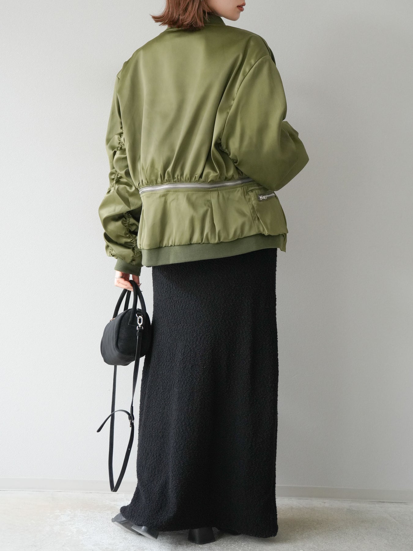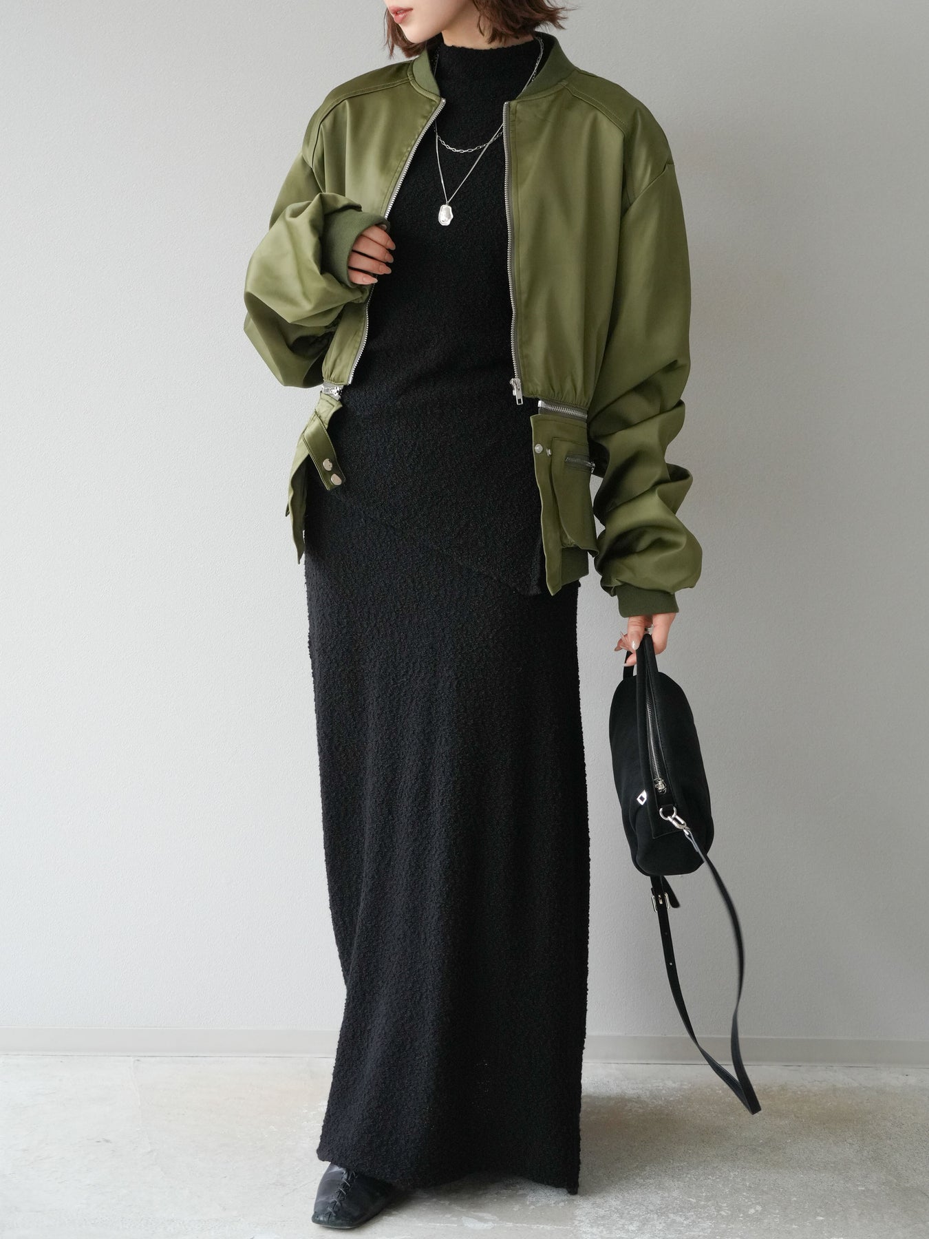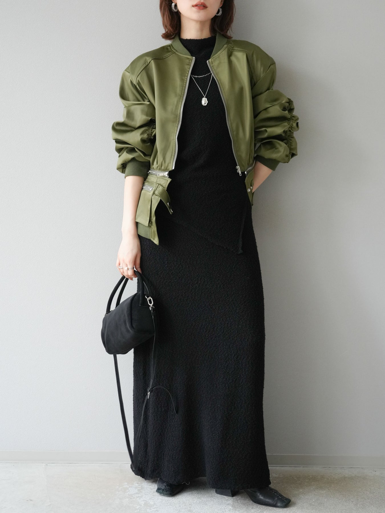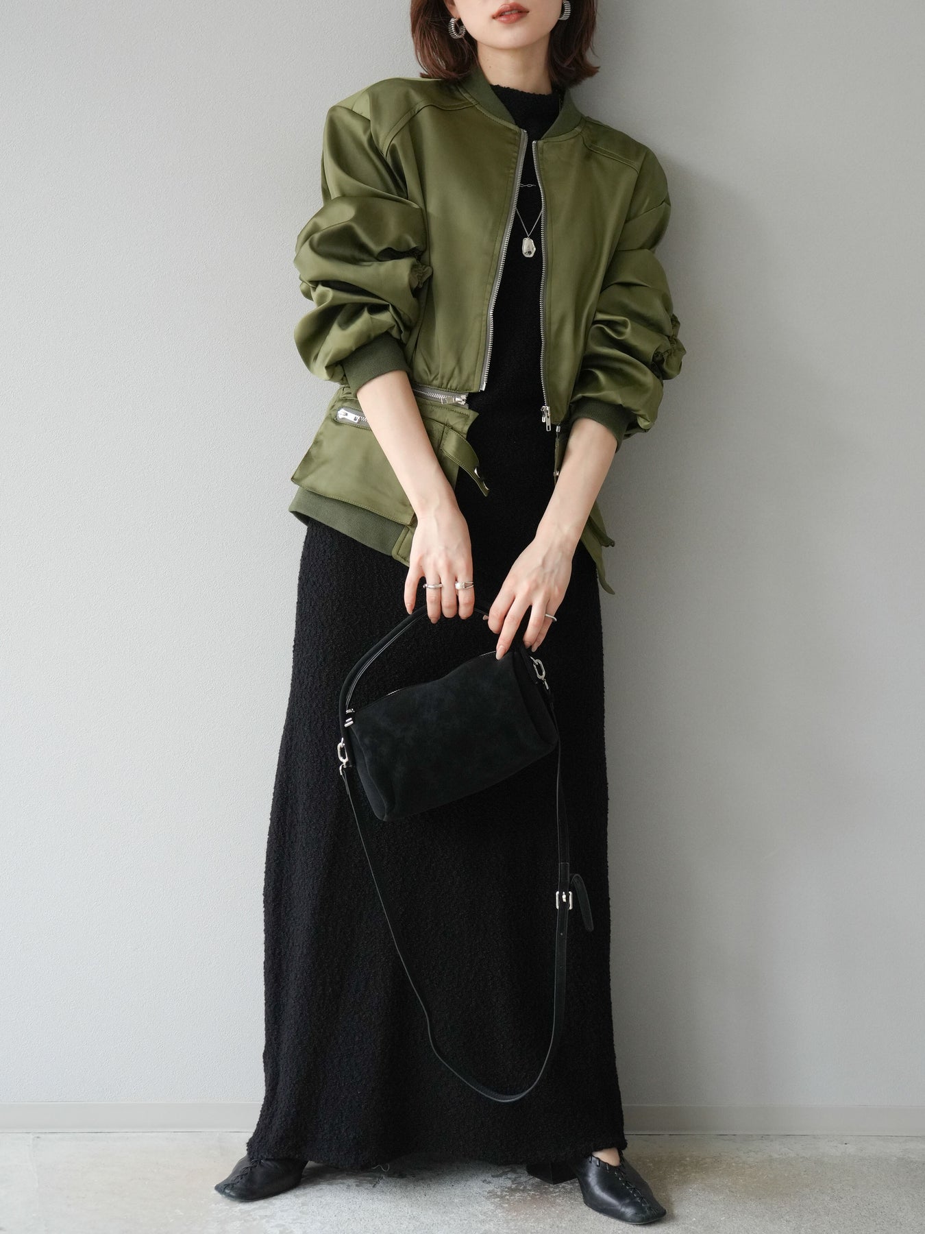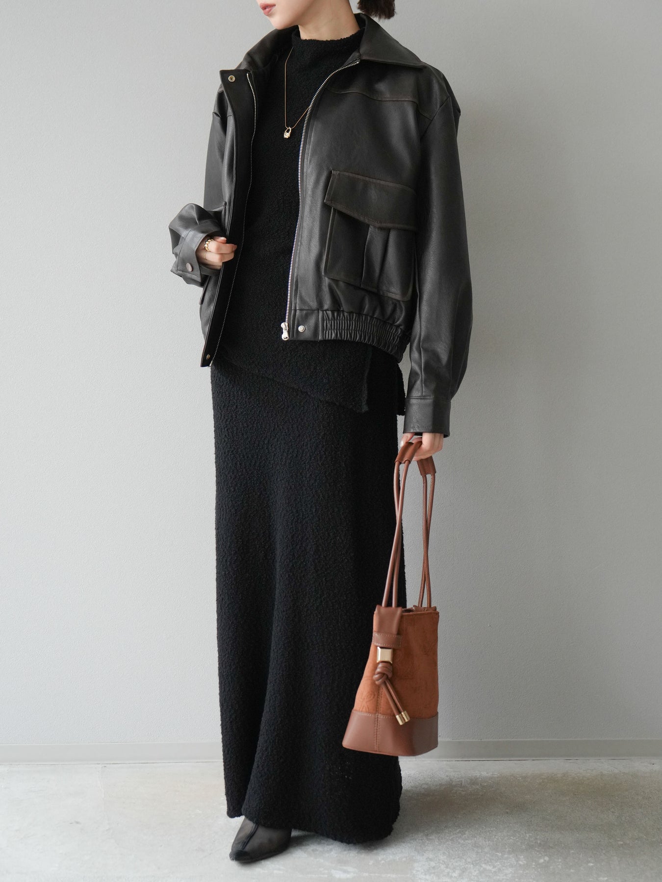 表情豊かなブークレーニットを使用したIラインスカート。縦にすとんと落ちるシルエットがスタイルをすっきりと見せ、上品で洗練された印象を与えます。ほどよい厚みのある素材感で体のラインを拾いにくく、快適な穿き心地も魅力。ウエストはゴム仕様でリラクシーに仕上げながらも、トップスをインすればきちんと感のあるコーディネートにも対応可能です。シンプルなデザインで合わせやすく、同素材のトップスとセットアップで着用すればよりトレンド感のあるスタイリングが完成します。