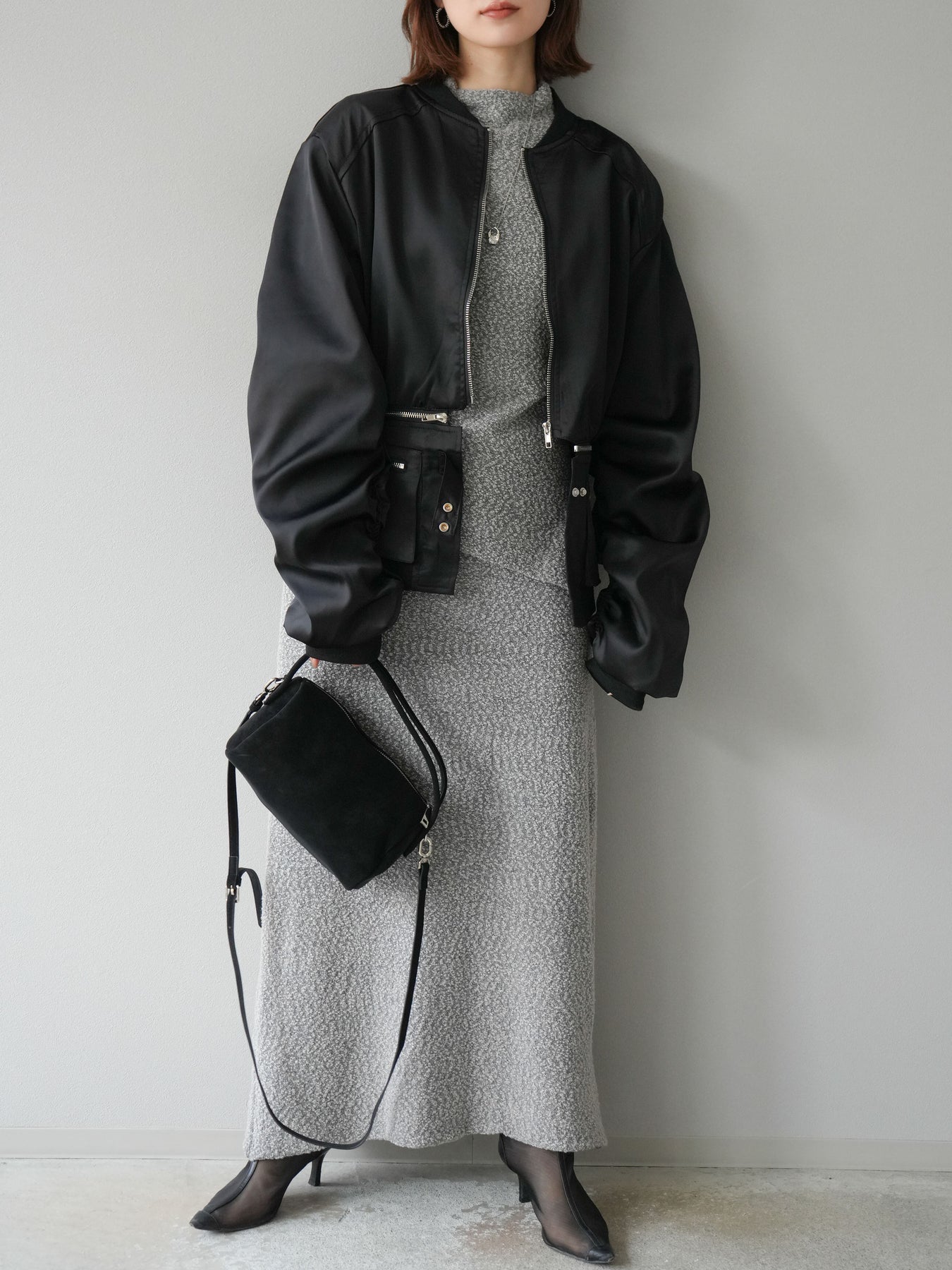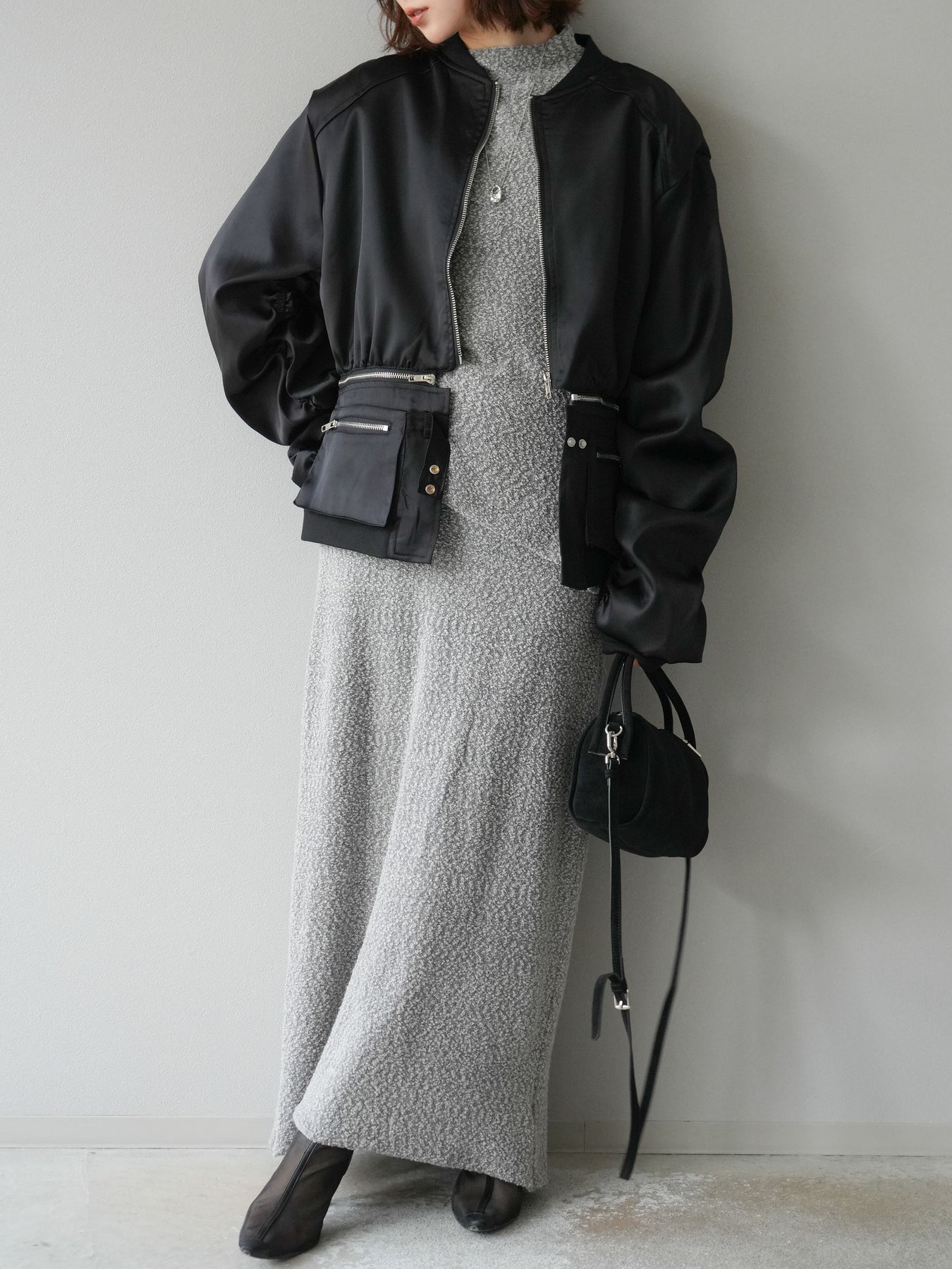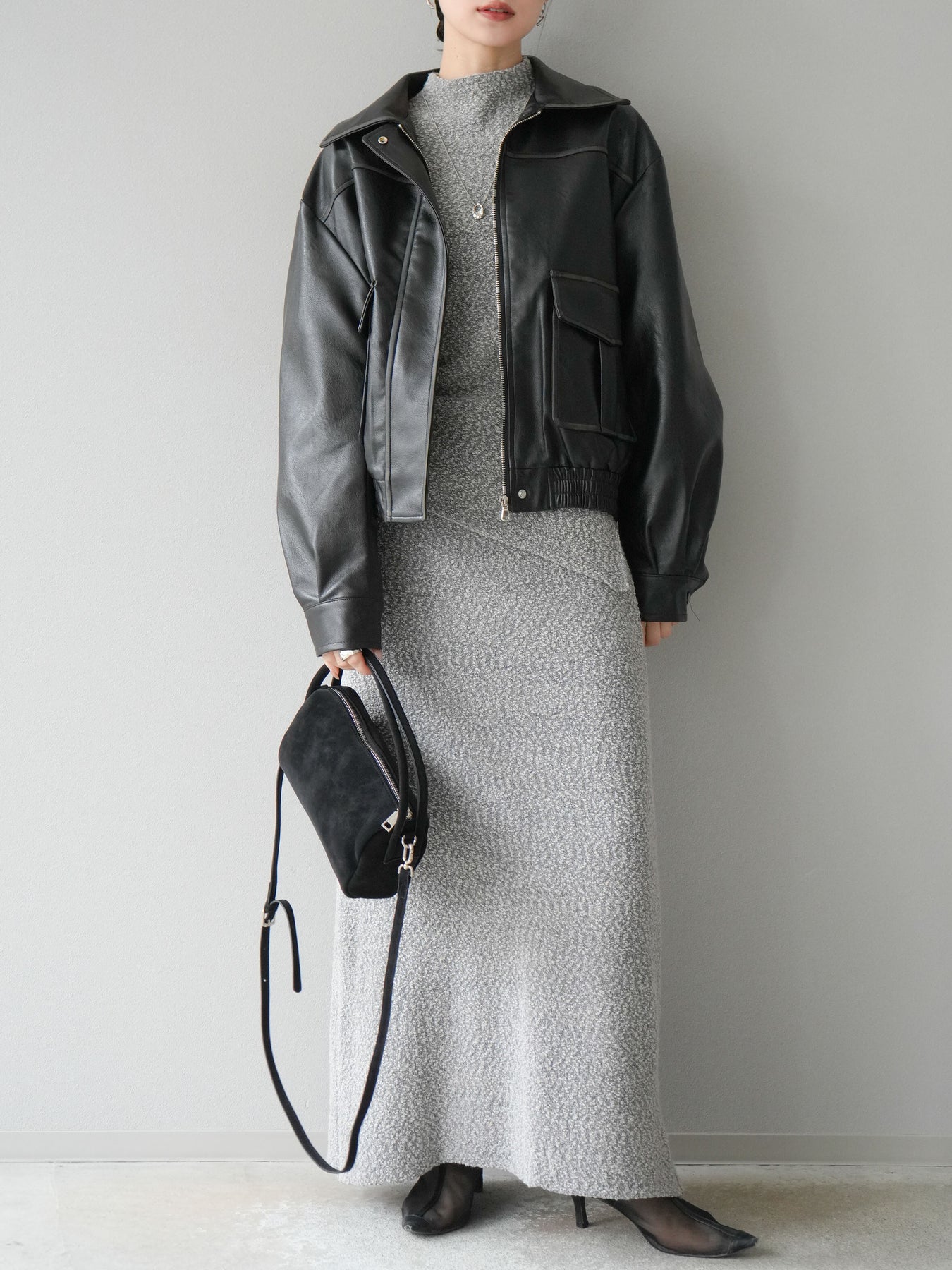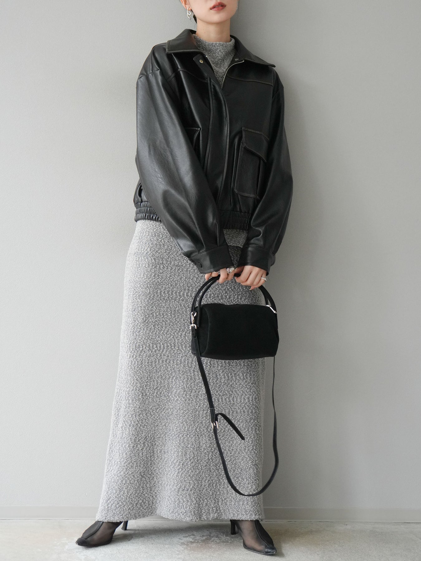 表情豊かなブークレーニットを使用したIラインスカート。縦にすとんと落ちるシルエットがスタイルをすっきりと見せ、上品で洗練された印象を与えます。ほどよい厚みのある素材感で体のラインを拾いにくく、快適な穿き心地も魅力。ウエストはゴム仕様でリラクシーに仕上げながらも、トップスをインすればきちんと感のあるコーディネートにも対応可能です。シンプルなデザインで合わせやすく、同素材のトップスとセットアップで着用すればよりトレンド感のあるスタイリングが完成します。