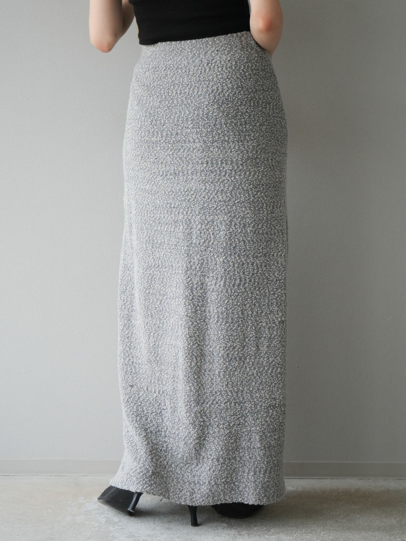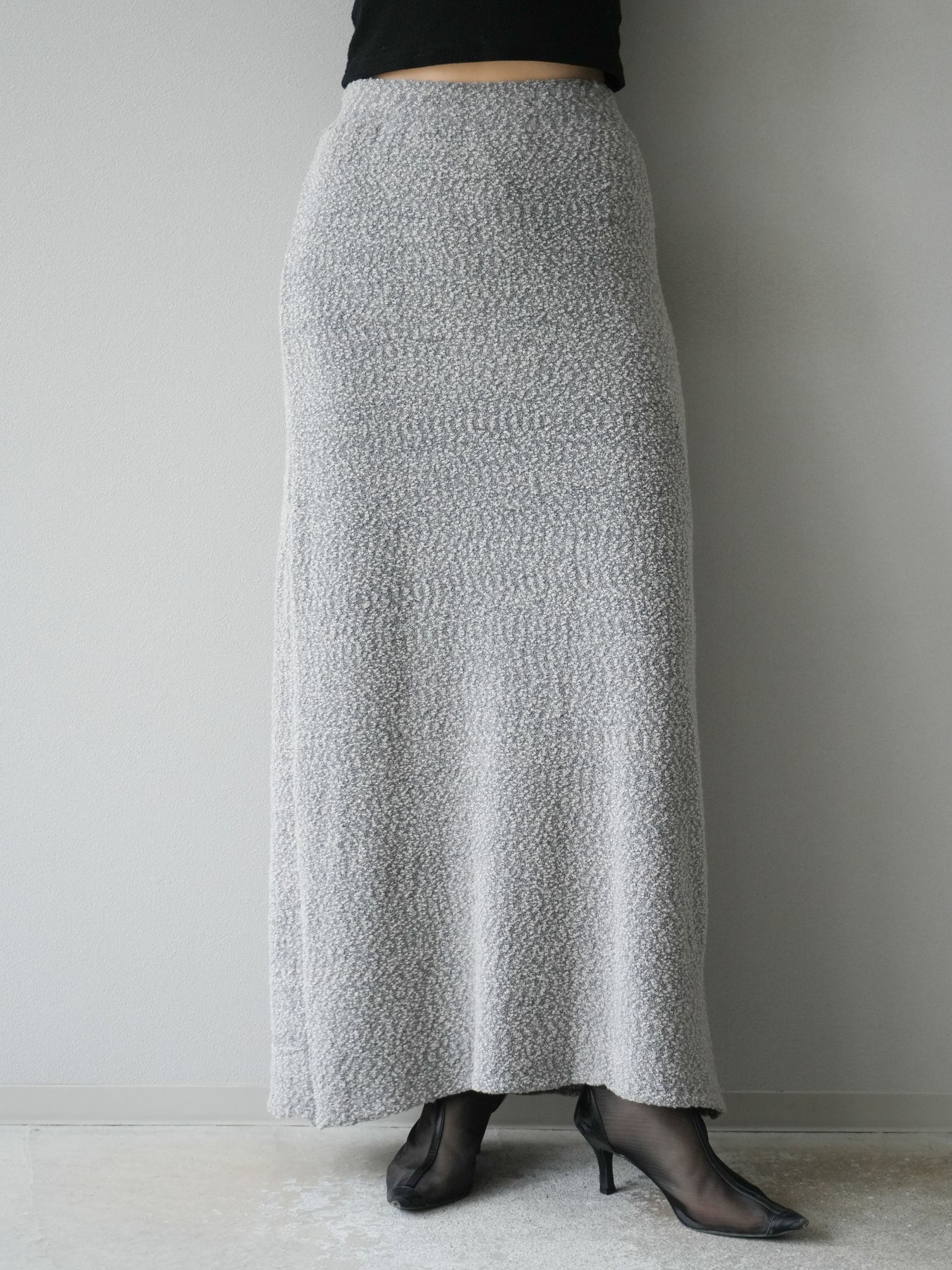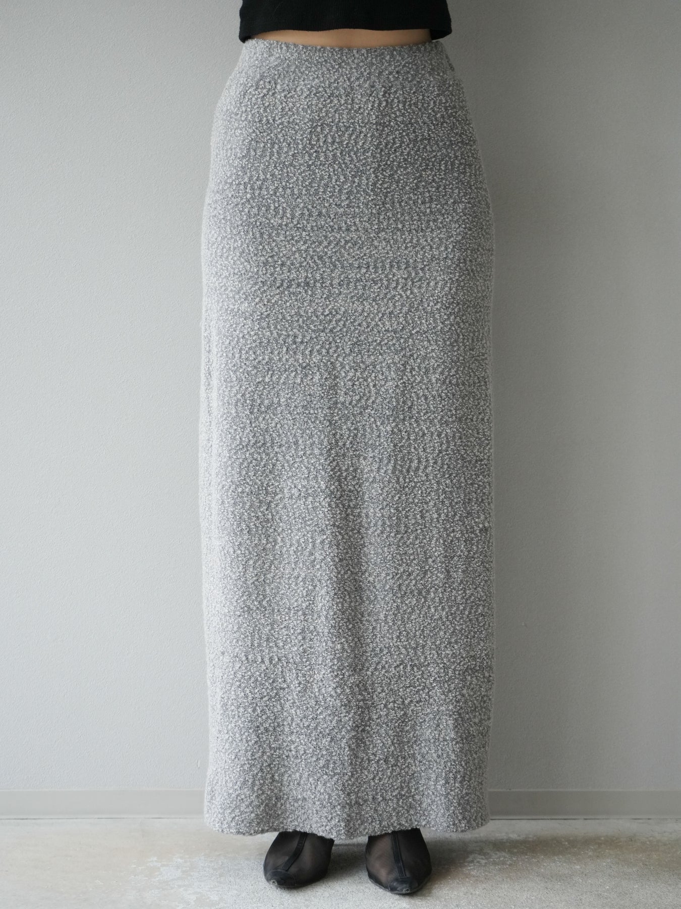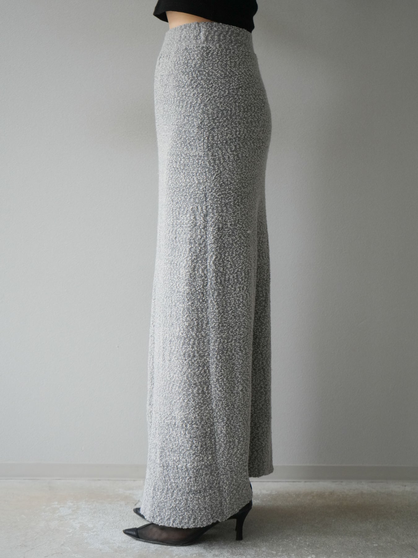 [予約]ブークレーニットIラインスカート/グレー