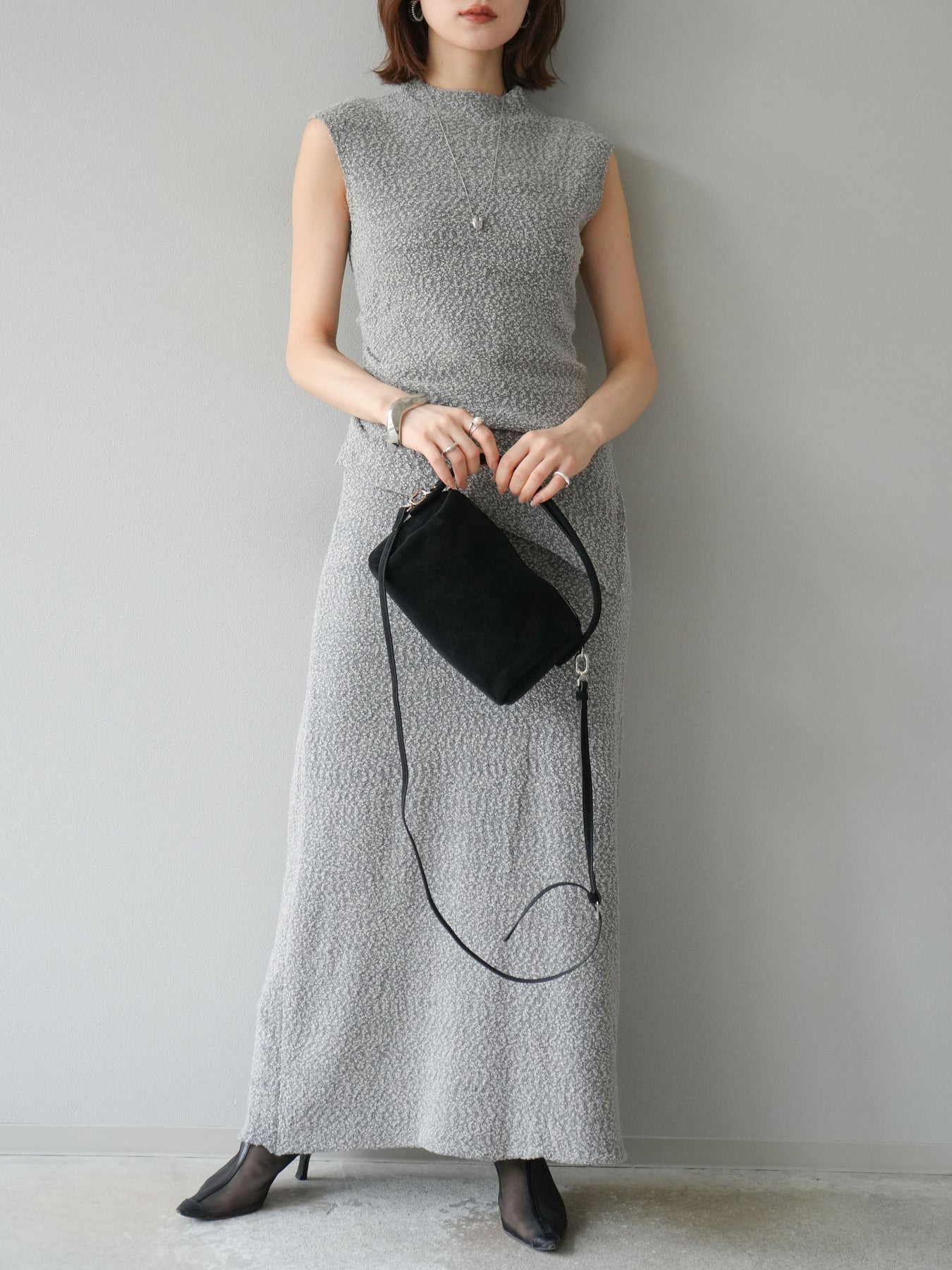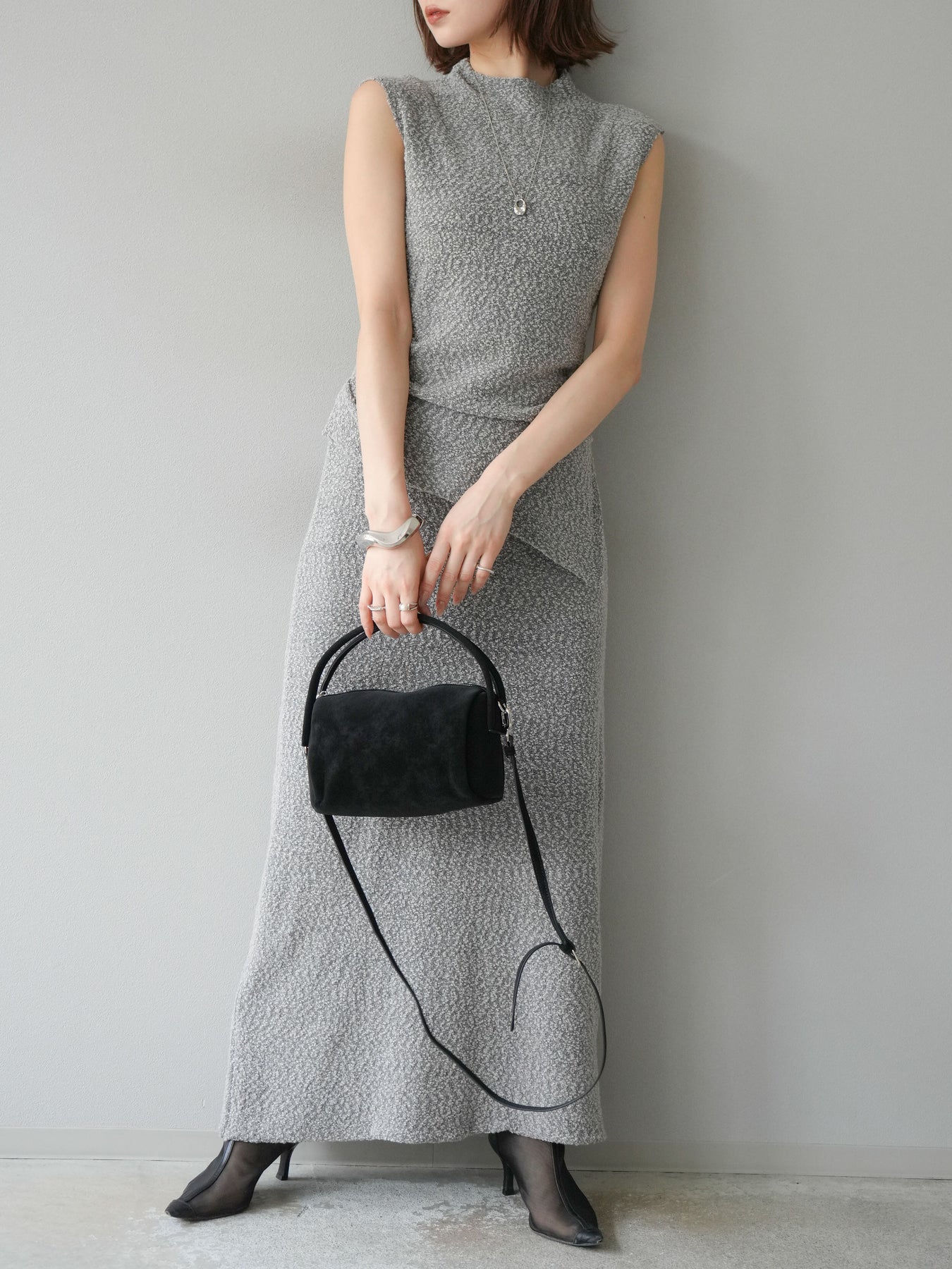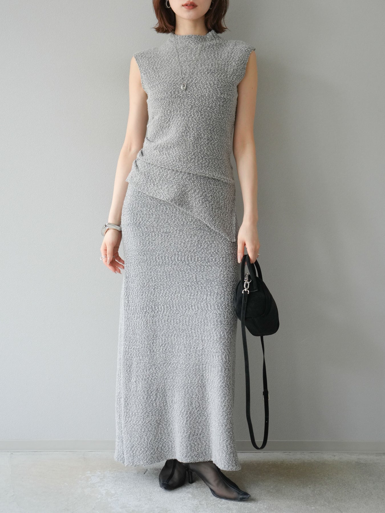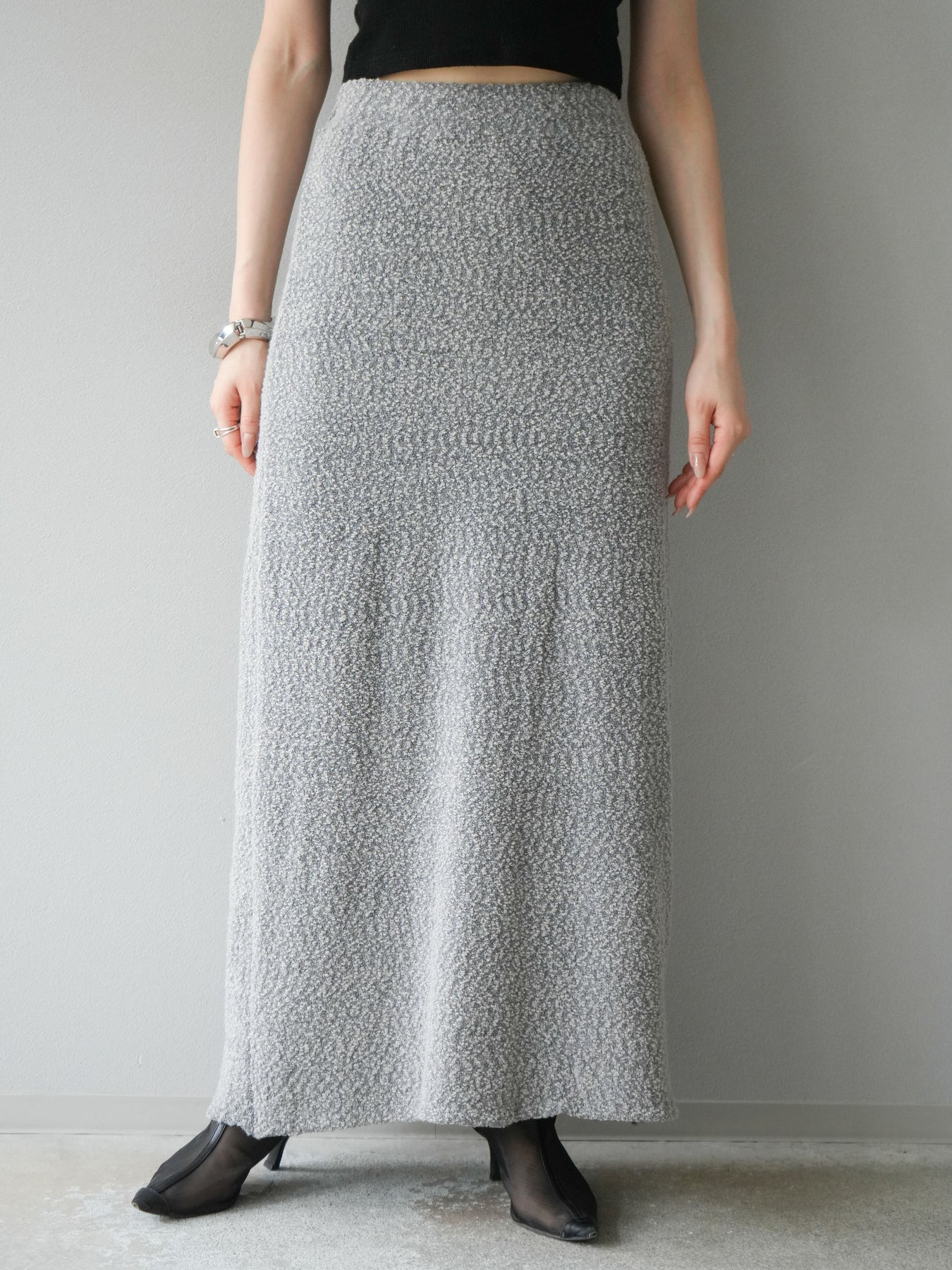 [予約]ブークレーニットIラインスカート/グレー