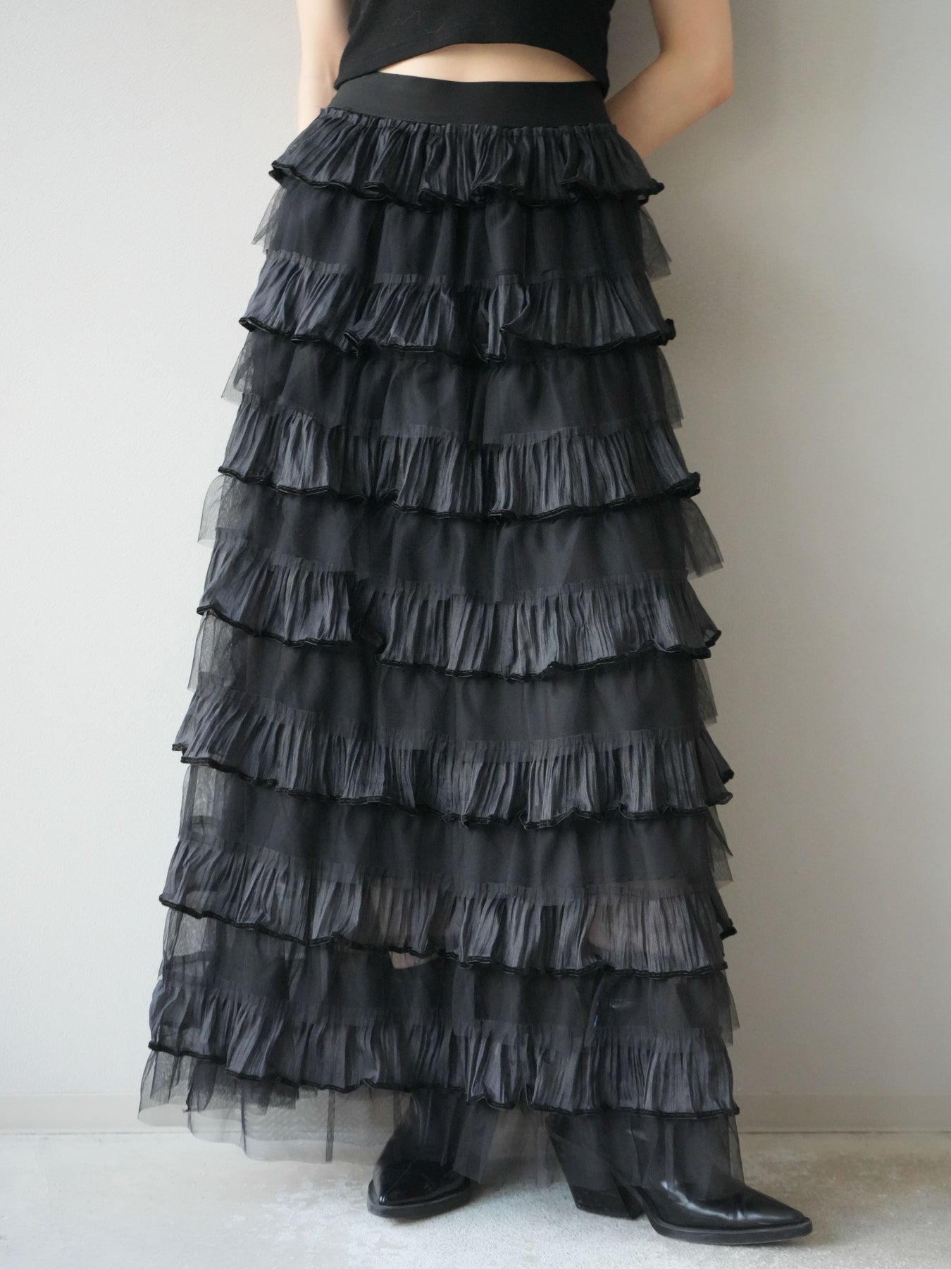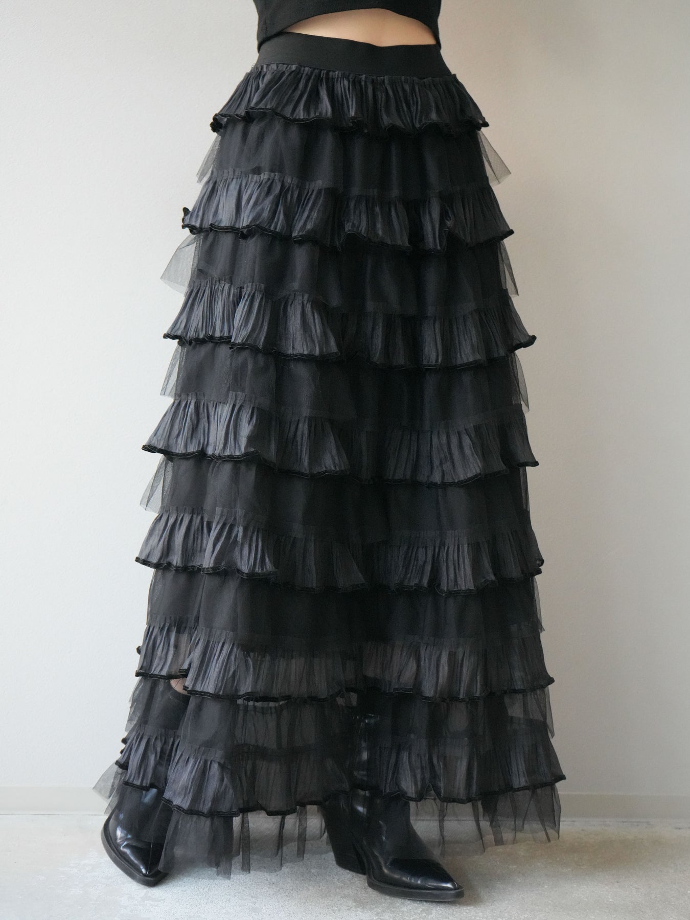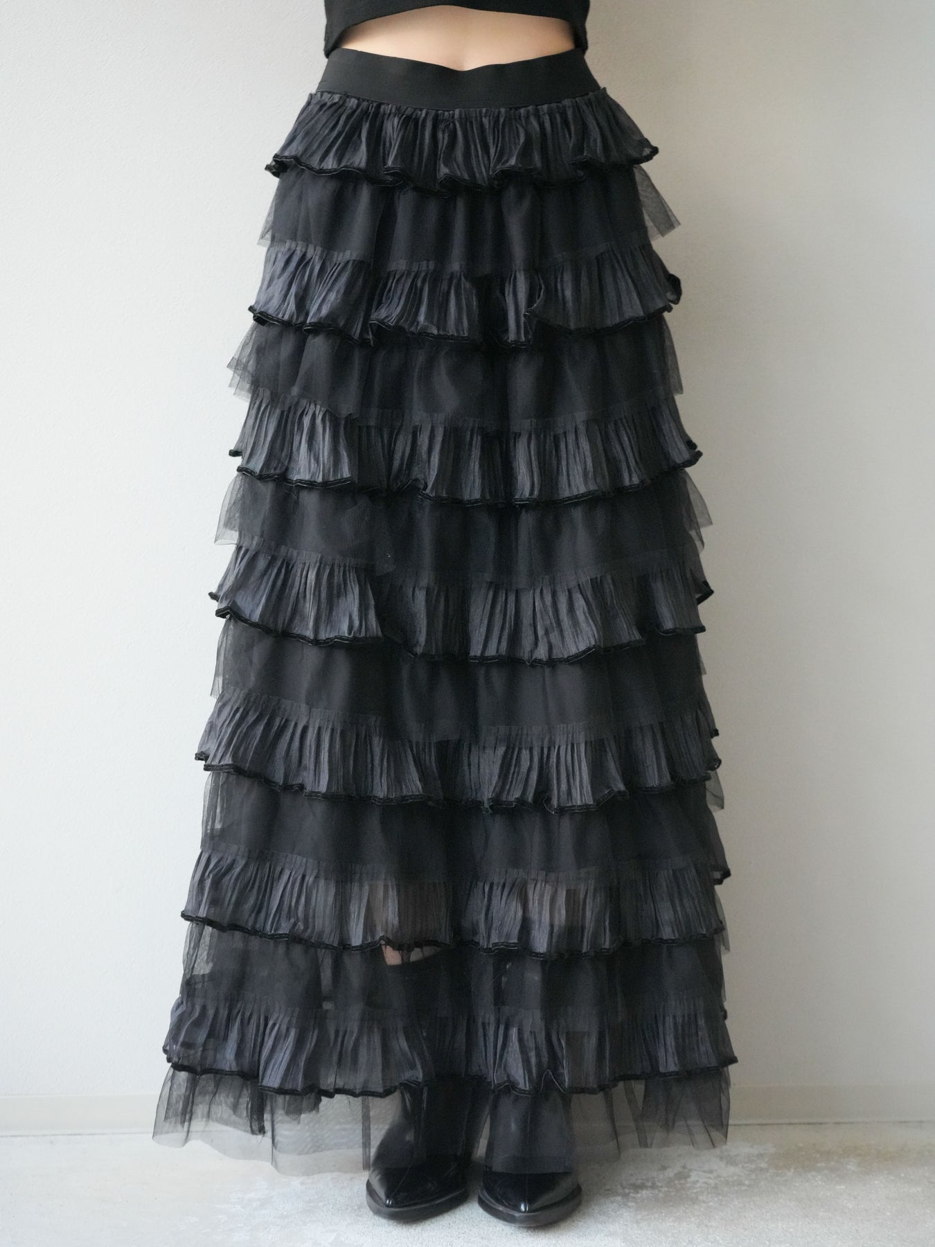 [予約]ベロアパイピングチュールティアードスカート/ブラック