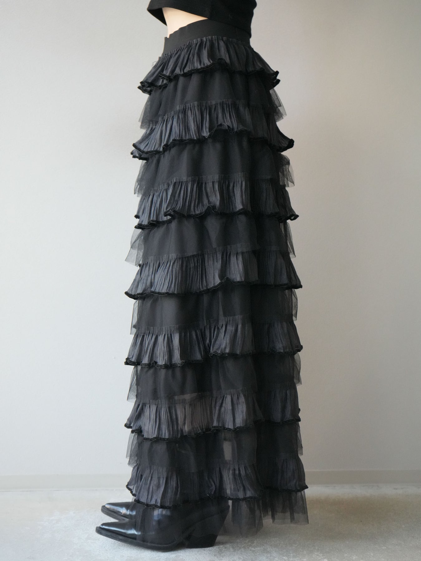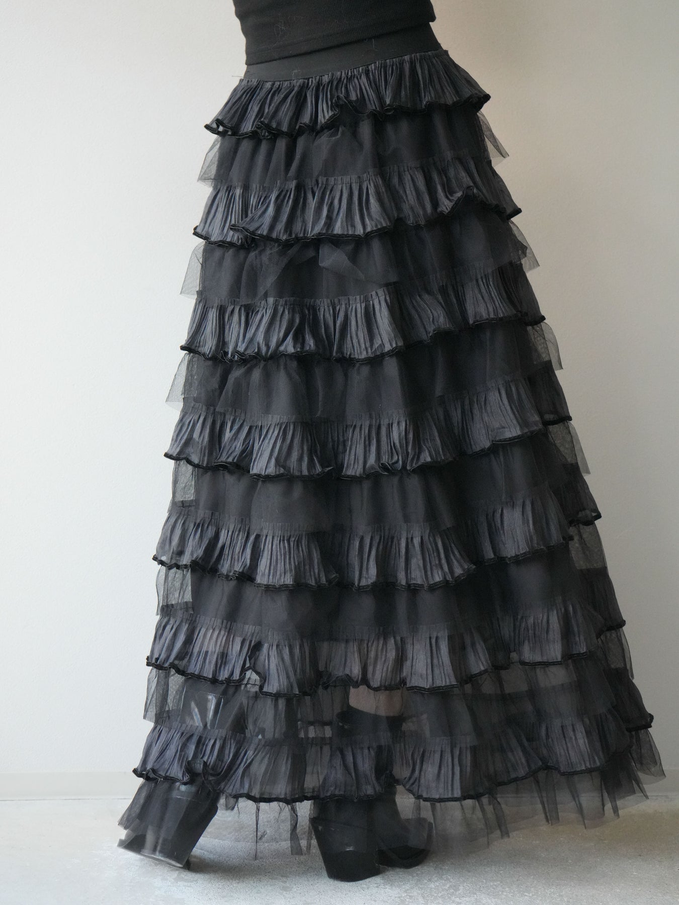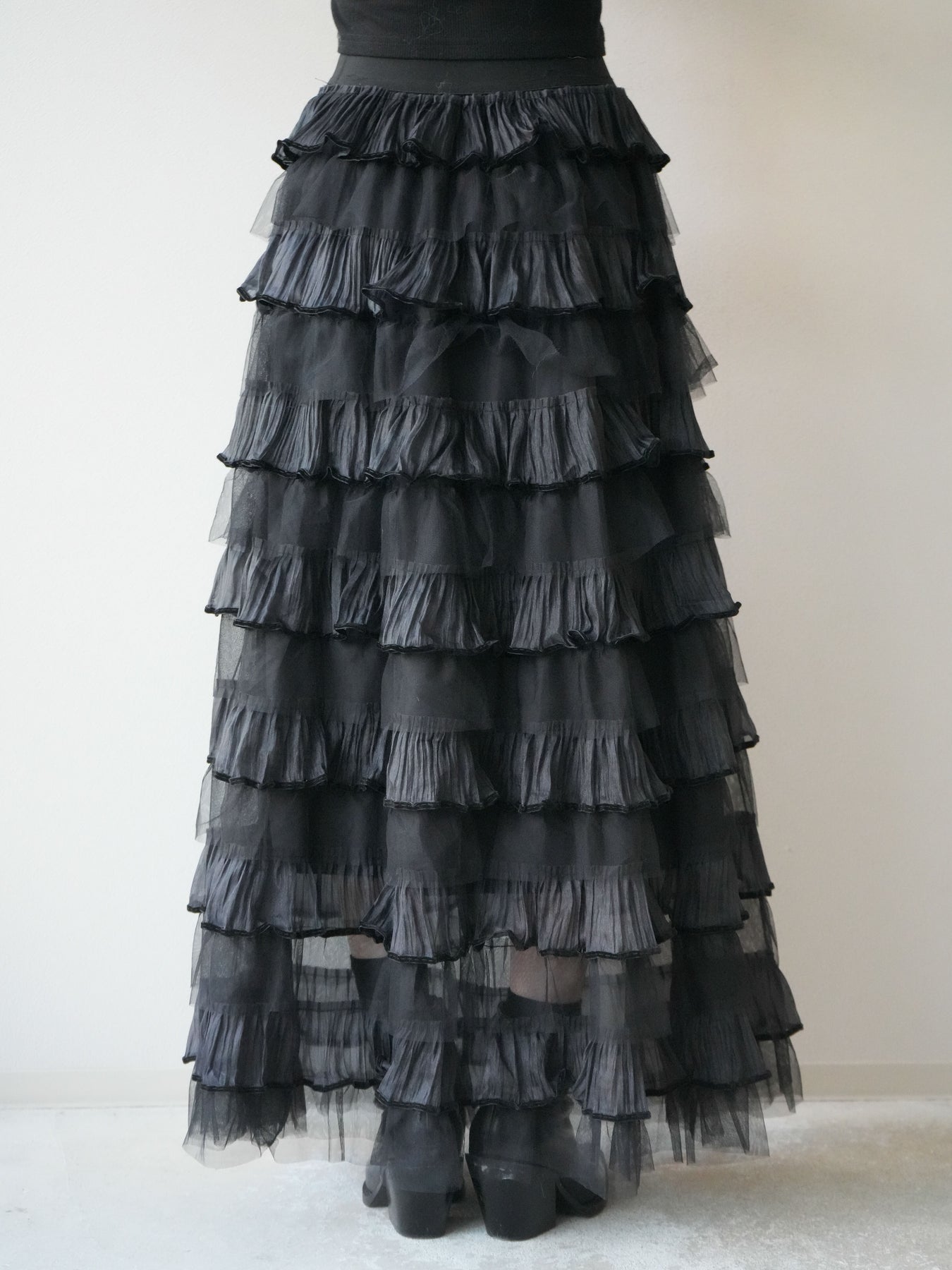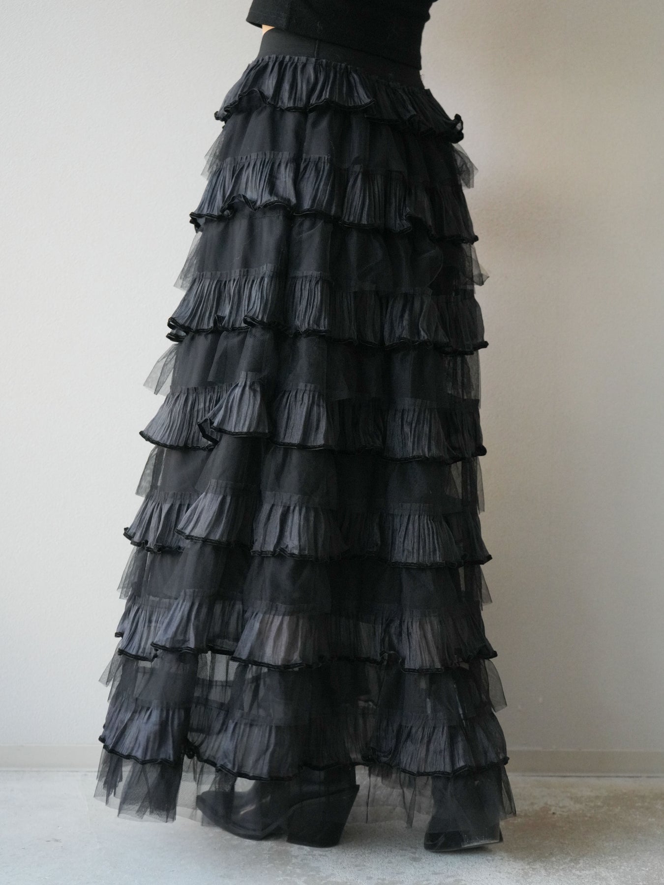 [予約]ベロアパイピングチュールティアードスカート/ブラック