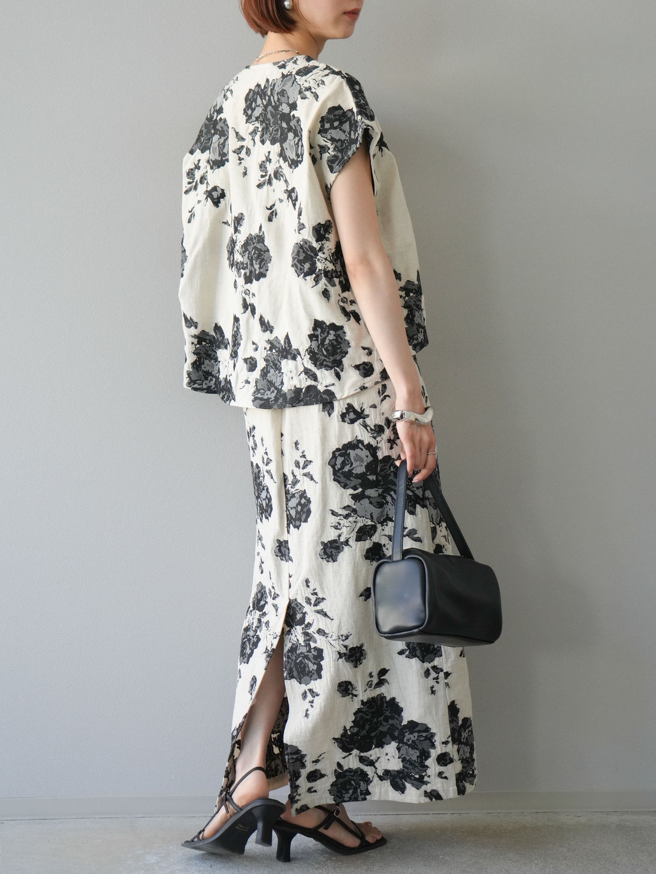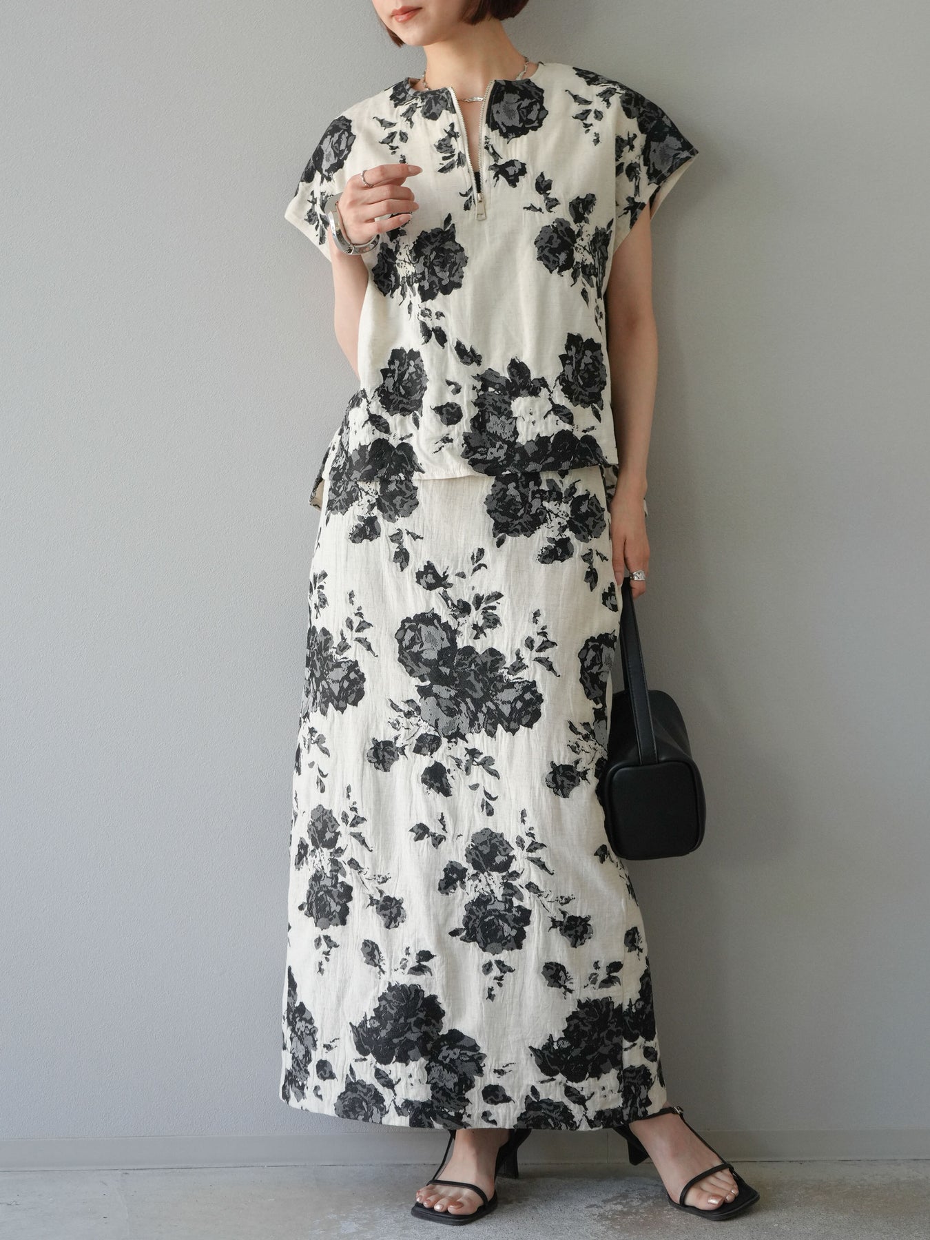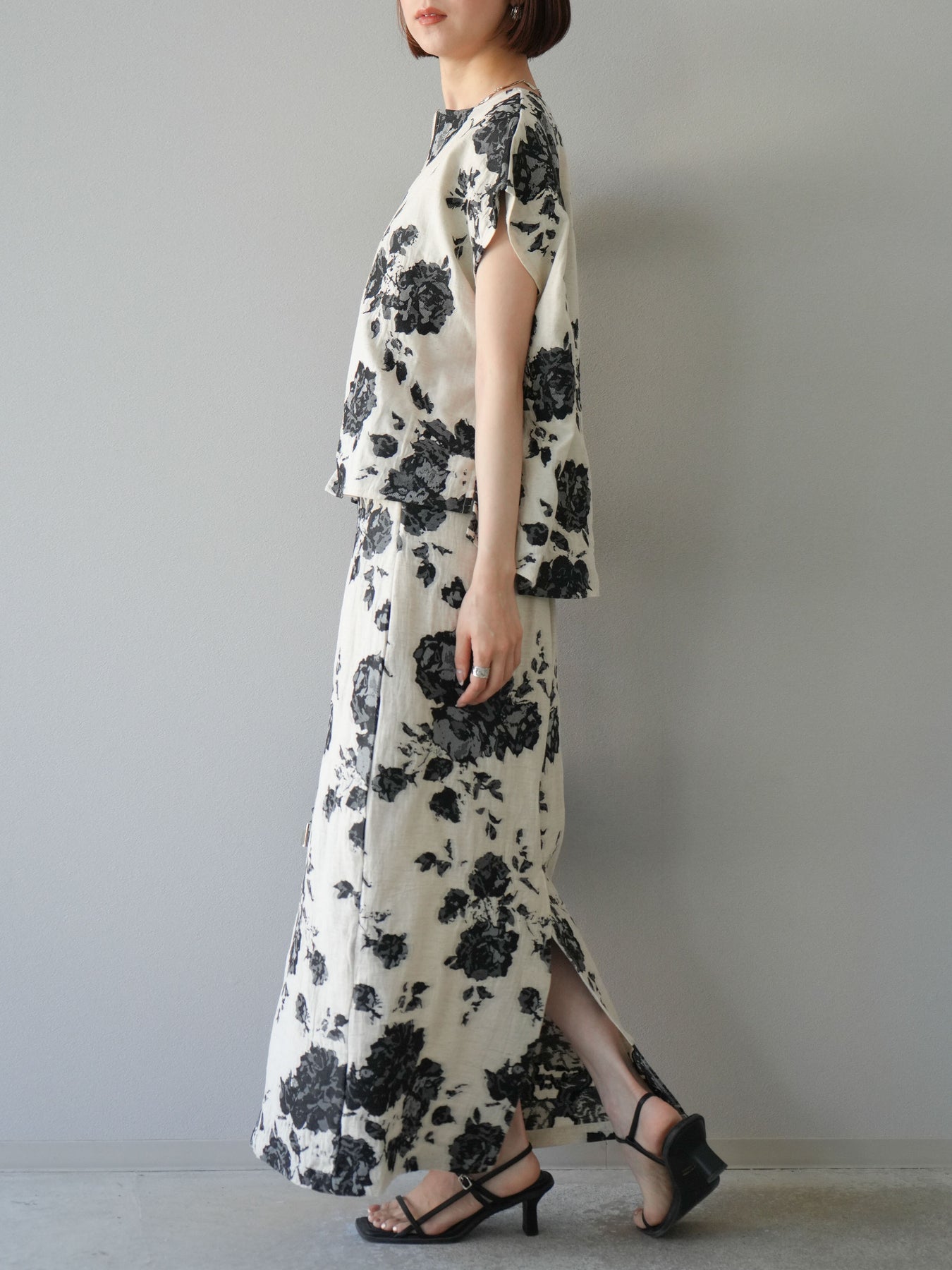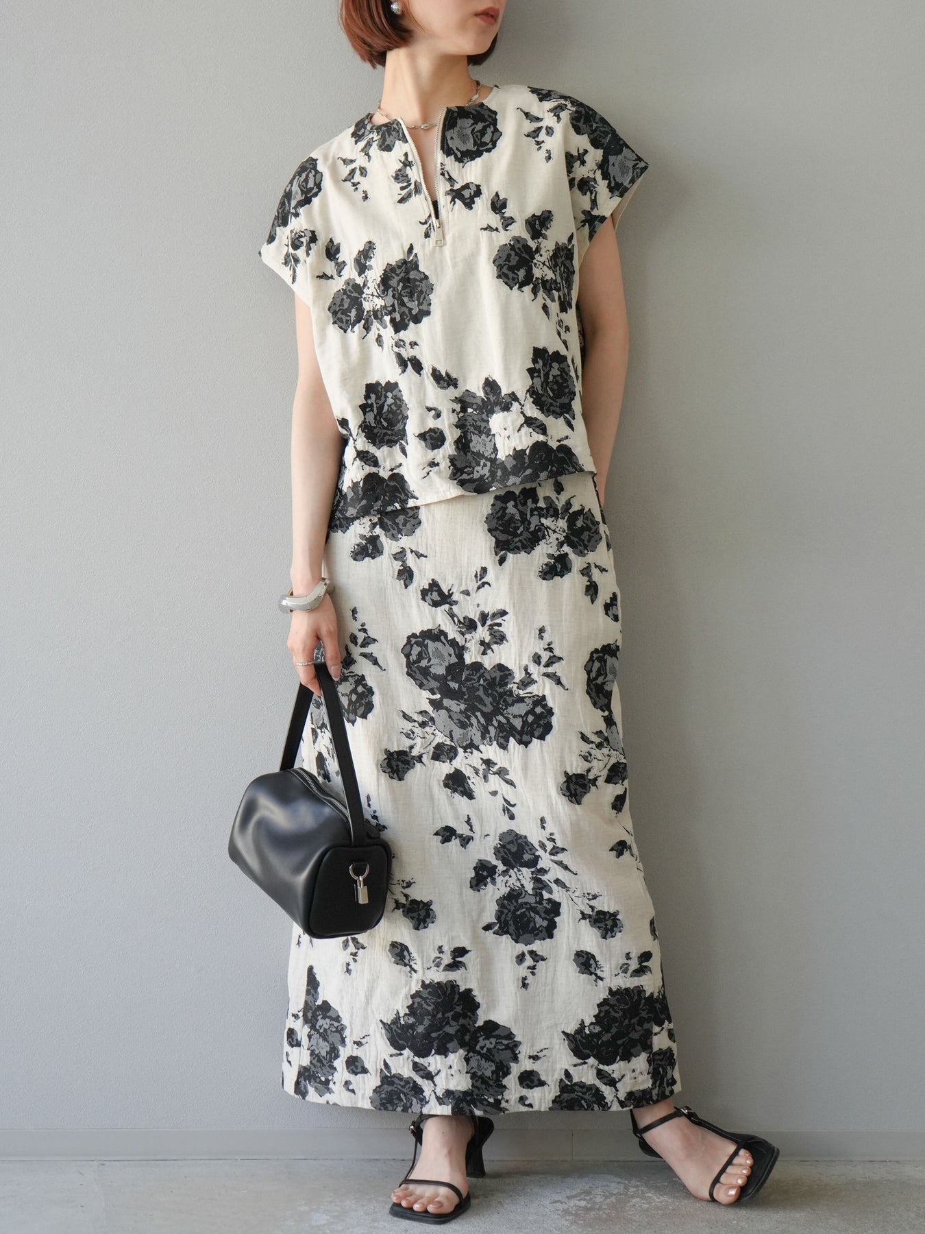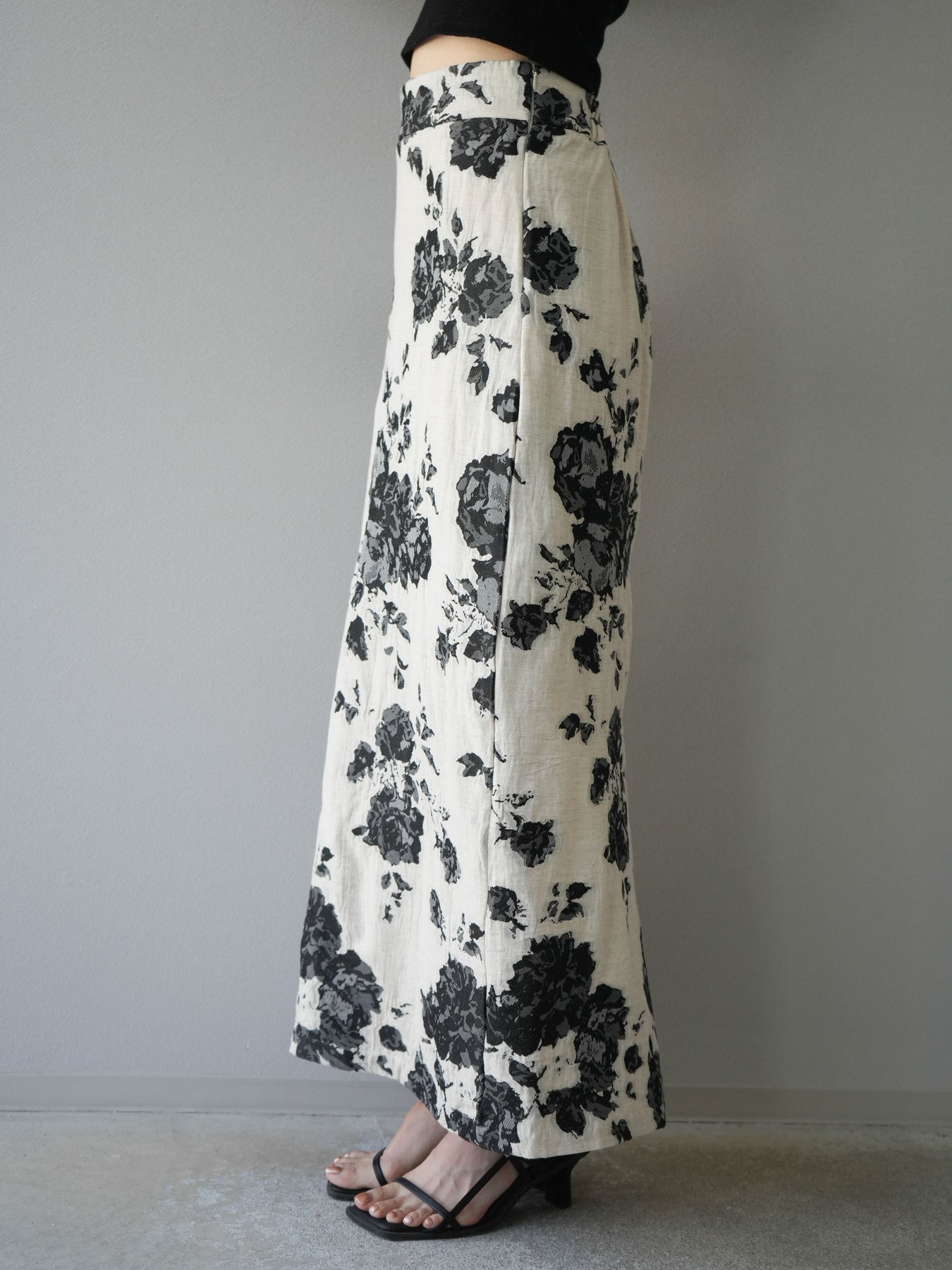 立体的なジャガード織りで表現されたフラワーモチーフが印象的なIラインスカート。 程よいハリ感とナチュラルな風合いがあり、存在感がありながらもスタイリングに馴染む一枚です。 ウエストから裾にかけてすっきりとしたラインを描くシルエットが、大人っぽく上品な印象に。 トップスをインしたスタイリングで、柄を引き立てる着こなしがおすすめです。 カジュアルにもきれいめにも着回せる、万能アイテムです。